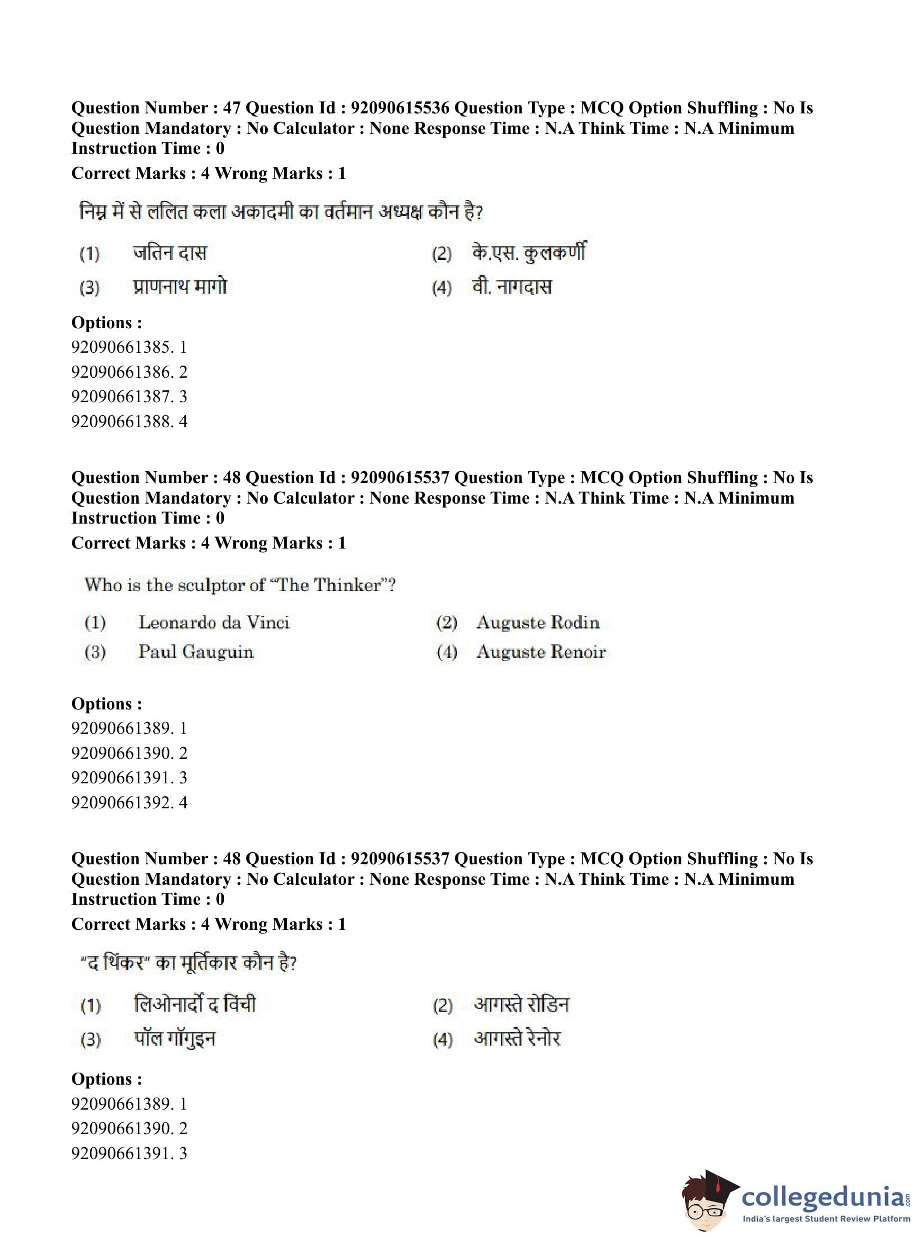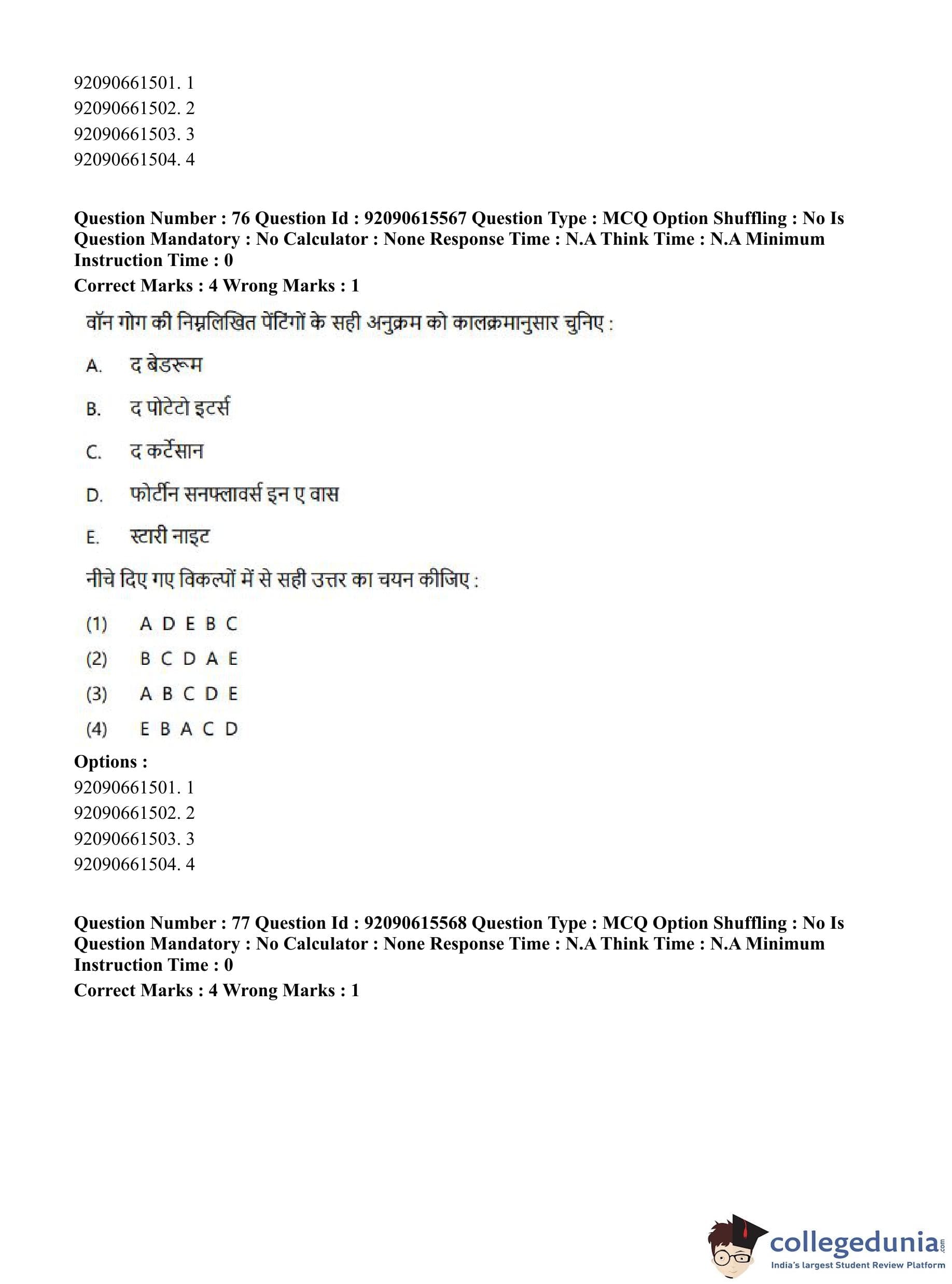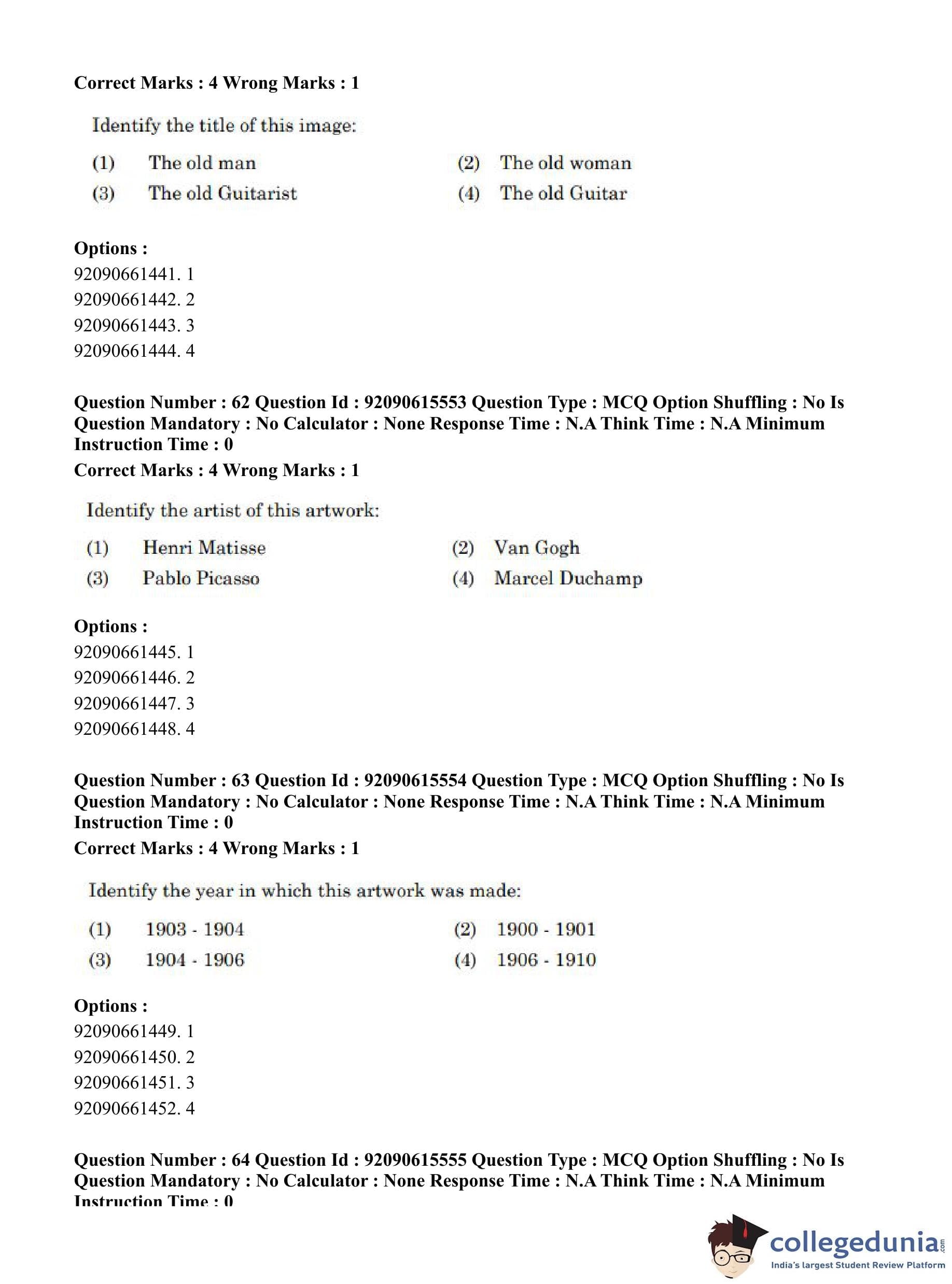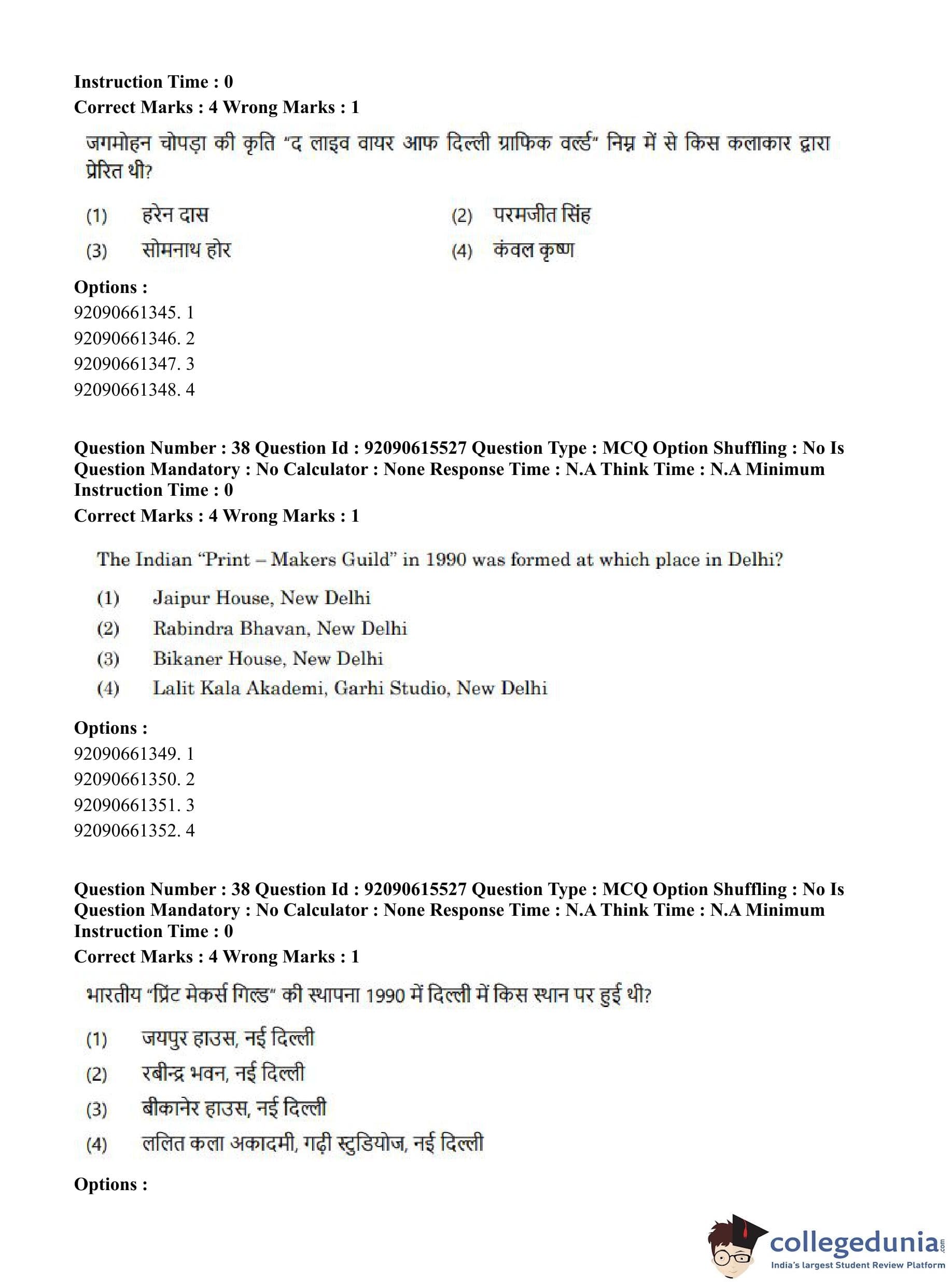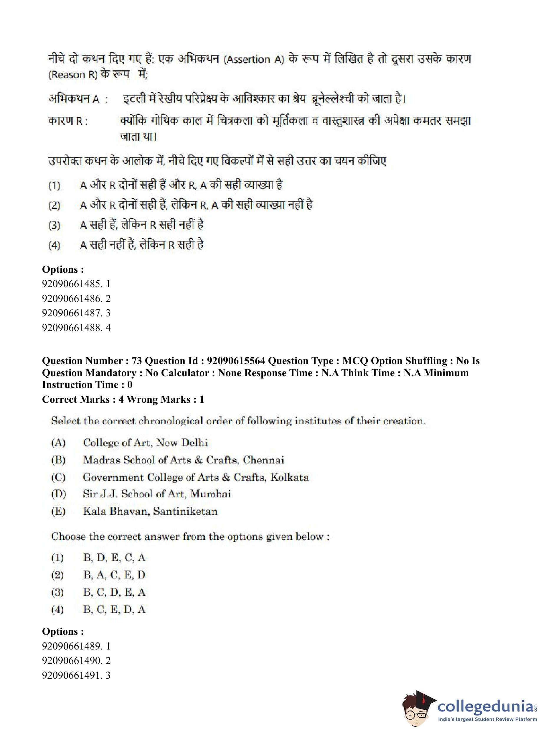 CUET PG 2023 Fine Arts Question Paper in Hindi (June 12 - Shift 3)