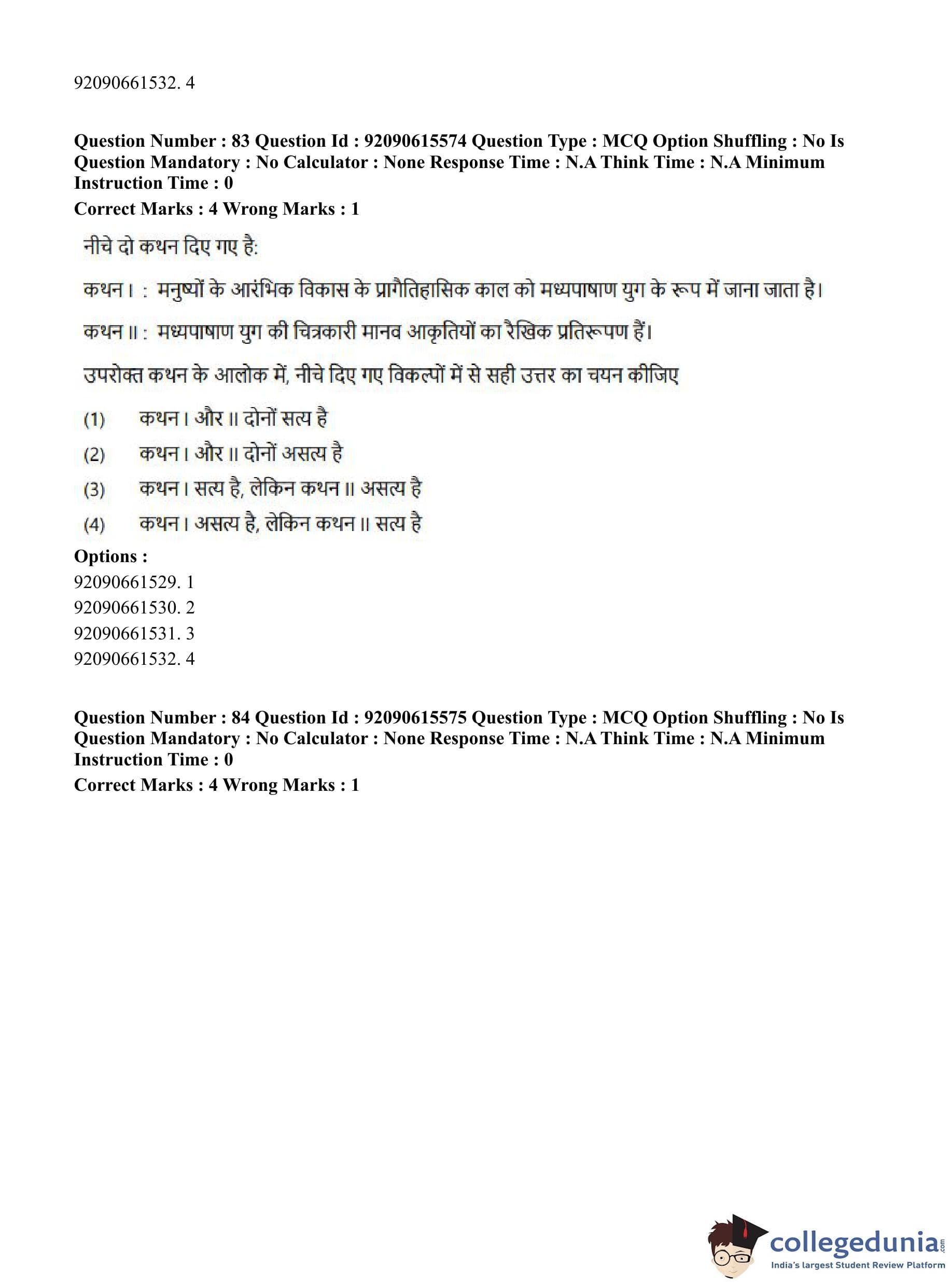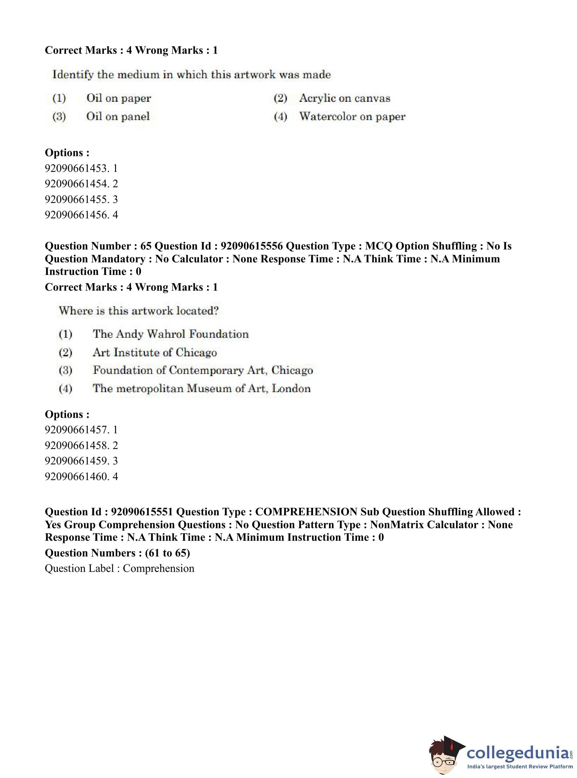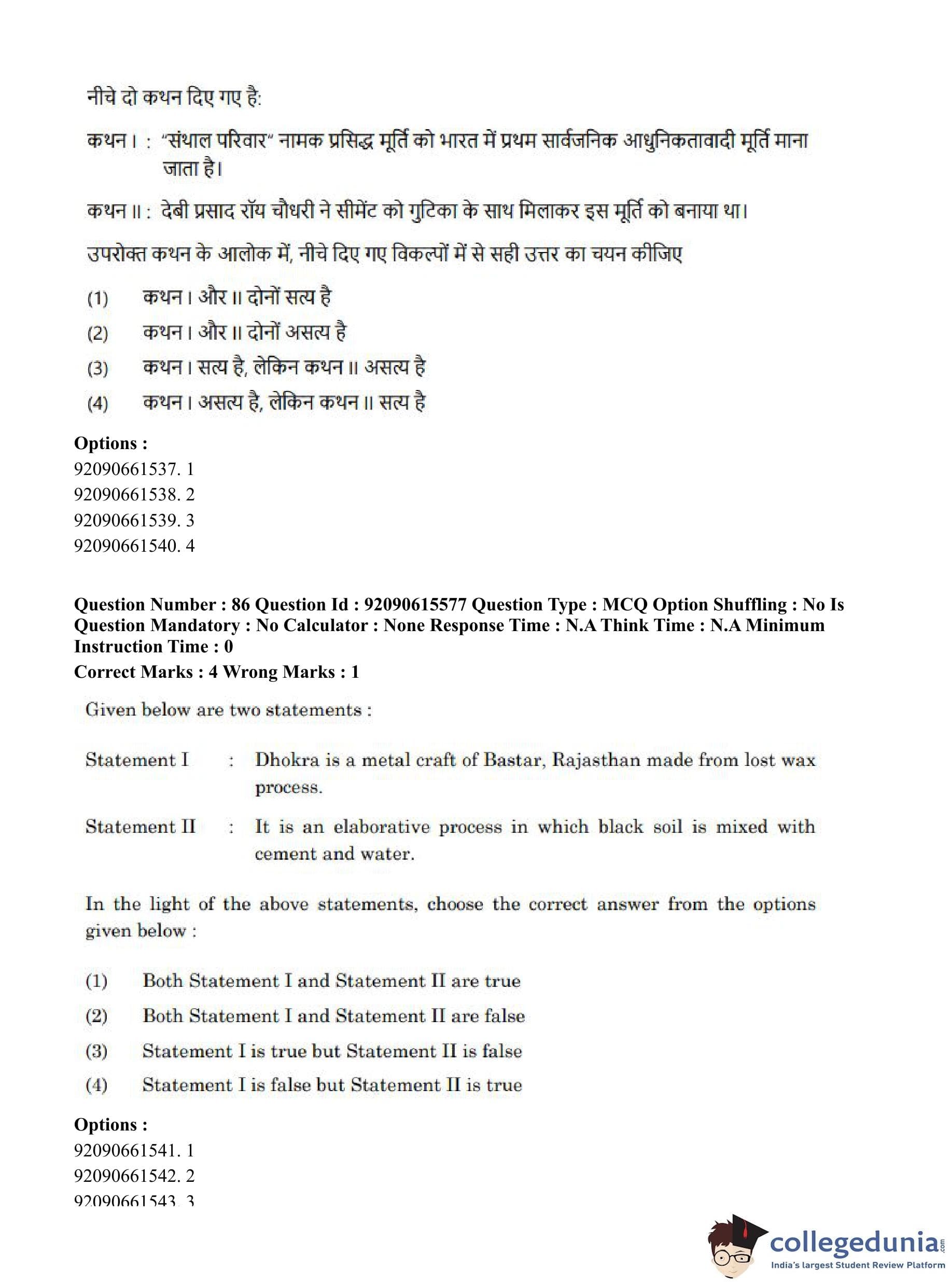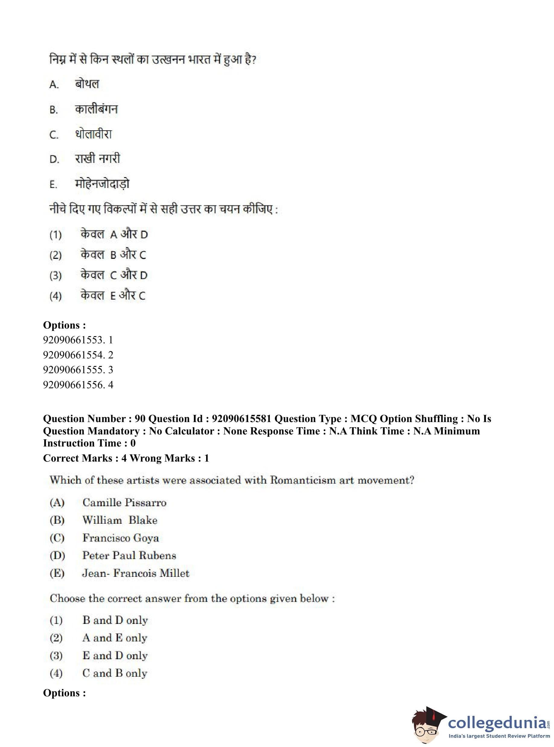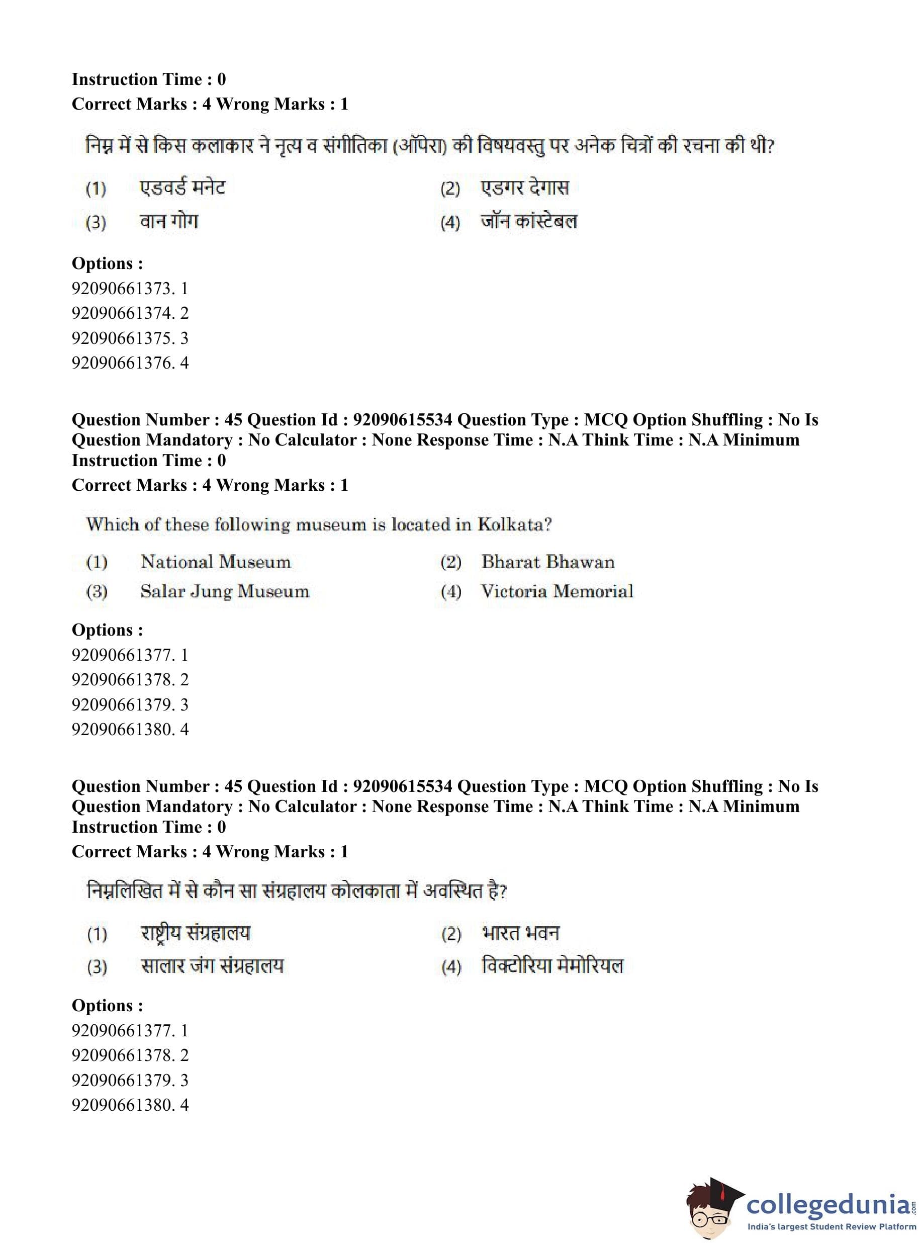 CUET PG 2023 Fine Arts Question Paper in Hindi (June 12 - Shift 3)