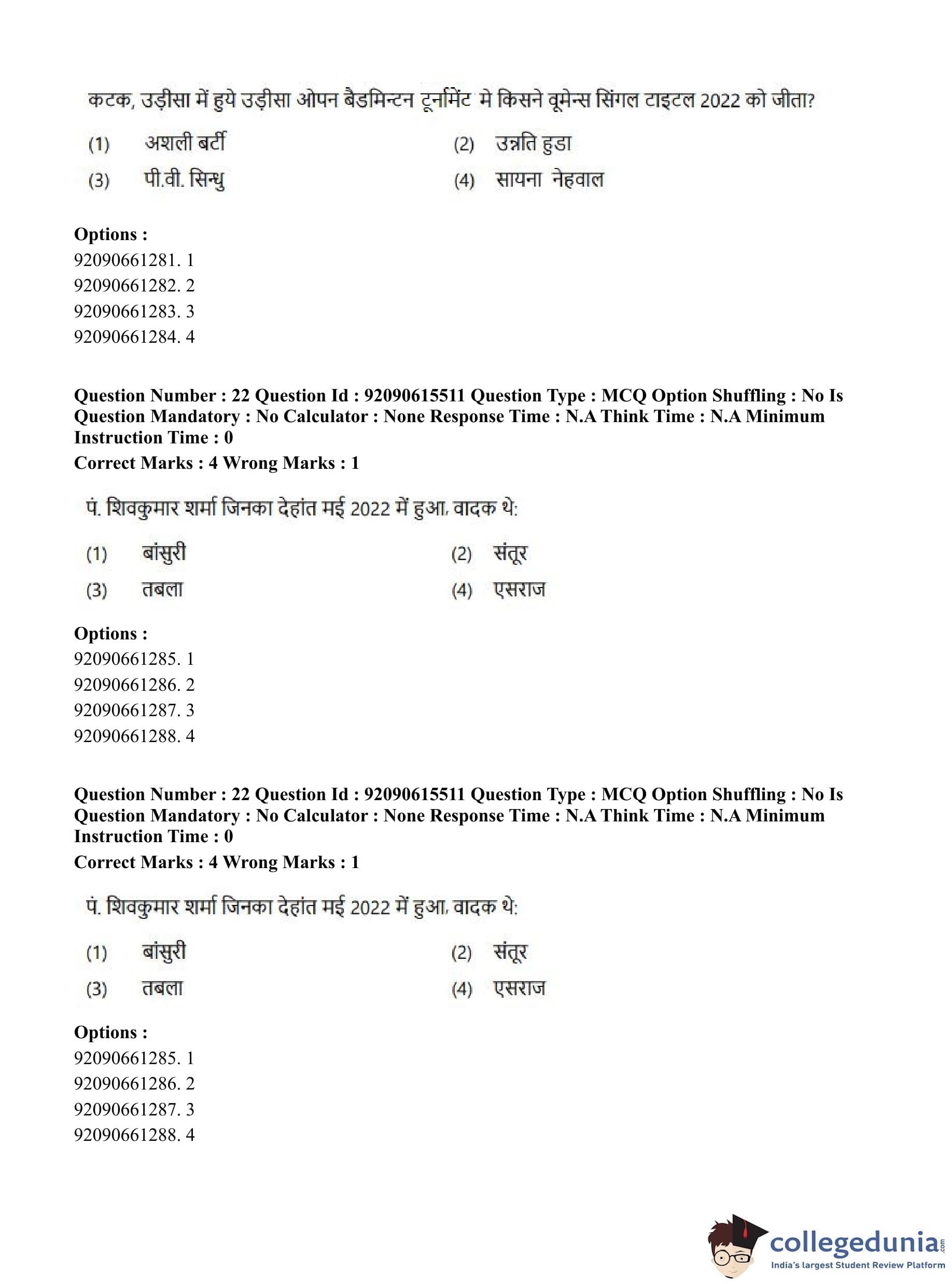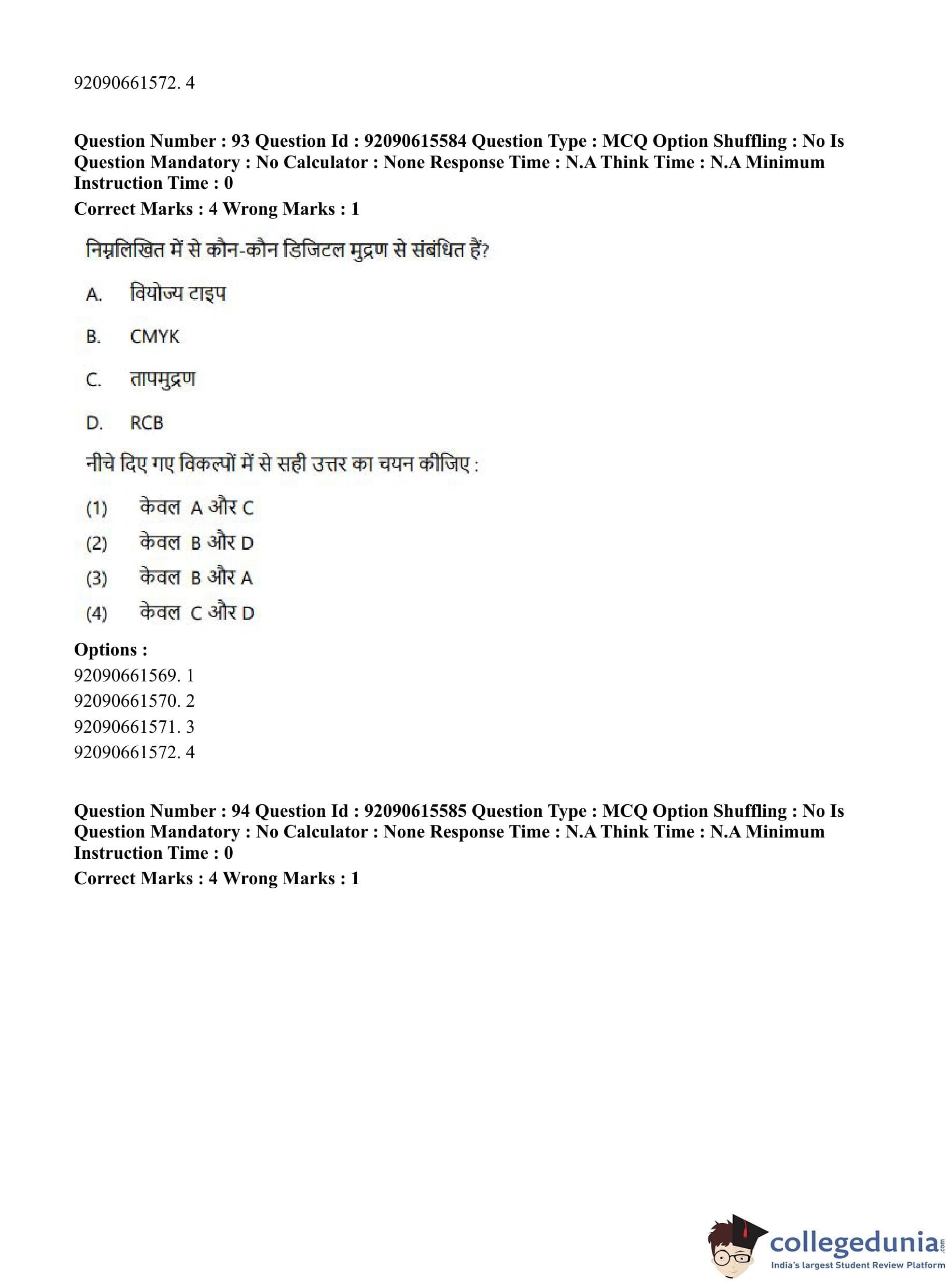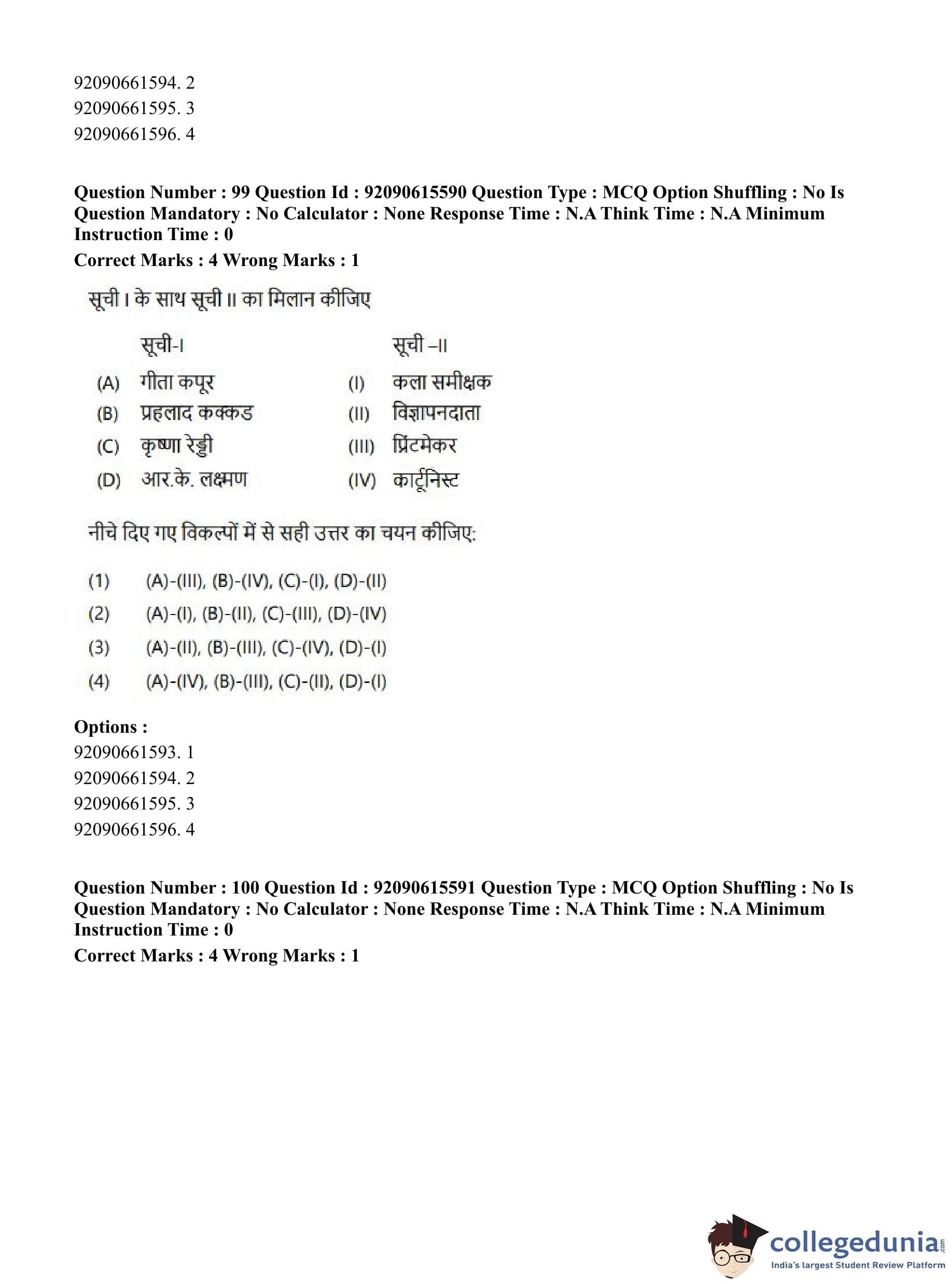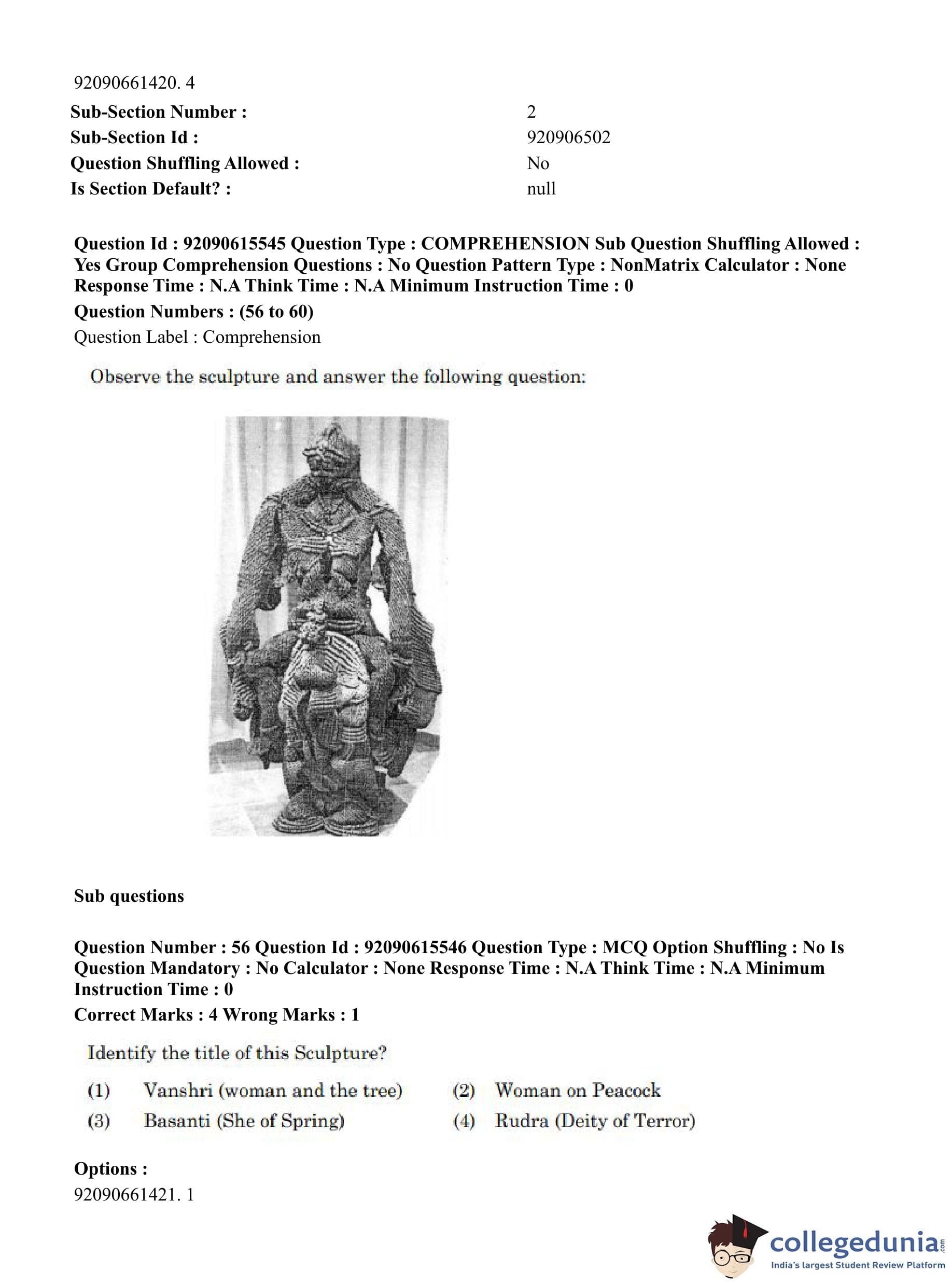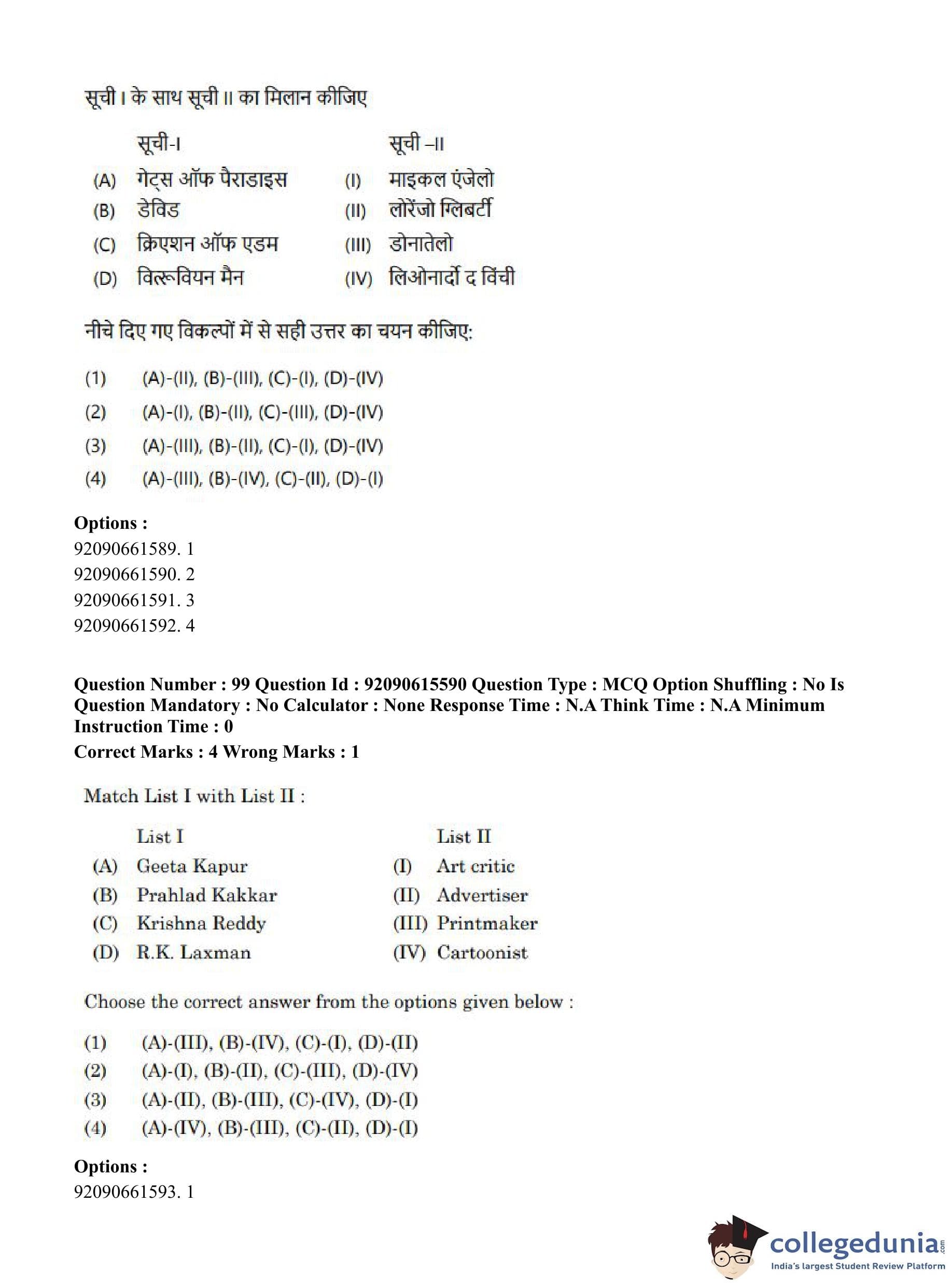CUET PG 2023 Fine Arts Question Paper in Hindi (June 12 - Shift 3)