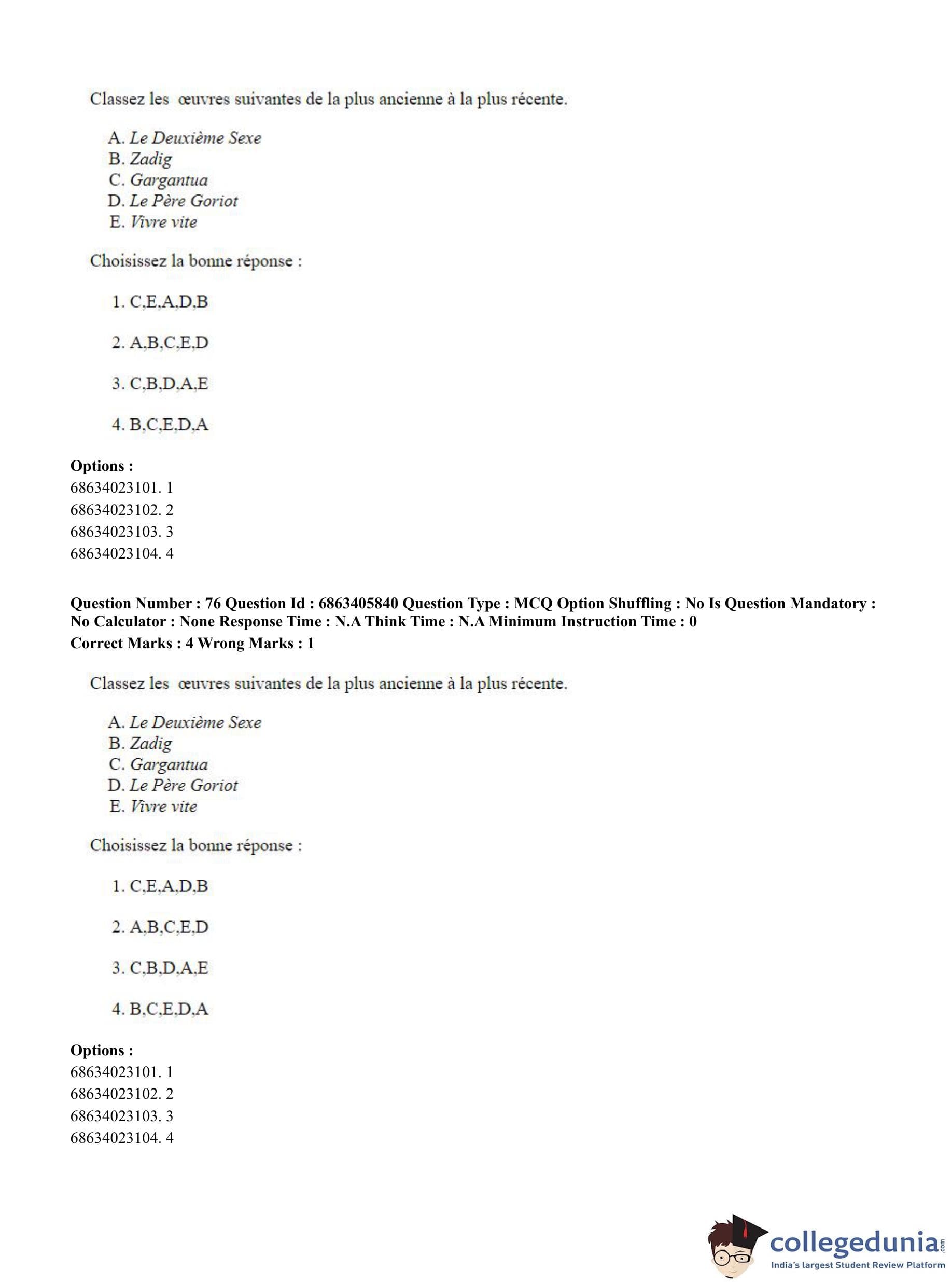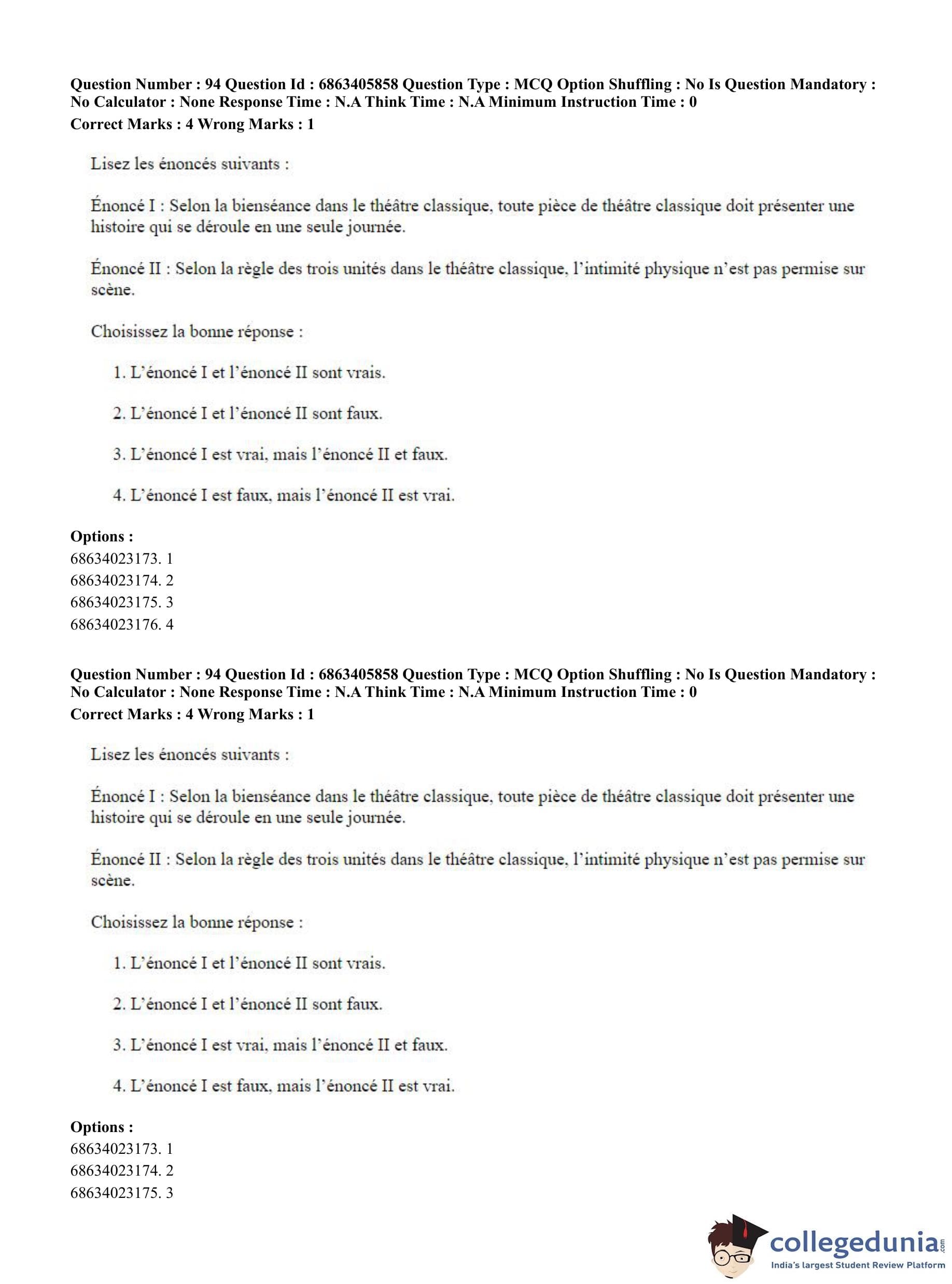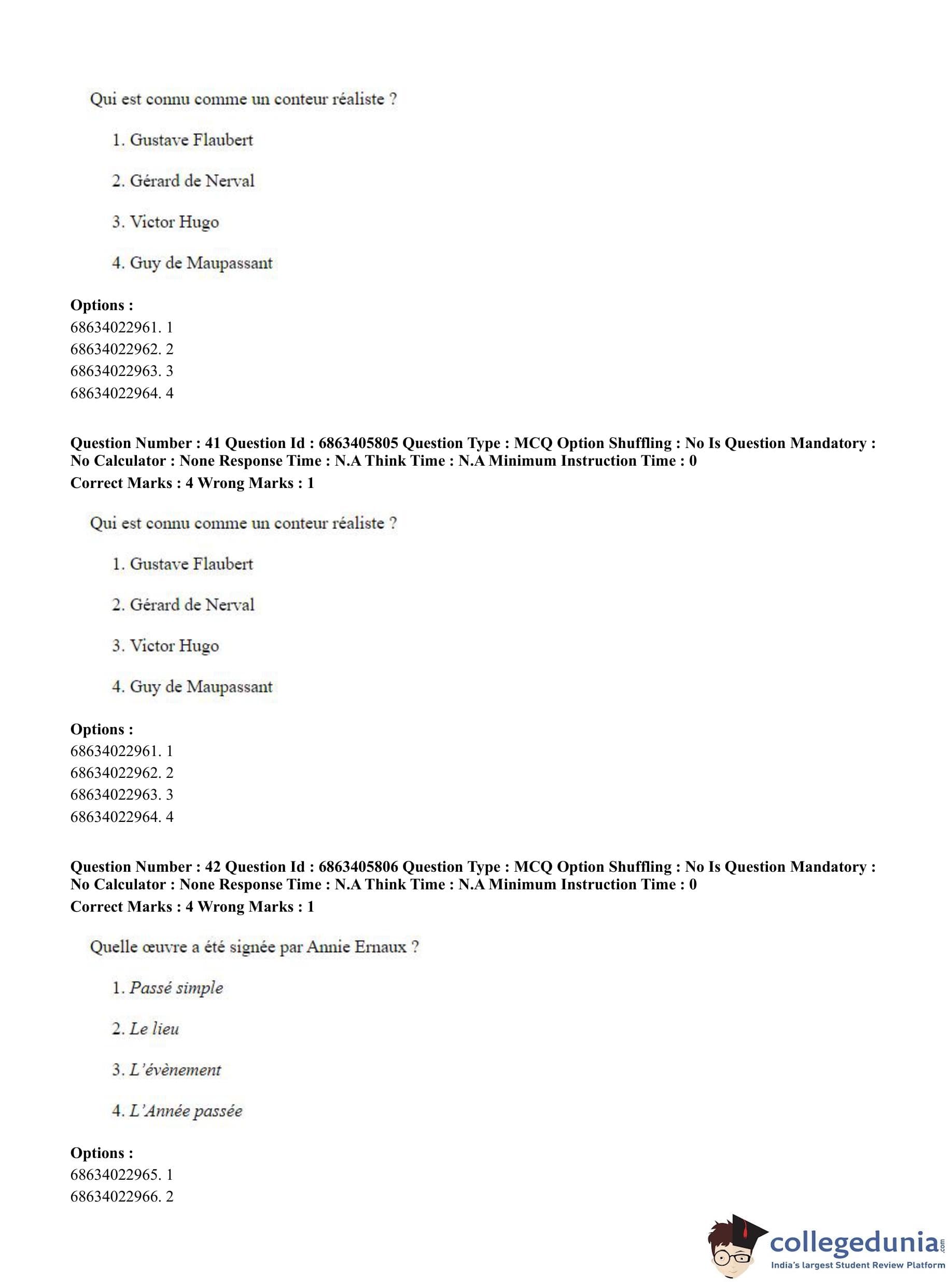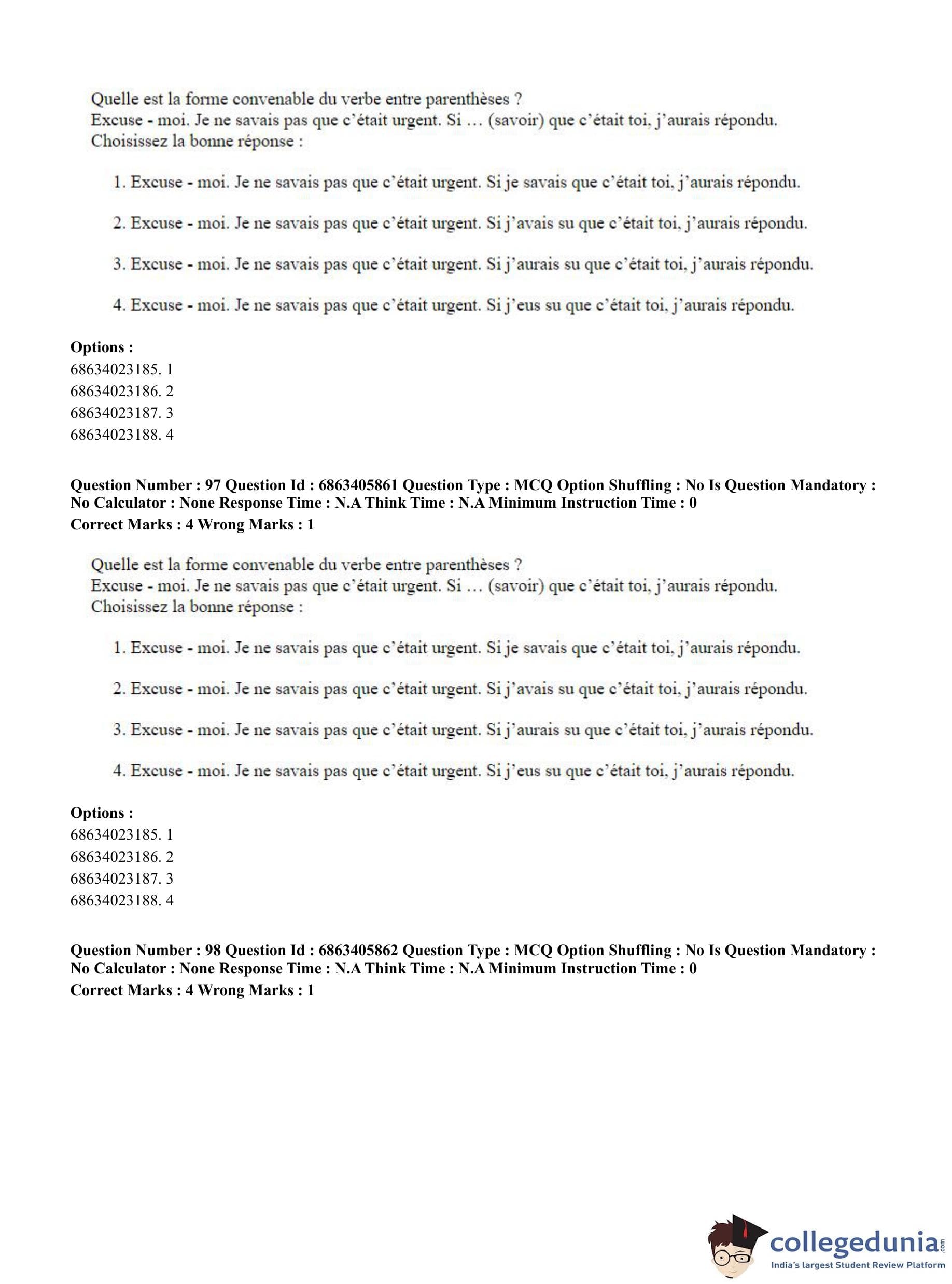 CUET PG 2023 French Question Paper in English (June 5 - Shift 3)