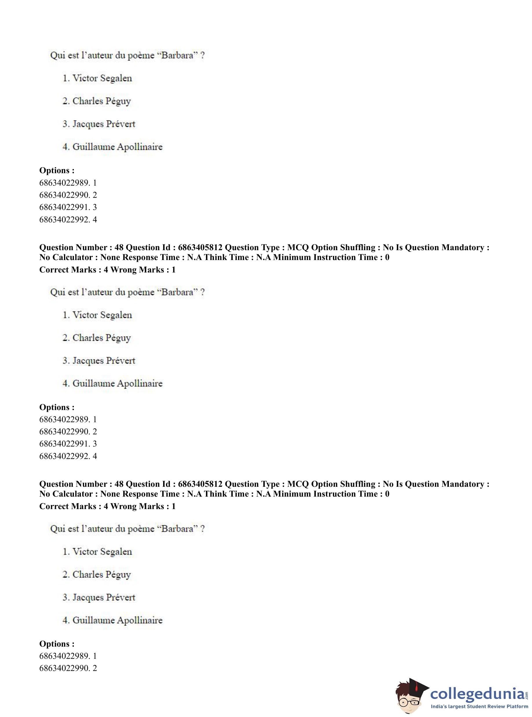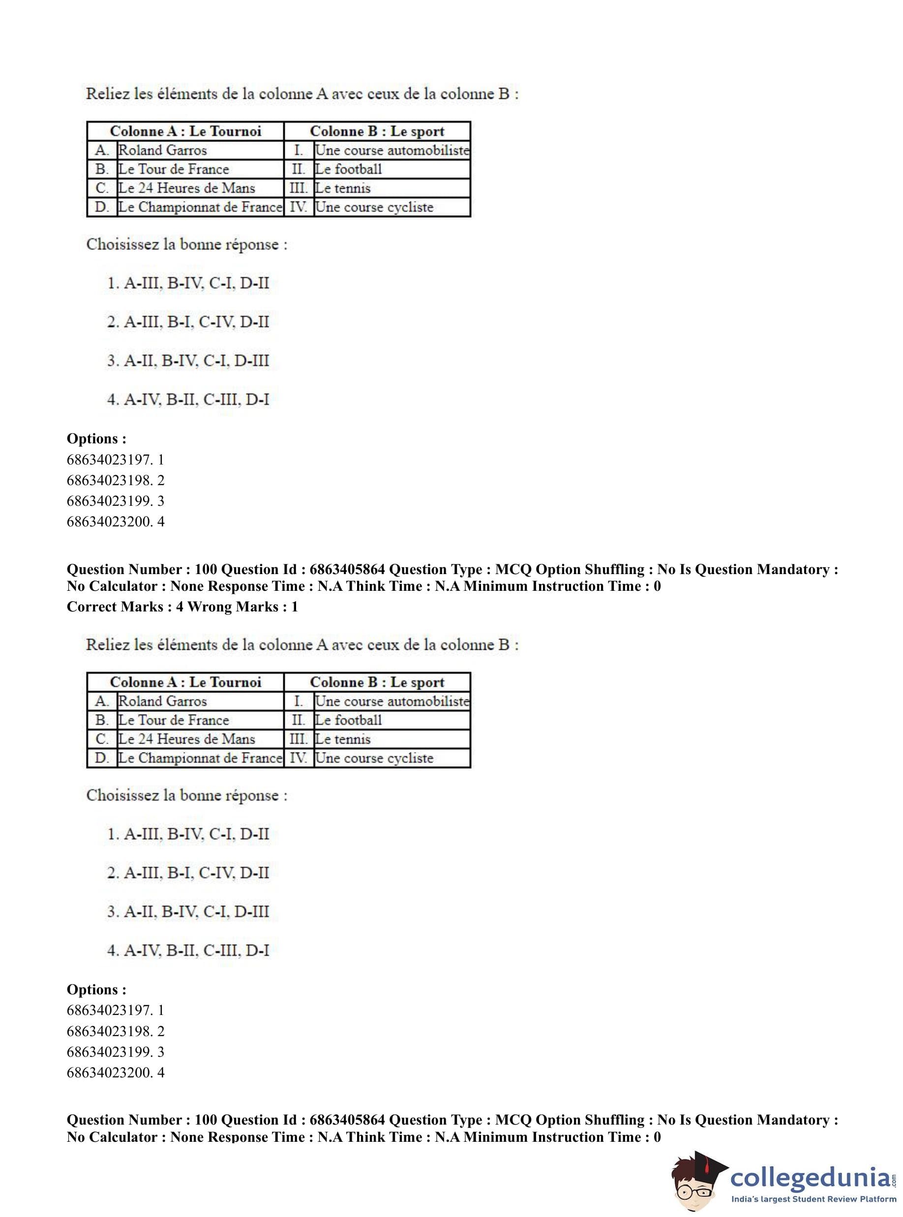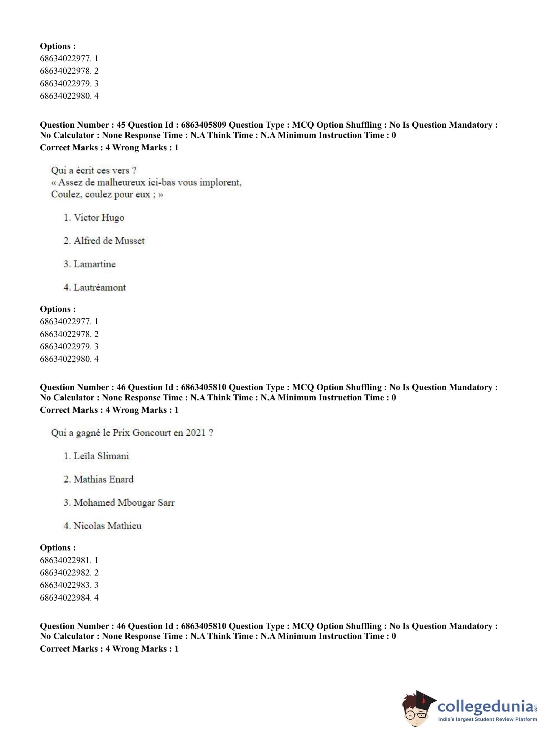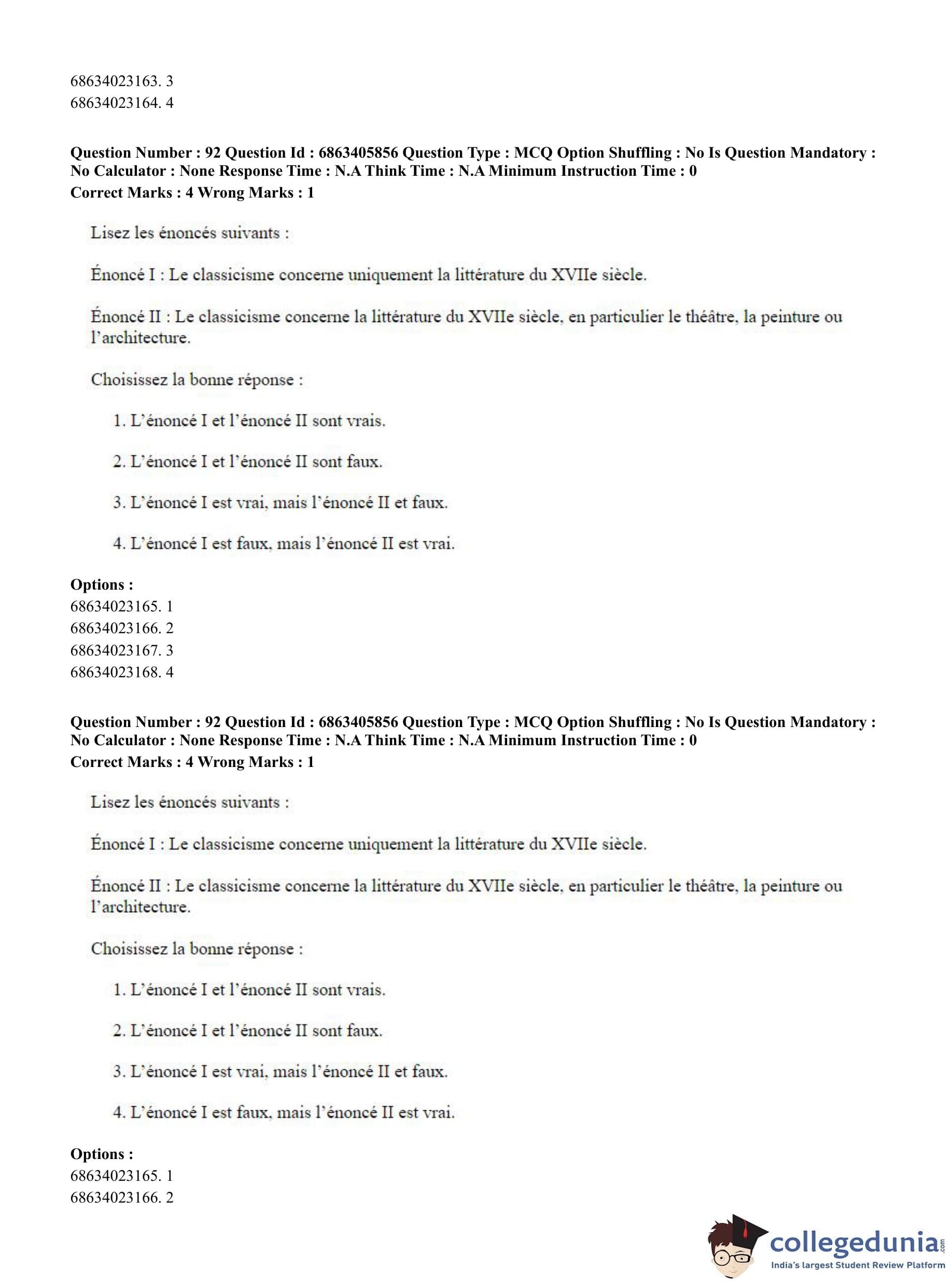 CUET PG 2023 French Question Paper in English (June 5 - Shift 3)