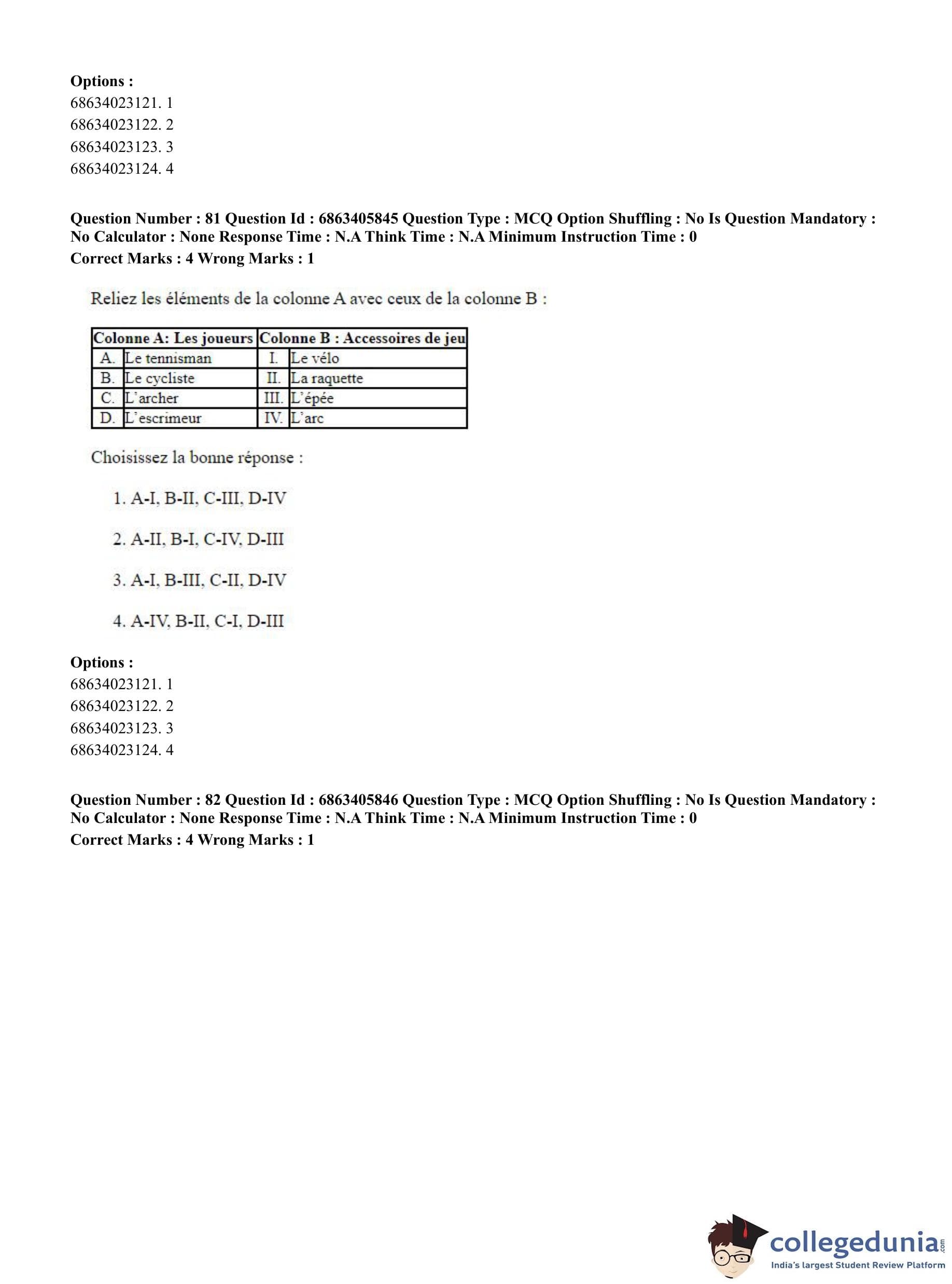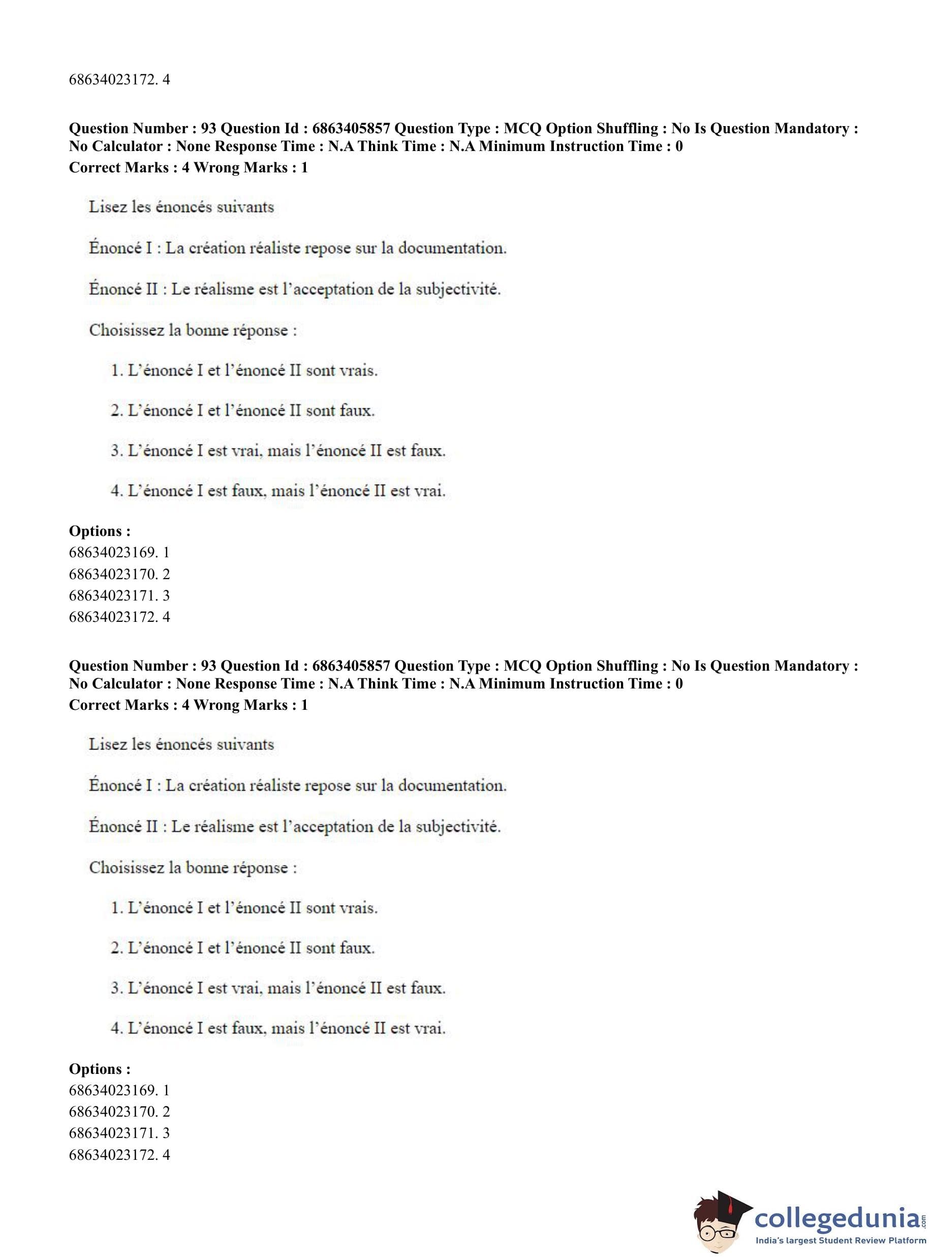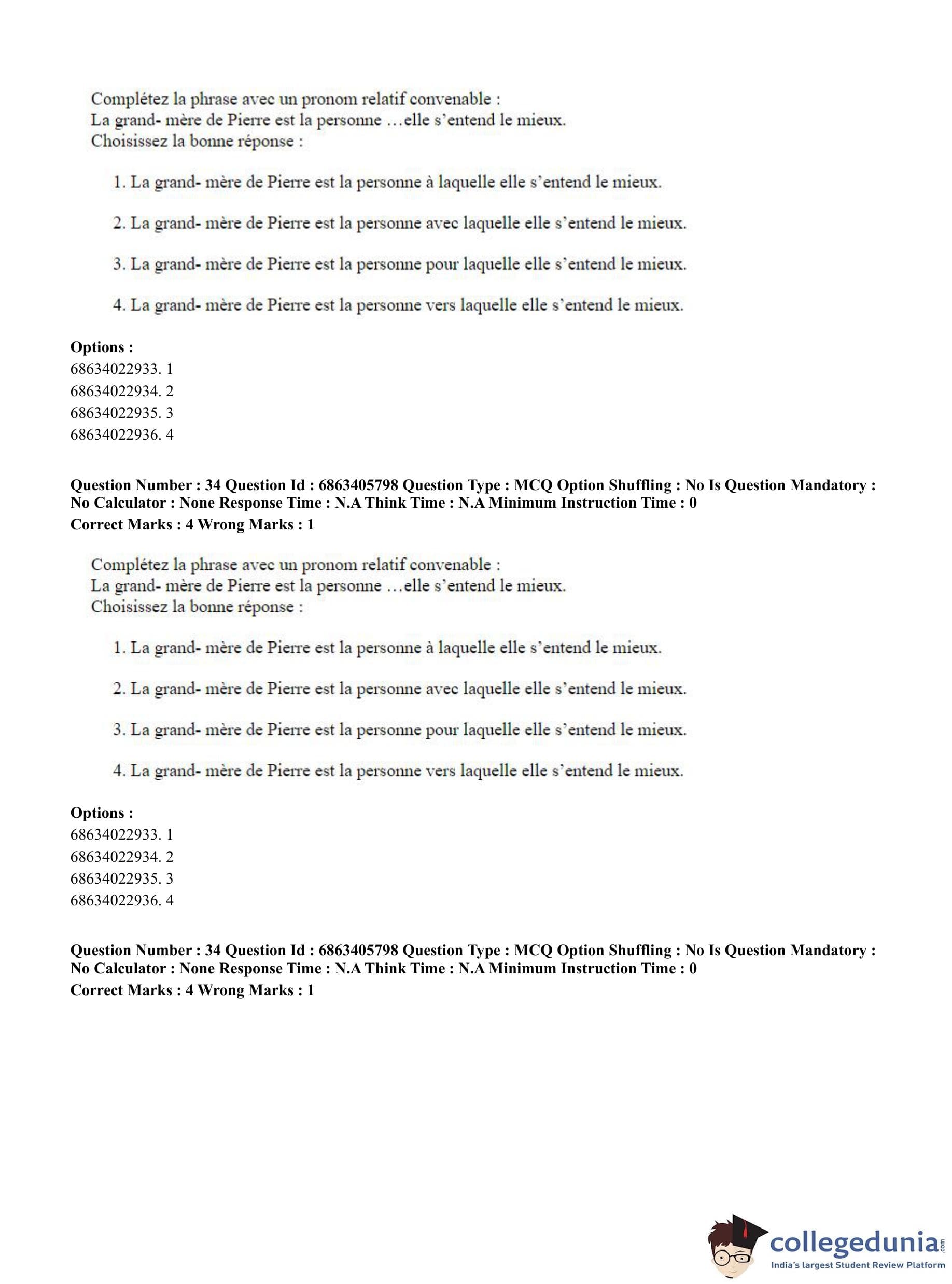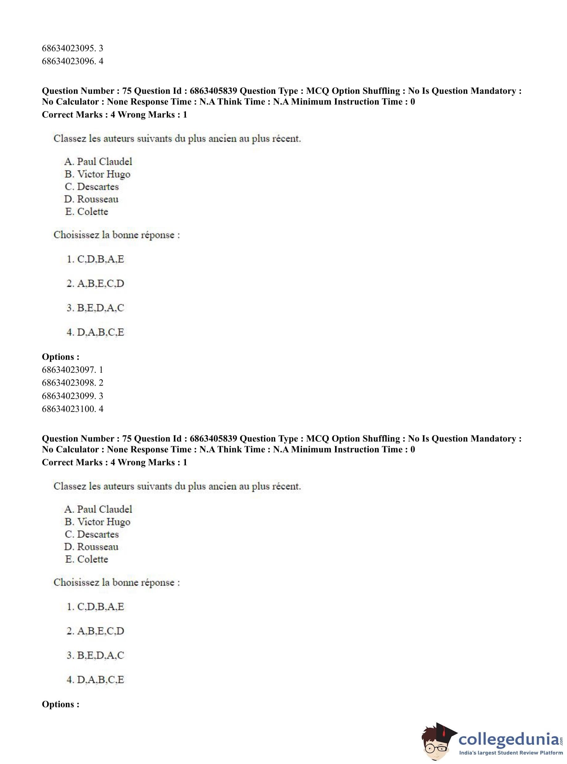CUET PG 2023 French Question Paper in English (June 5 - Shift 3)