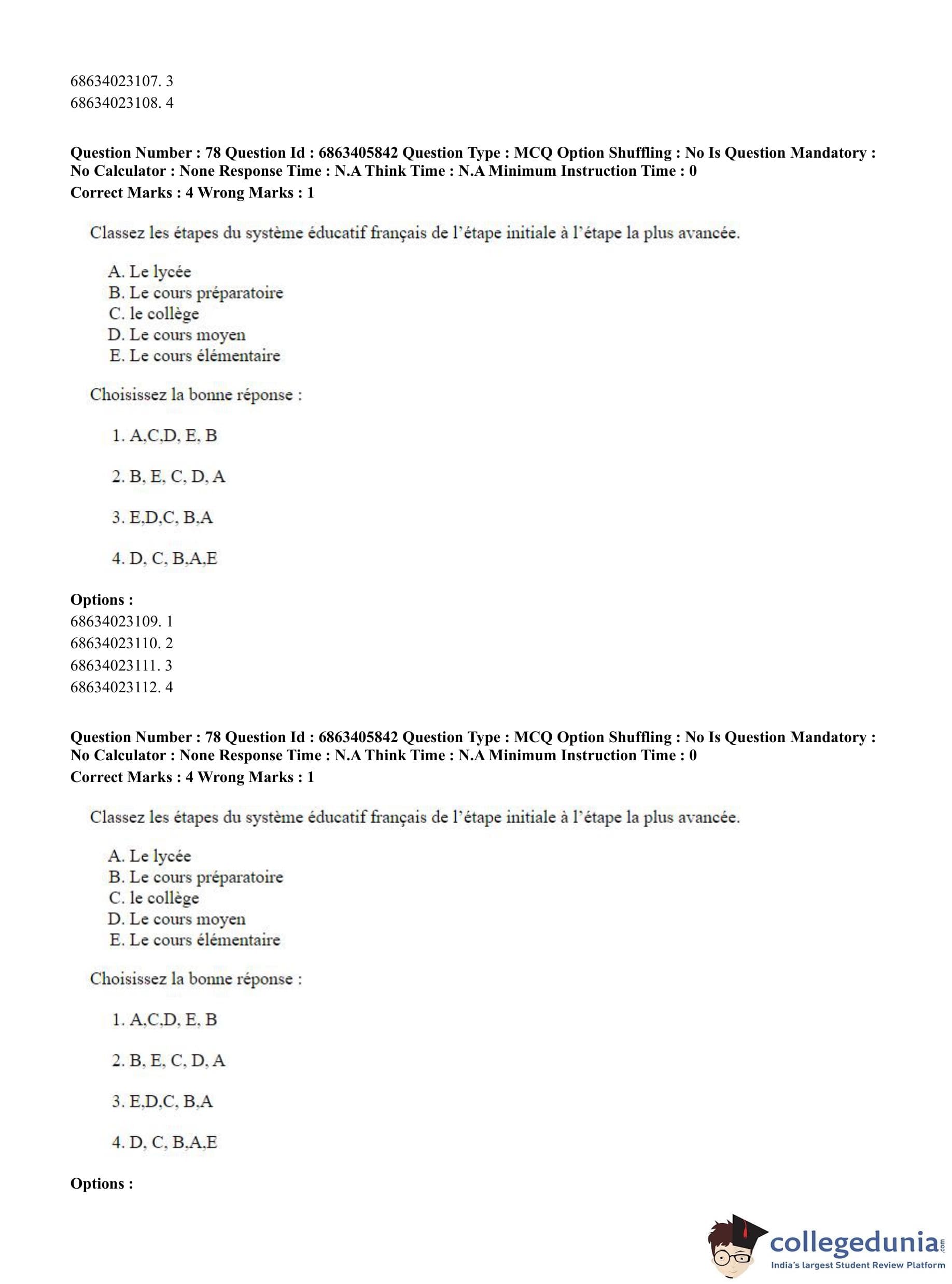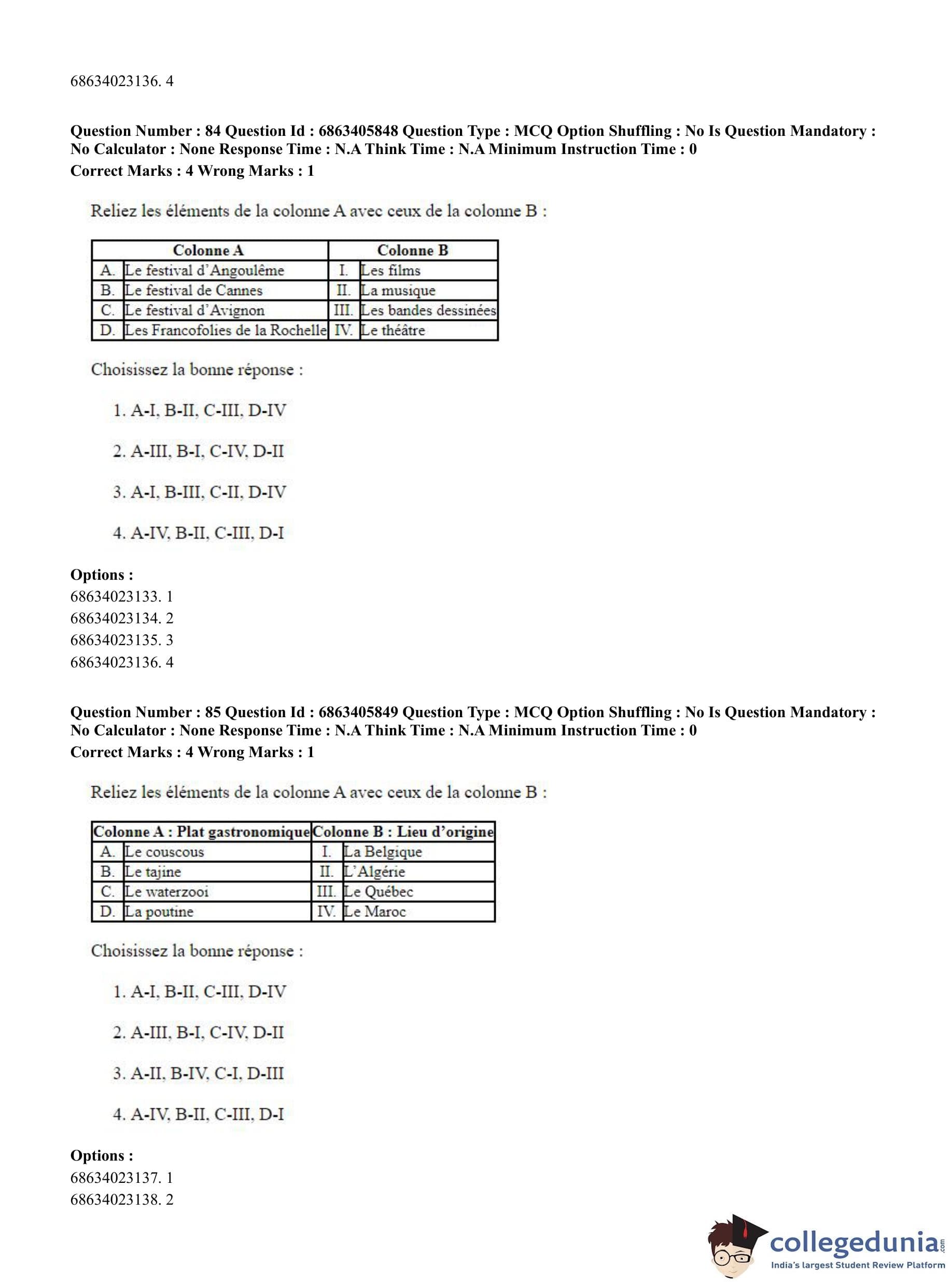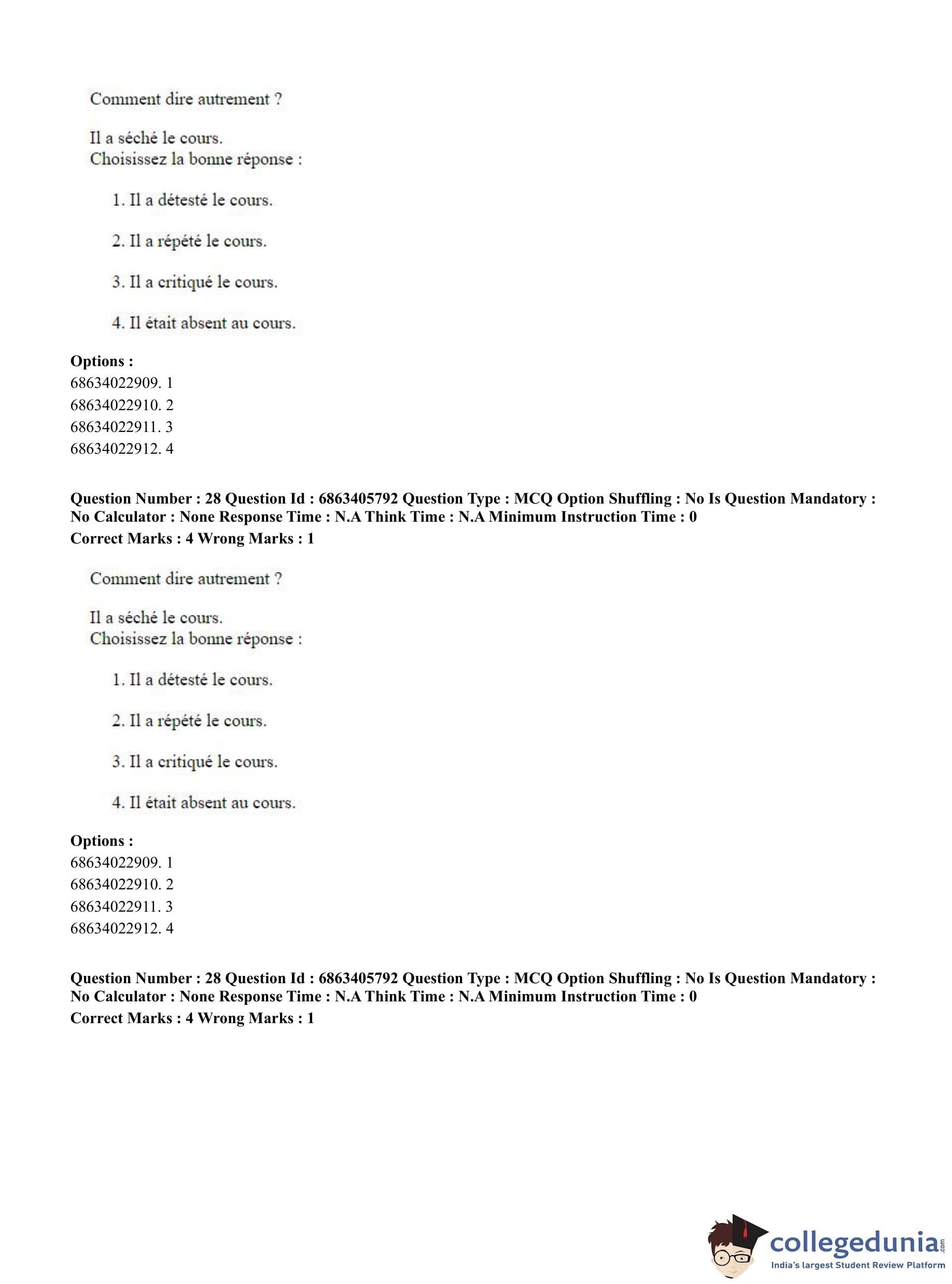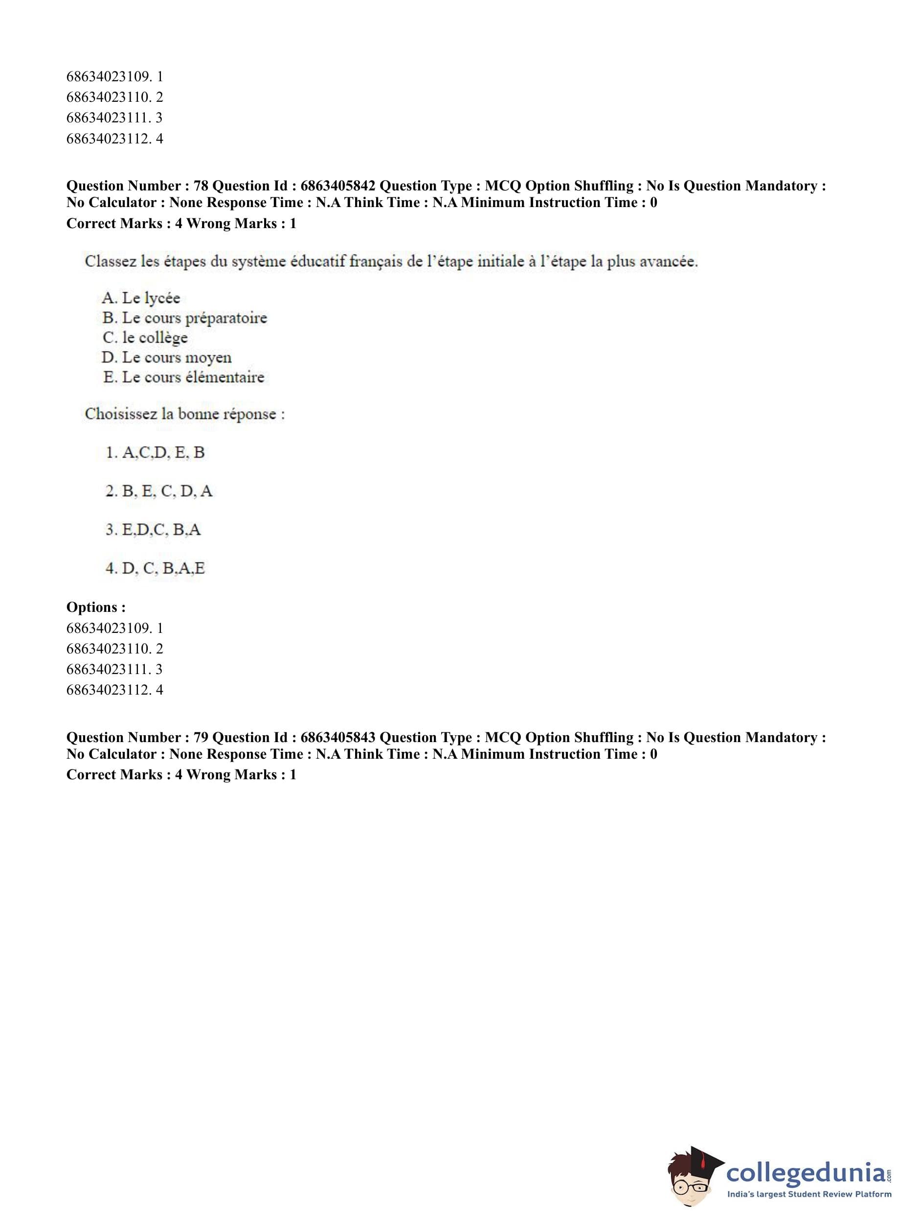 CUET PG 2023 French Question Paper in English (June 5 - Shift 3)