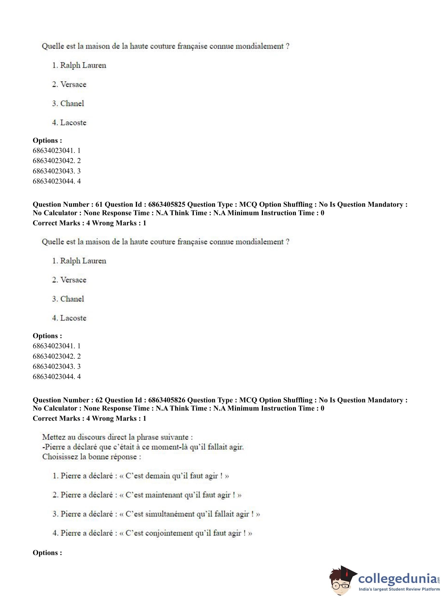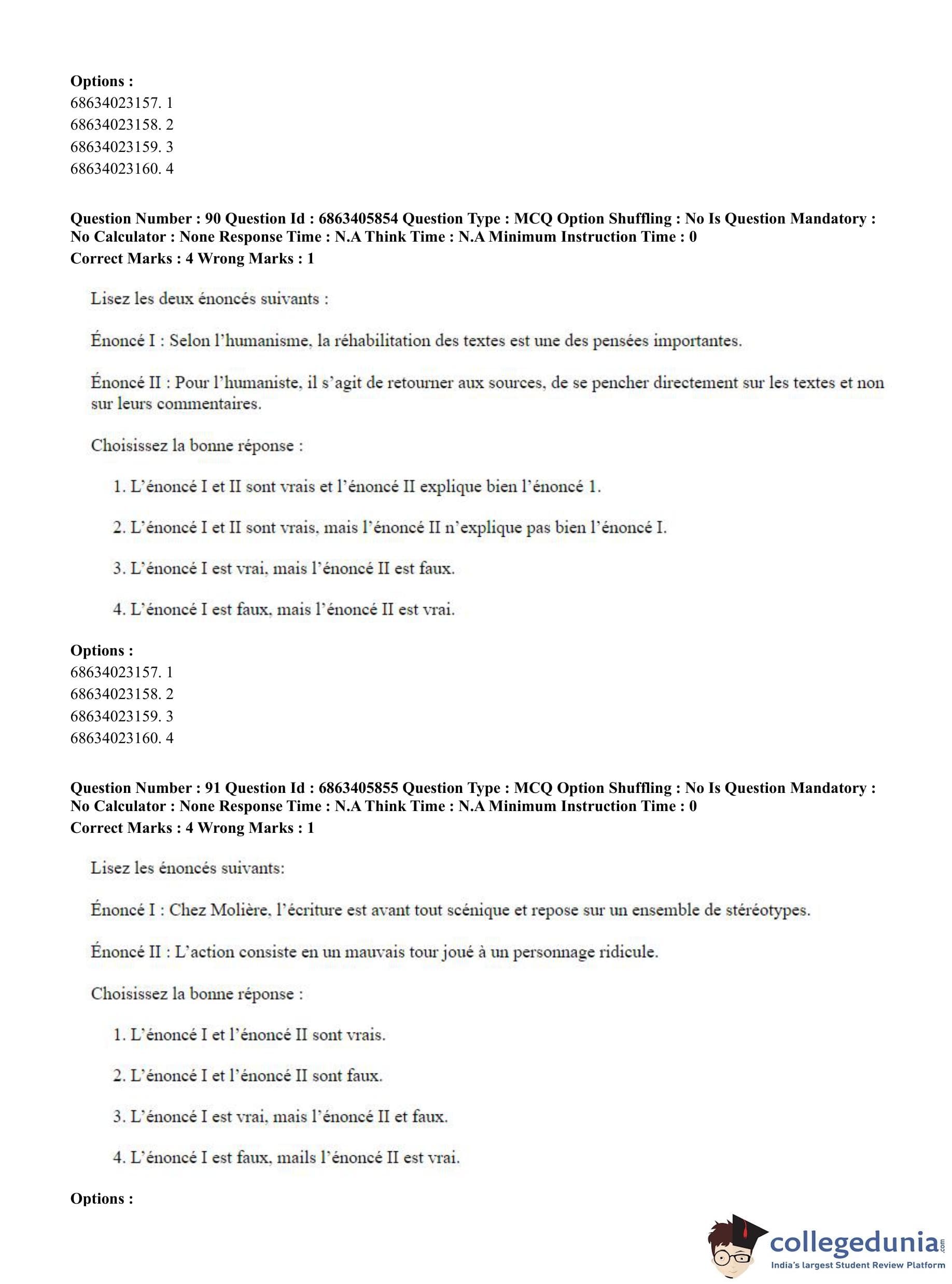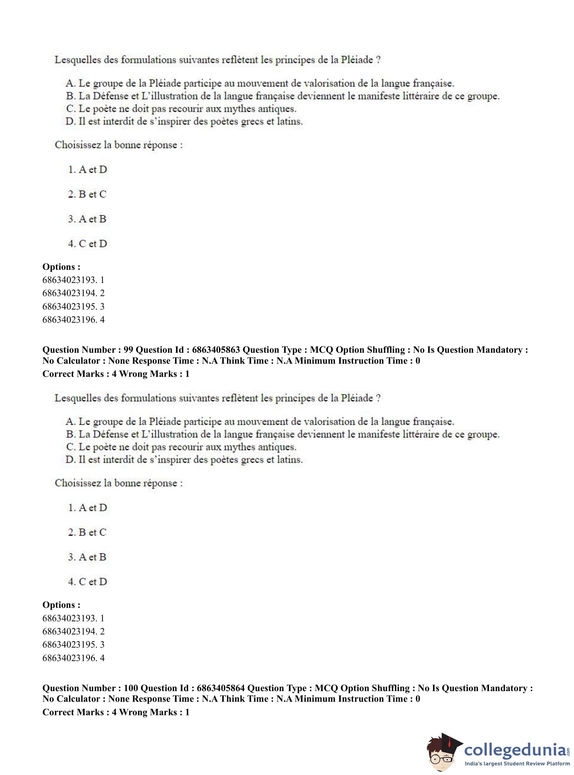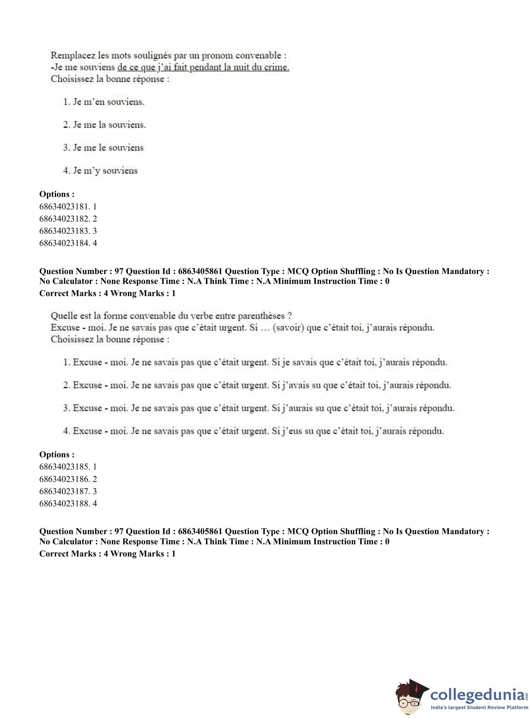 CUET PG 2023 French Question Paper with Answer Key in English PDF is available for download here. The exam was conducted by National Testing Agency (NTA) on June 5, 2023 in Shift 3. The question paper comprised a total of 100 questions divided into 2 sections.
