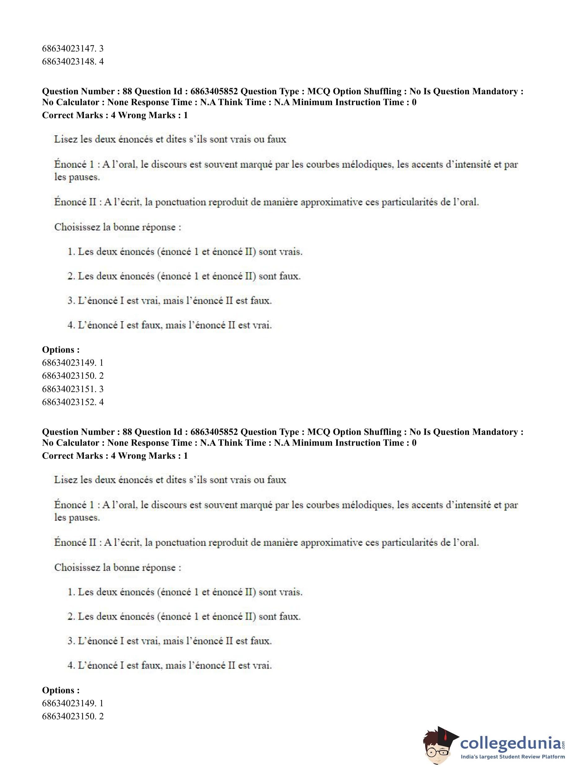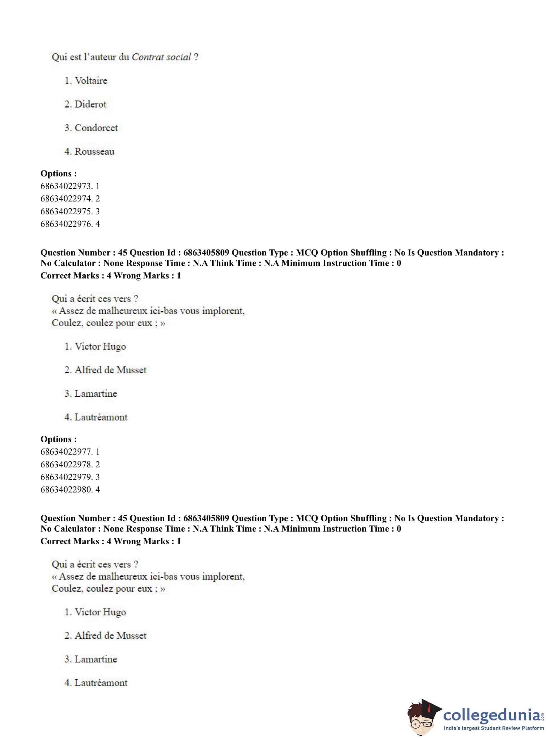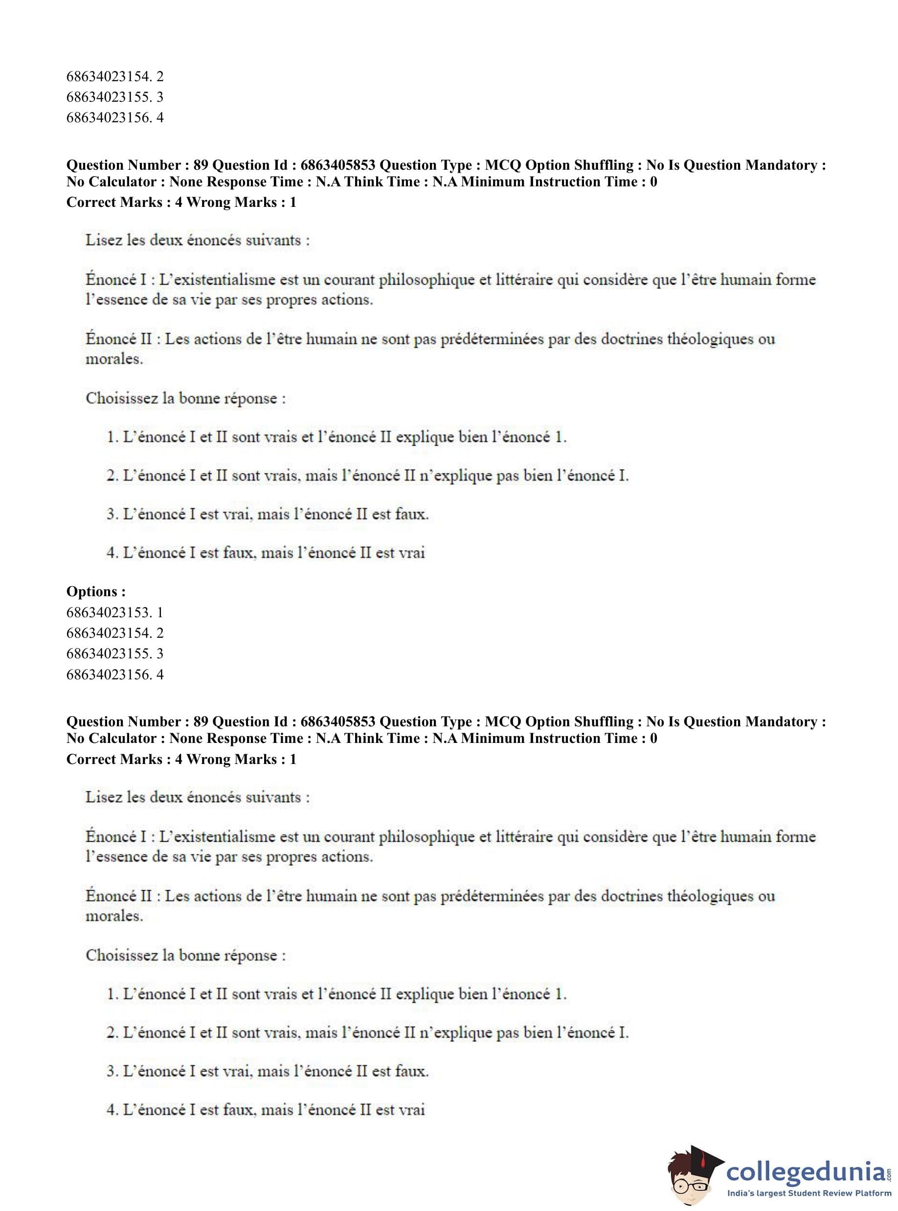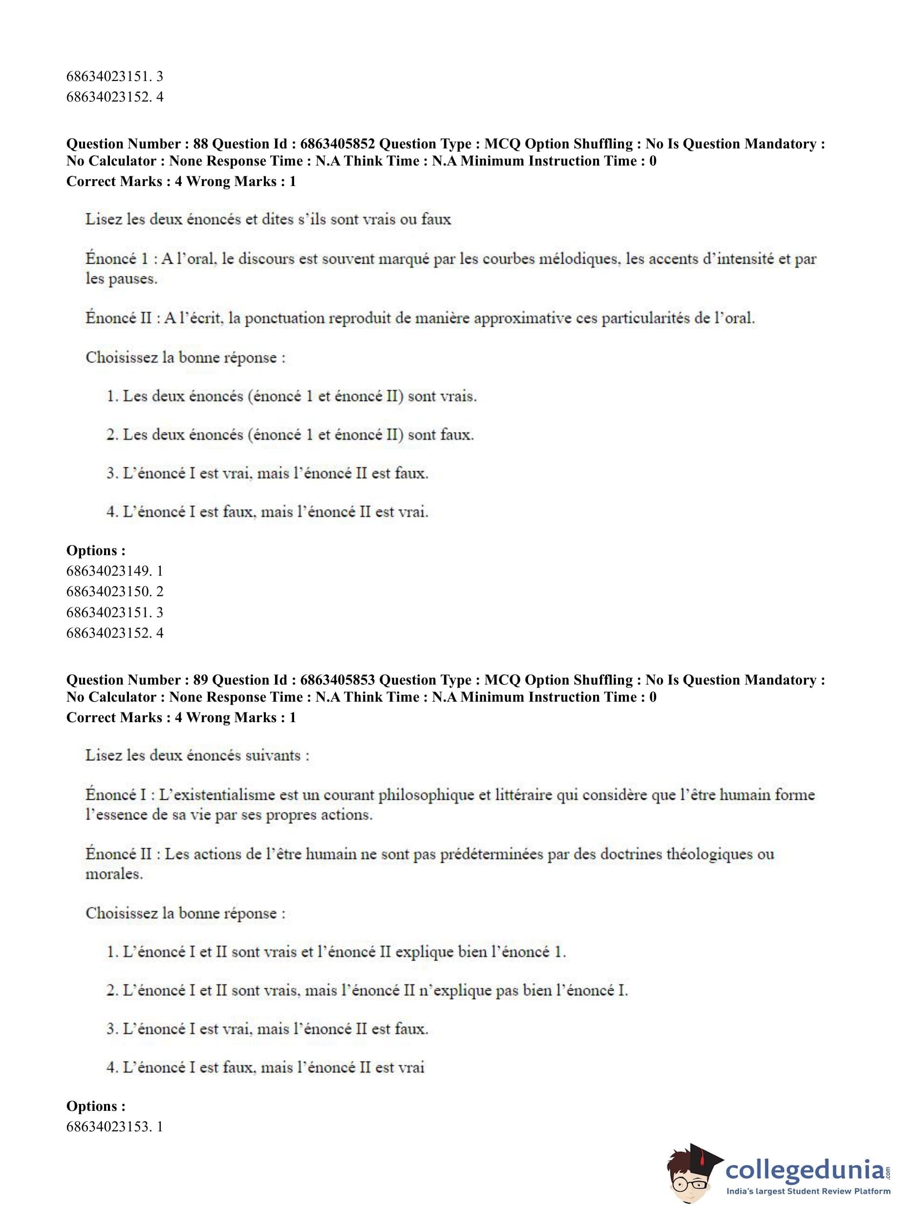 CUET PG 2023 French Question Paper with Answer Key in English PDF is available for download here. The exam was conducted by National Testing Agency (NTA) on June 5, 2023 in Shift 3. The question paper comprised a total of 100 questions divided into 2 sections.