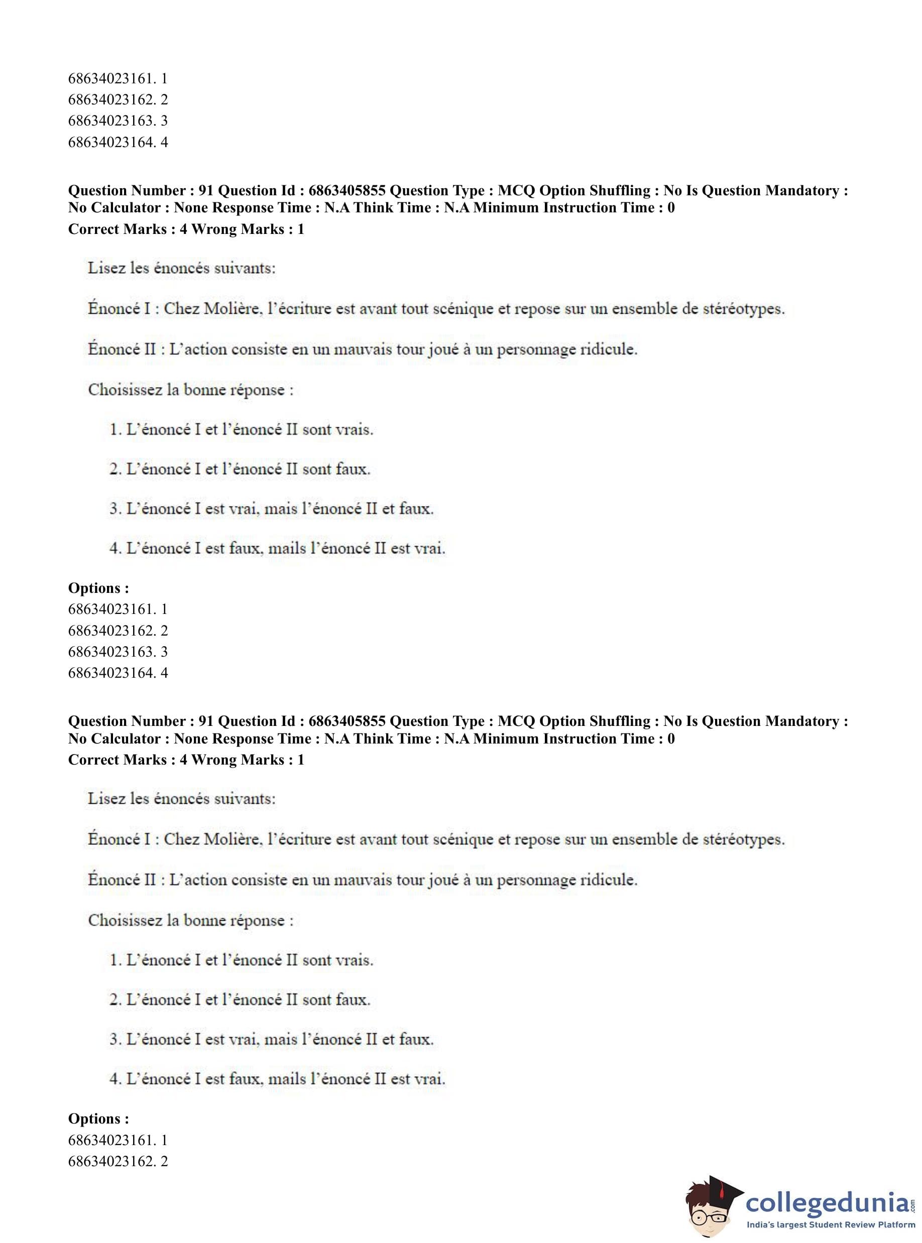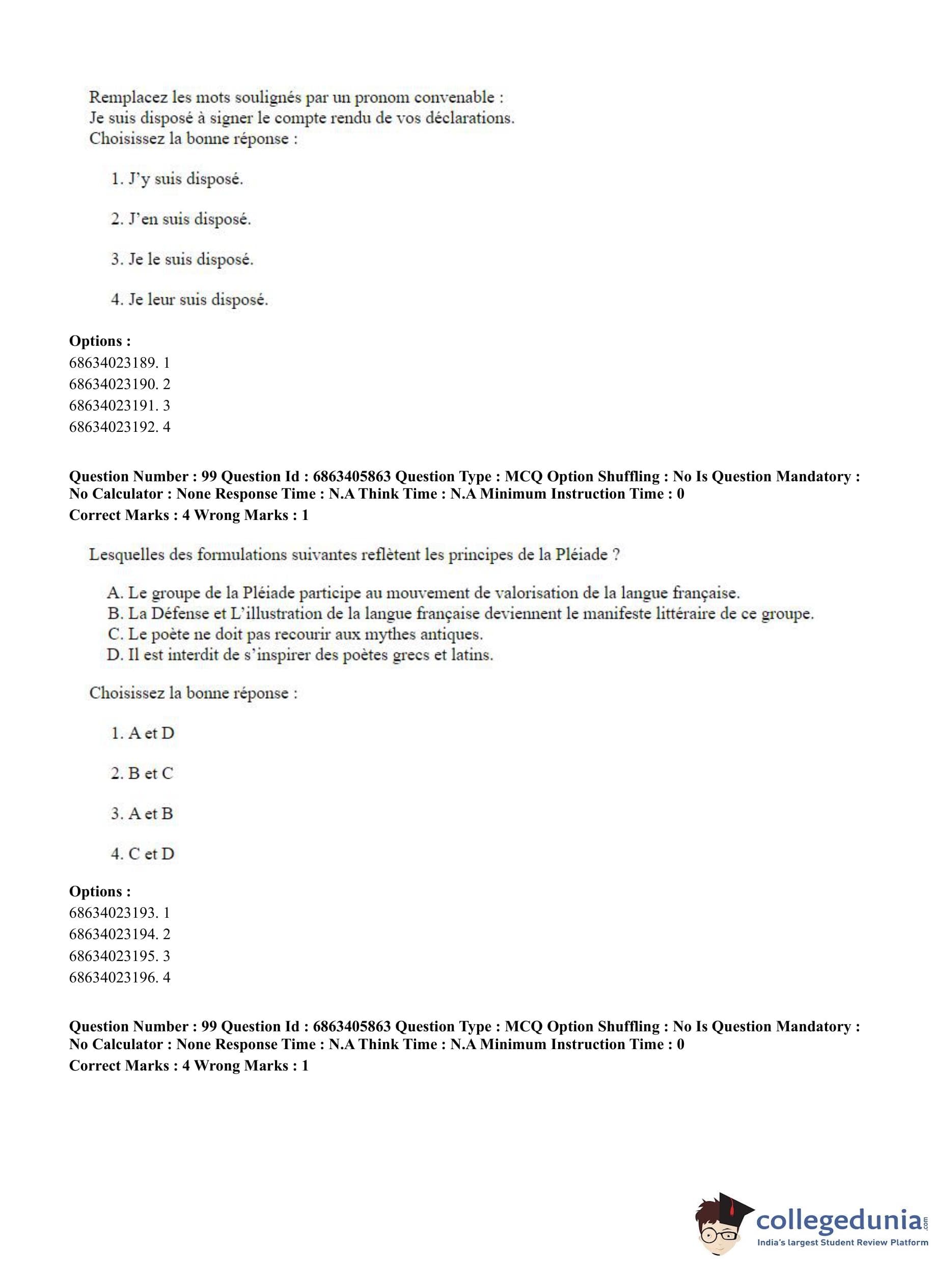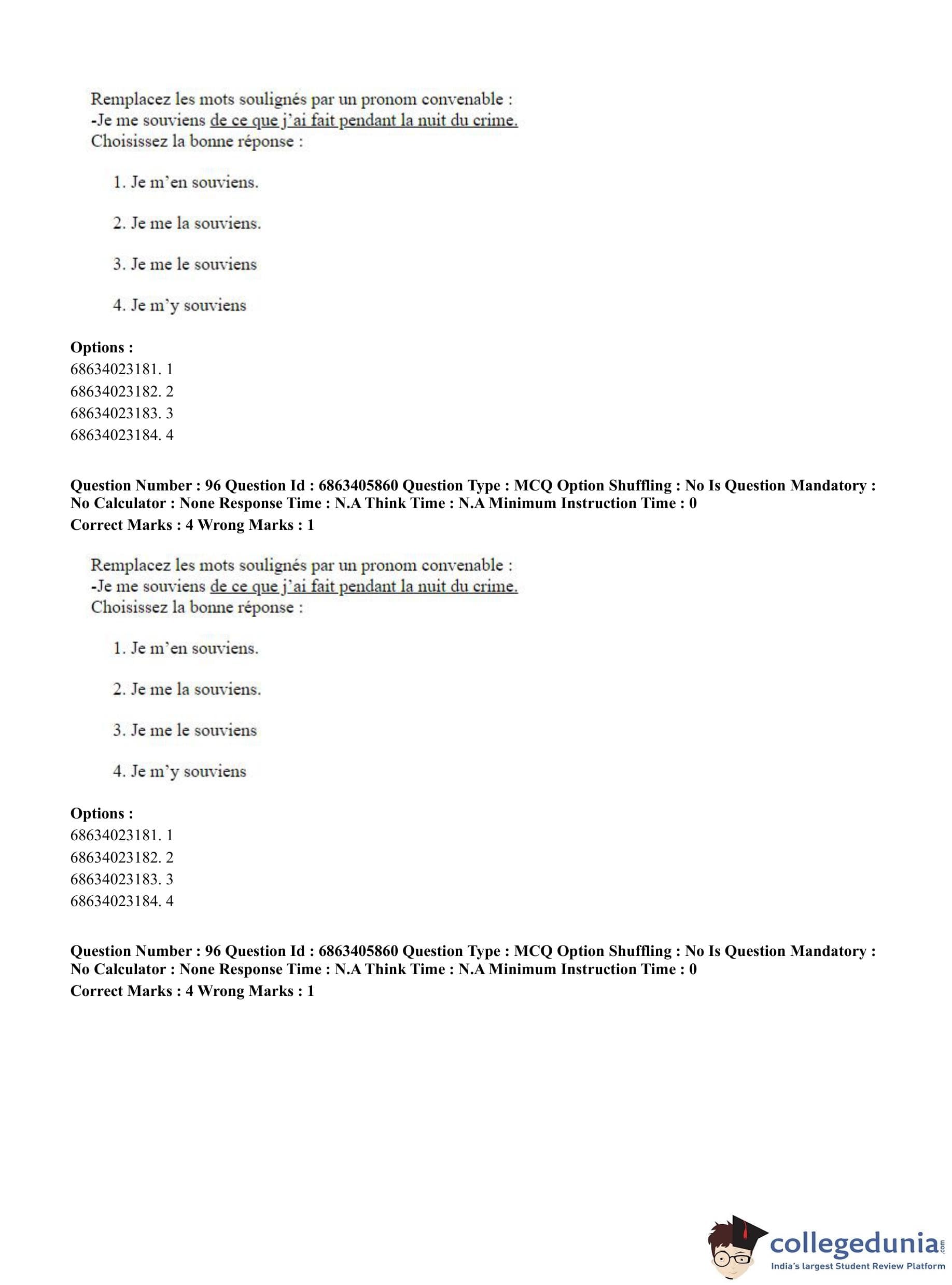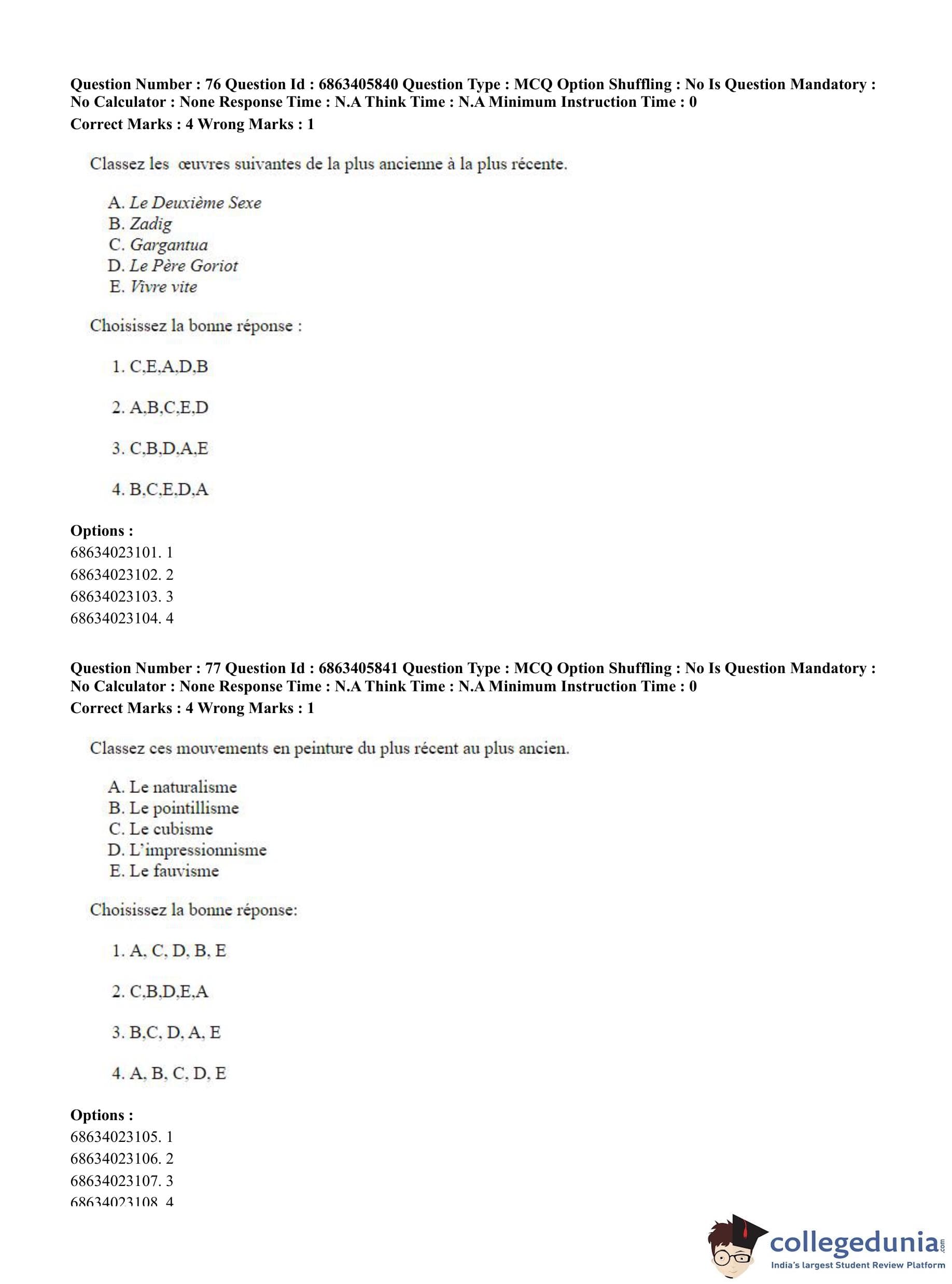 CUET PG 2023 French Question Paper with Answer Key in English PDF is available for download here. The exam was conducted by National Testing Agency (NTA) on June 5, 2023 in Shift 3. The question paper comprised a total of 100 questions divided into 2 sections.