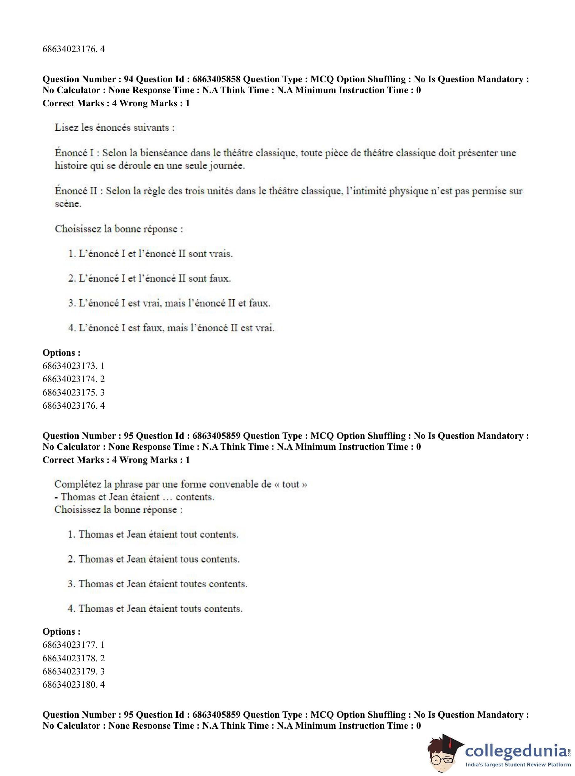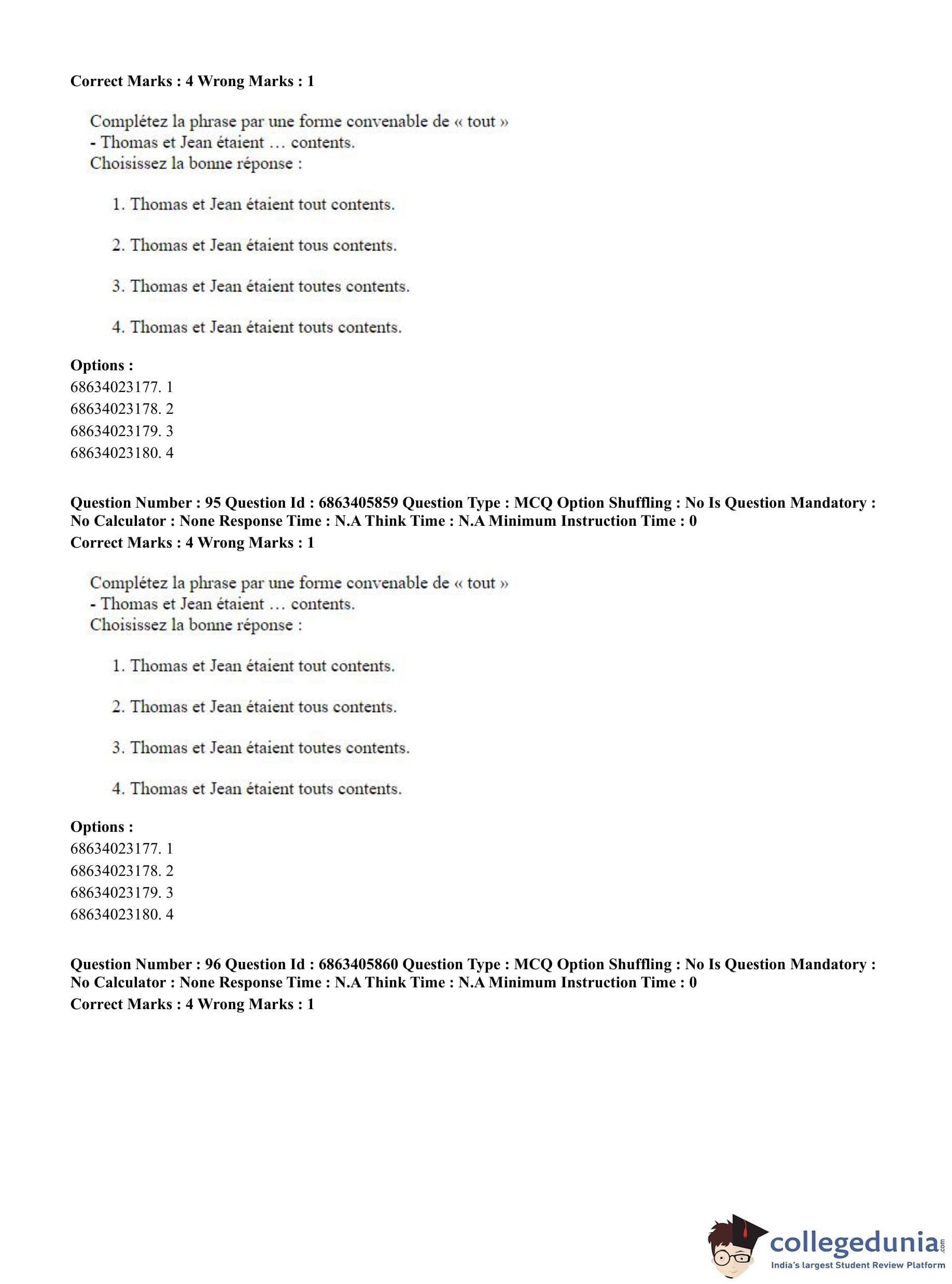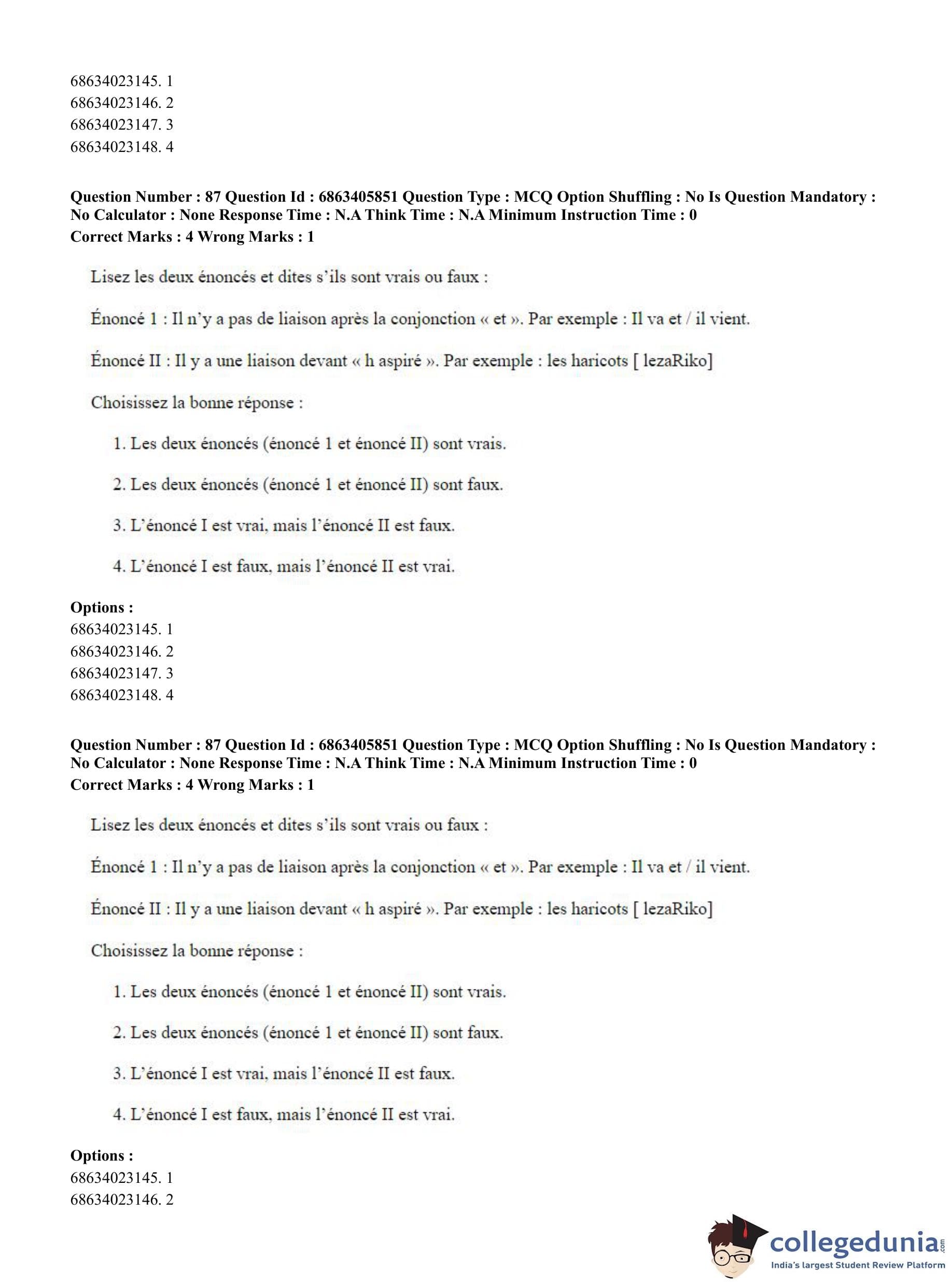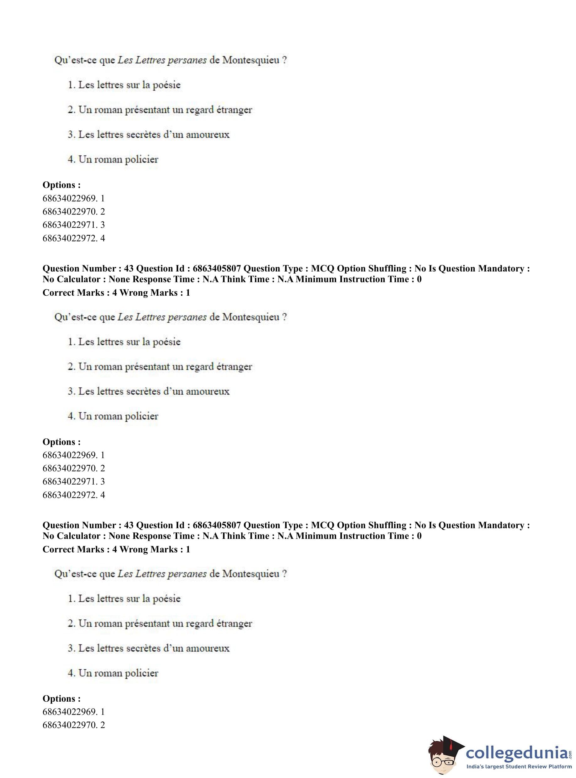 CUET PG 2023 French Question Paper with Answer Key in English PDF is available for download here. The exam was conducted by National Testing Agency (NTA) on June 5, 2023 in Shift 3. The question paper comprised a total of 100 questions divided into 2 sections.