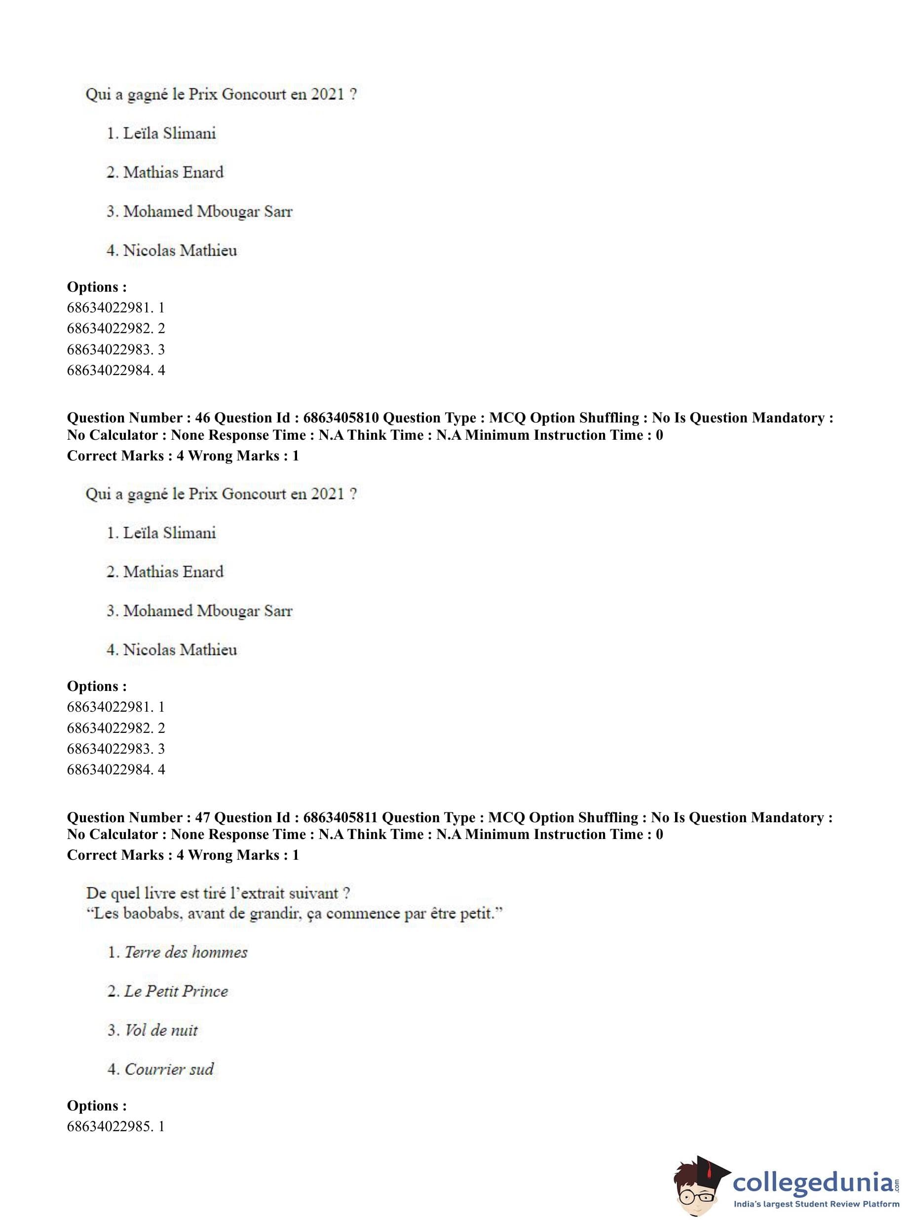 | CUET PG French Question Paper 2023 PDF | CUET PG French Answer Key 2023 PDF |