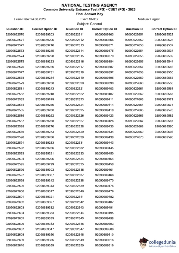 | CUET PG General Question Paper 2023 PDF | CUET PG General Answer Key 2023 PDF |