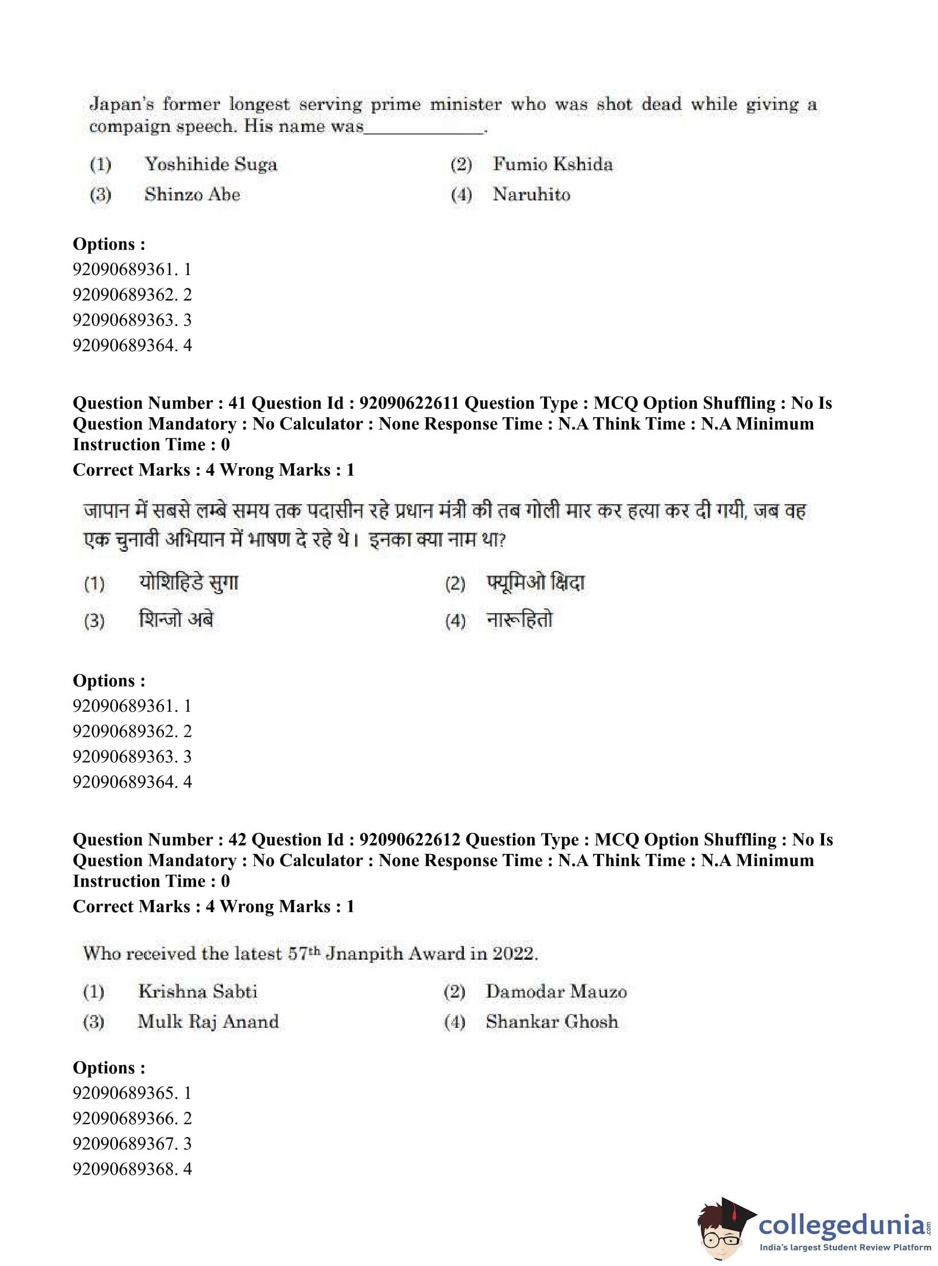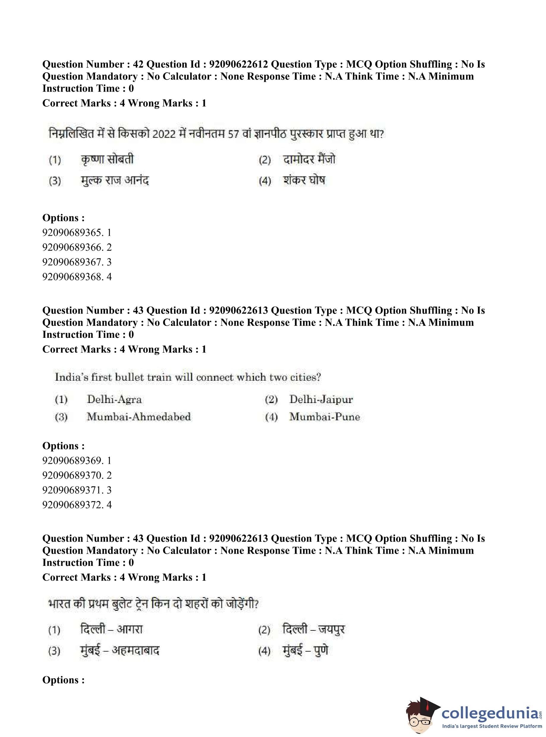 CUET PG 2023 General Question Paper in English (June 24 - Shift 2)