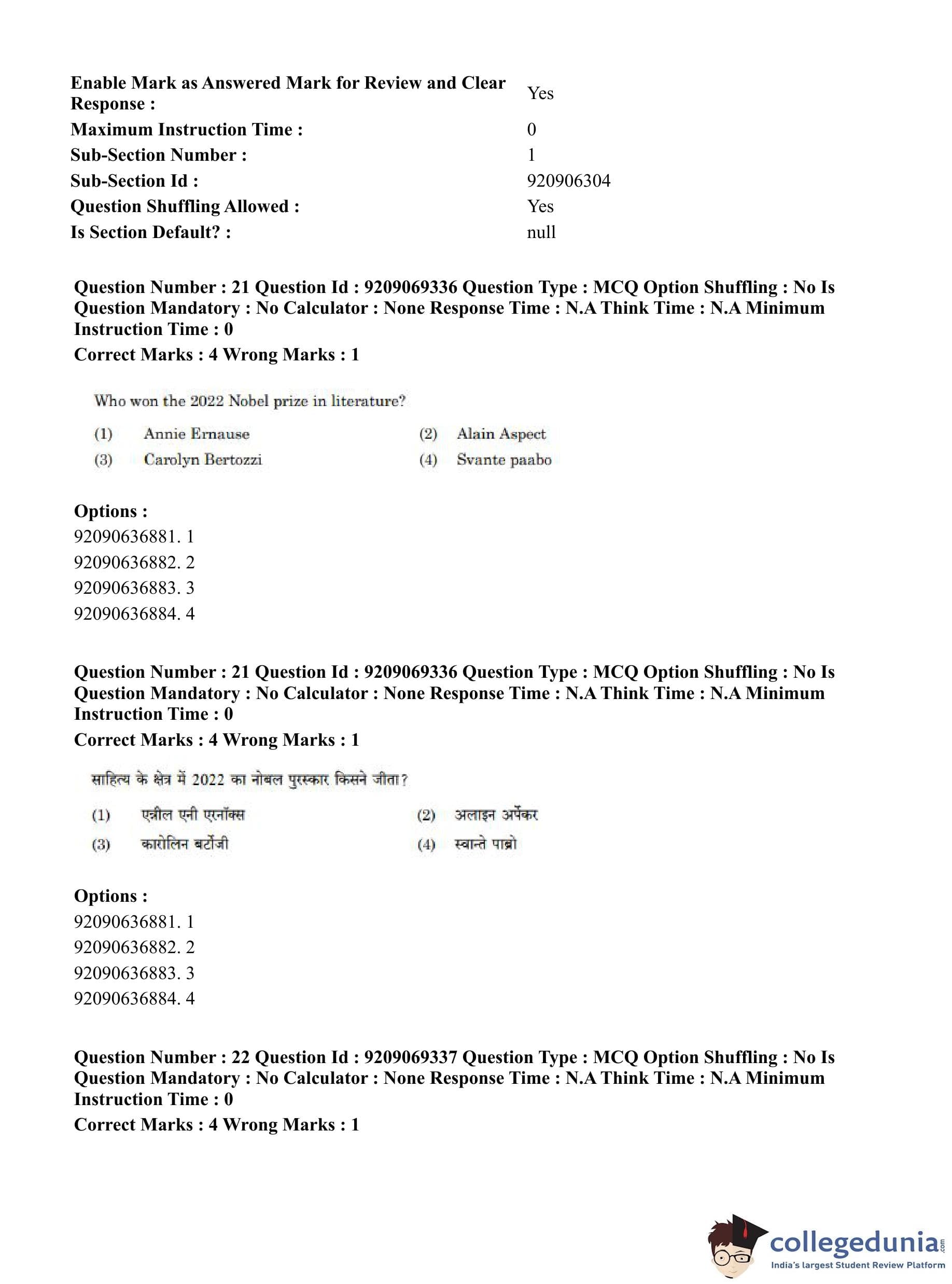 CUET PG 2023 General Question Paper in English (June 8 - Shift 3)