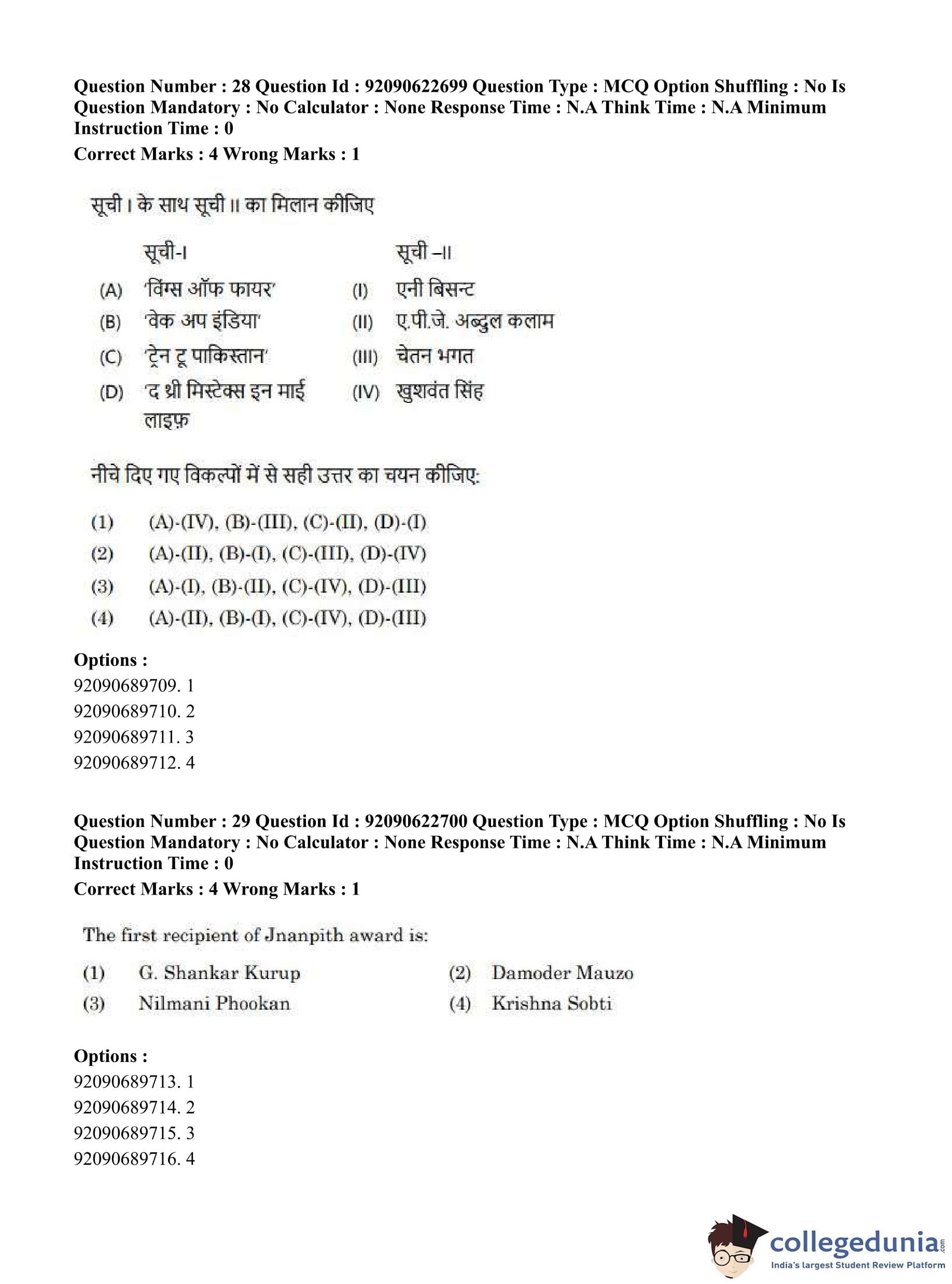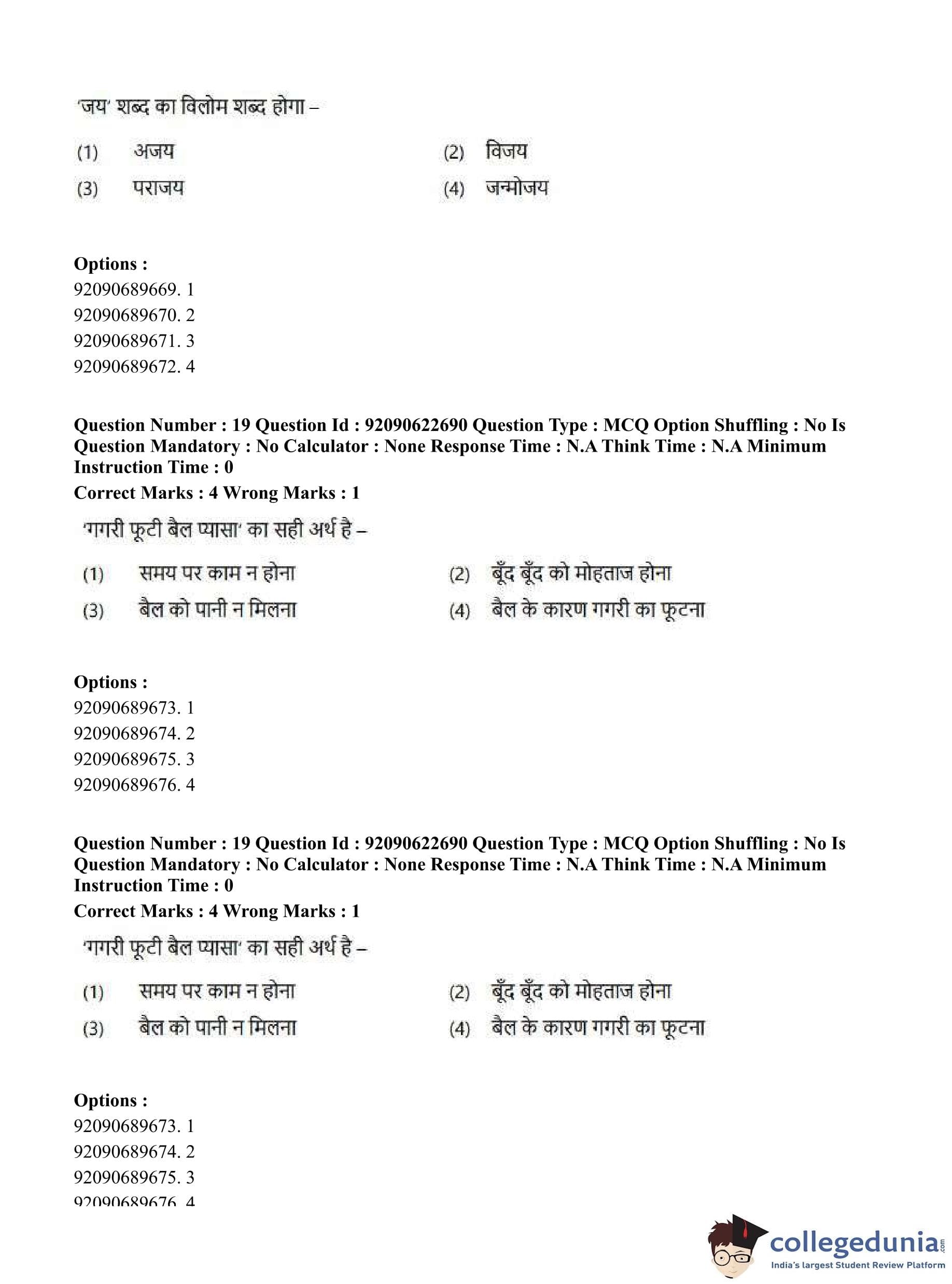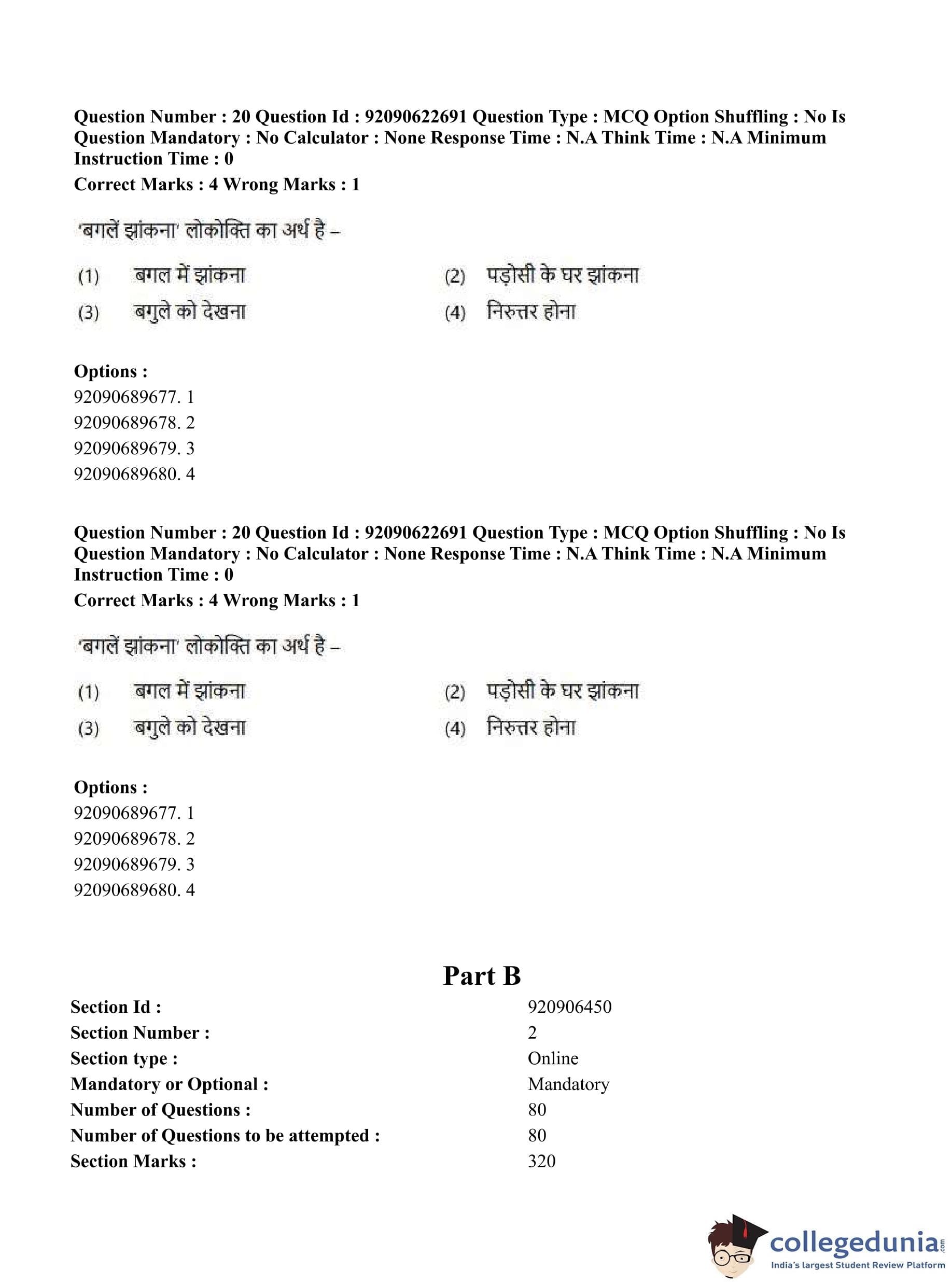 CUET PG 2023 General Question Paper in Hindi (June 24 - Shift 2)