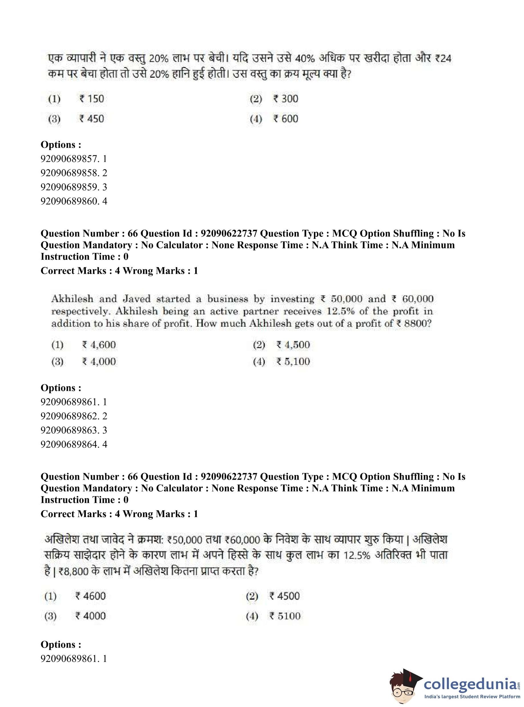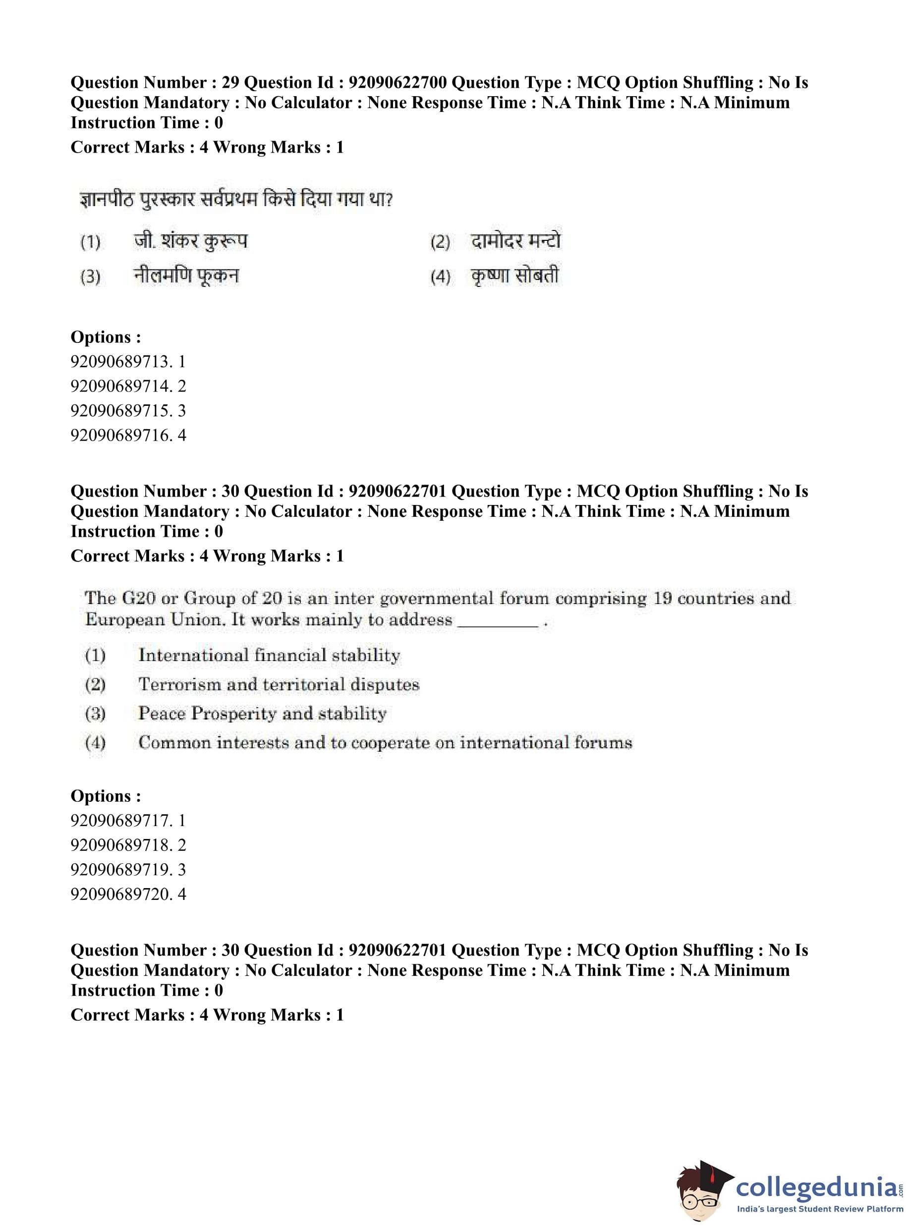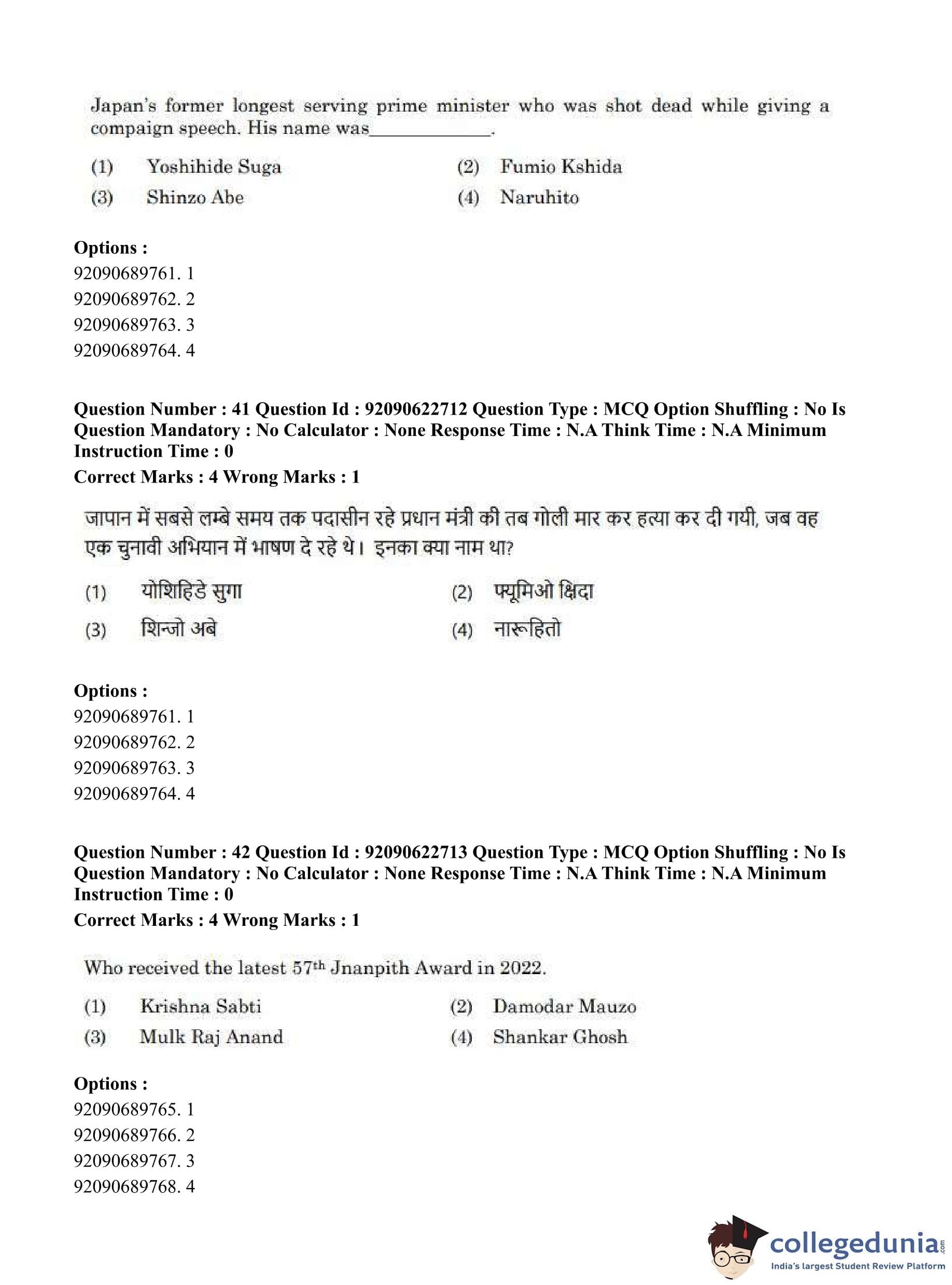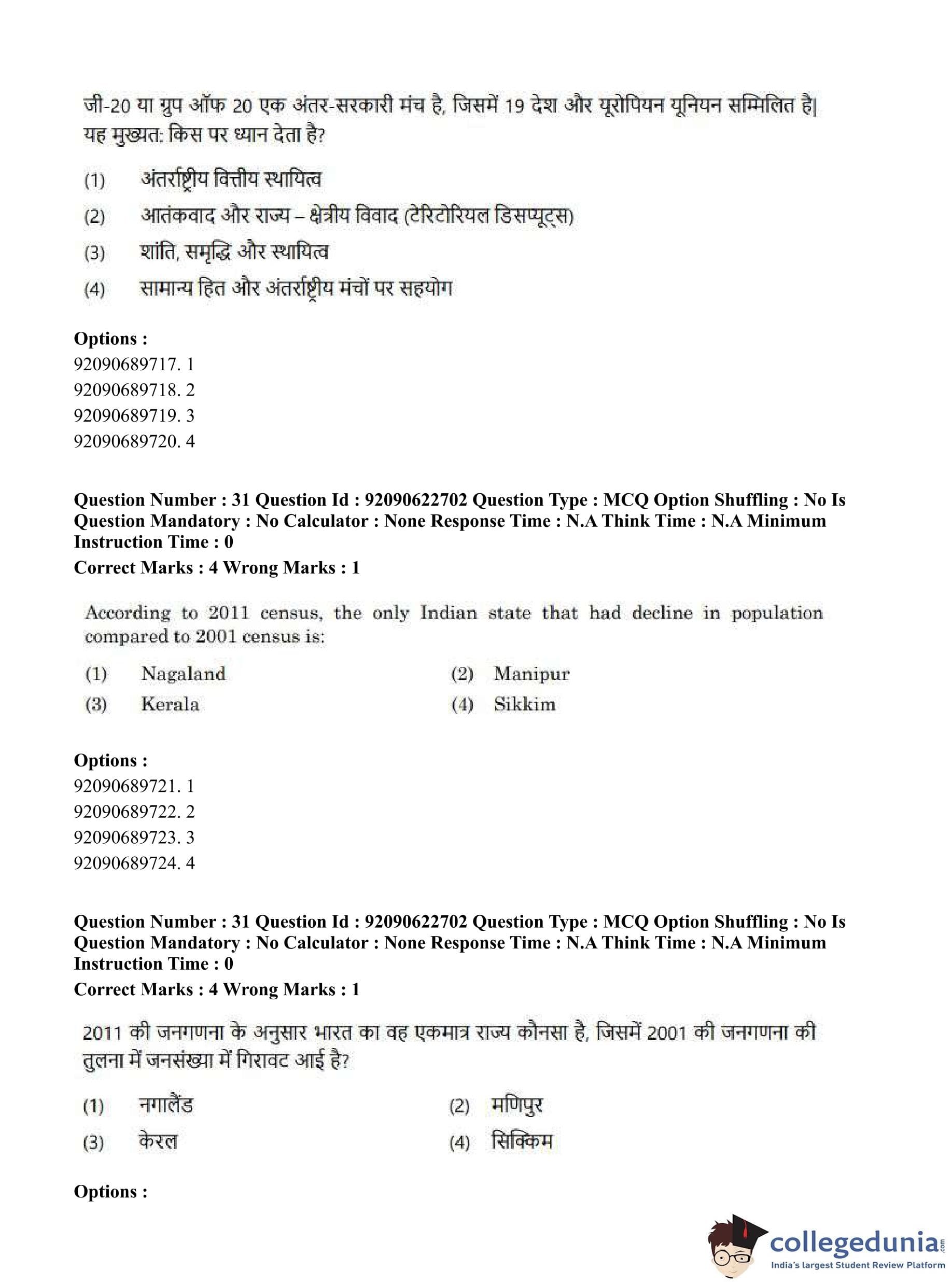 CUET PG 2023 General Question Paper in Hindi (June 24 - Shift 2)