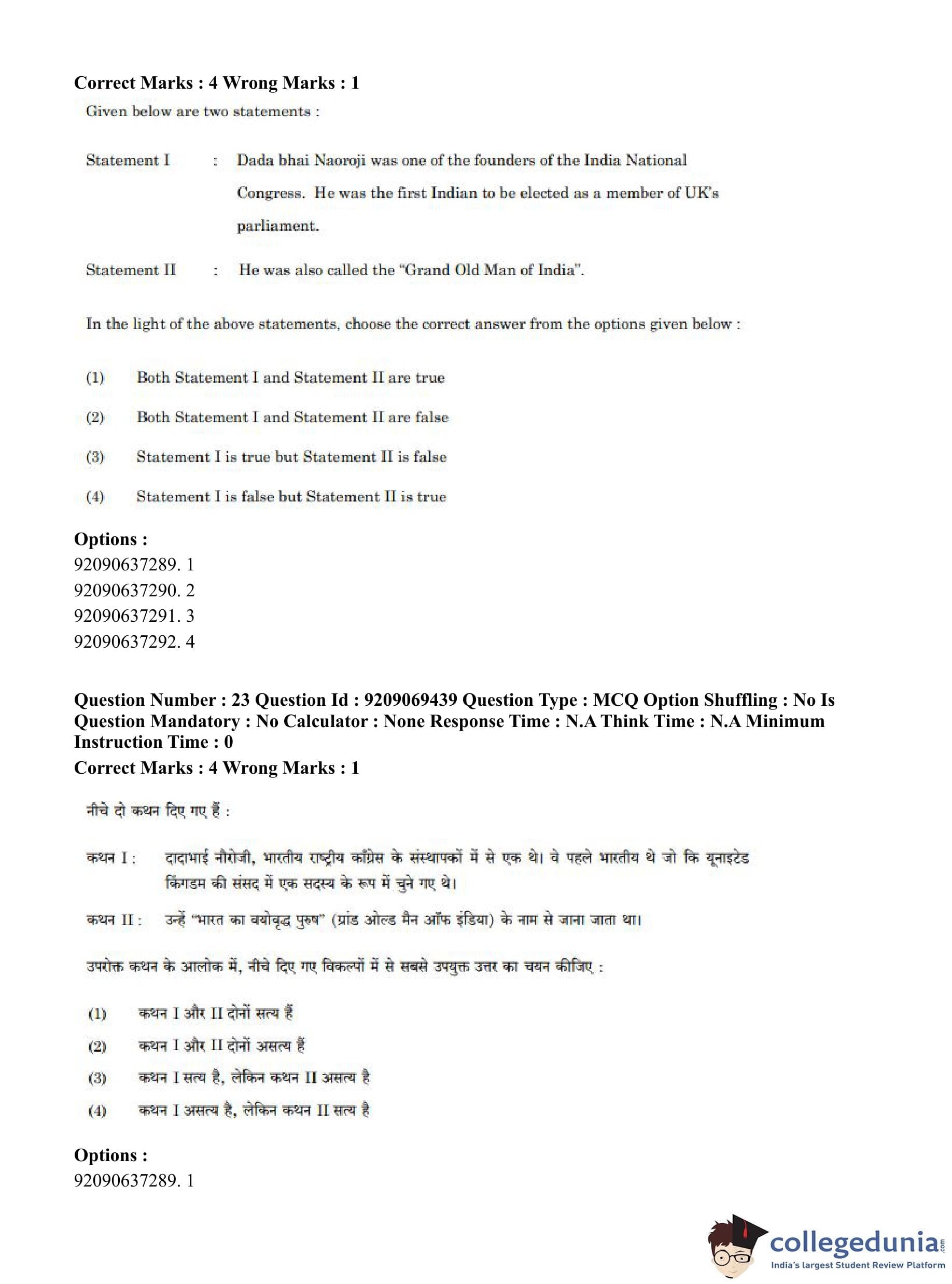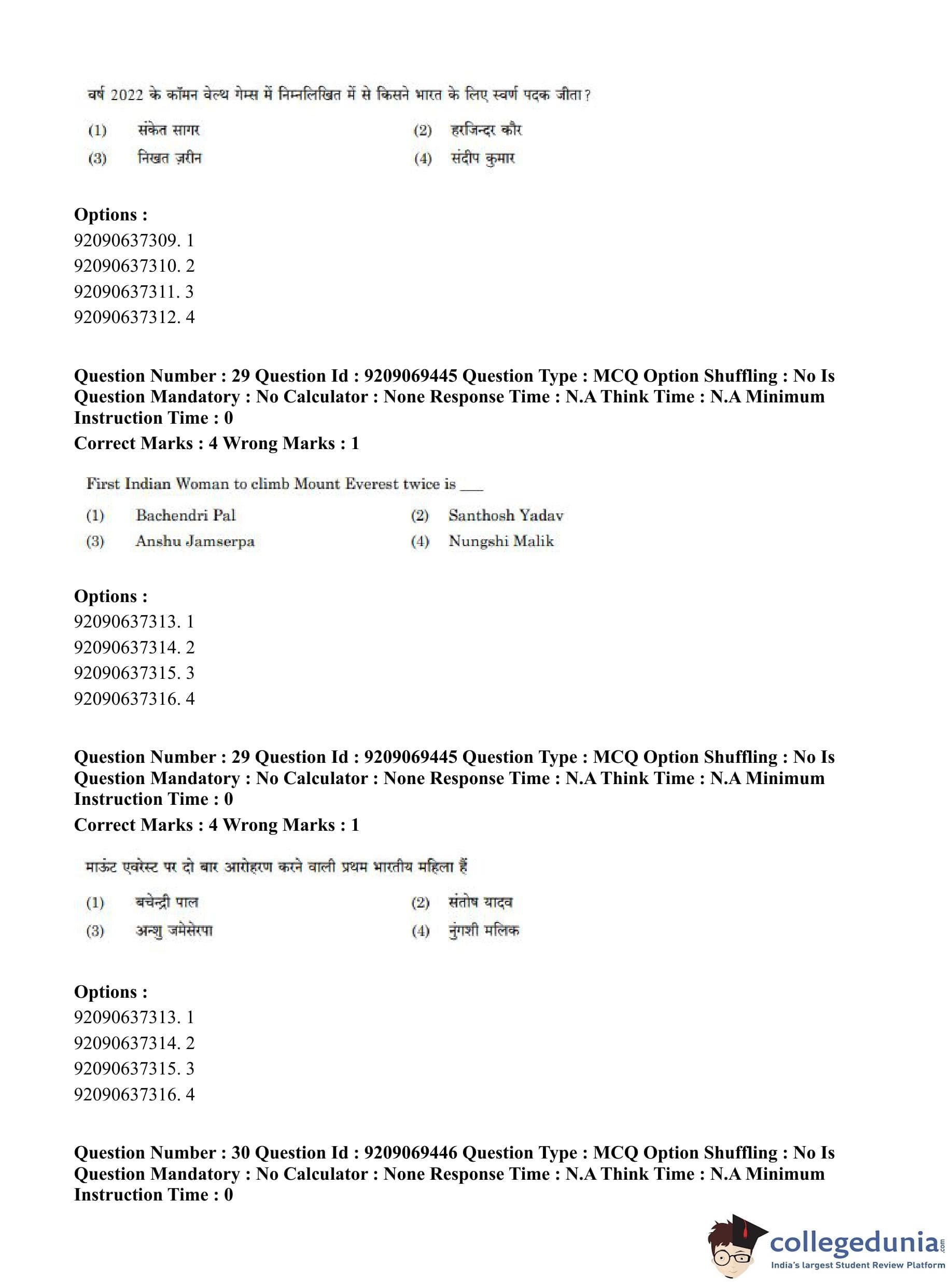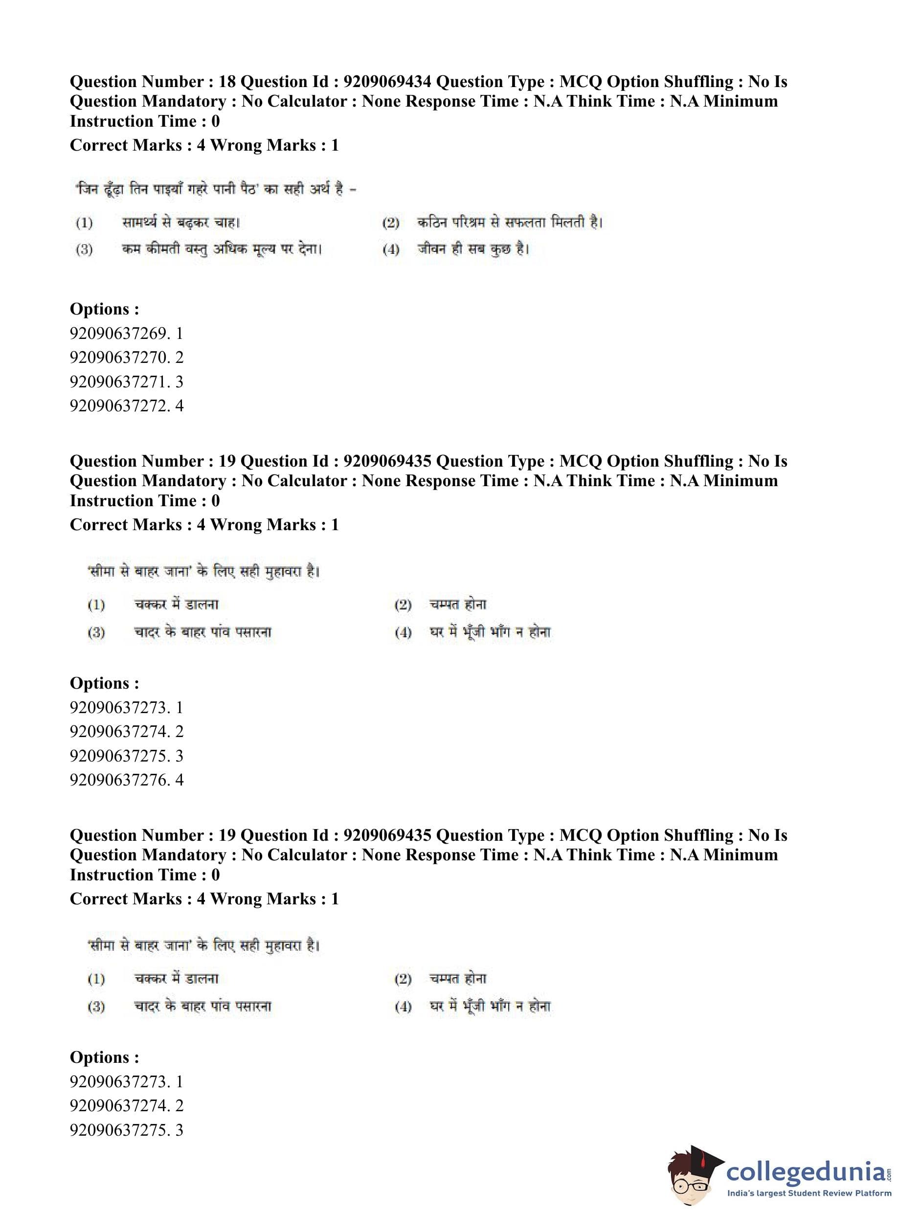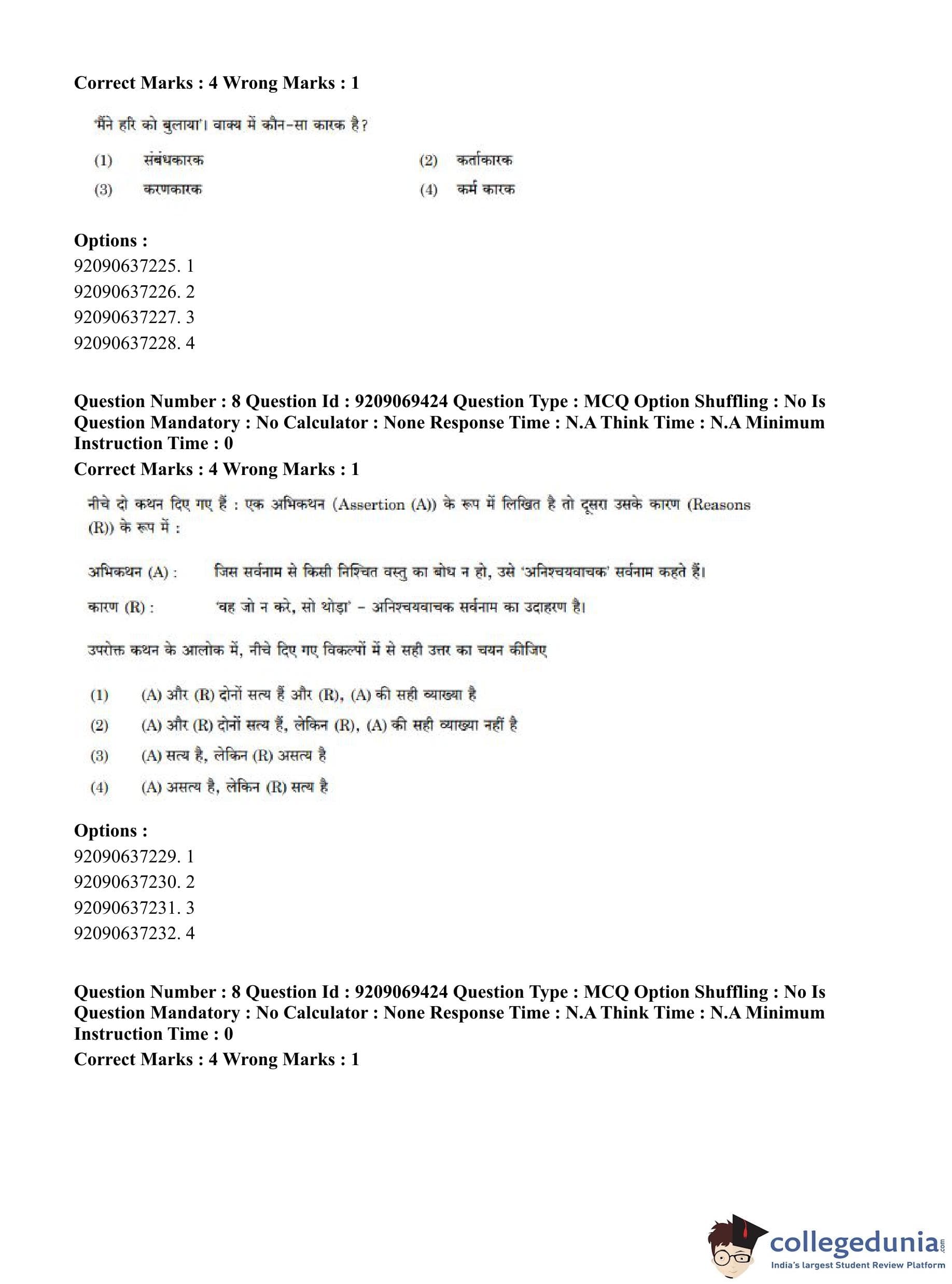 CUET PG 2023 General Question Paper in Hindi (June 8 - Shift 3)