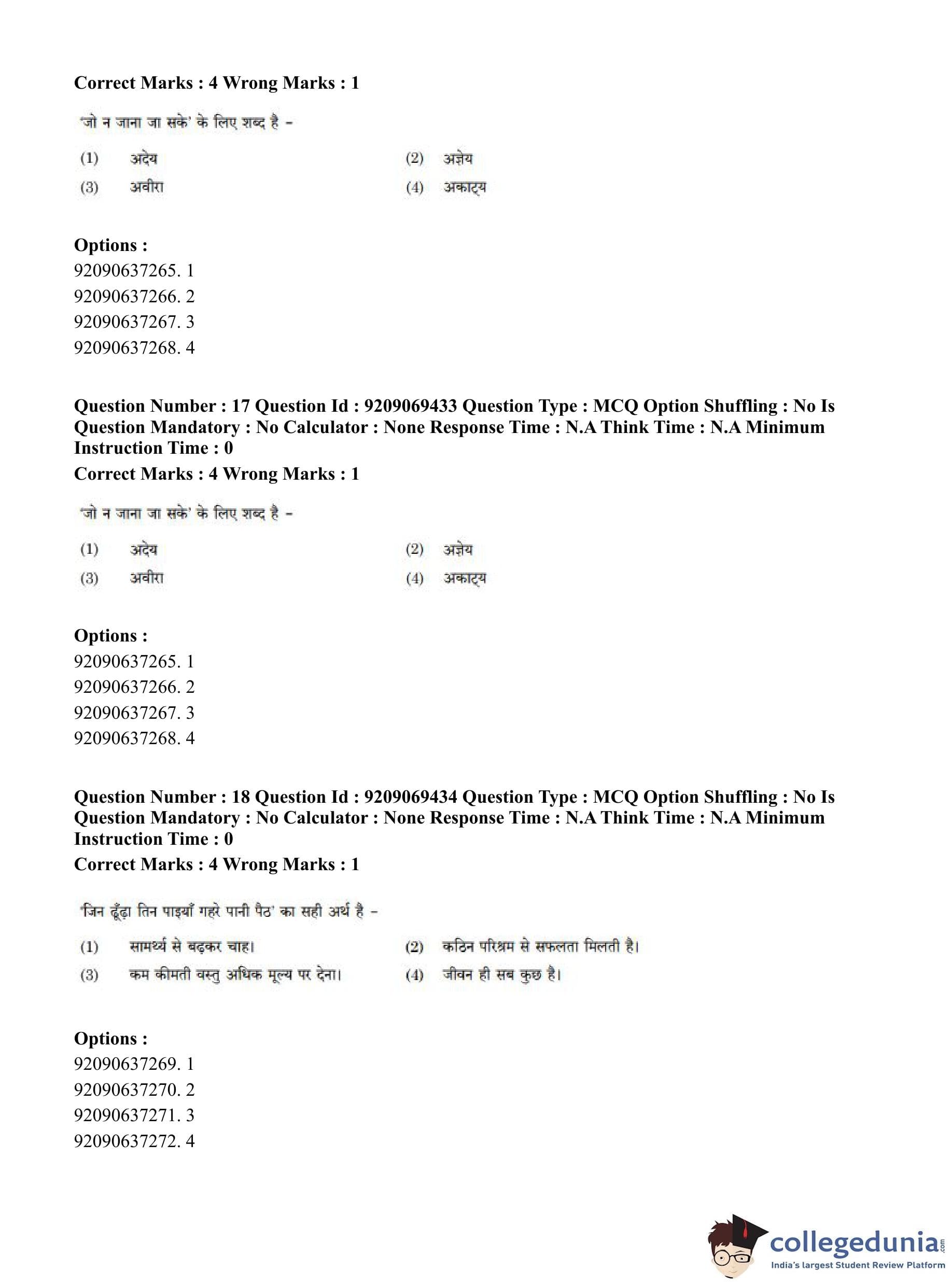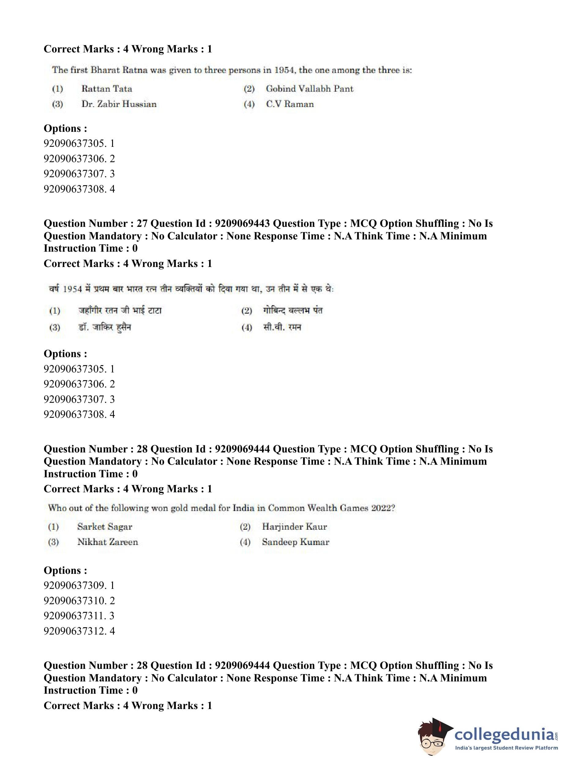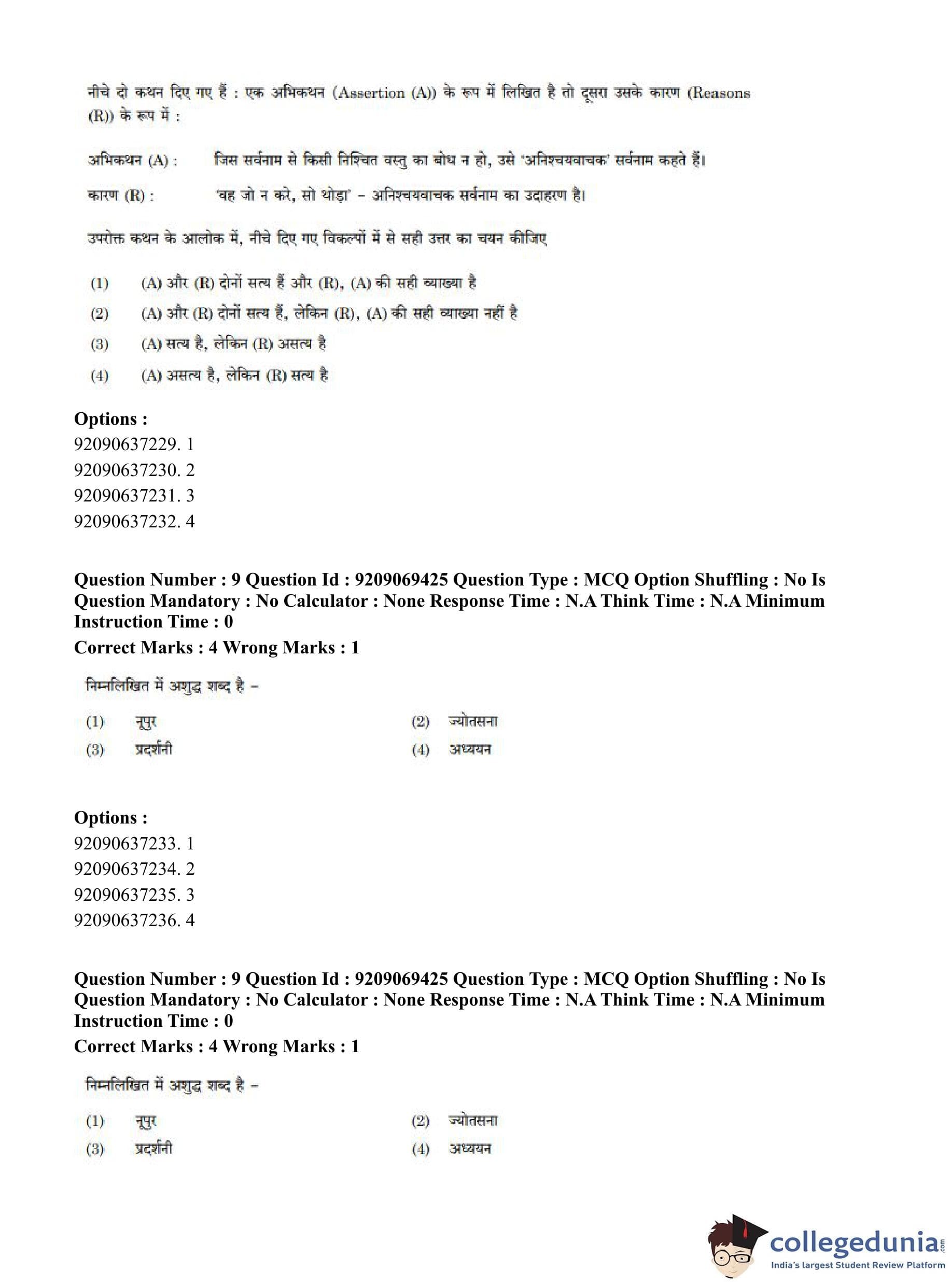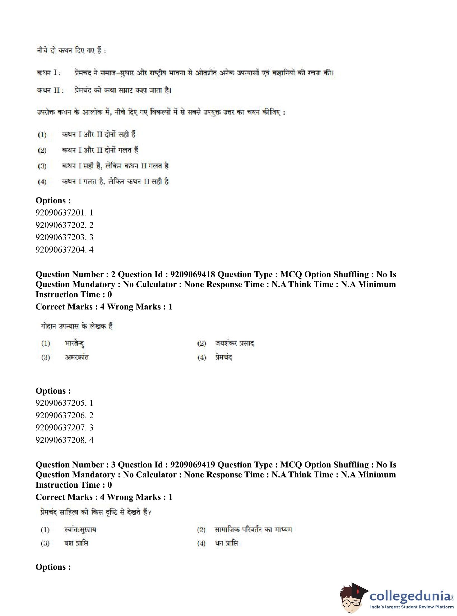 CUET PG 2023 General Question Paper in Hindi (June 8 - Shift 3)