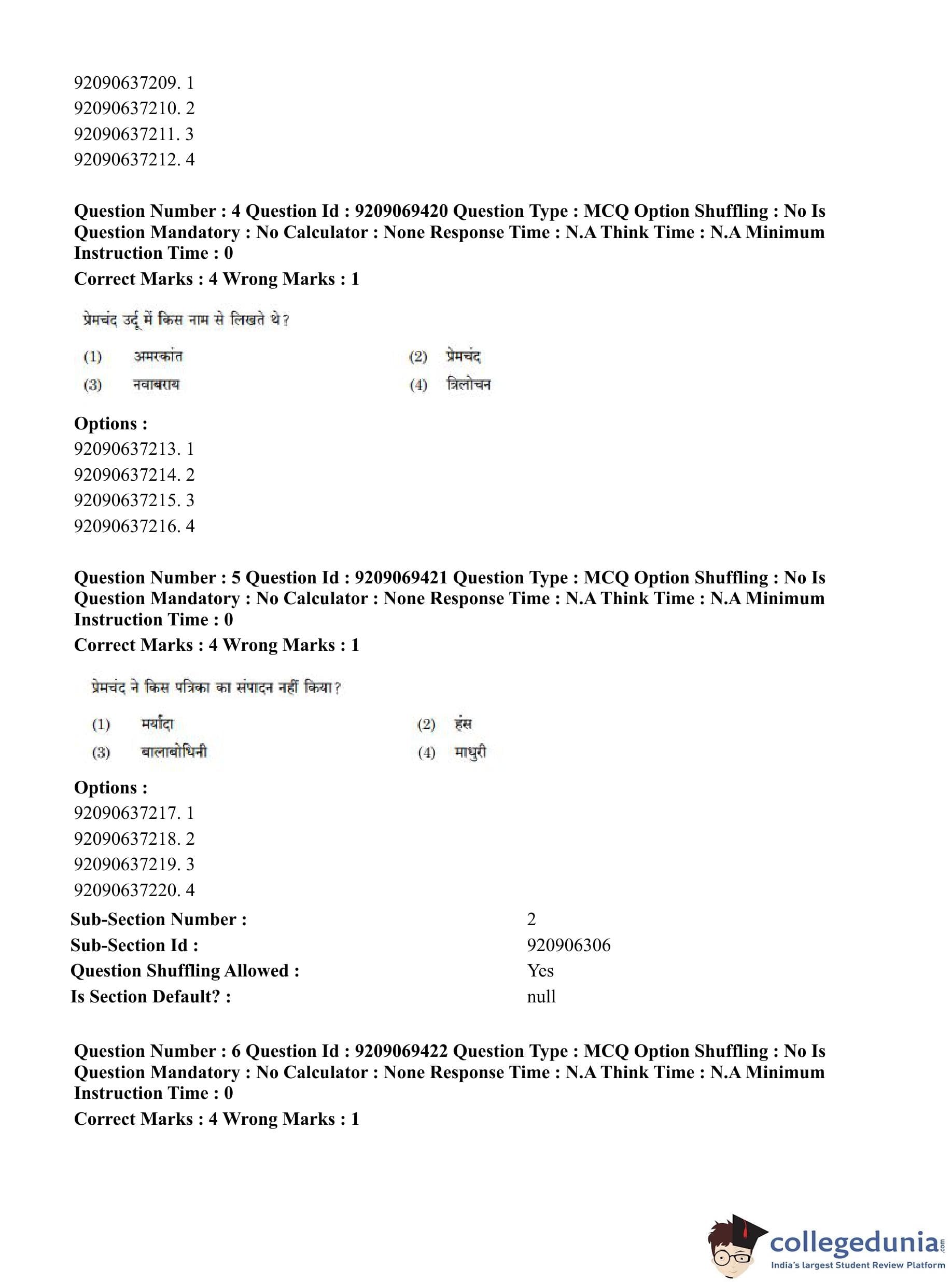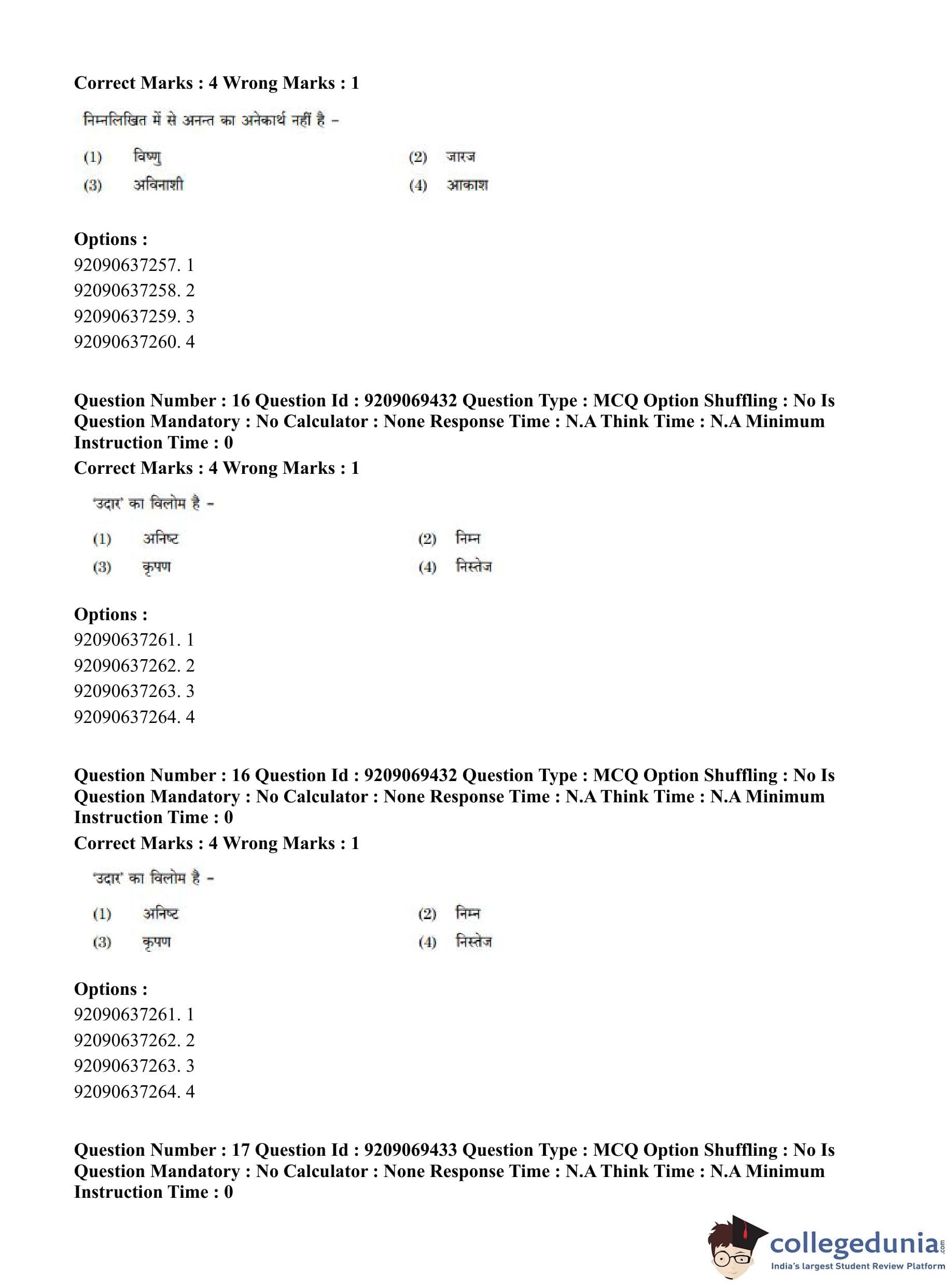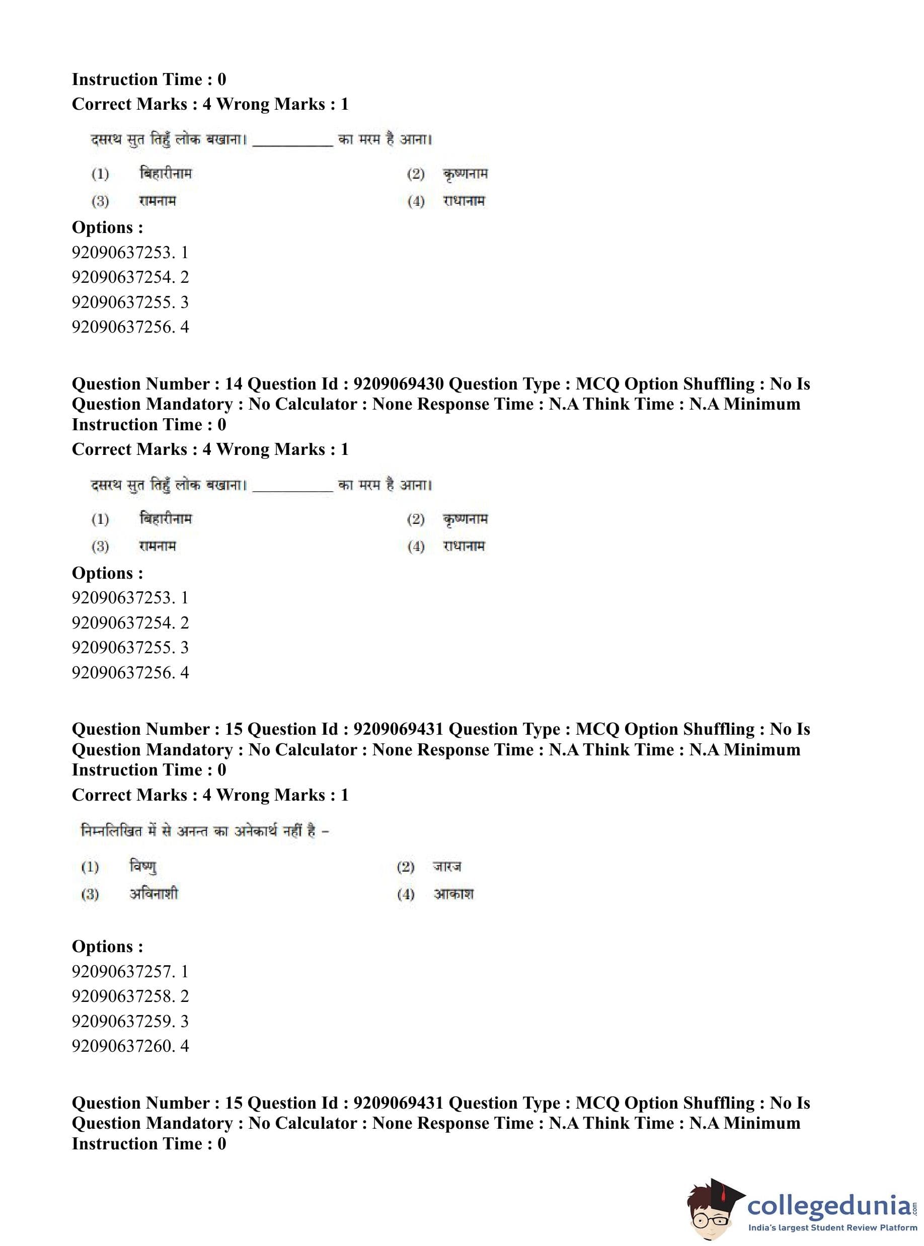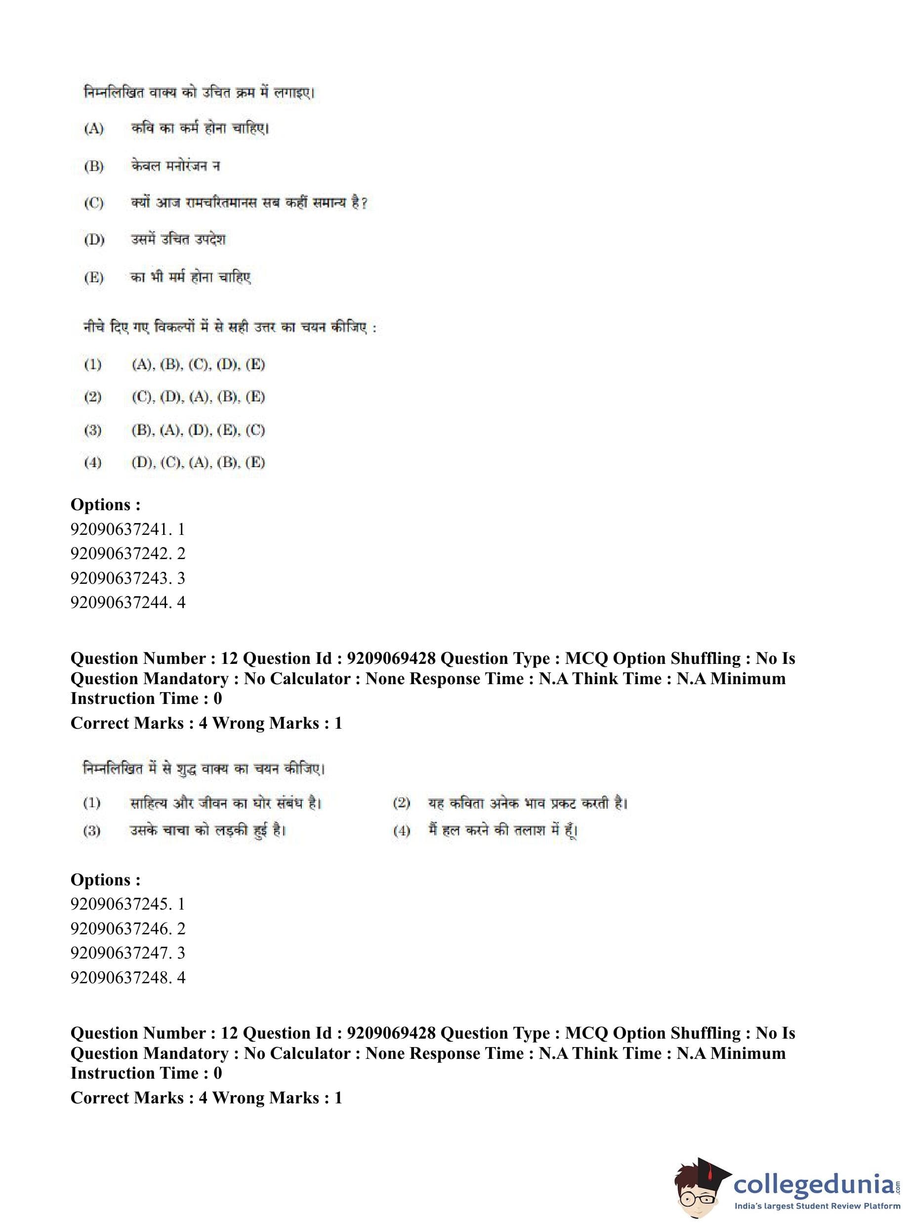 CUET PG 2023 General Question Paper in Hindi (June 8 - Shift 3)