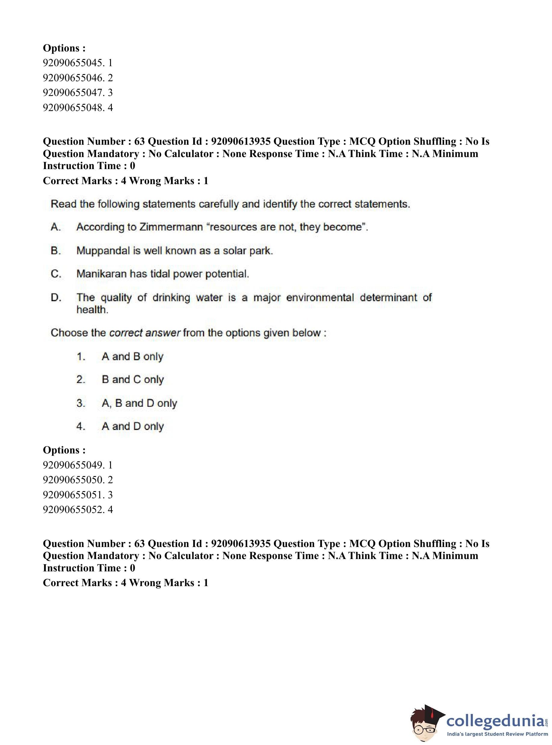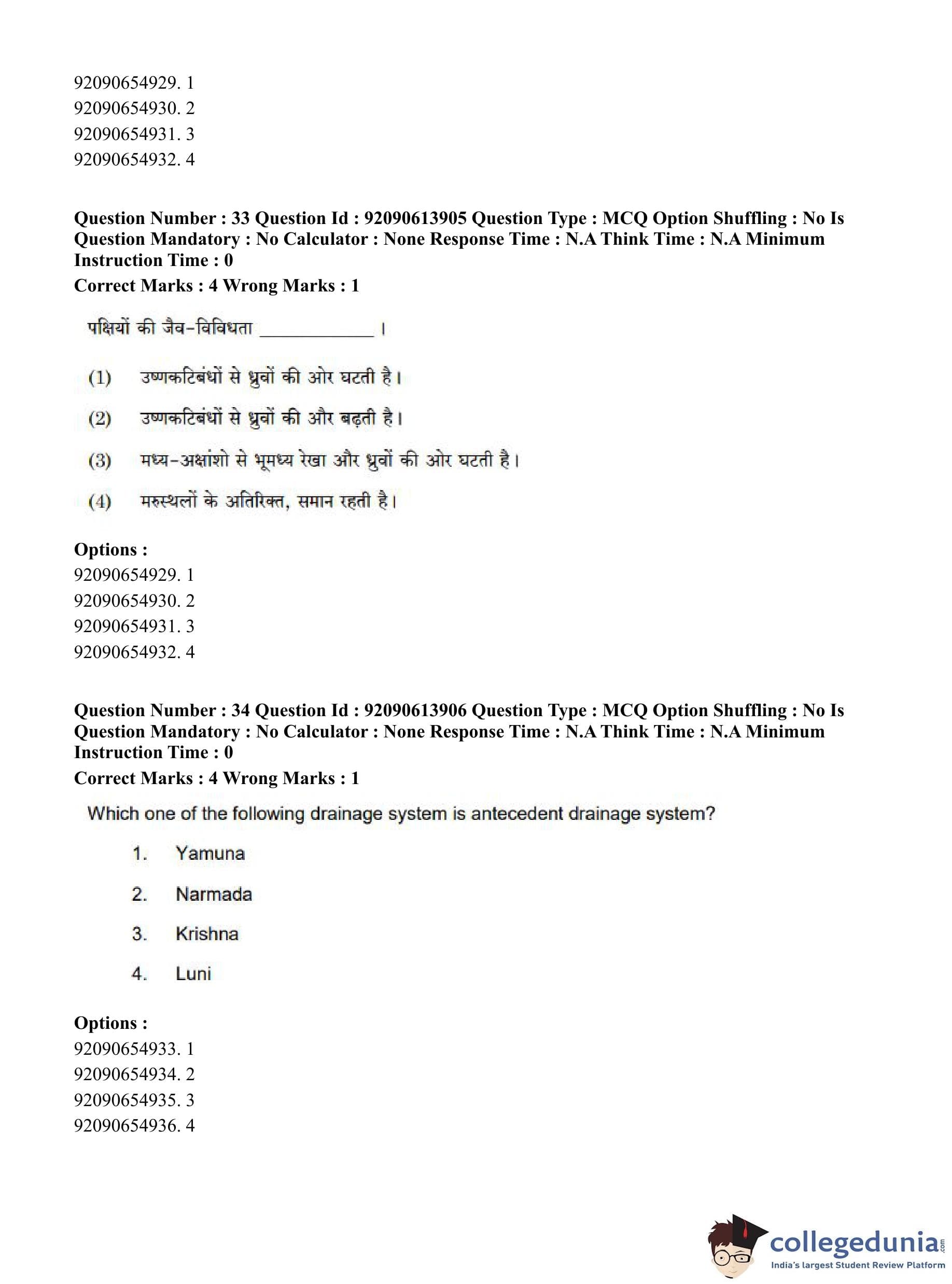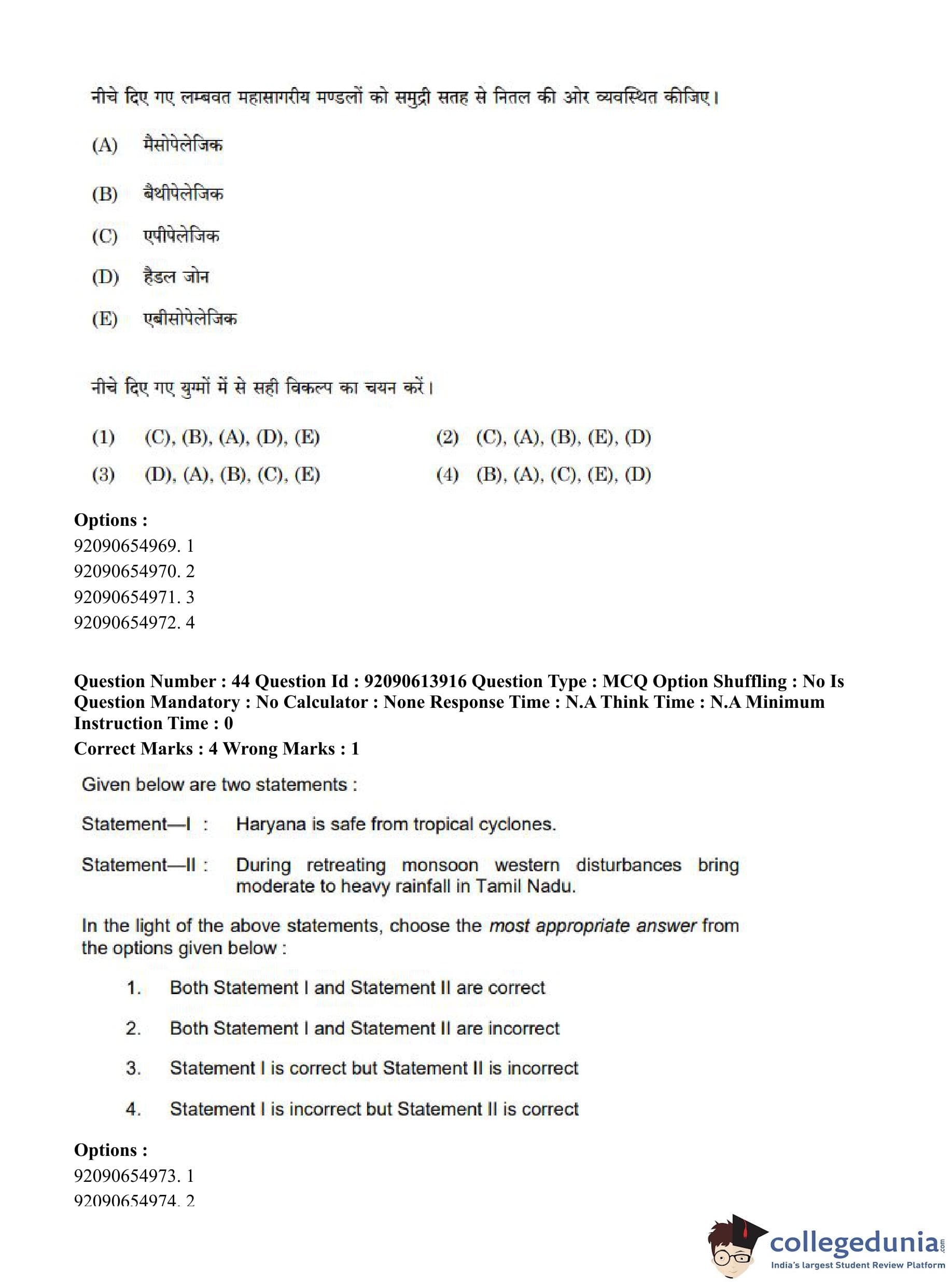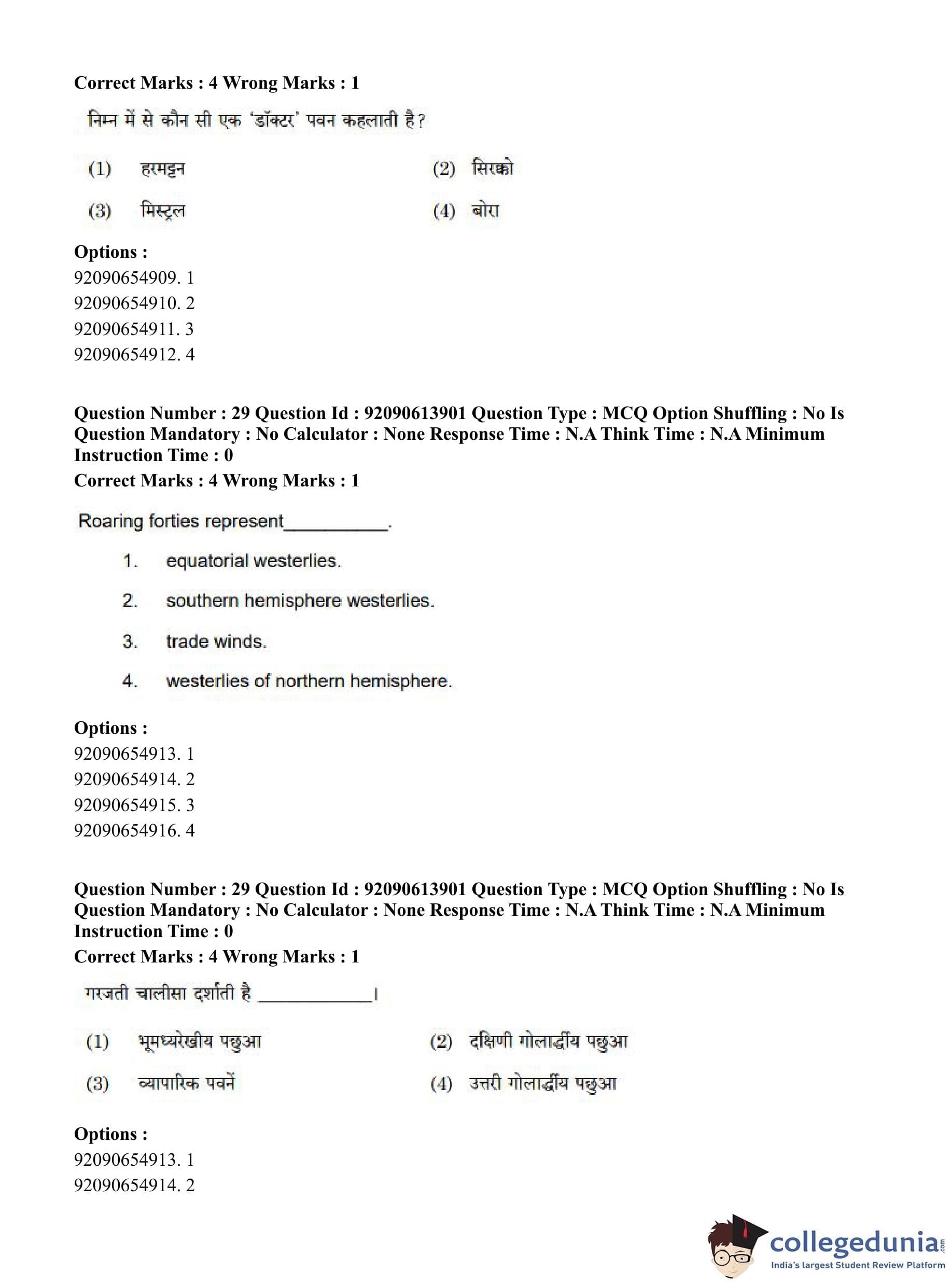 CUET PG 2023 Geography Question Paper in English (June 12 - Shift 2)