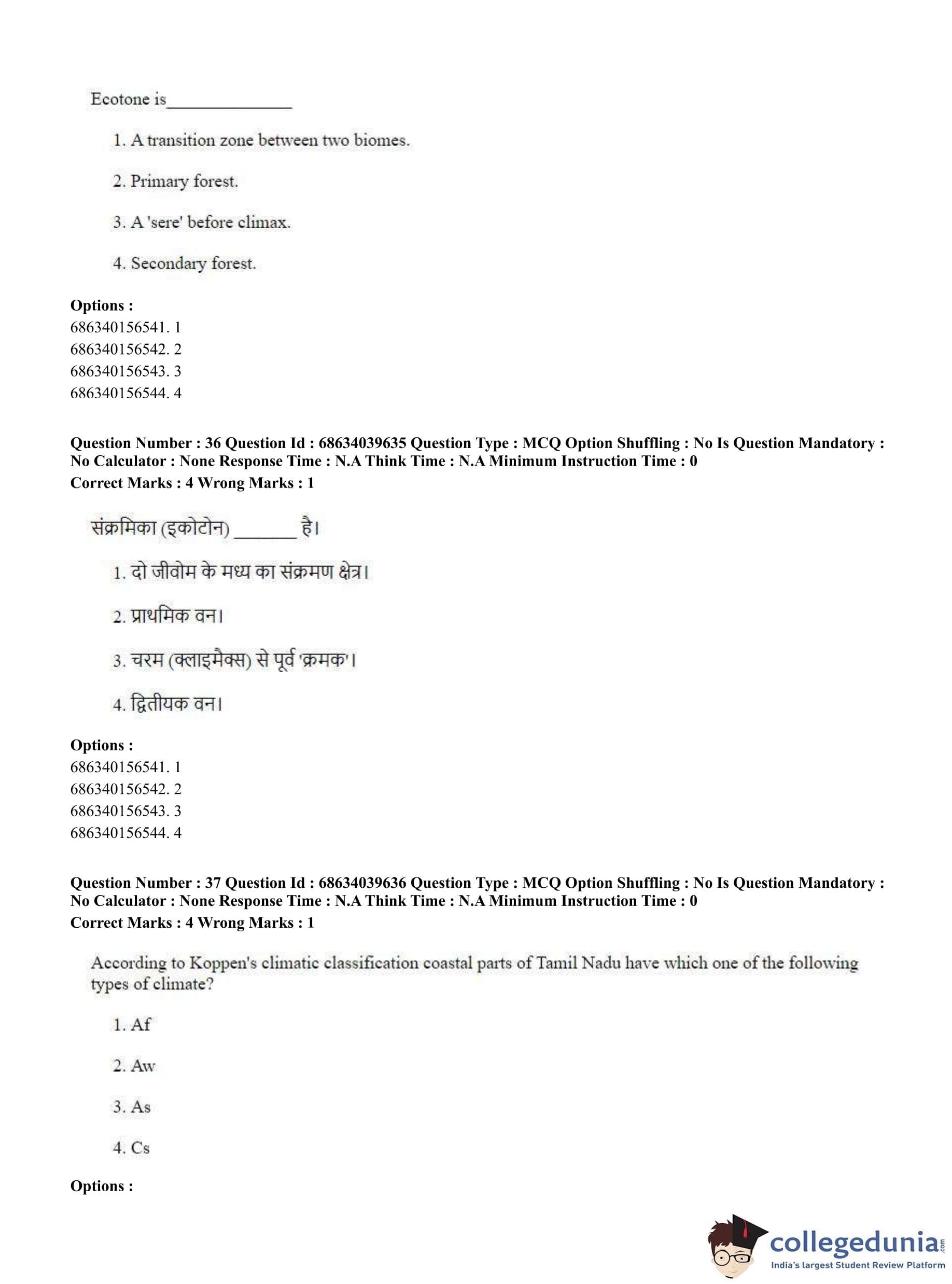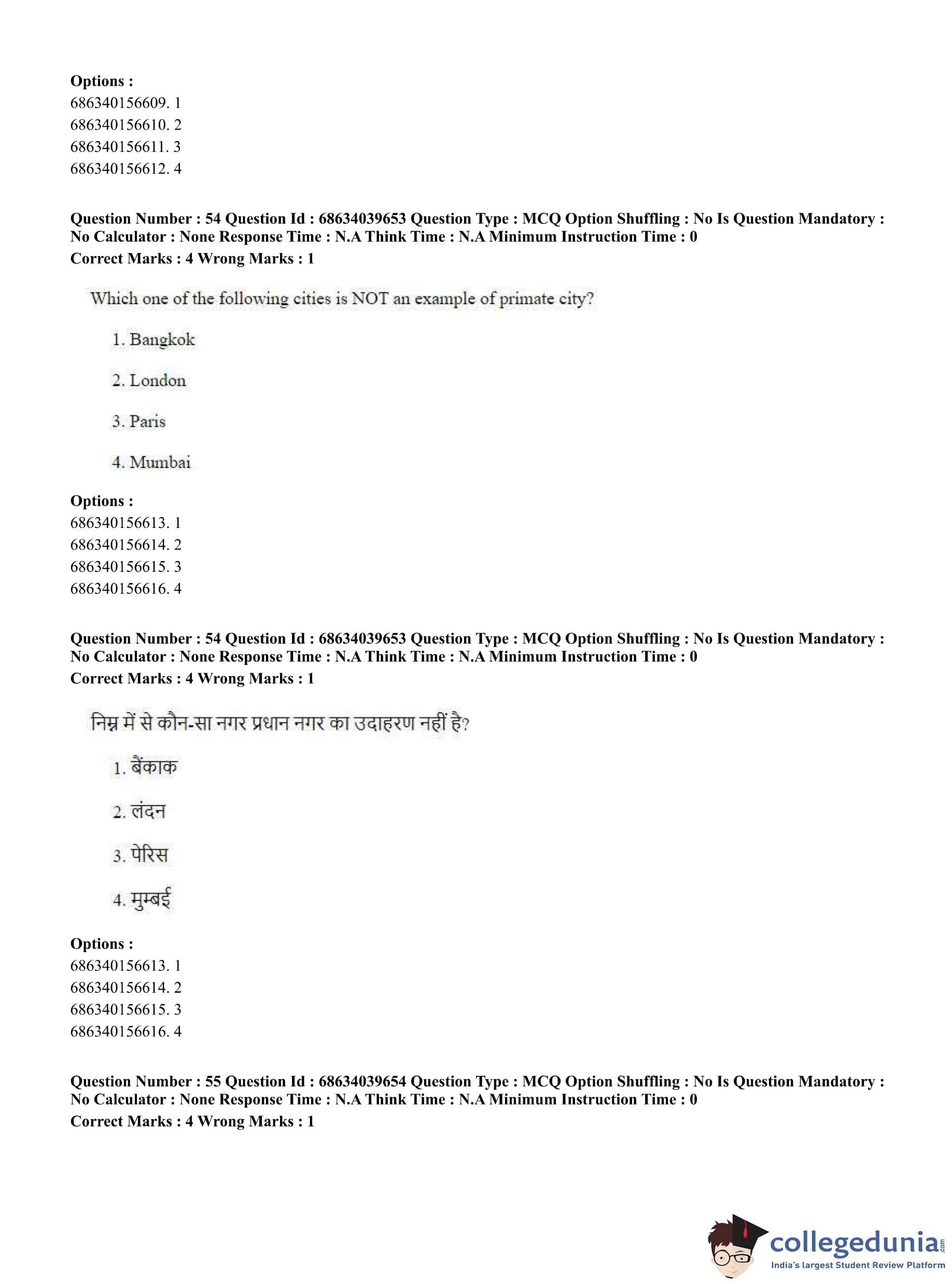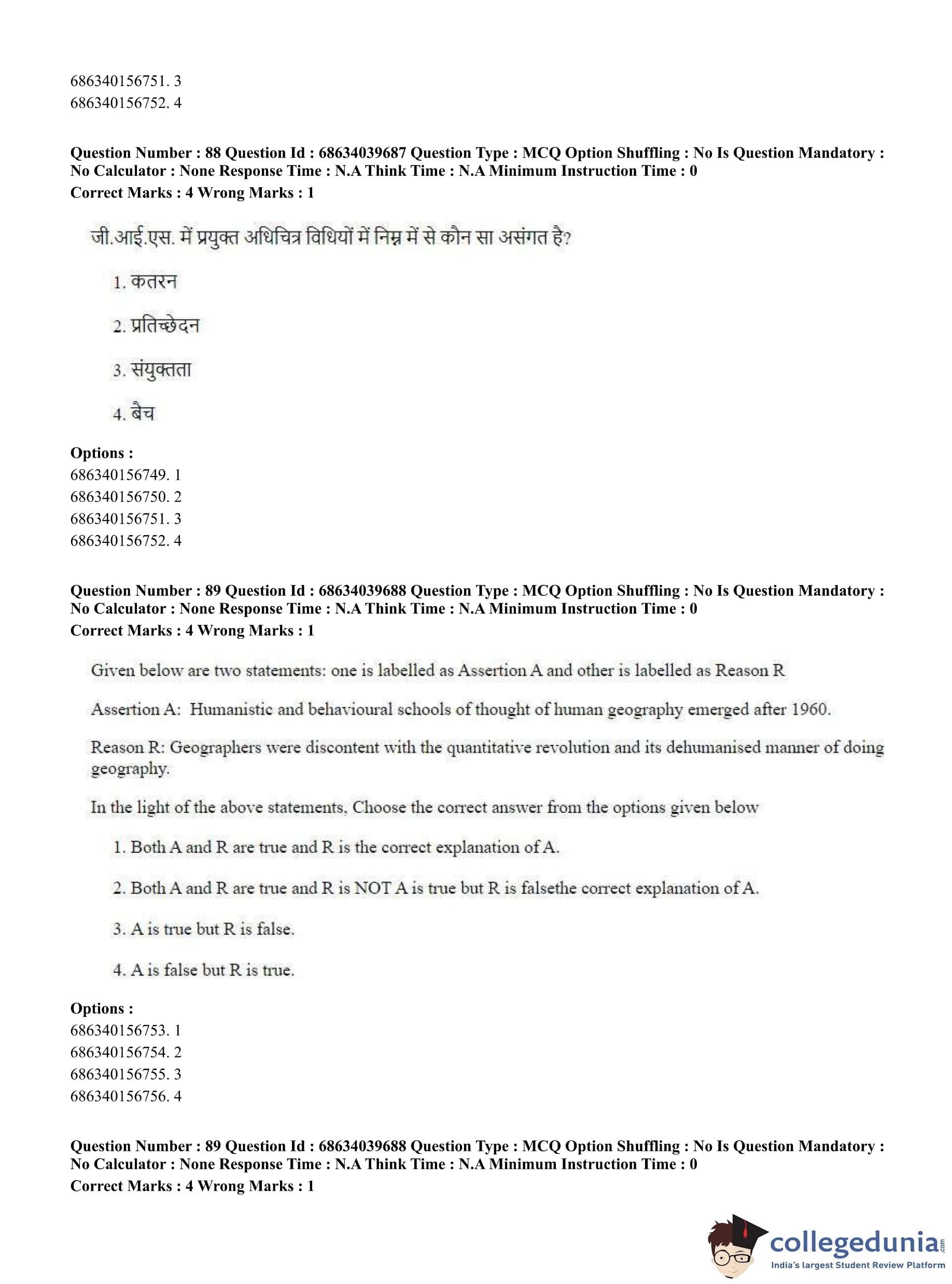 CUET PG 2023 Geography Question Paper in English (June 25 - Shift 3)