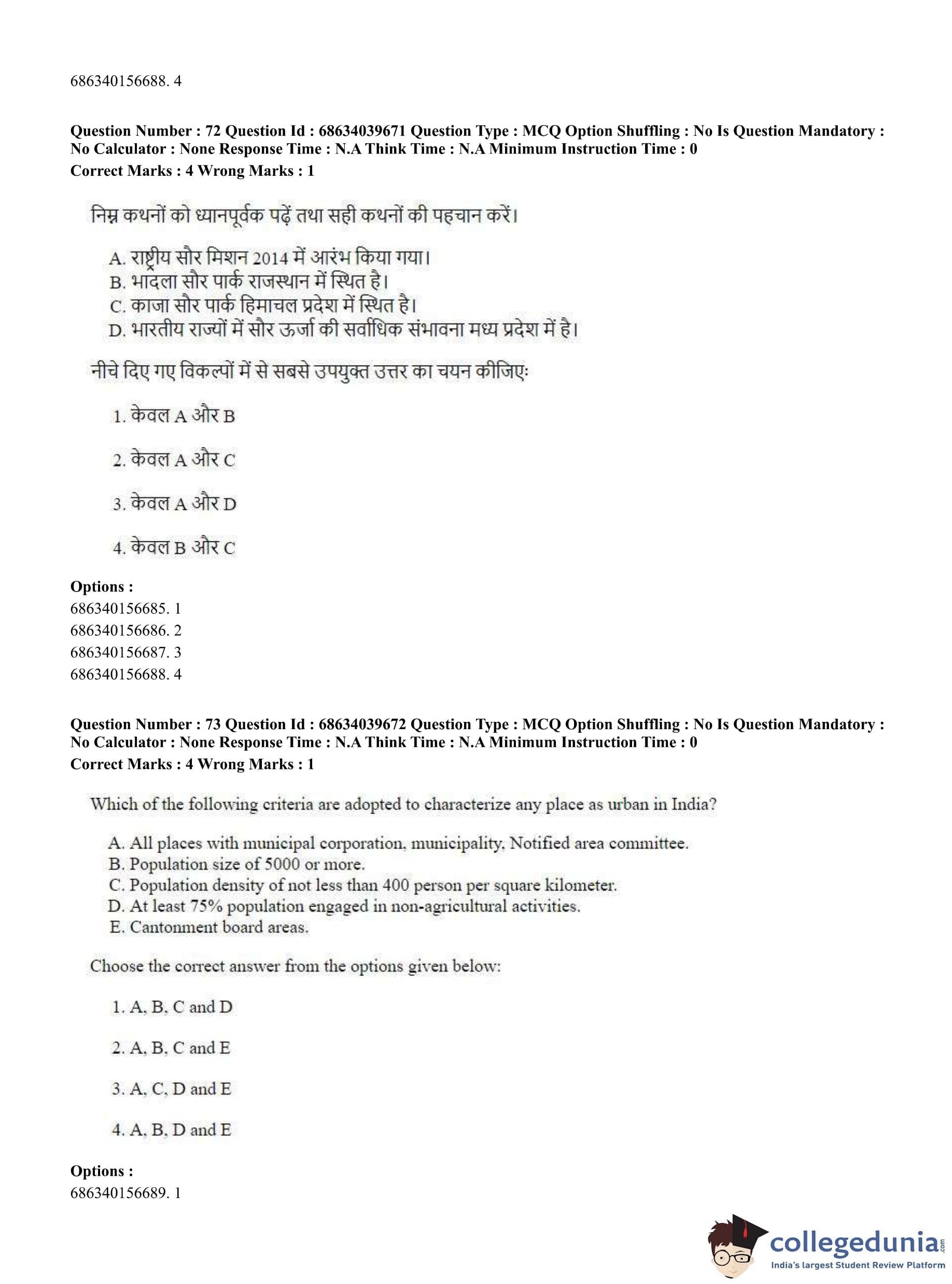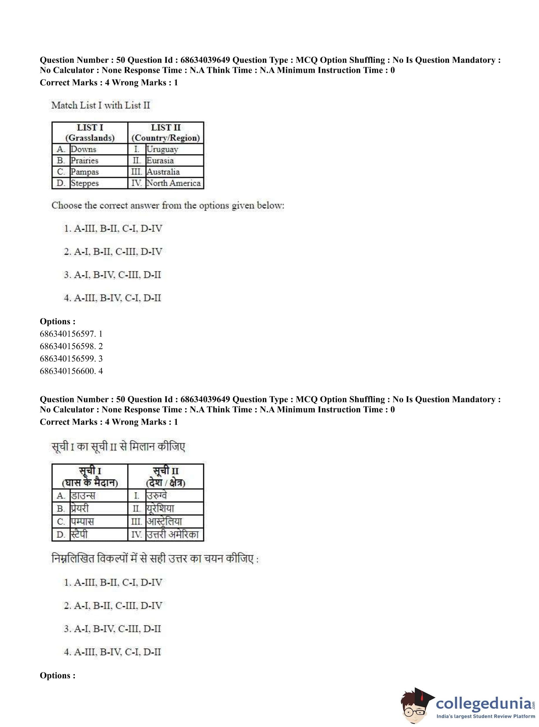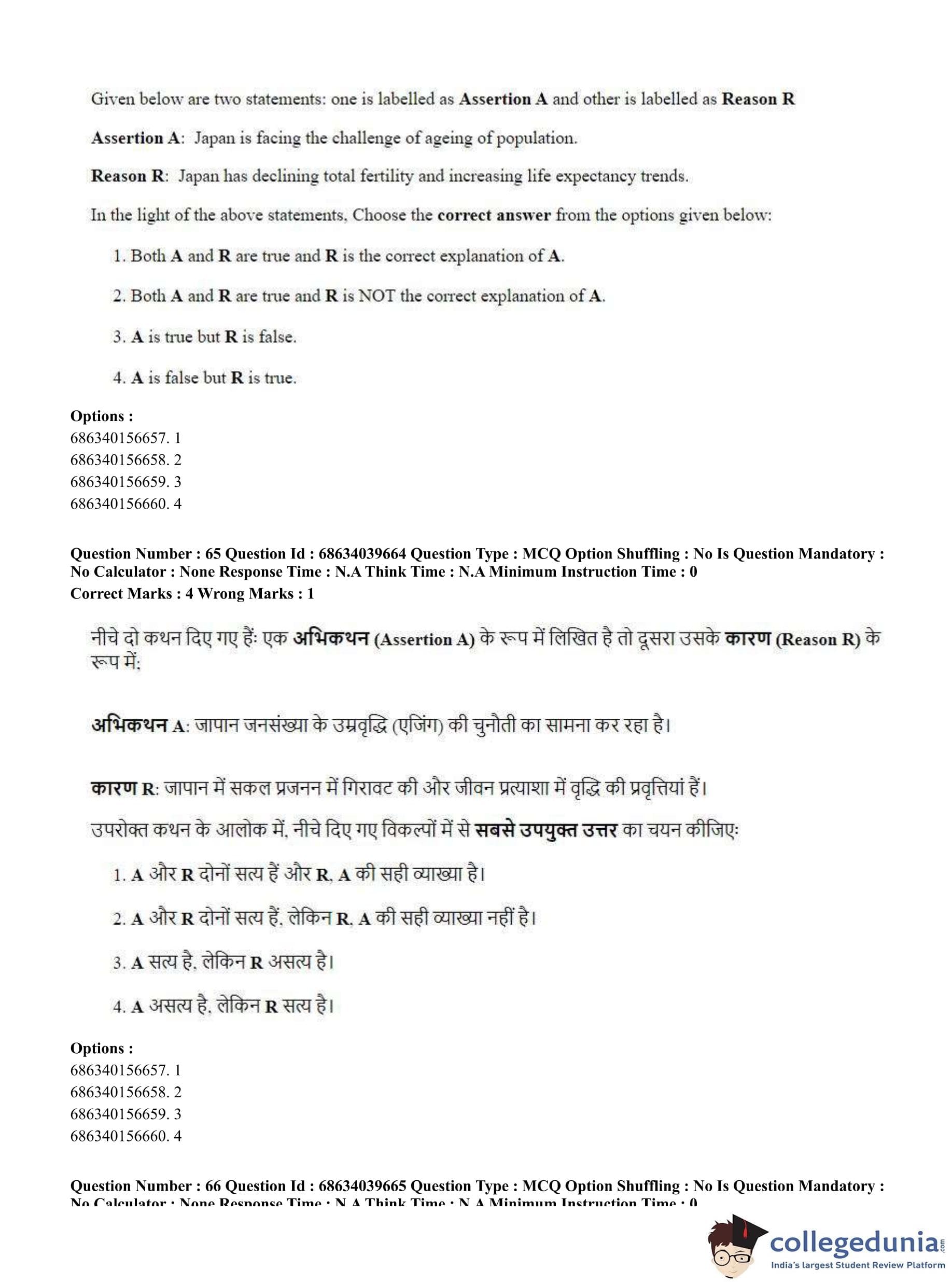 CUET PG 2023 Geography Question Paper in English (June 25 - Shift 3)