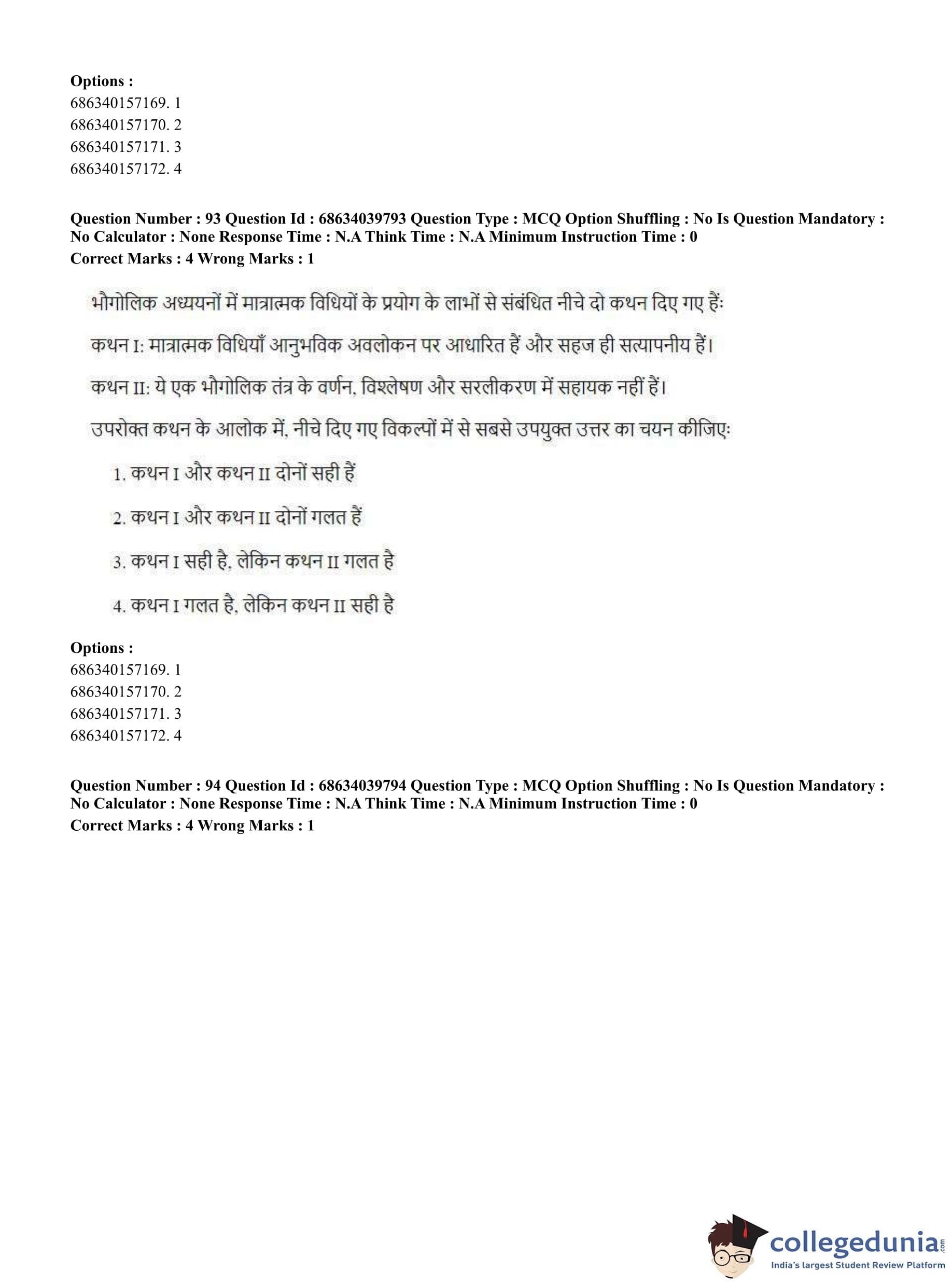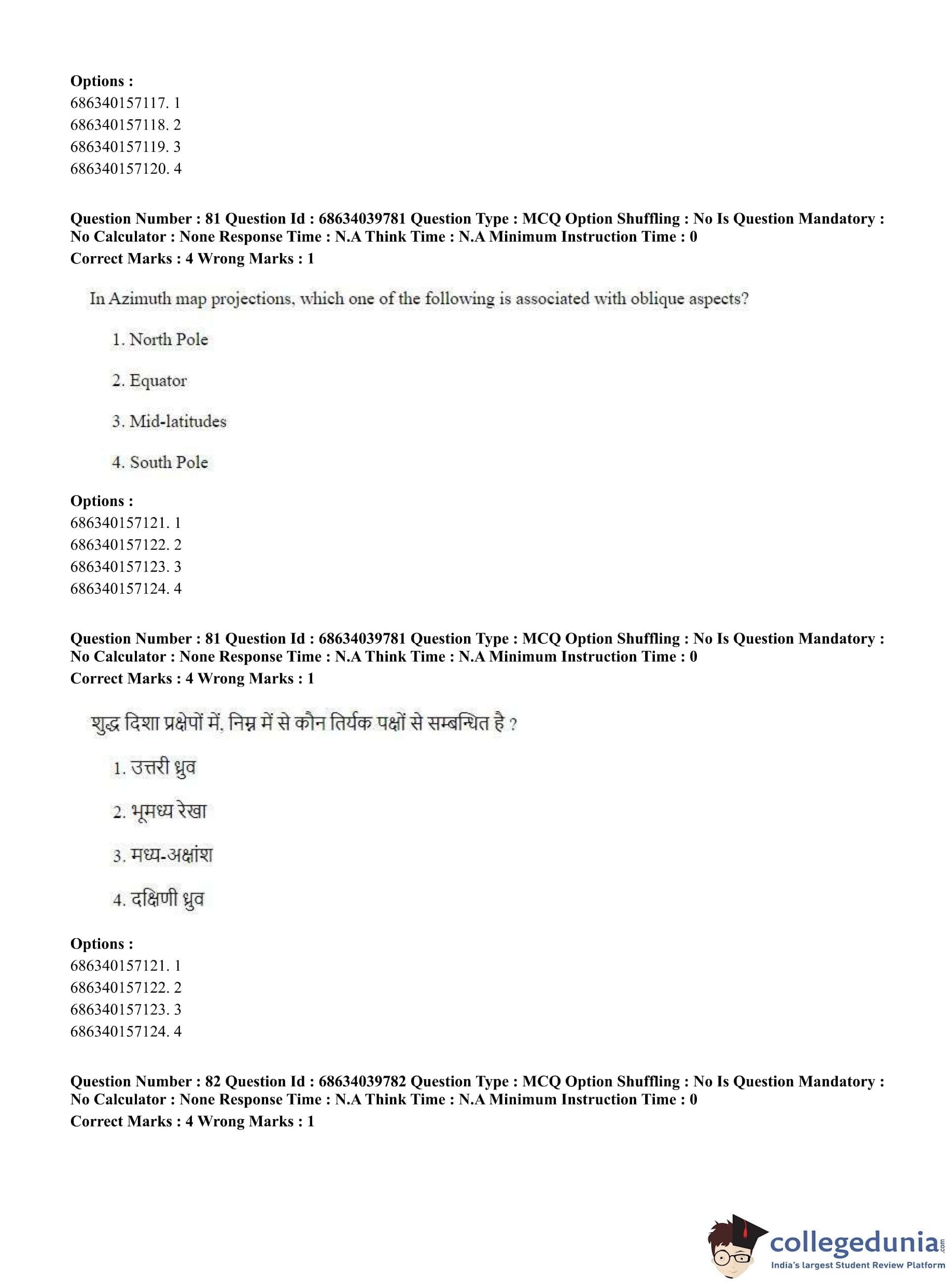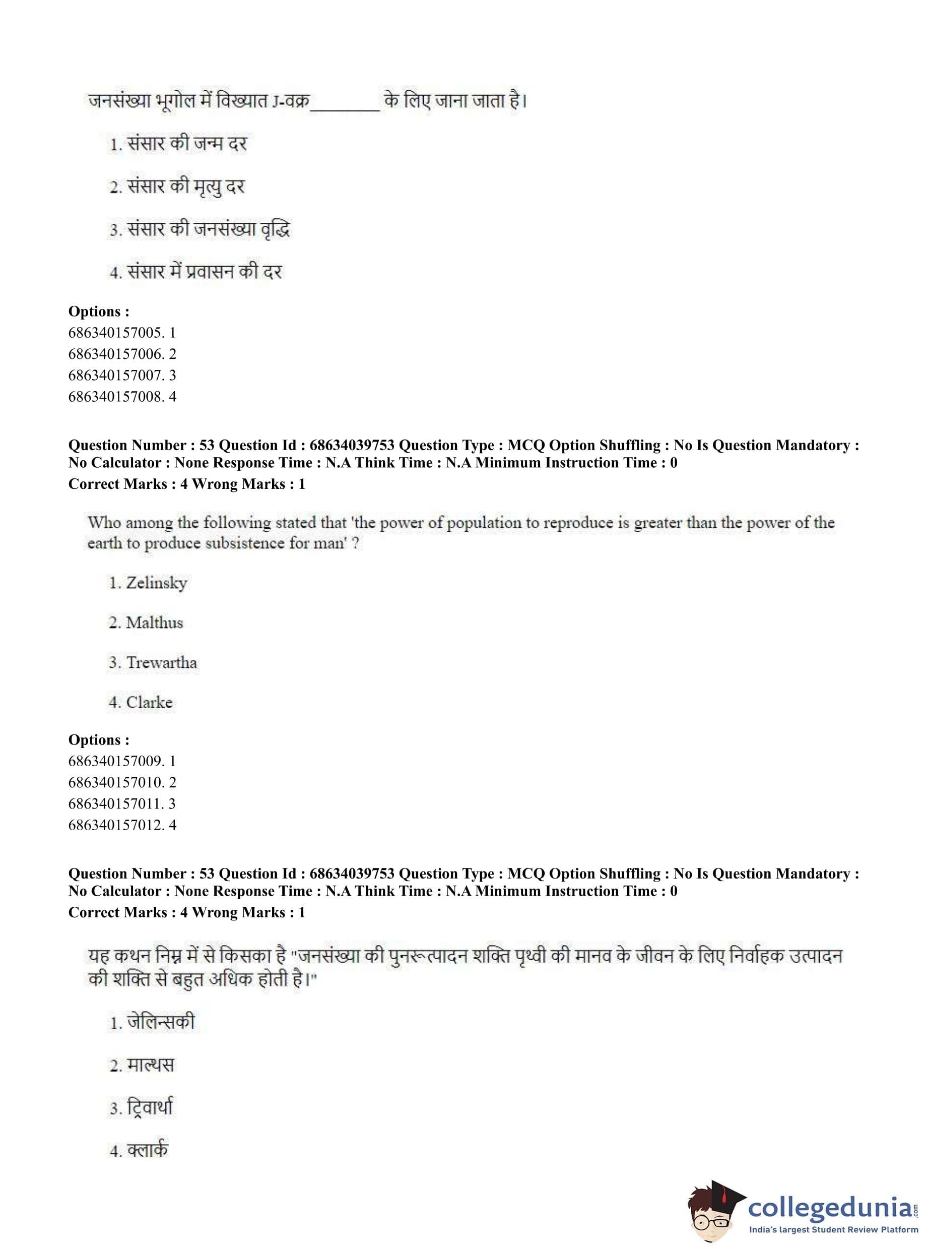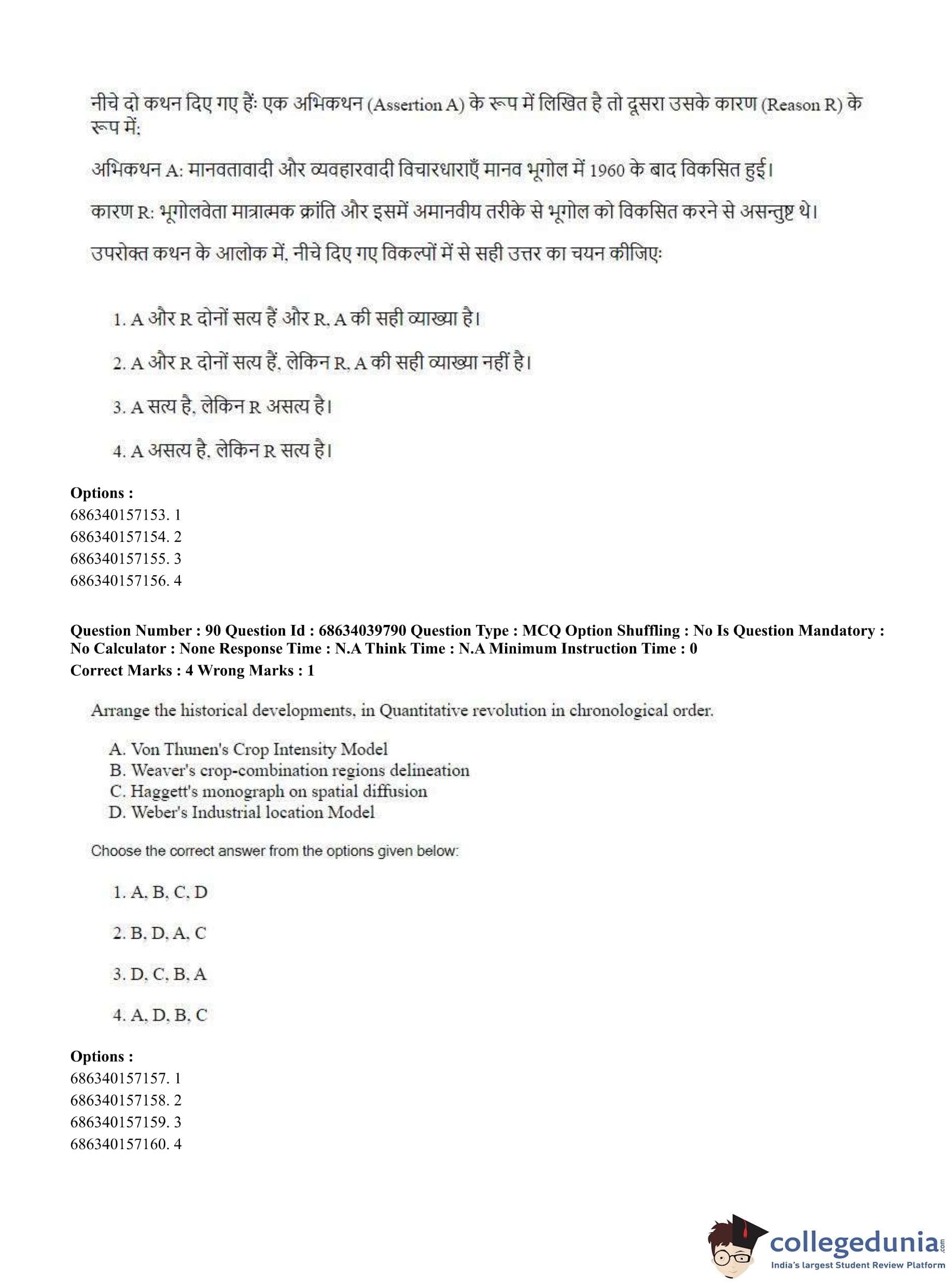 CUET PG 2023 Geography Question Paper in Hindi (June 25 - Shift 3)