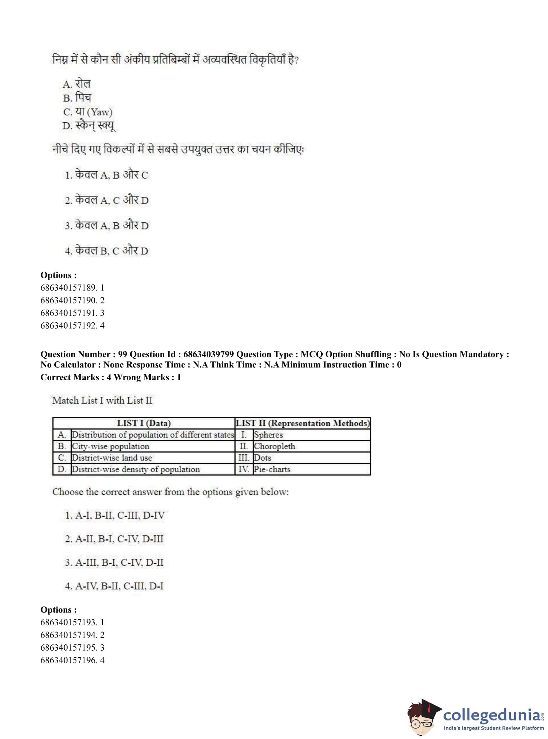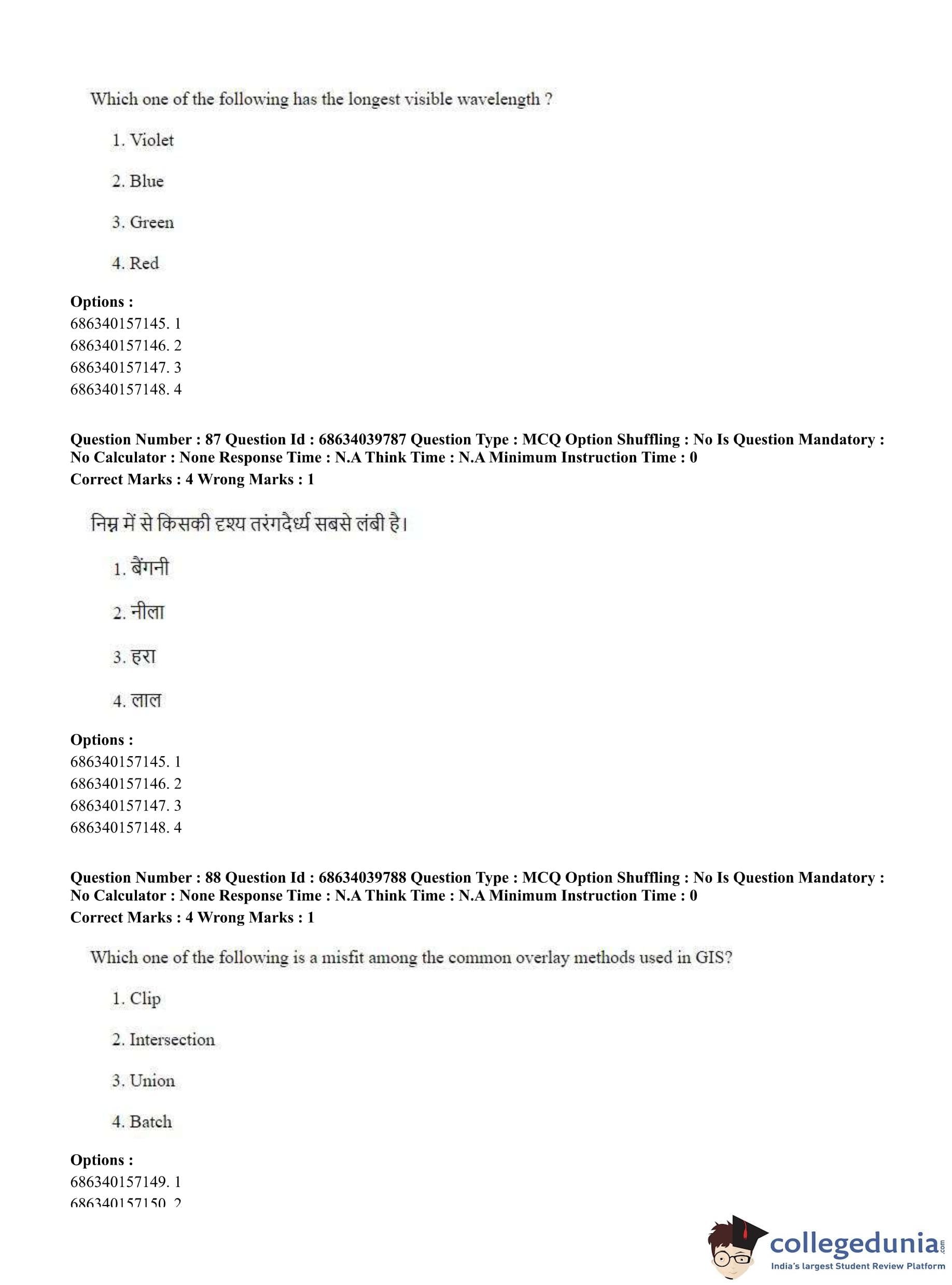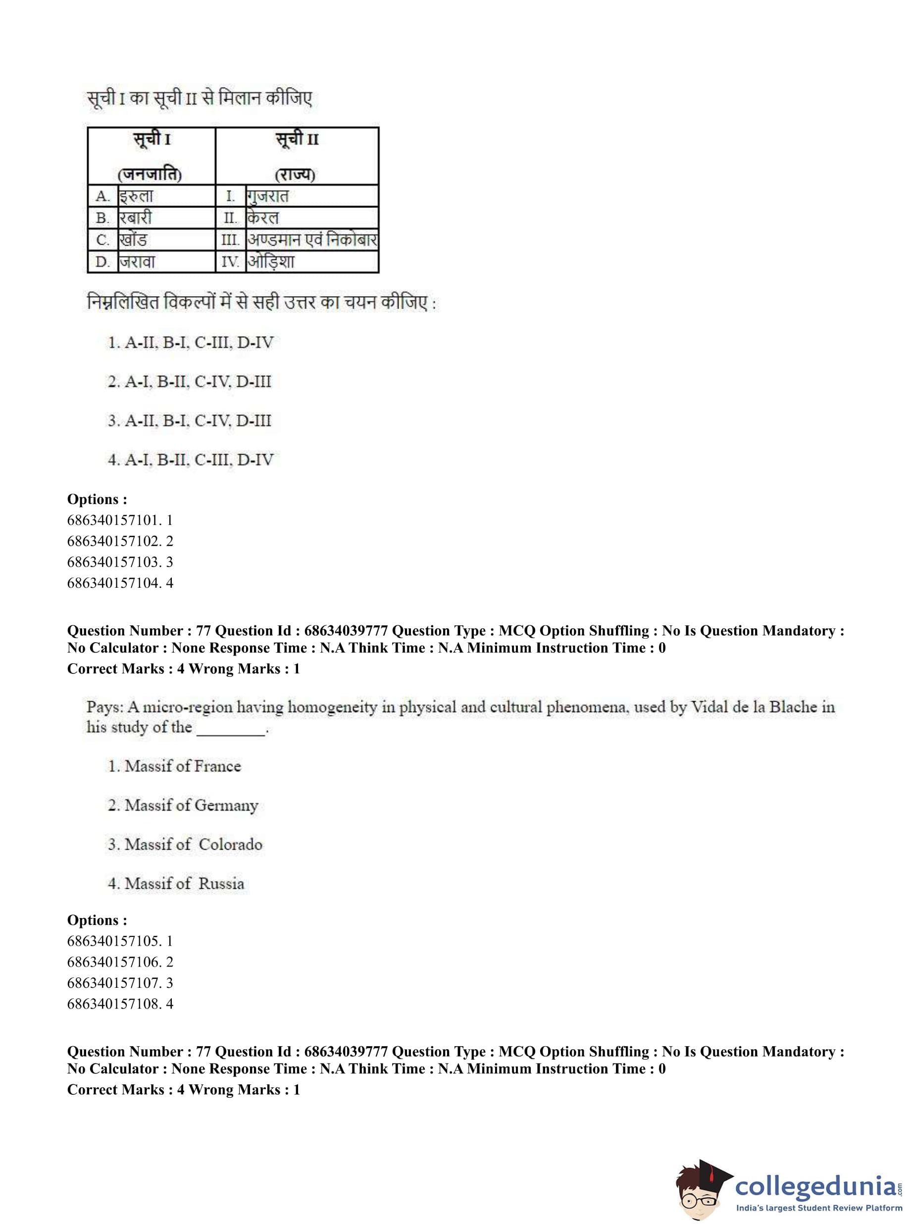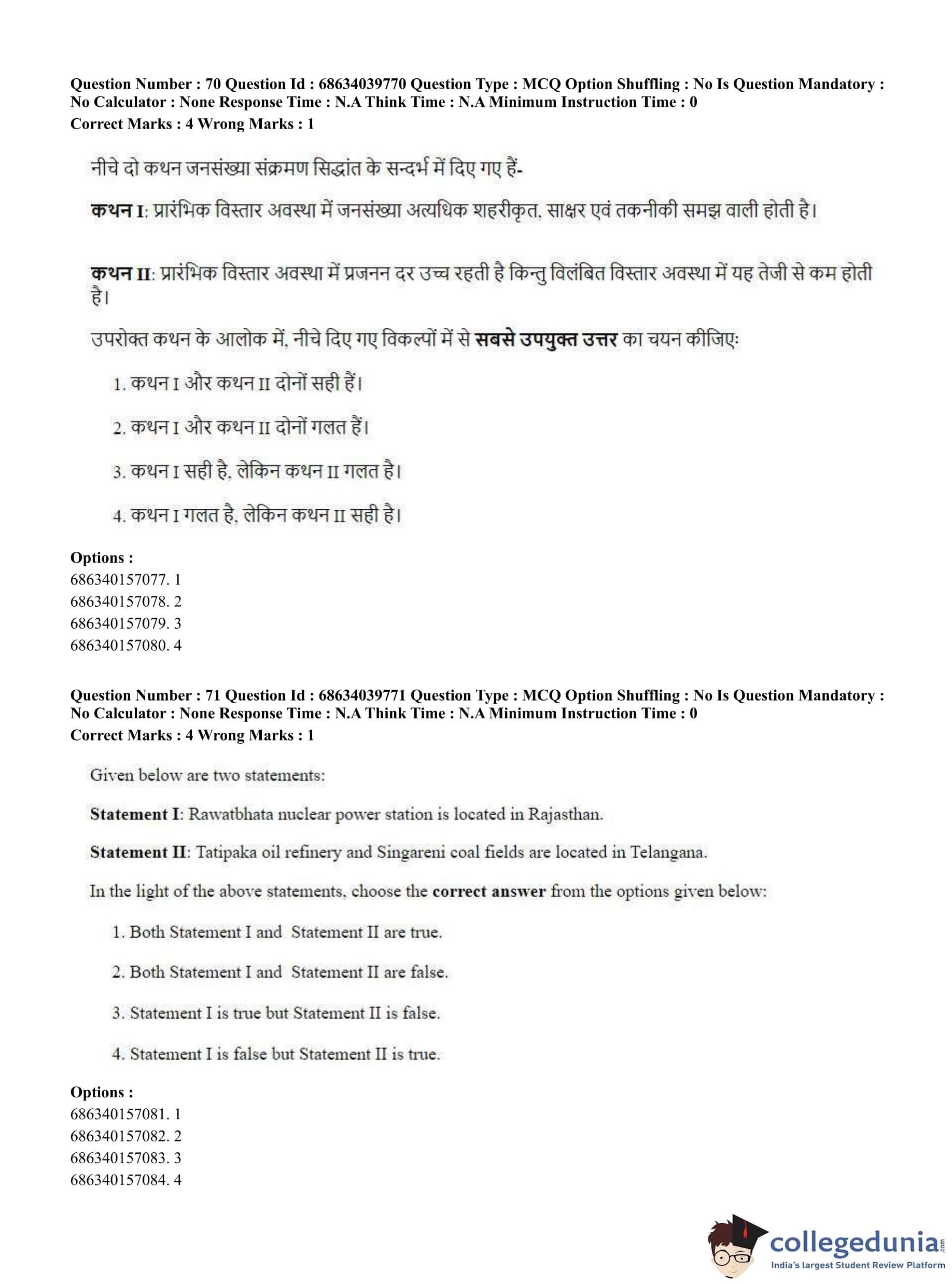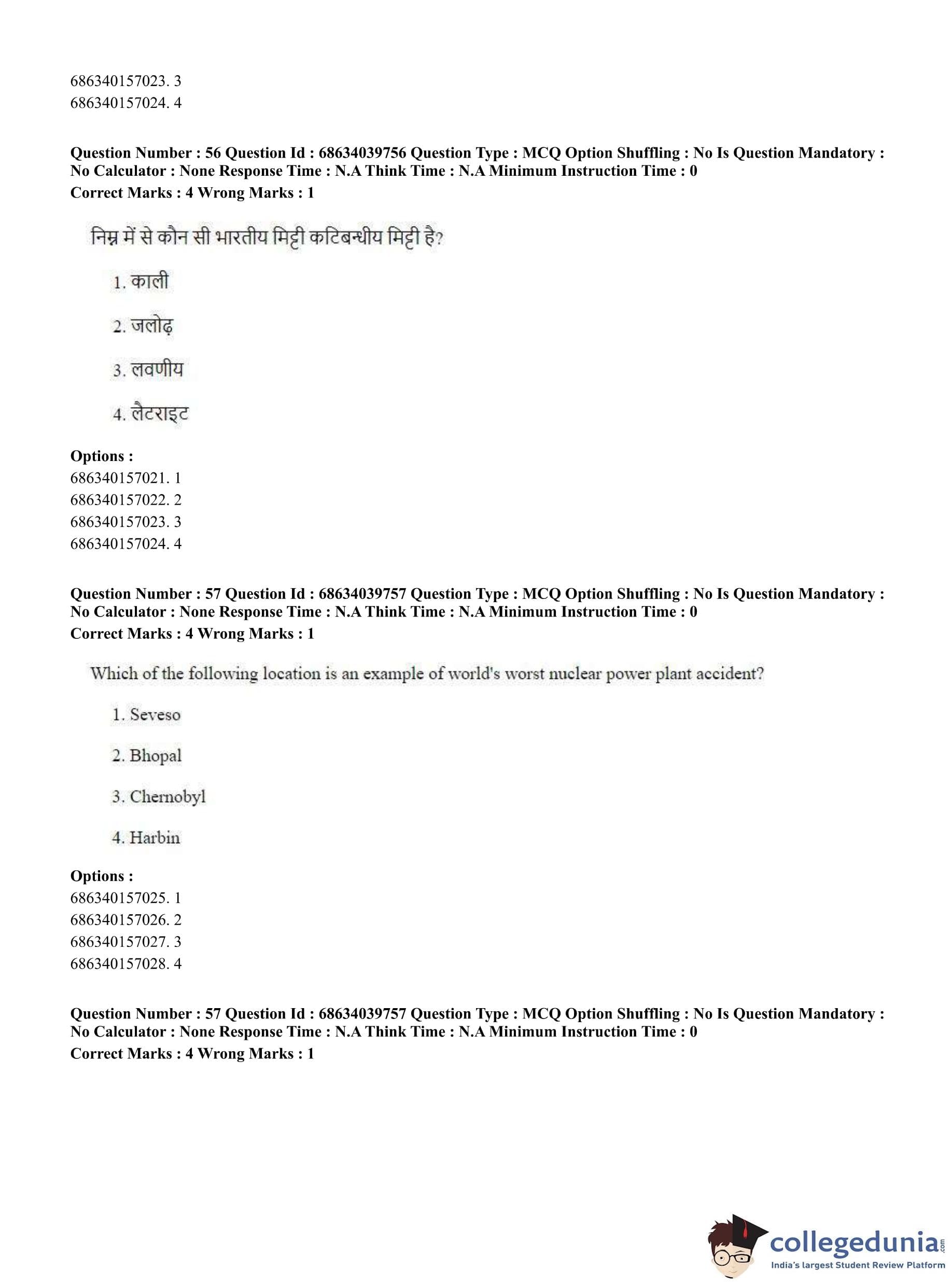 CUET PG 2023 Geography Question Paper in Hindi (June 25 - Shift 3)