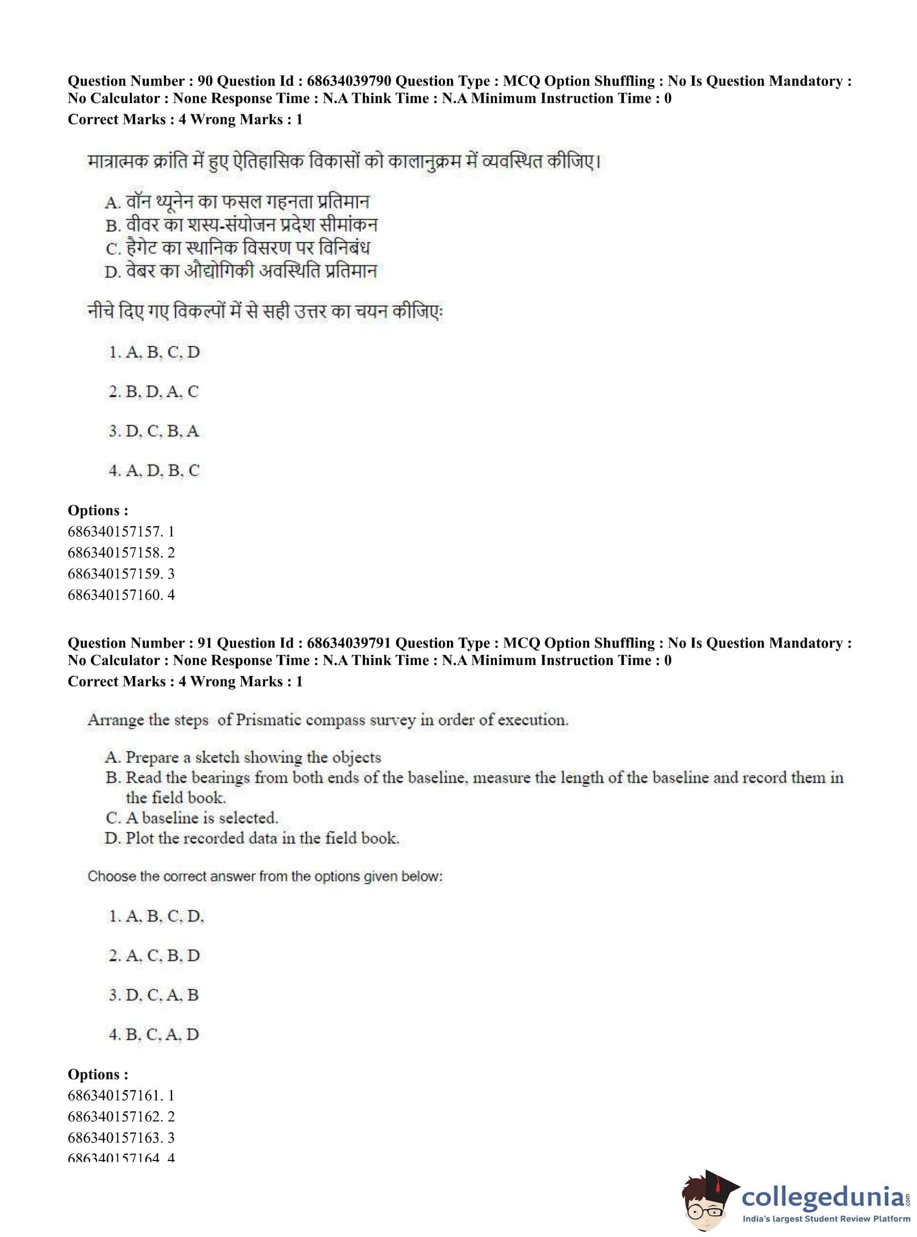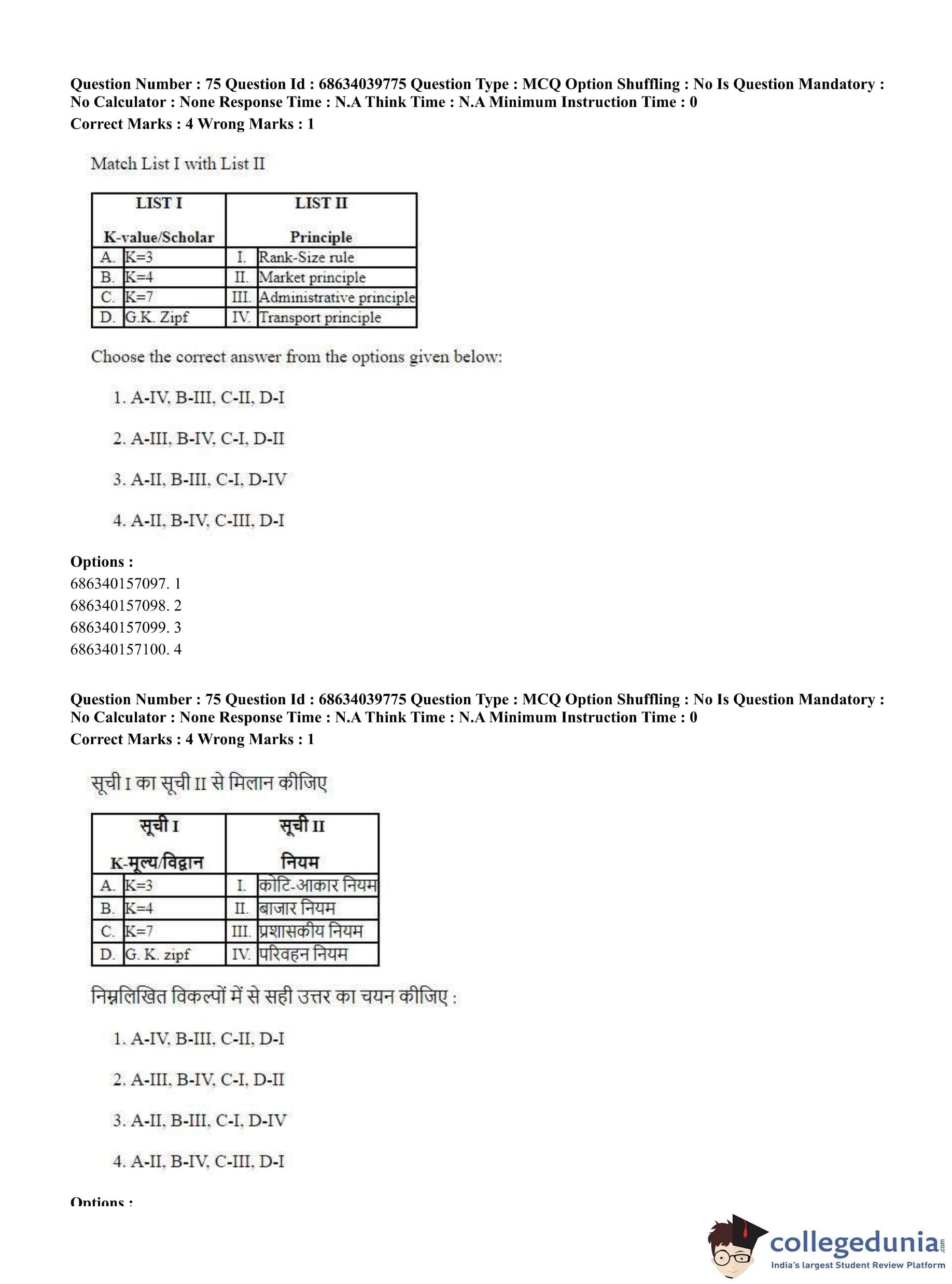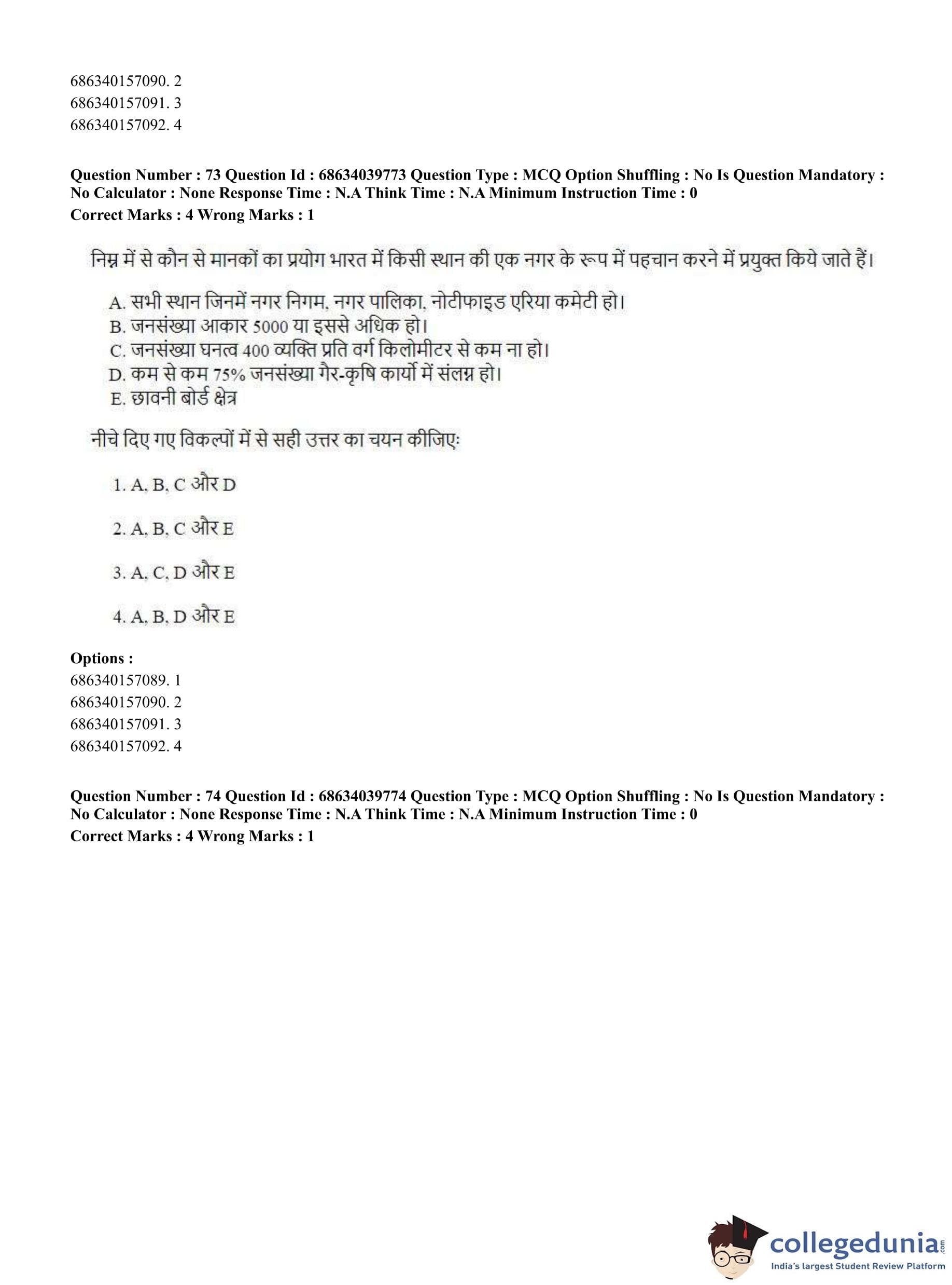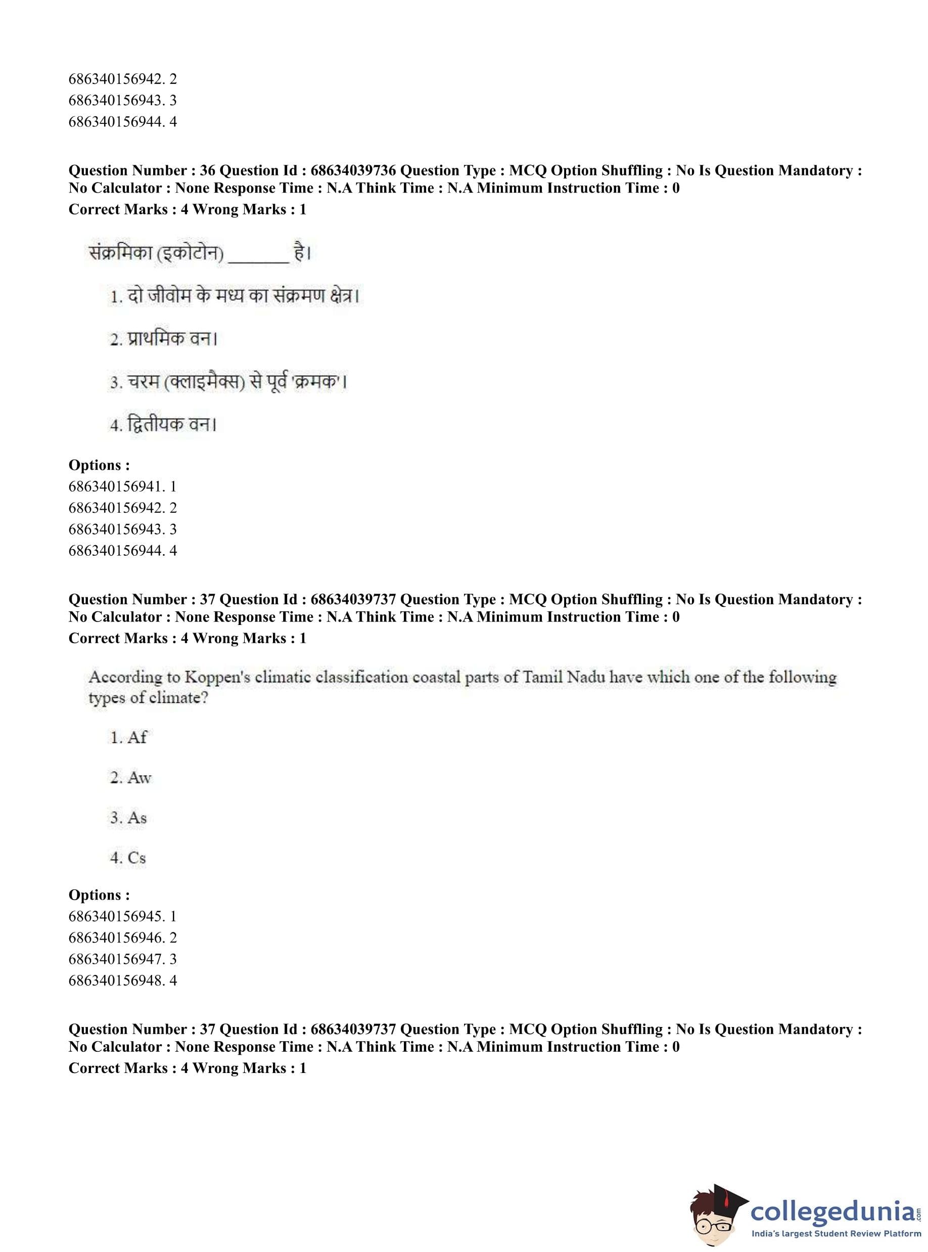 CUET PG 2023 Geography Question Paper in Hindi (June 25 - Shift 3)