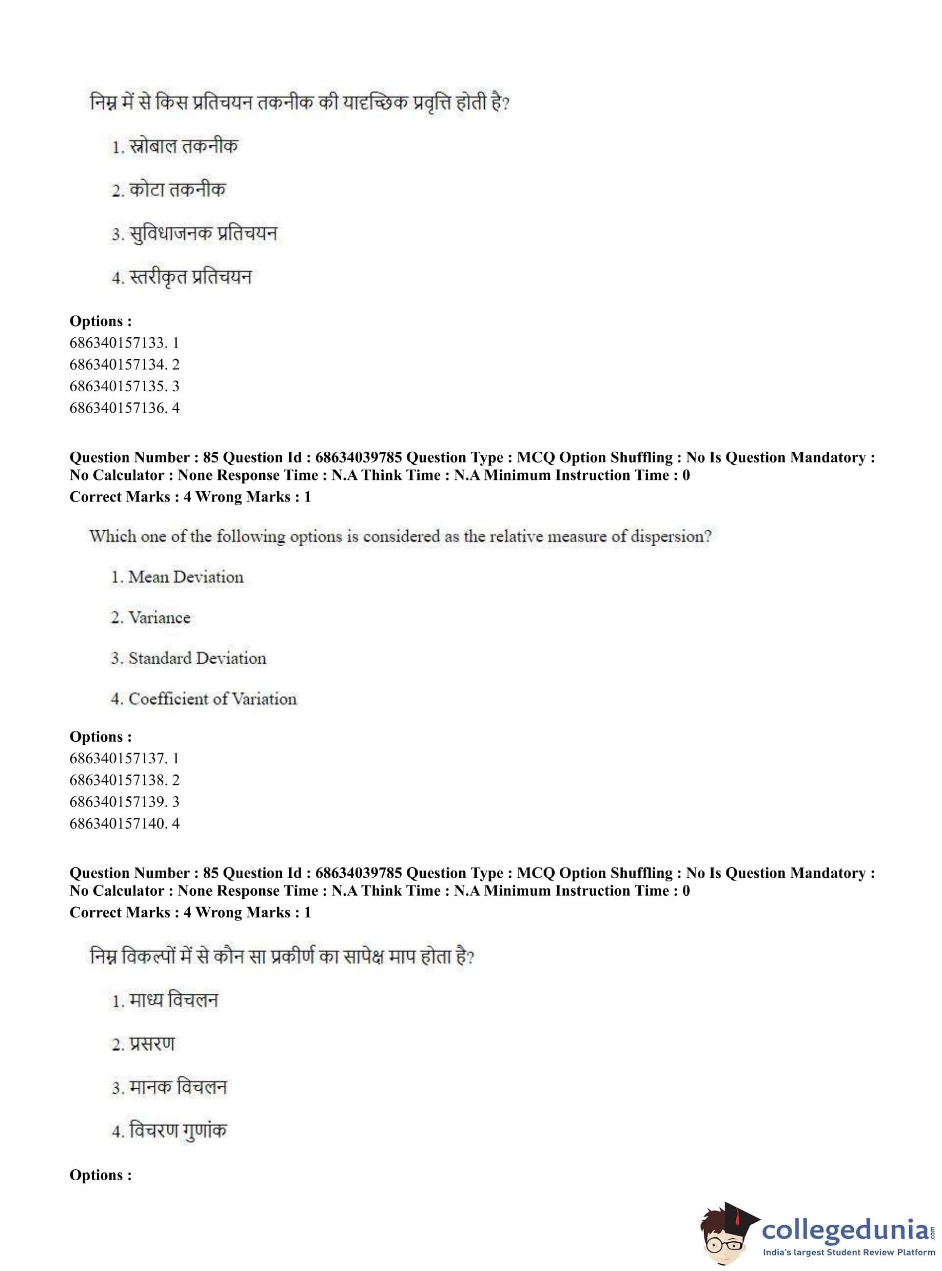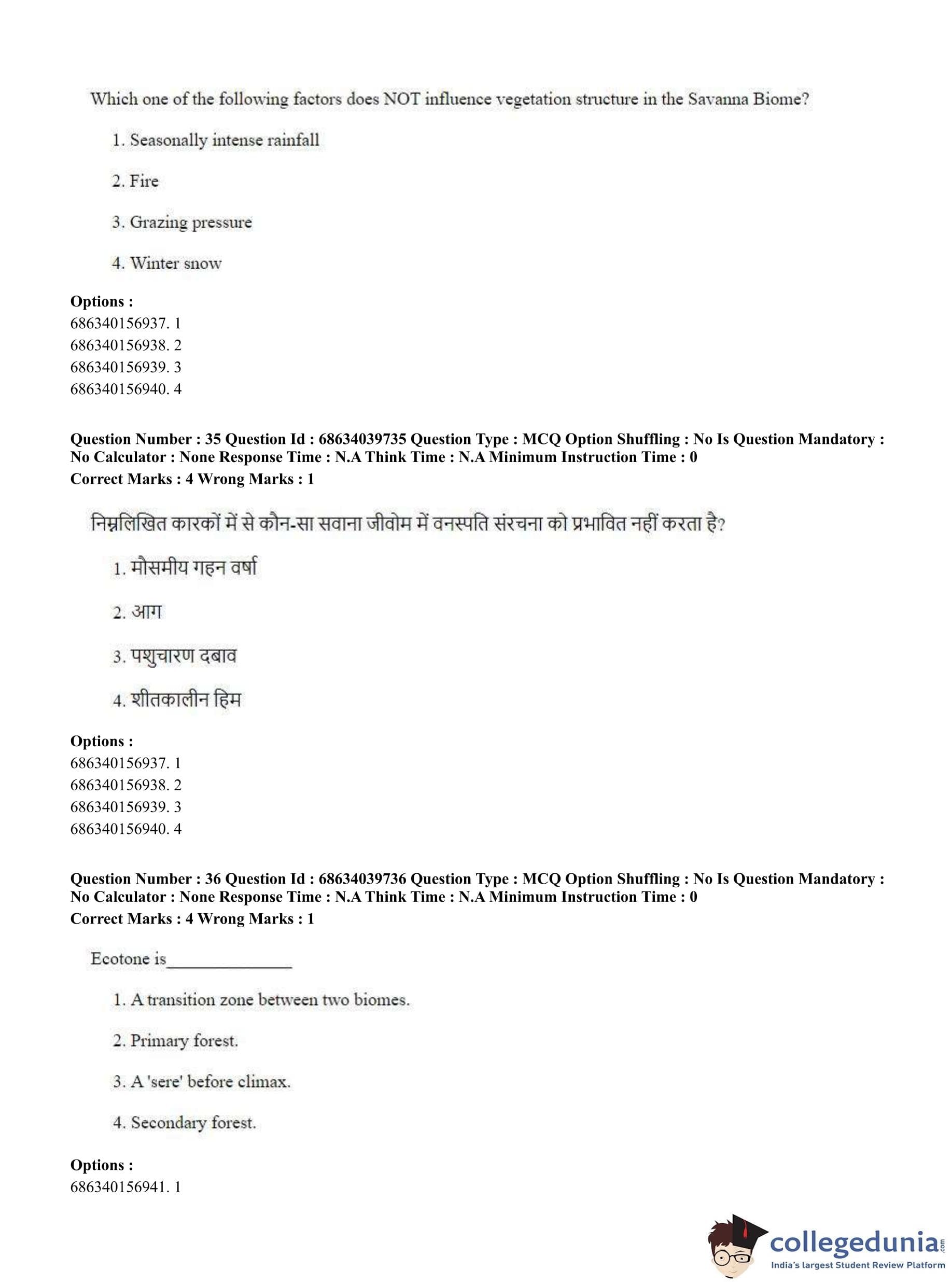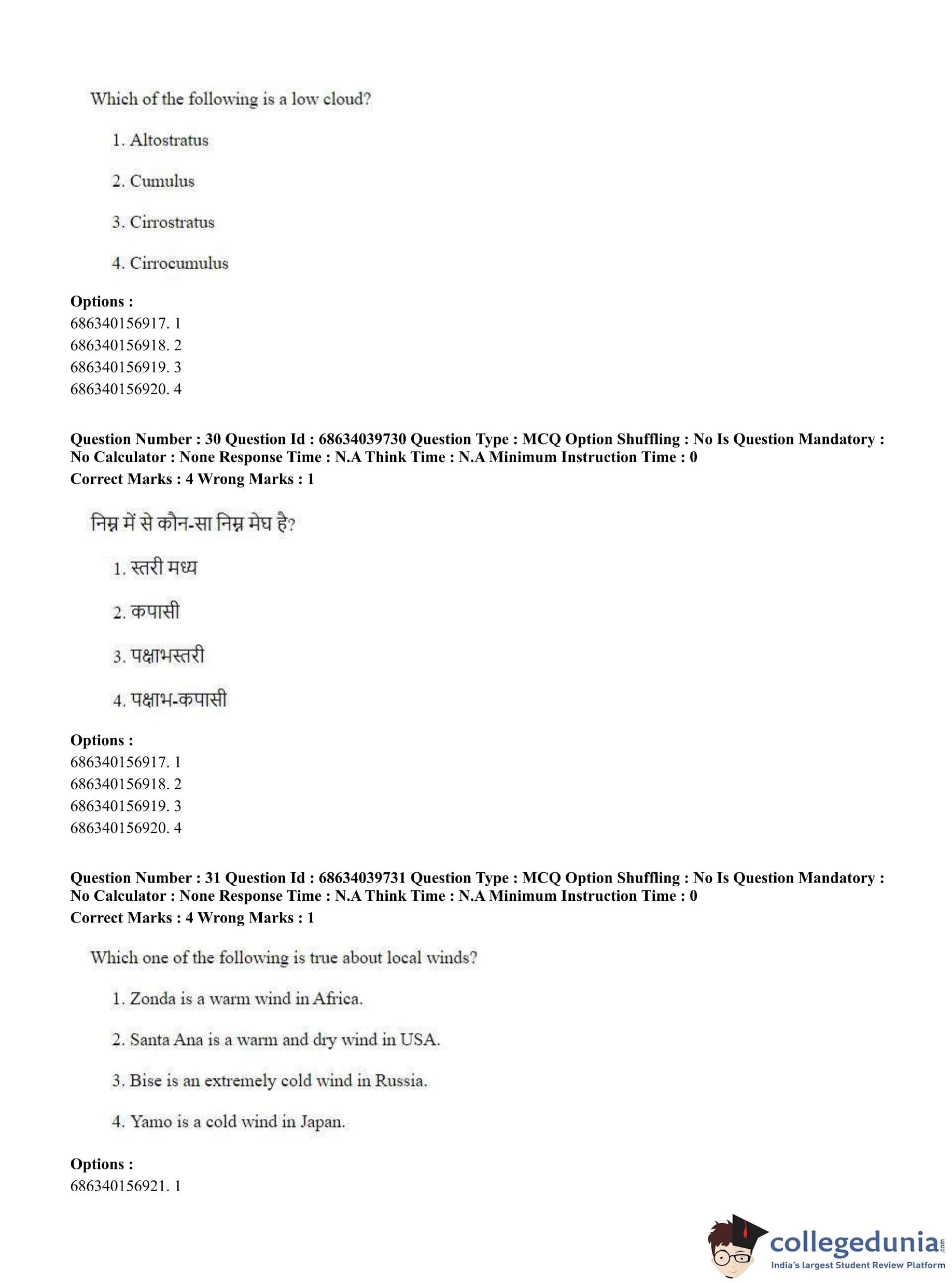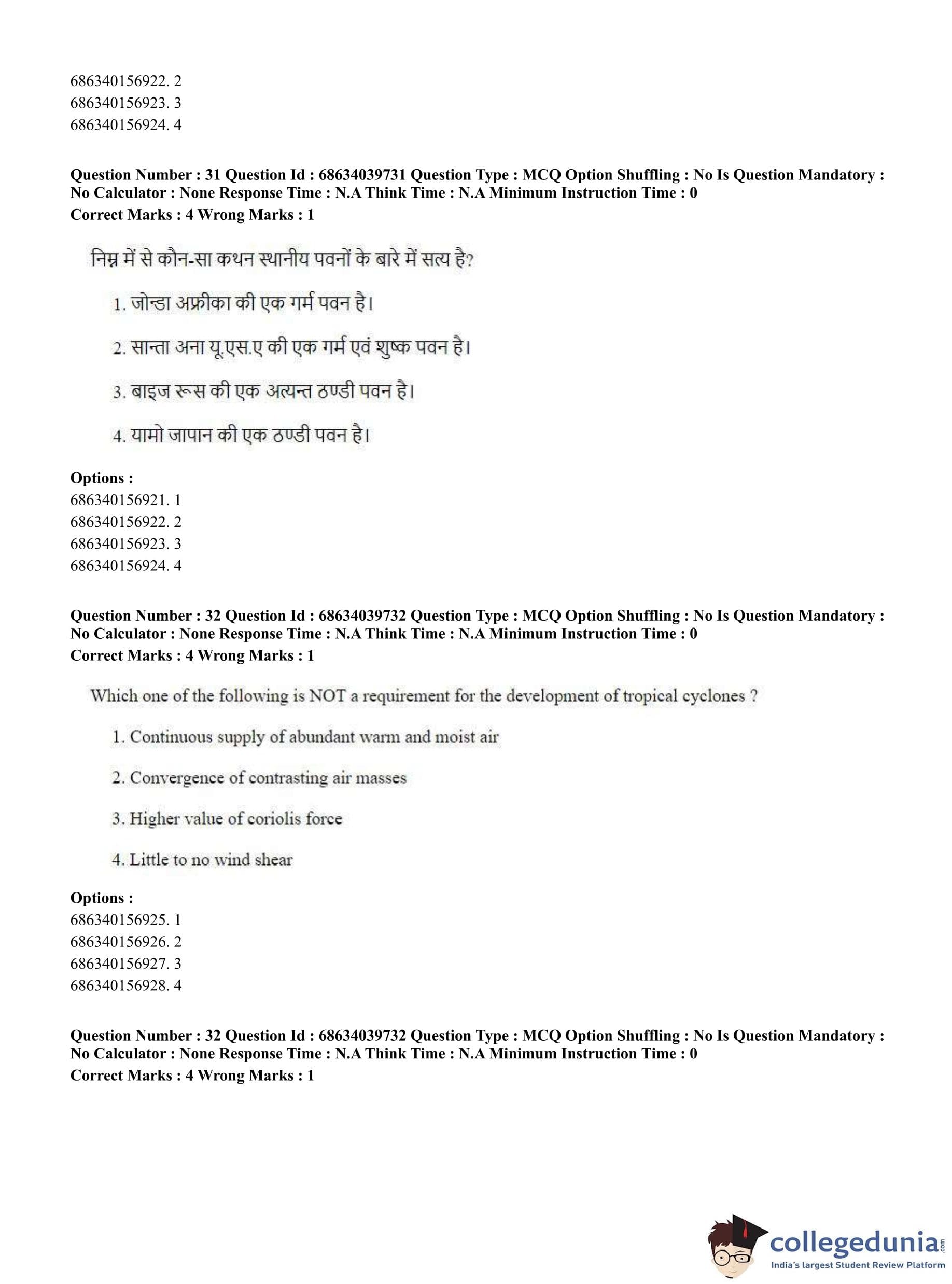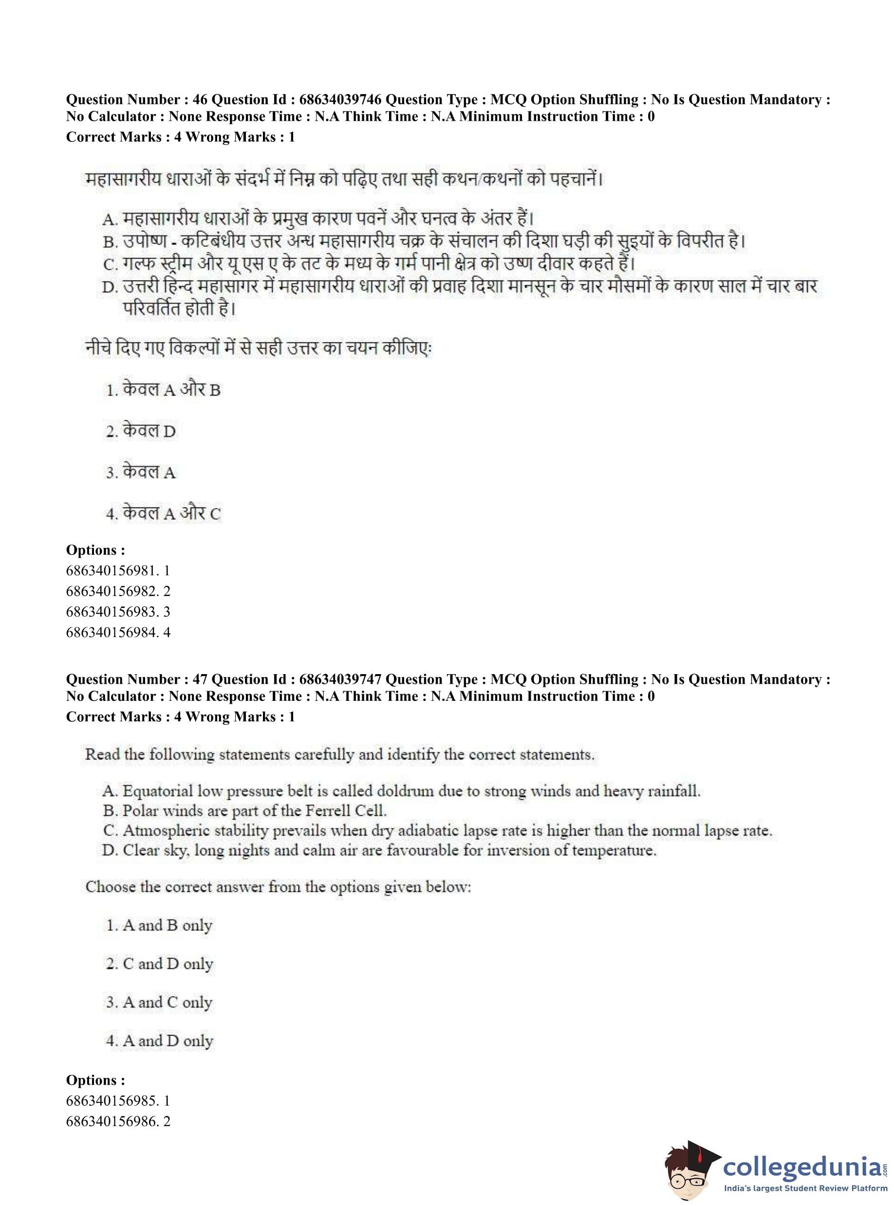 CUET PG 2023 Geography Question Paper in Hindi (June 25 - Shift 3)