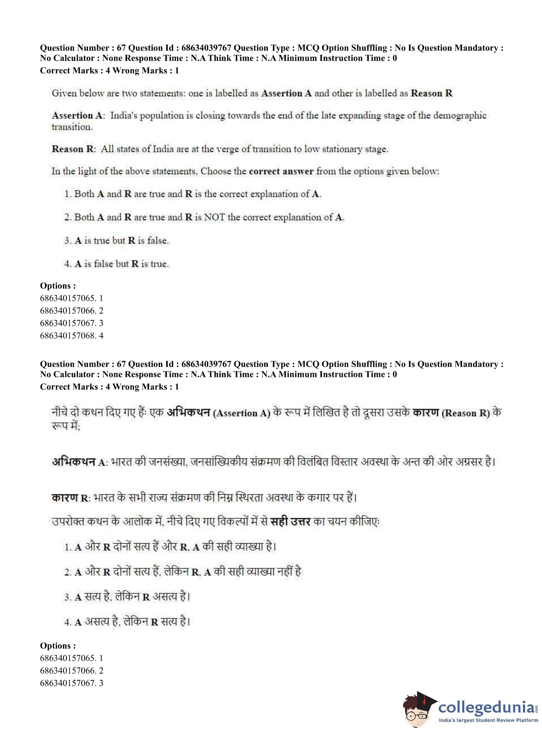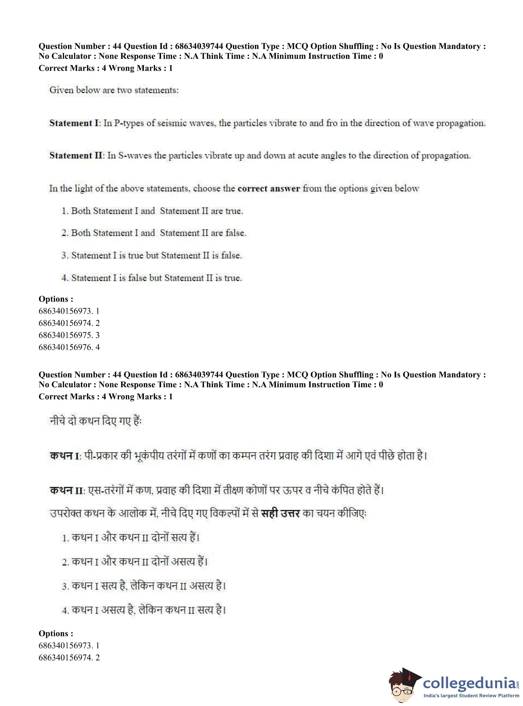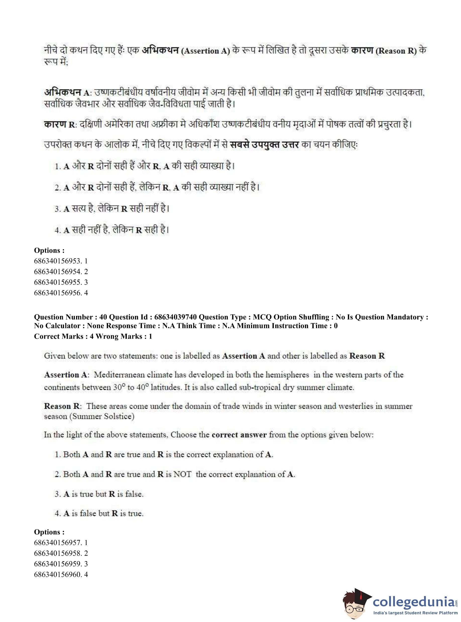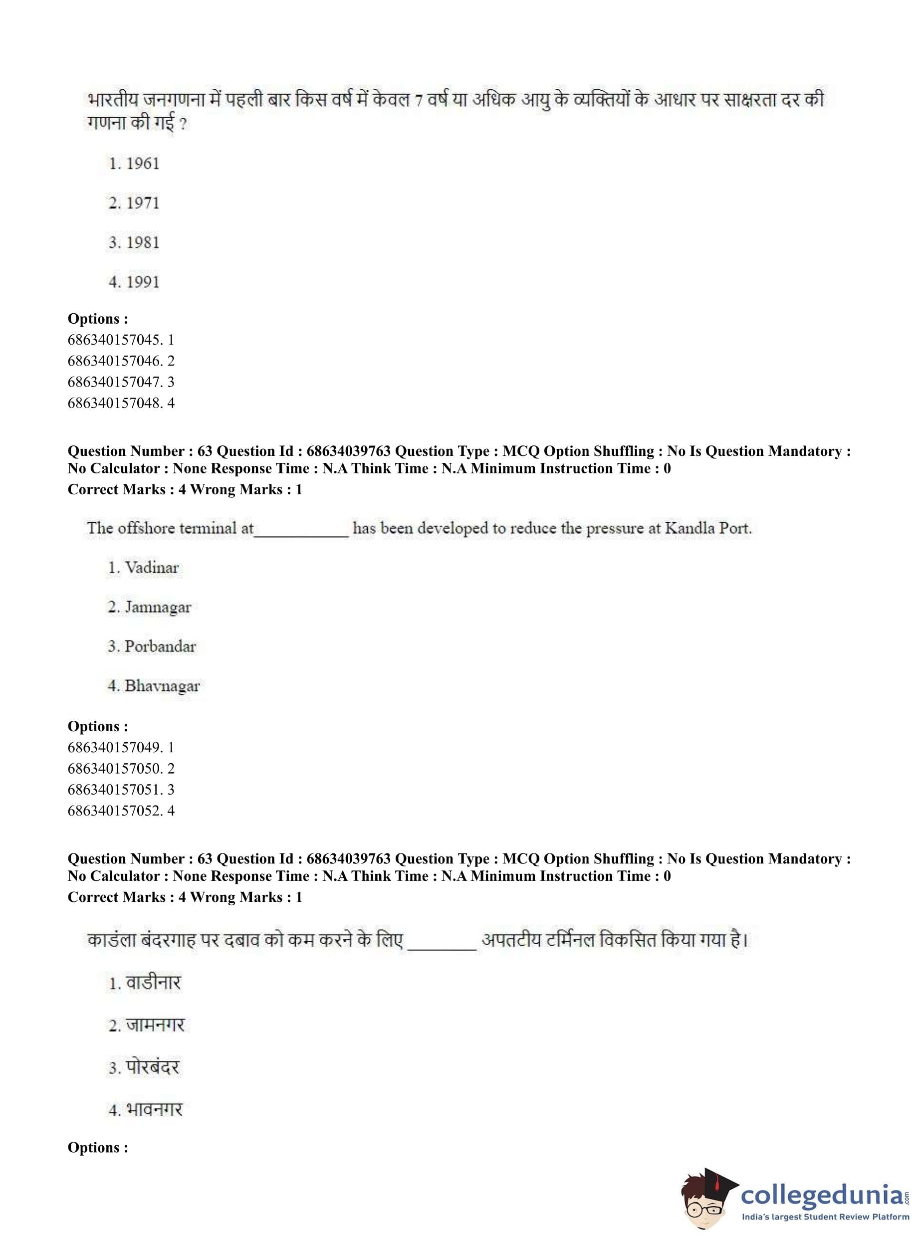 CUET PG 2023 Geography Question Paper in Hindi (June 25 - Shift 3)