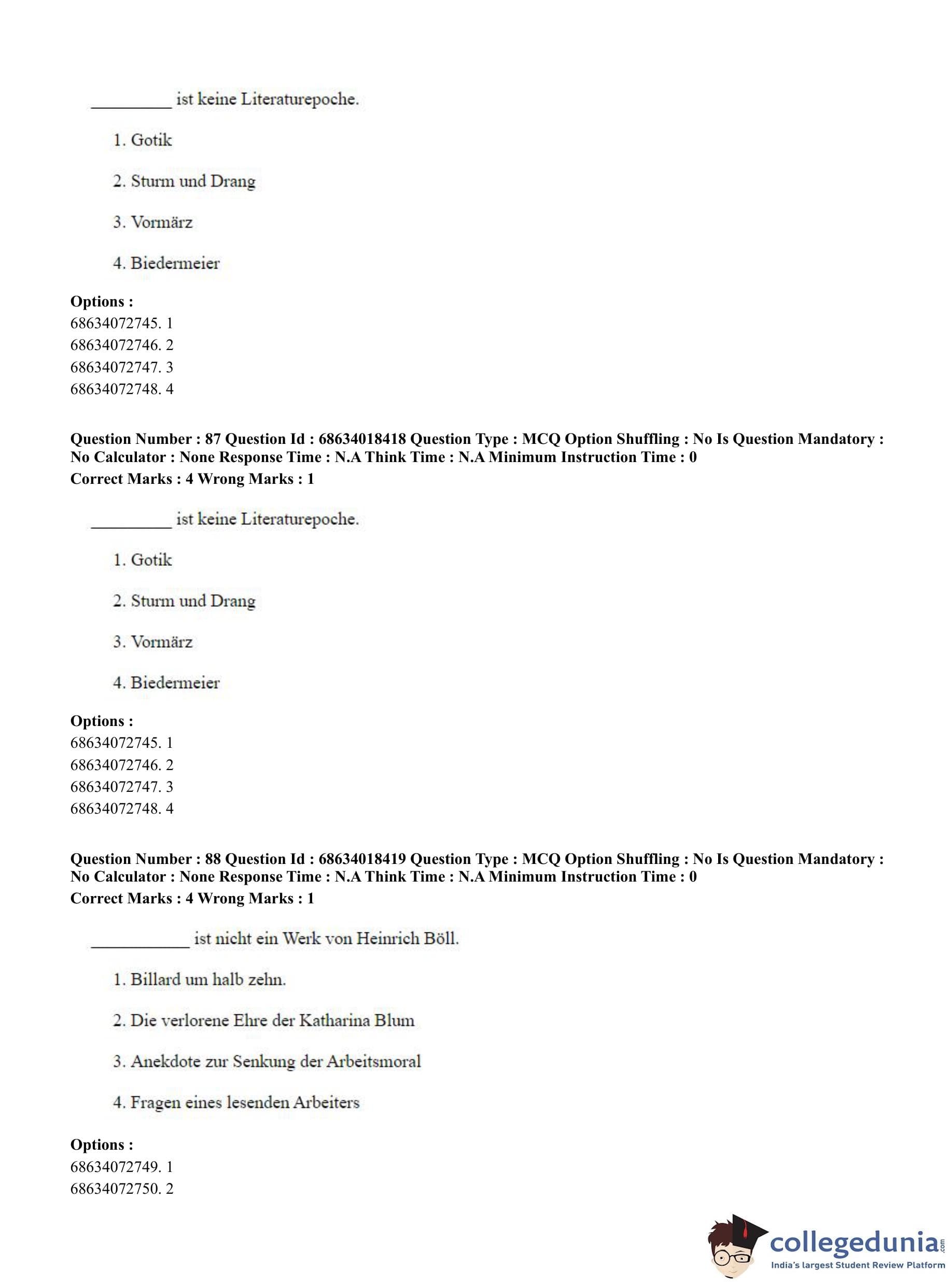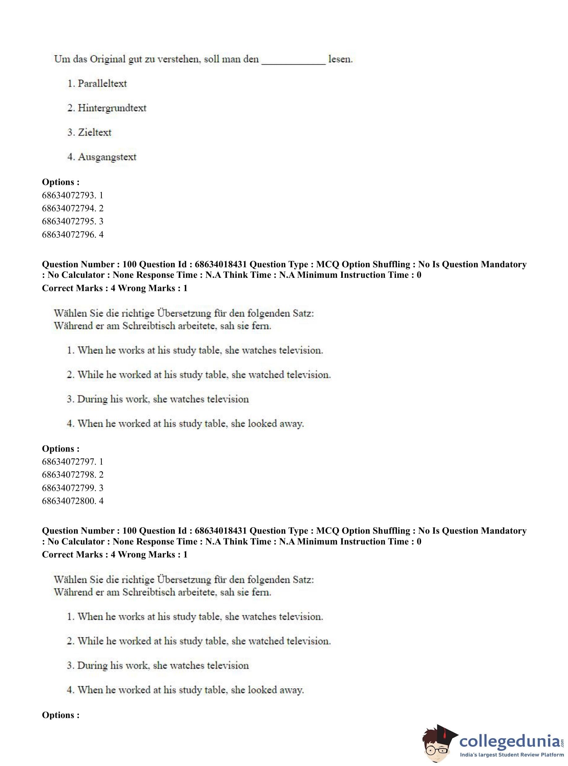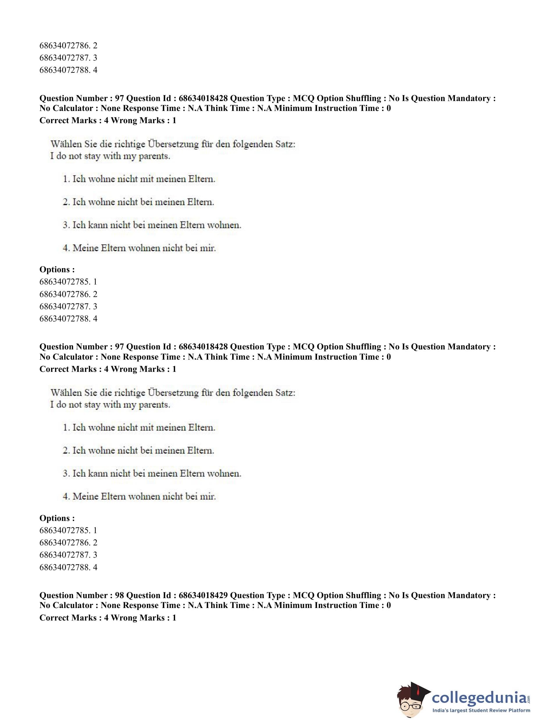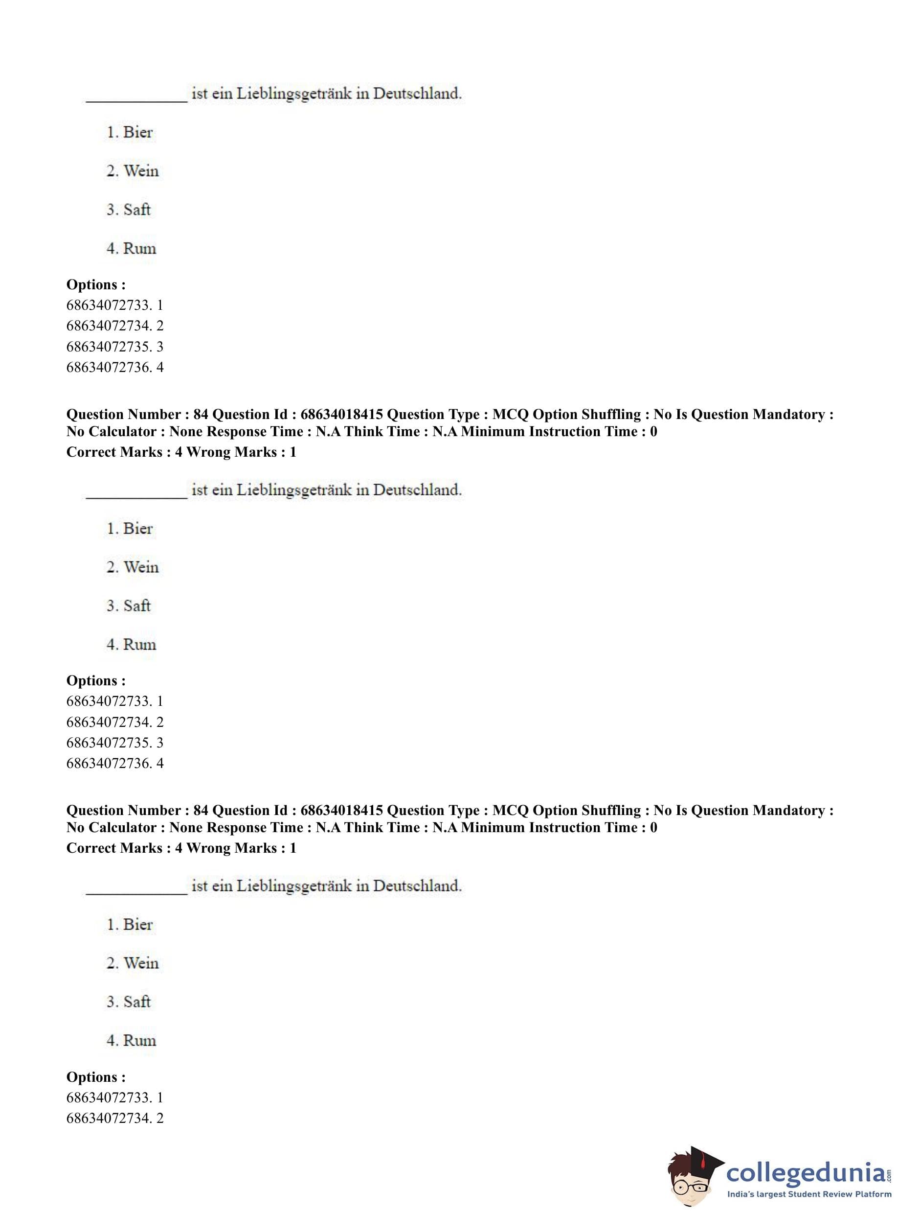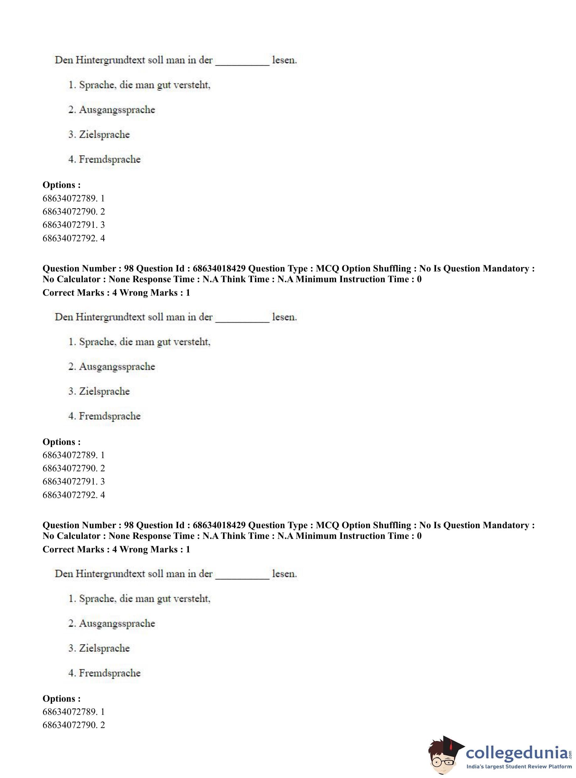 CUET PG 2023 German Question Paper in English (June 13 - Shift 3)