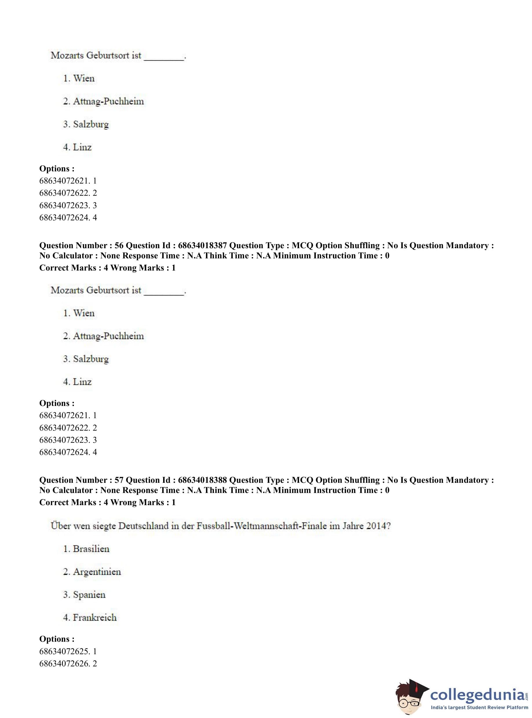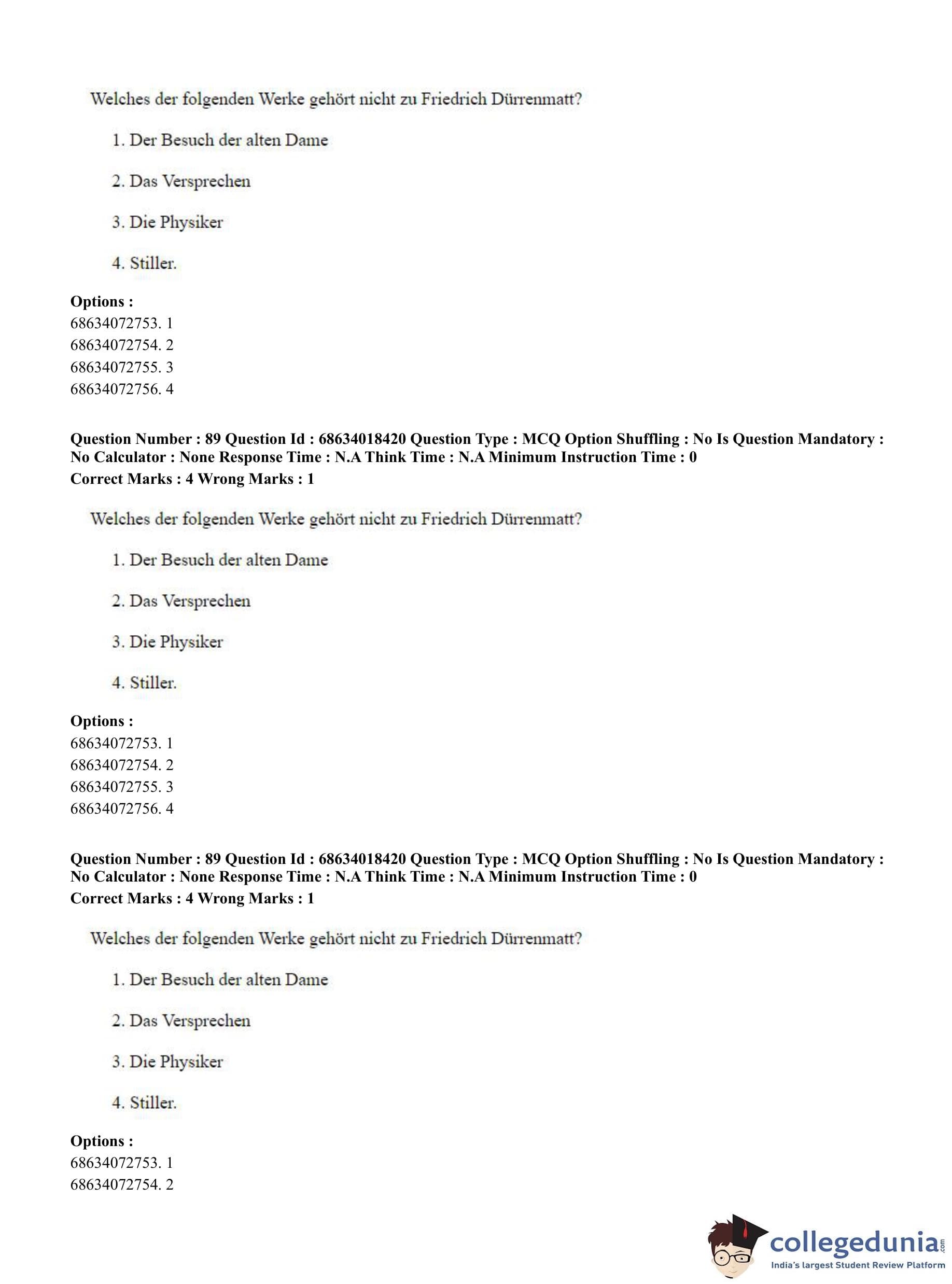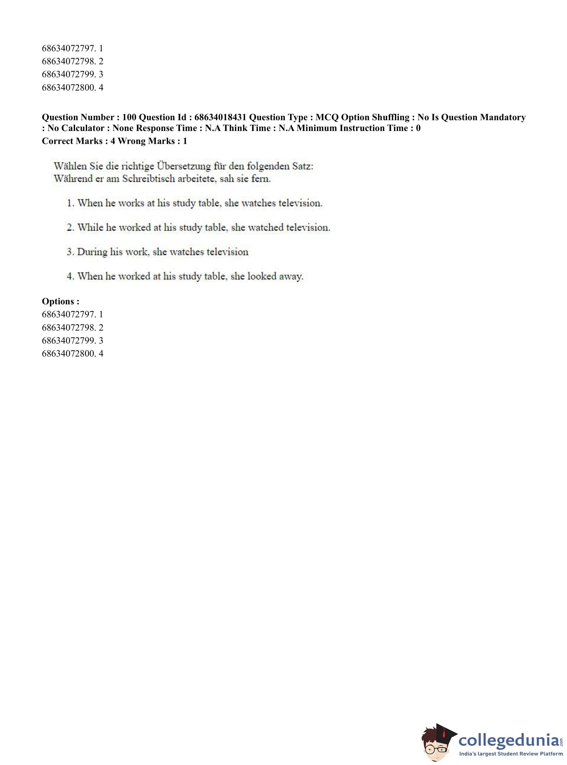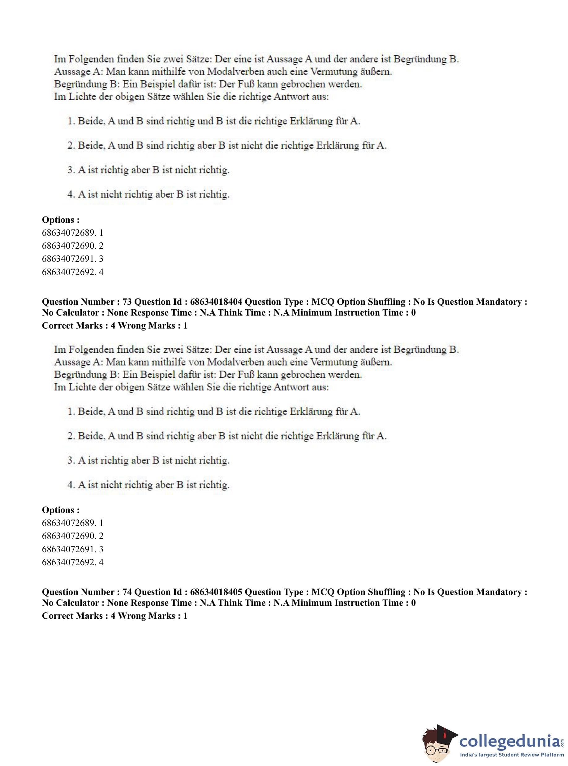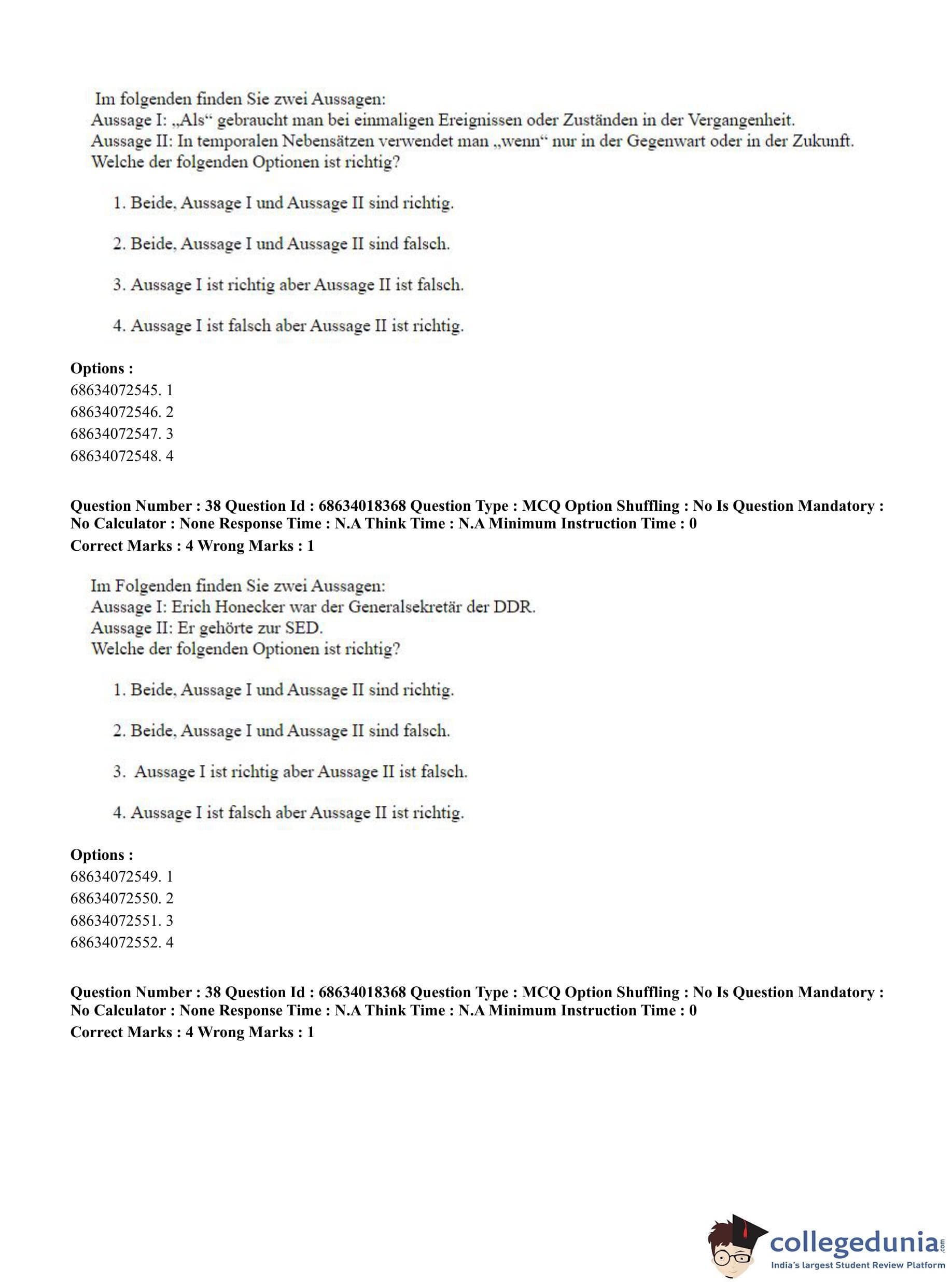CUET PG 2023 German Question Paper in English (June 13 - Shift 3)