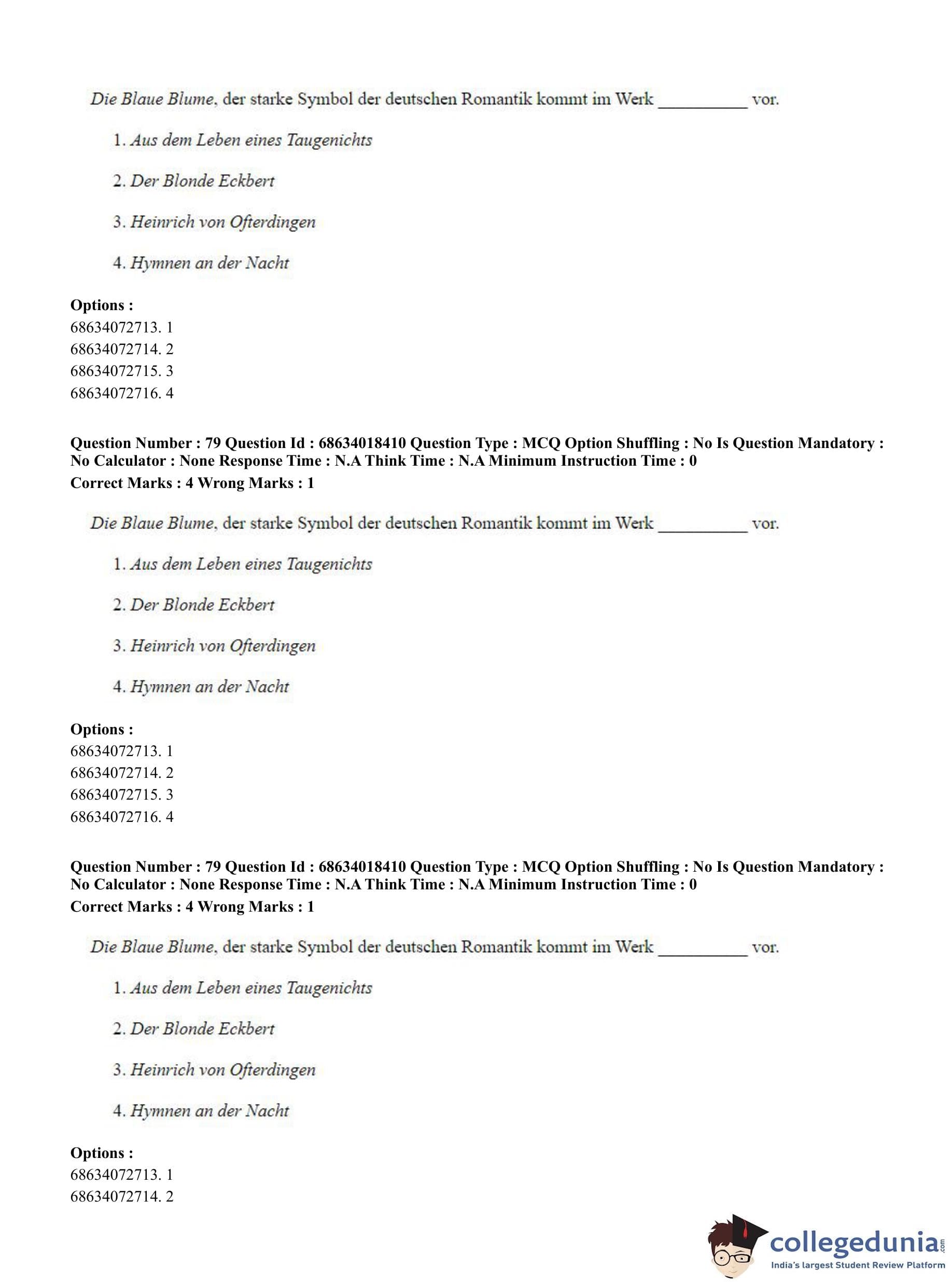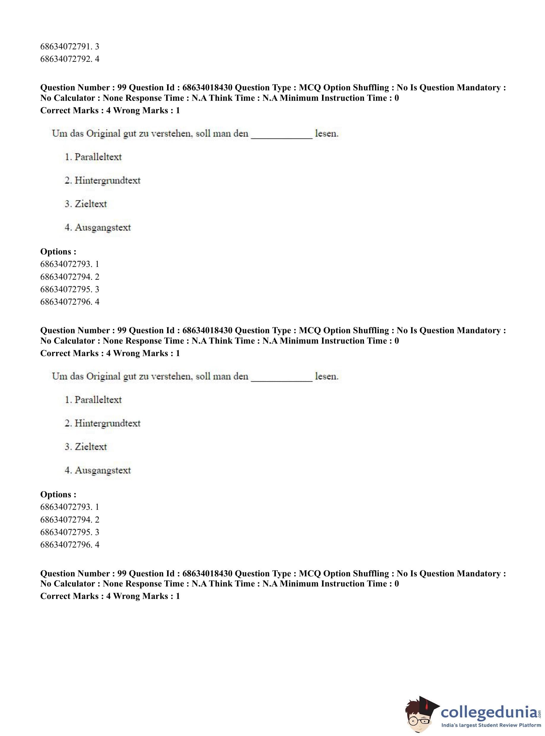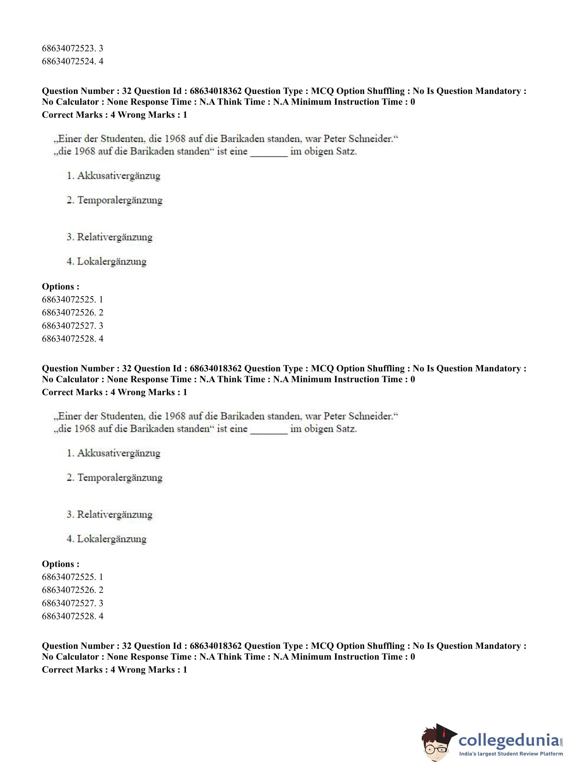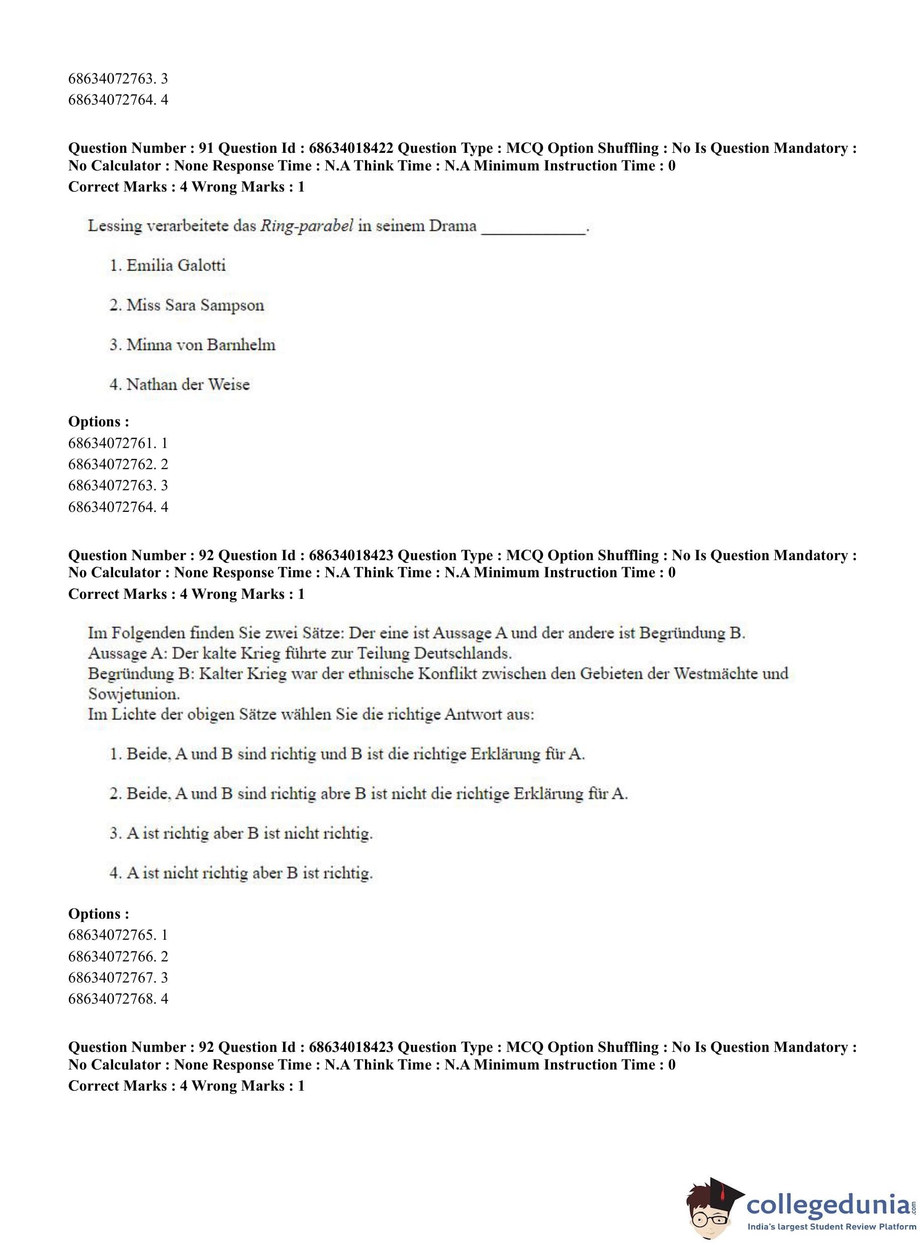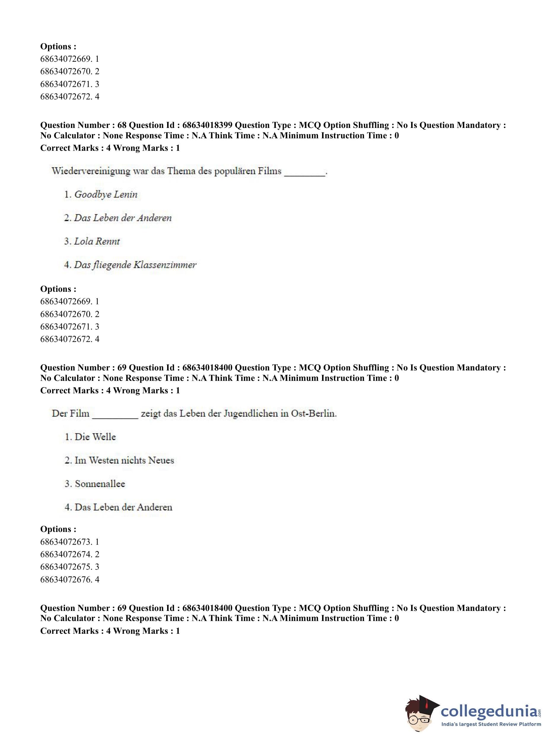 CUET PG 2023 German Question Paper in English (June 13 - Shift 3)