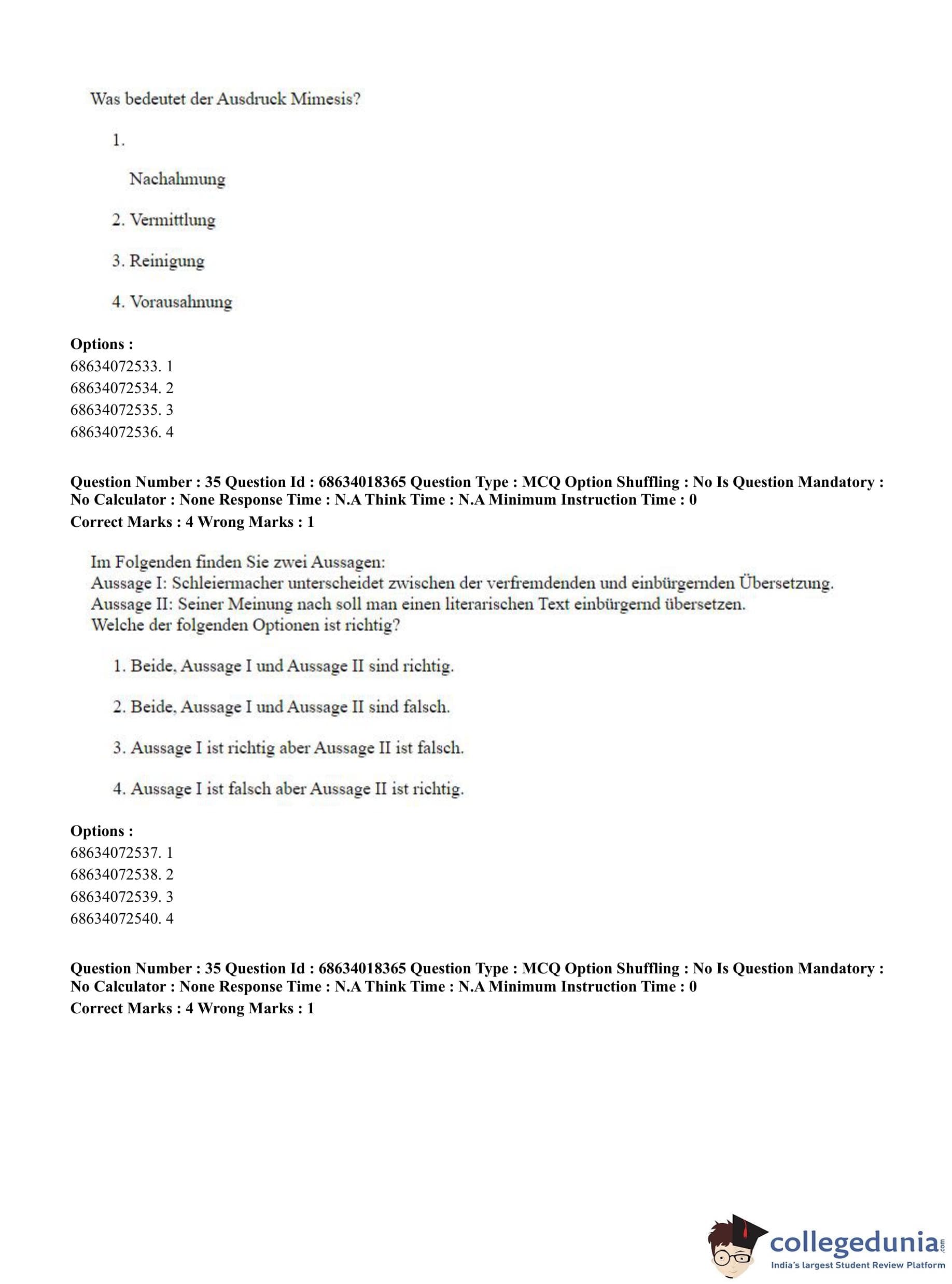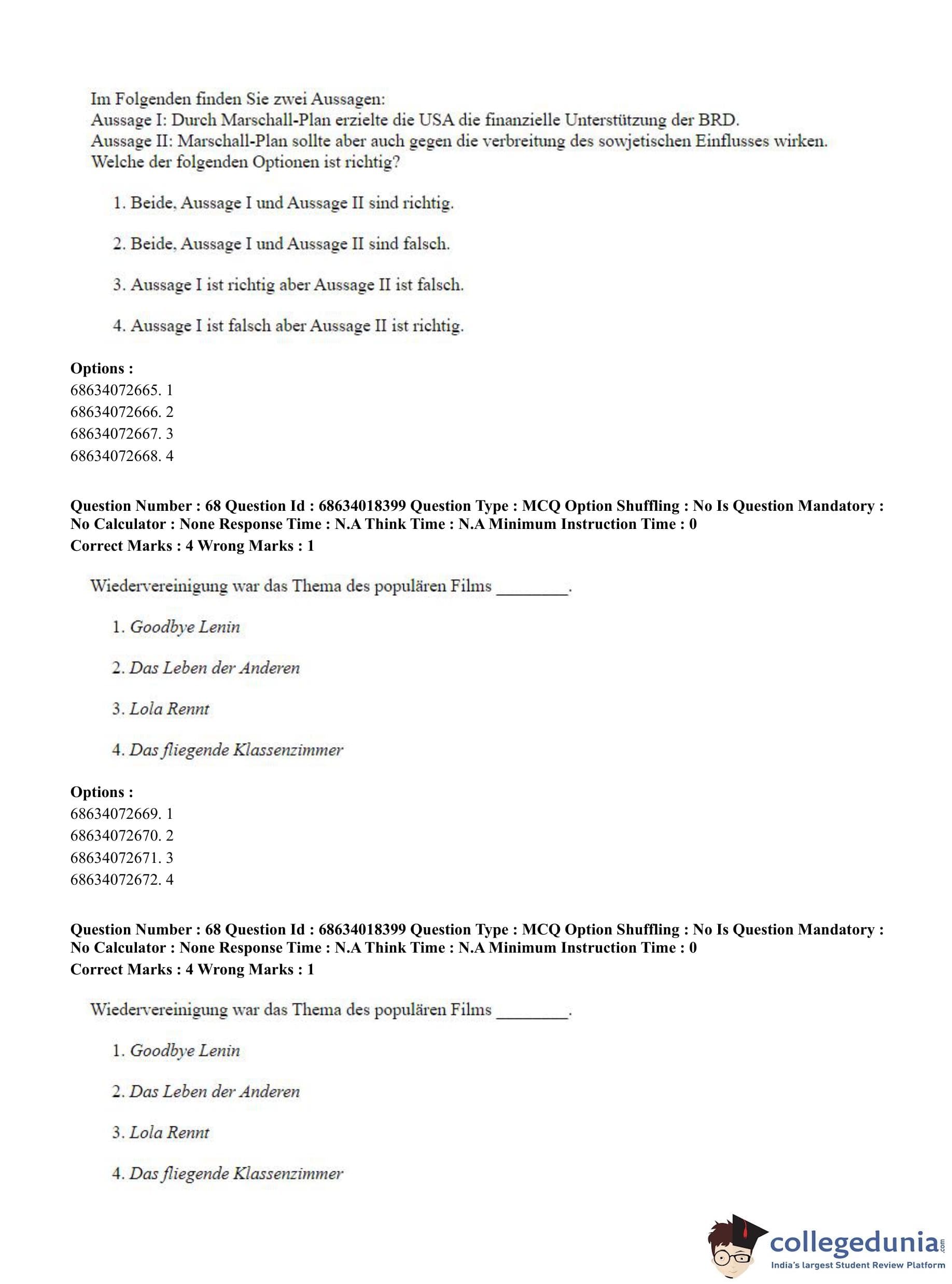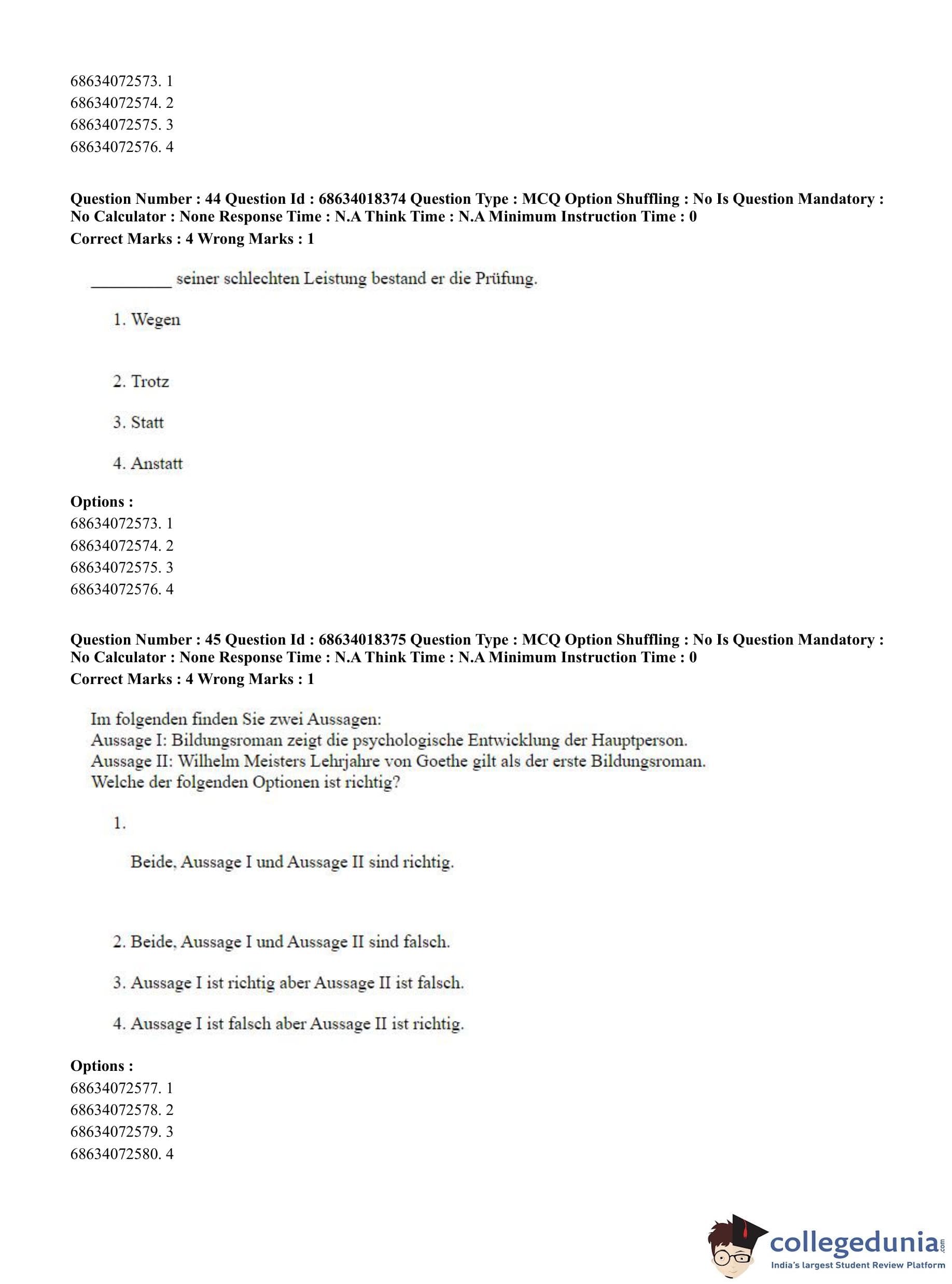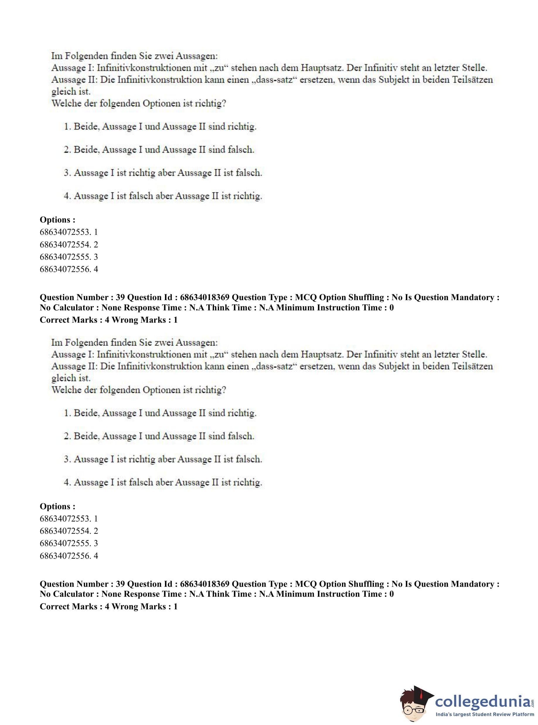 CUET PG 2023 German Question Paper in English (June 13 - Shift 3)
