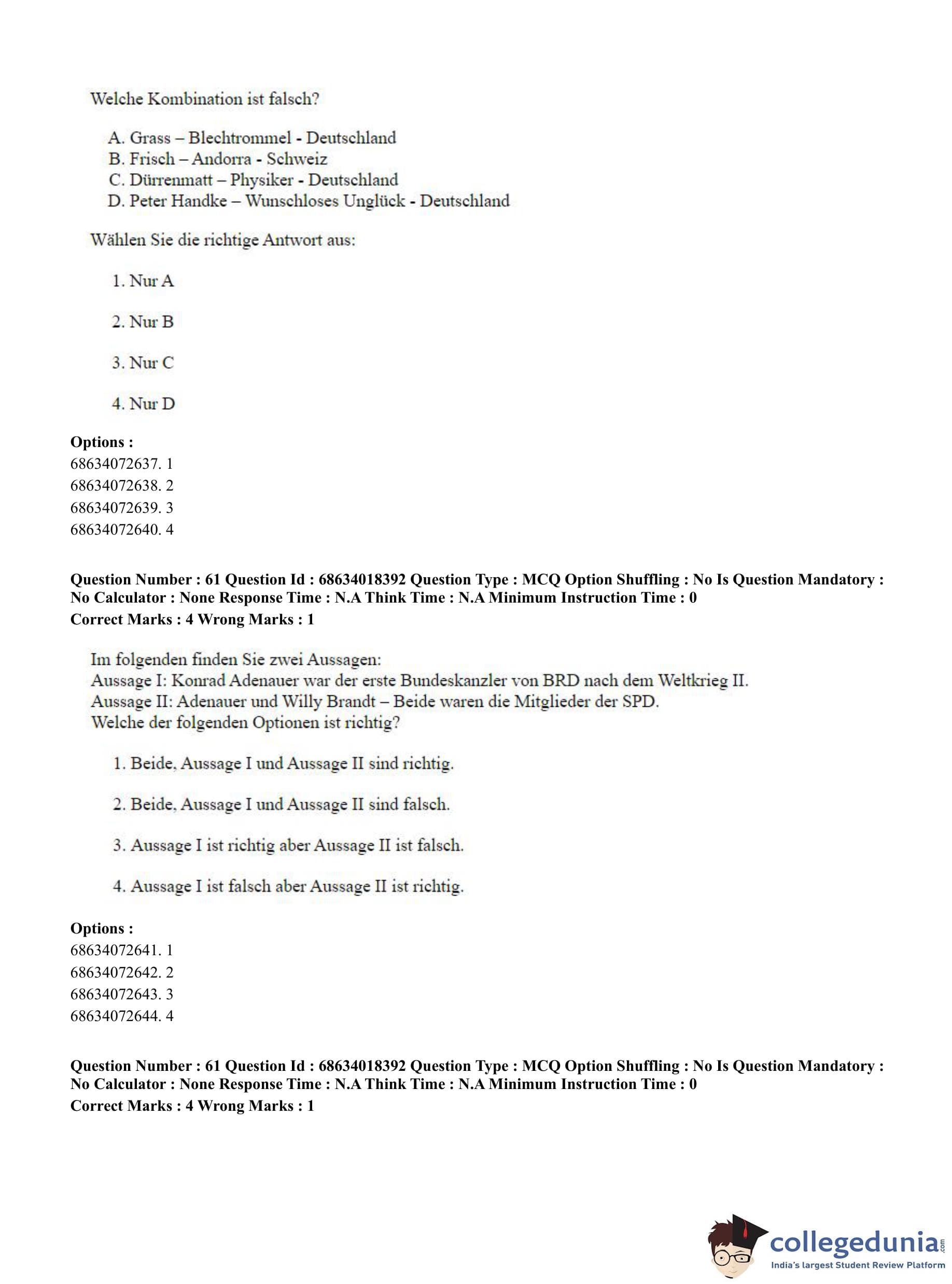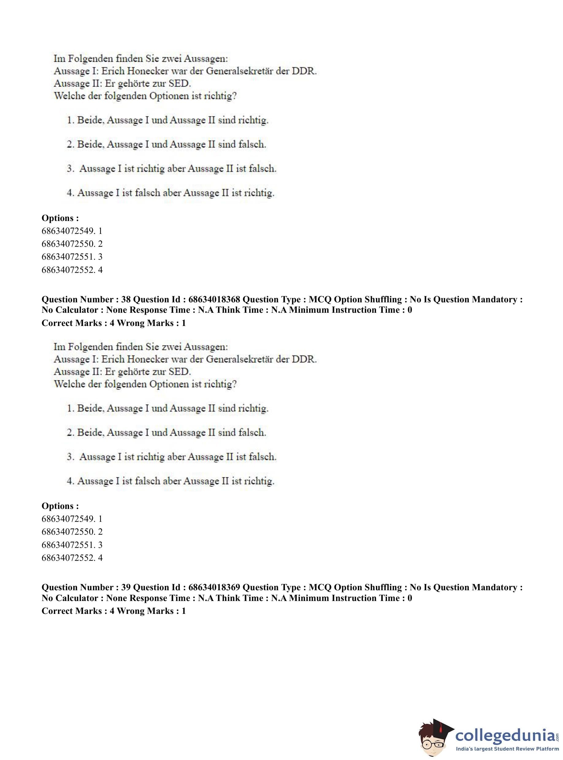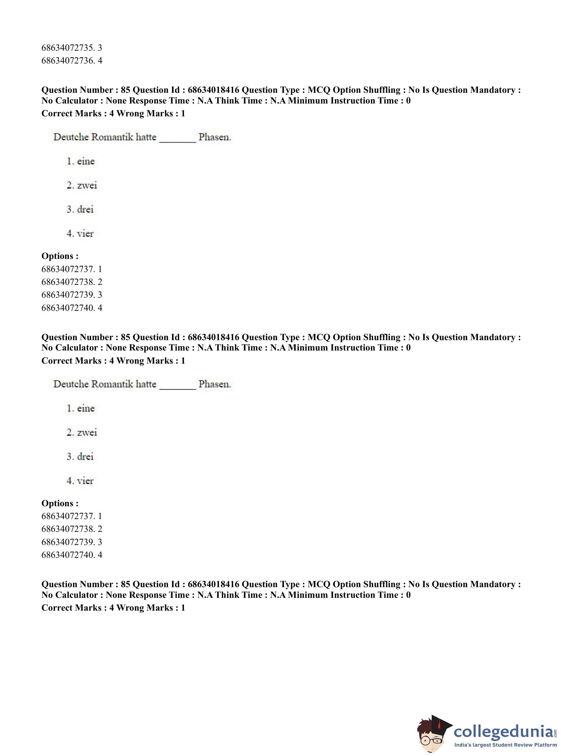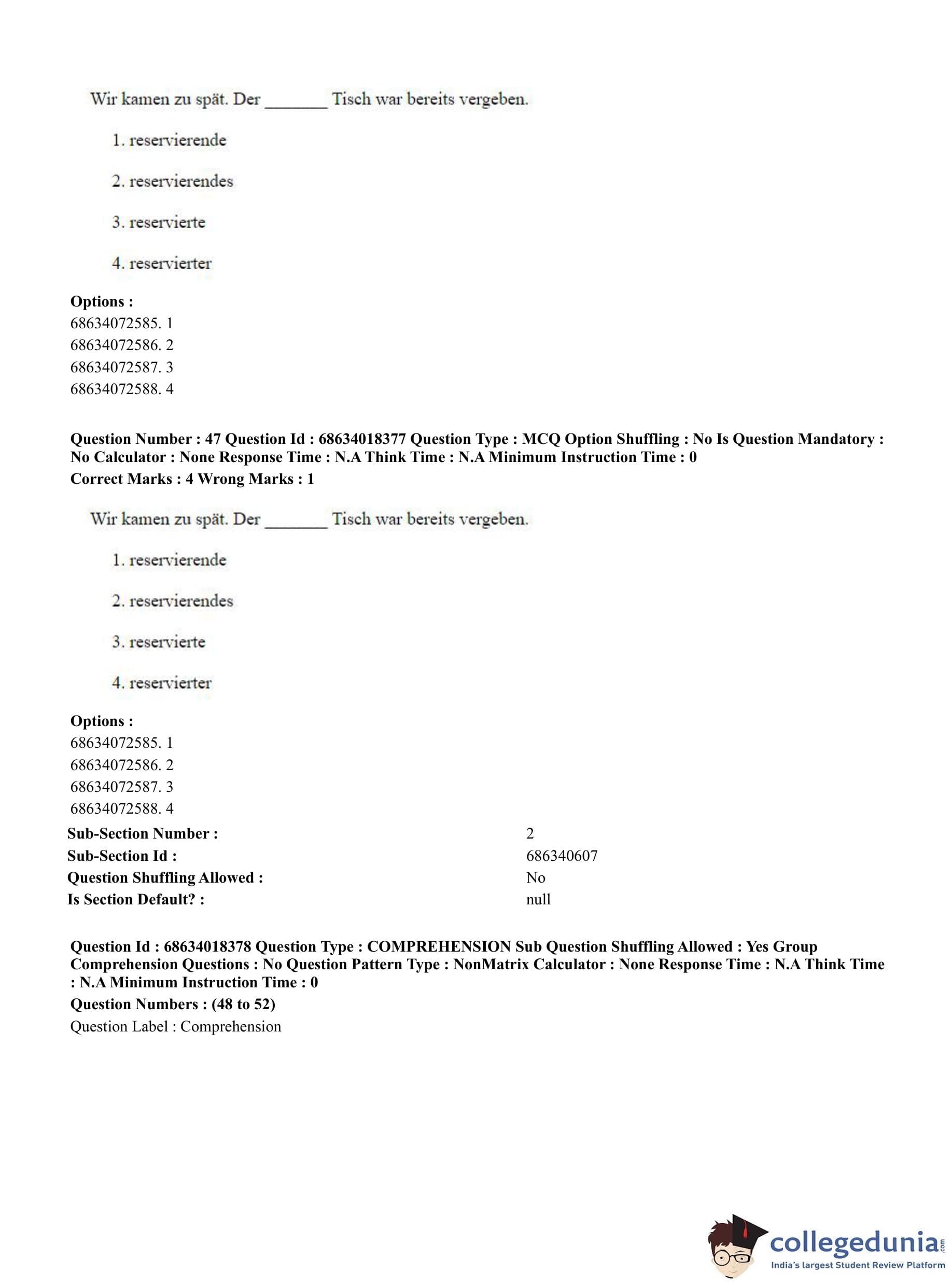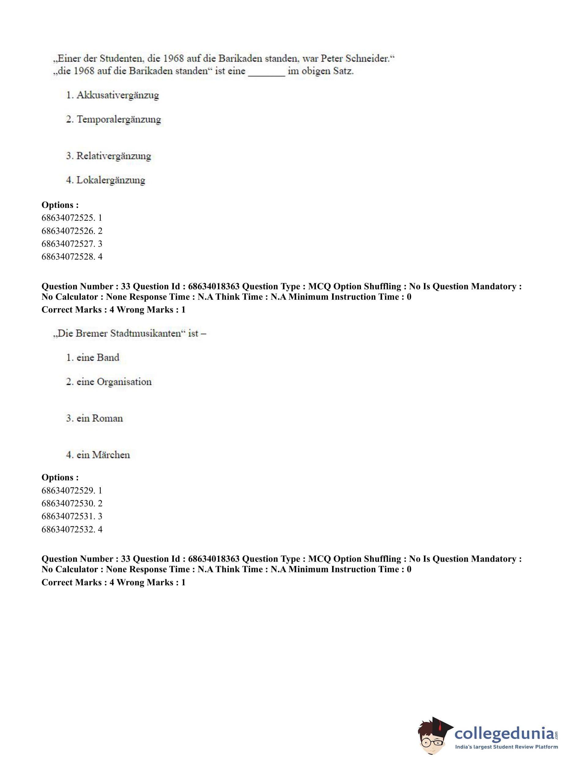 CUET PG 2023 German Question Paper in English (June 13 - Shift 3)