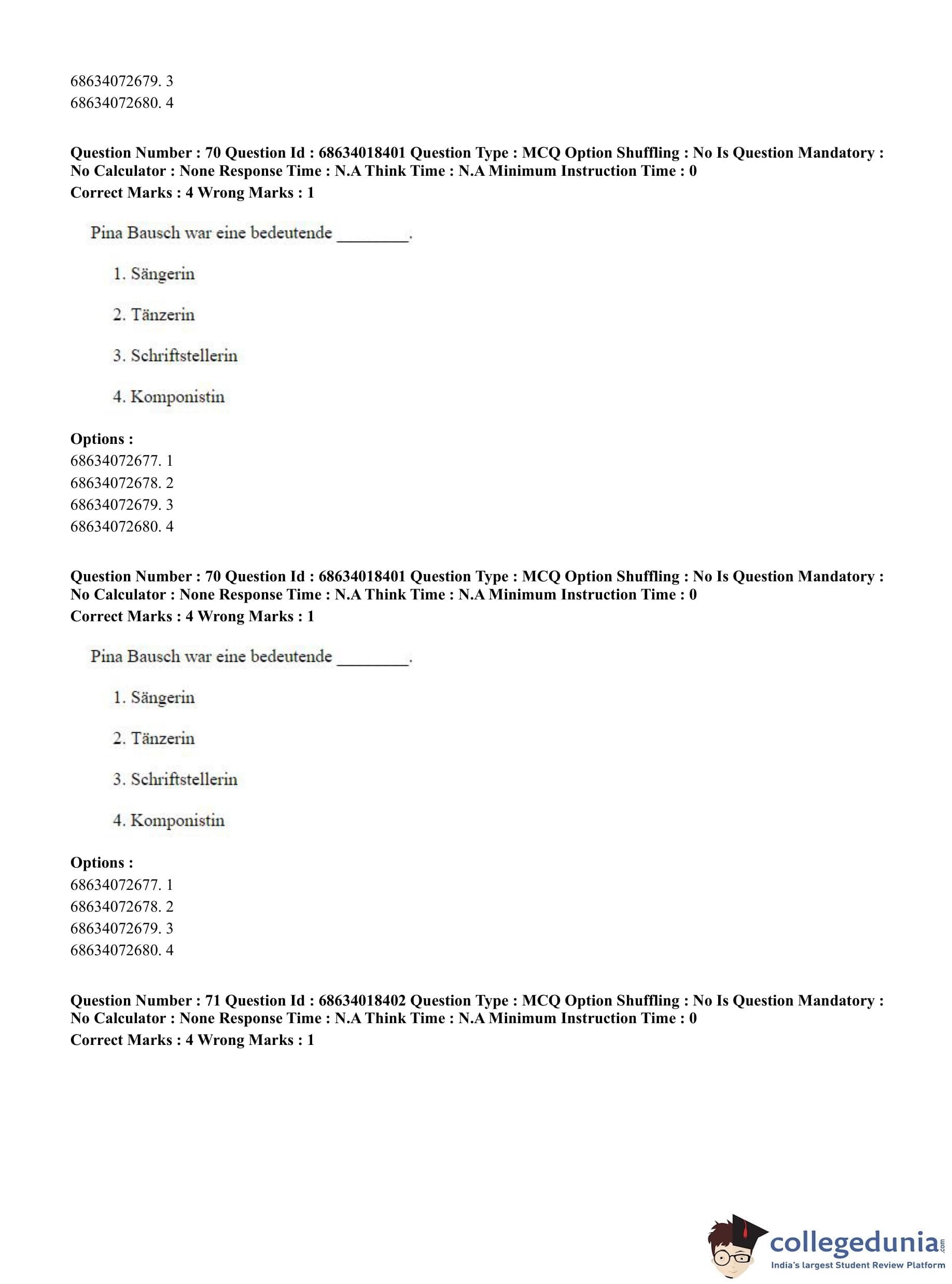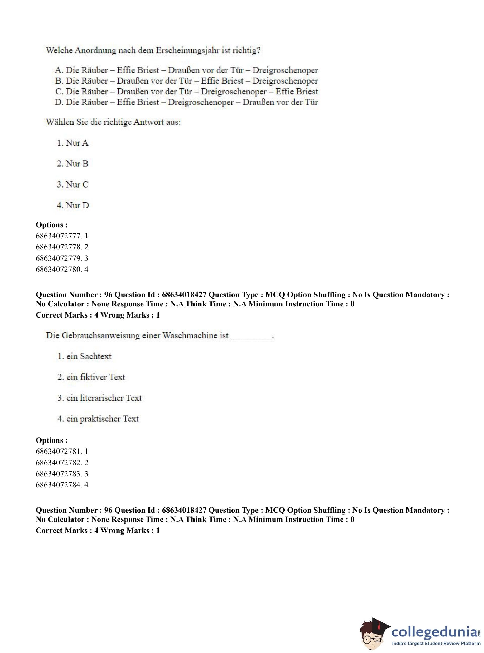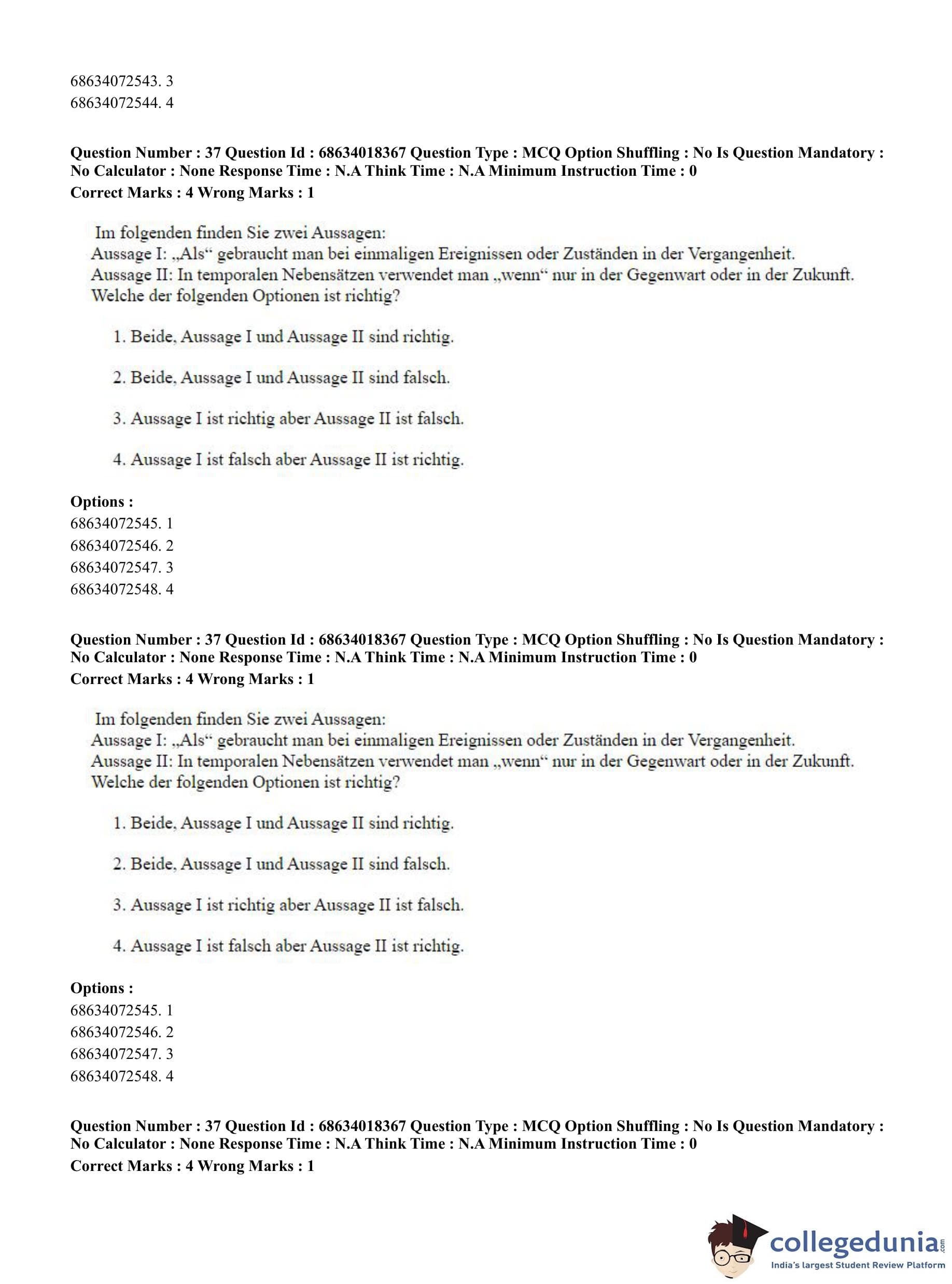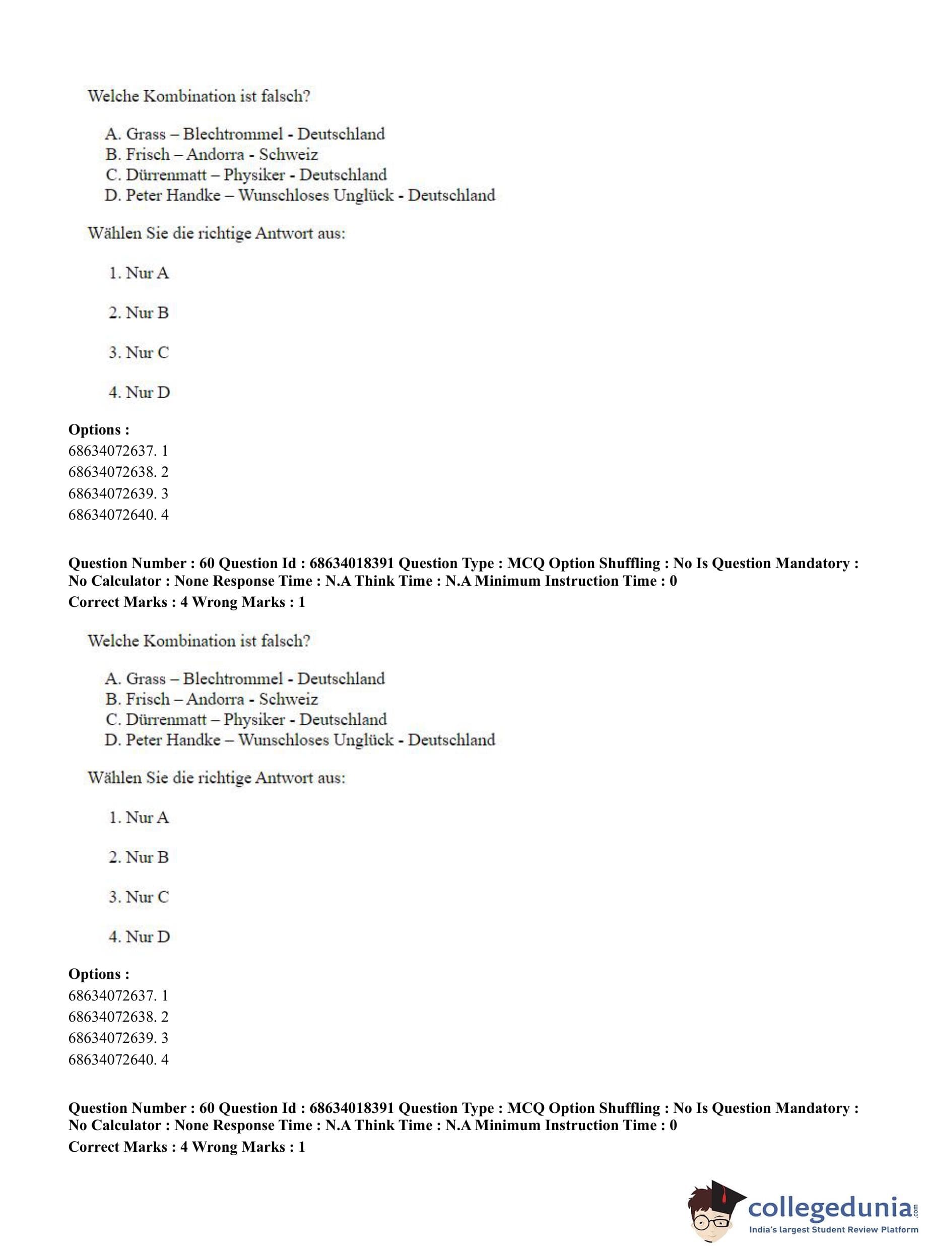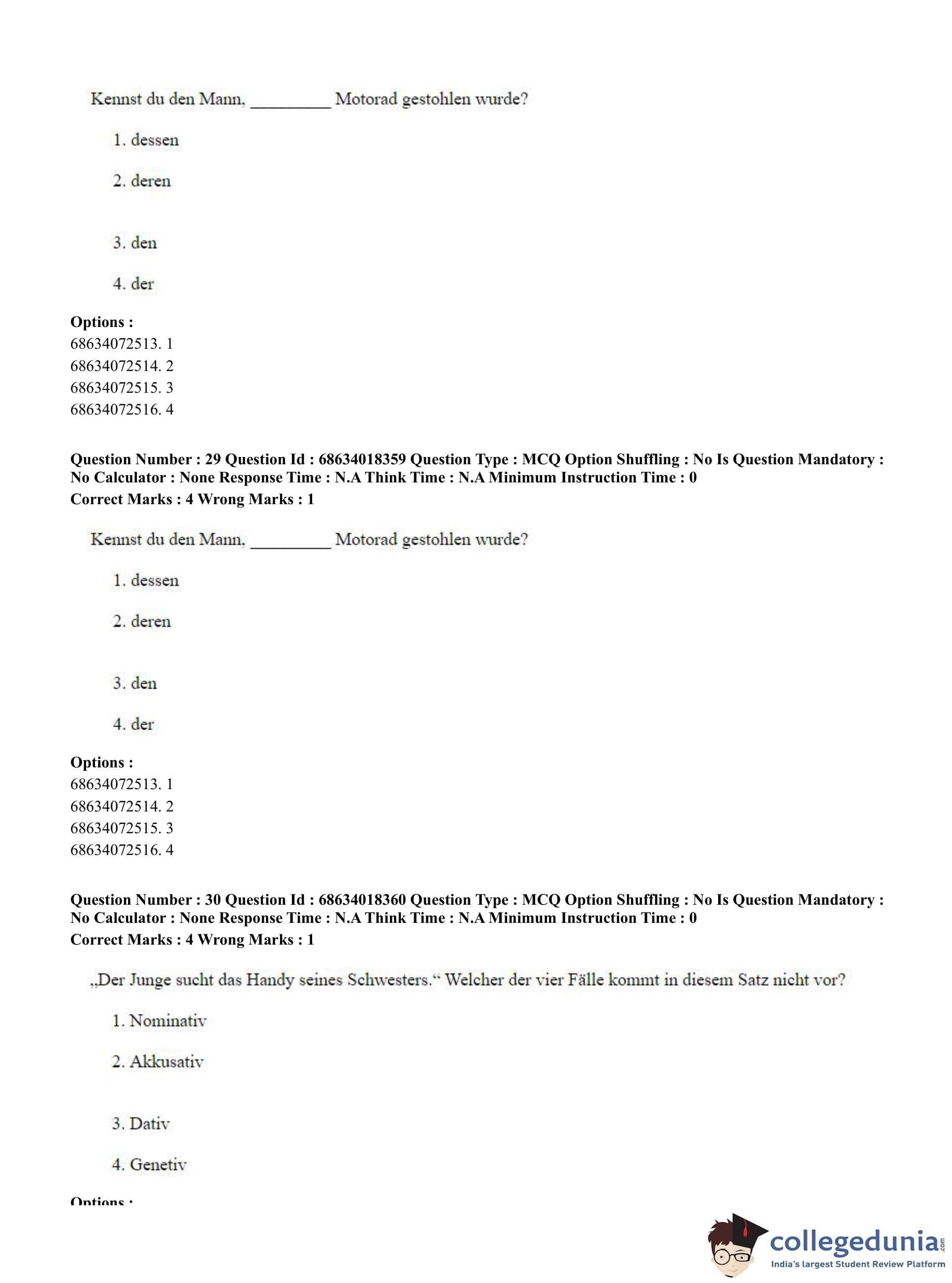 CUET PG 2023 German Question Paper in English (June 13 - Shift 3)