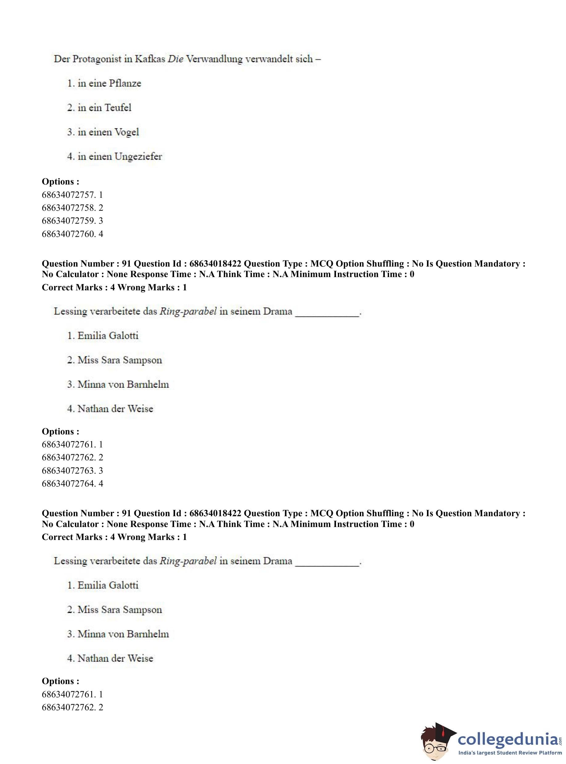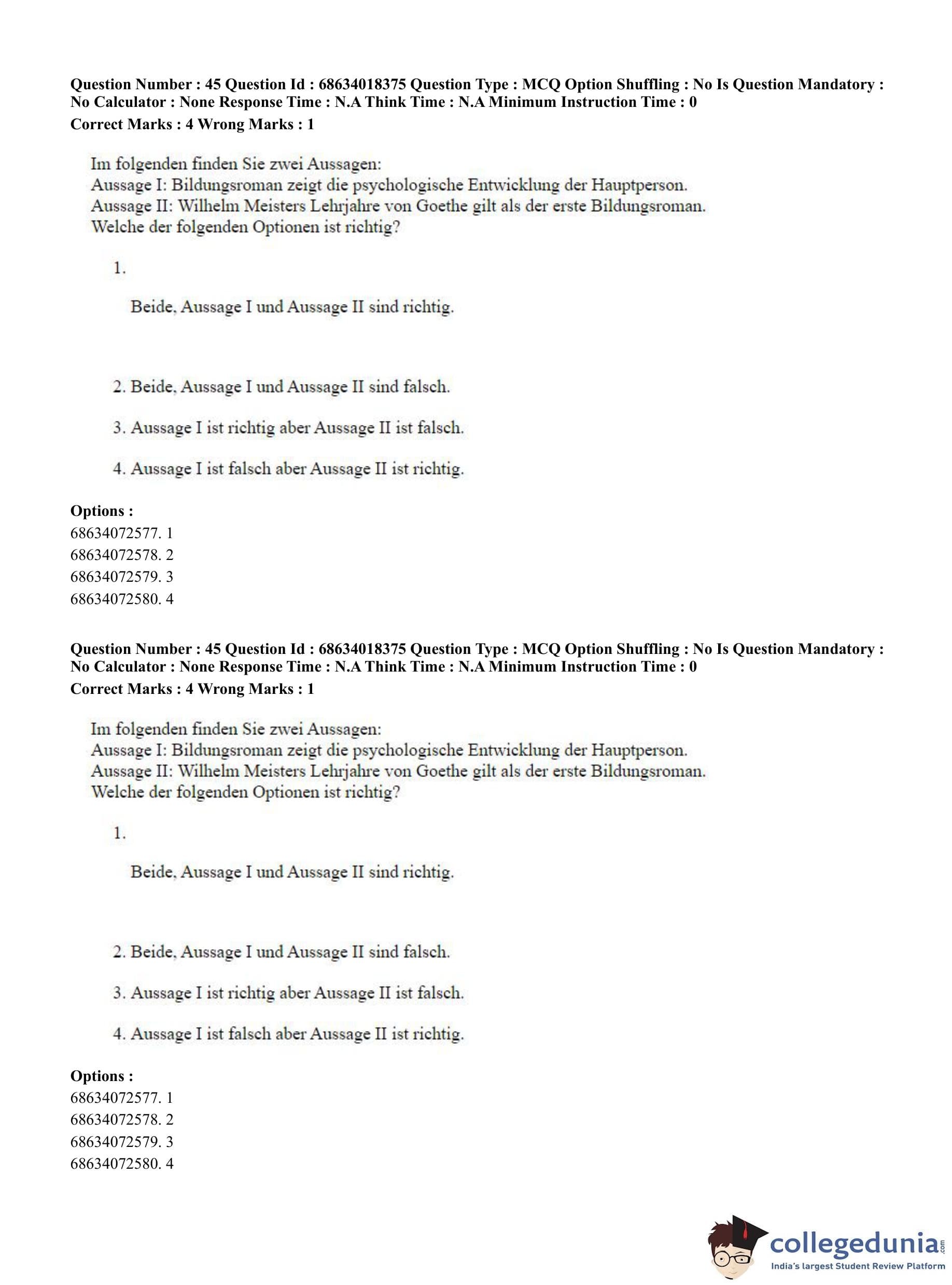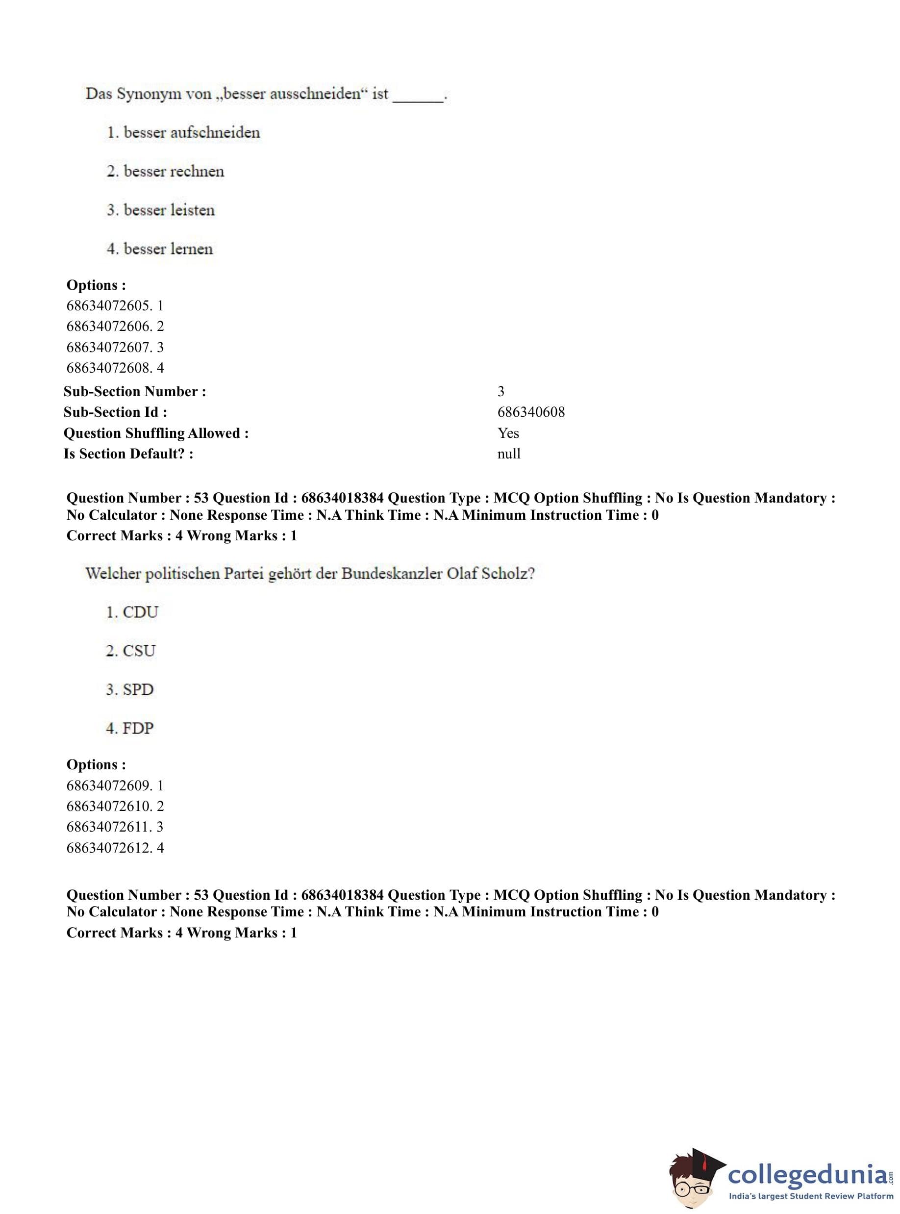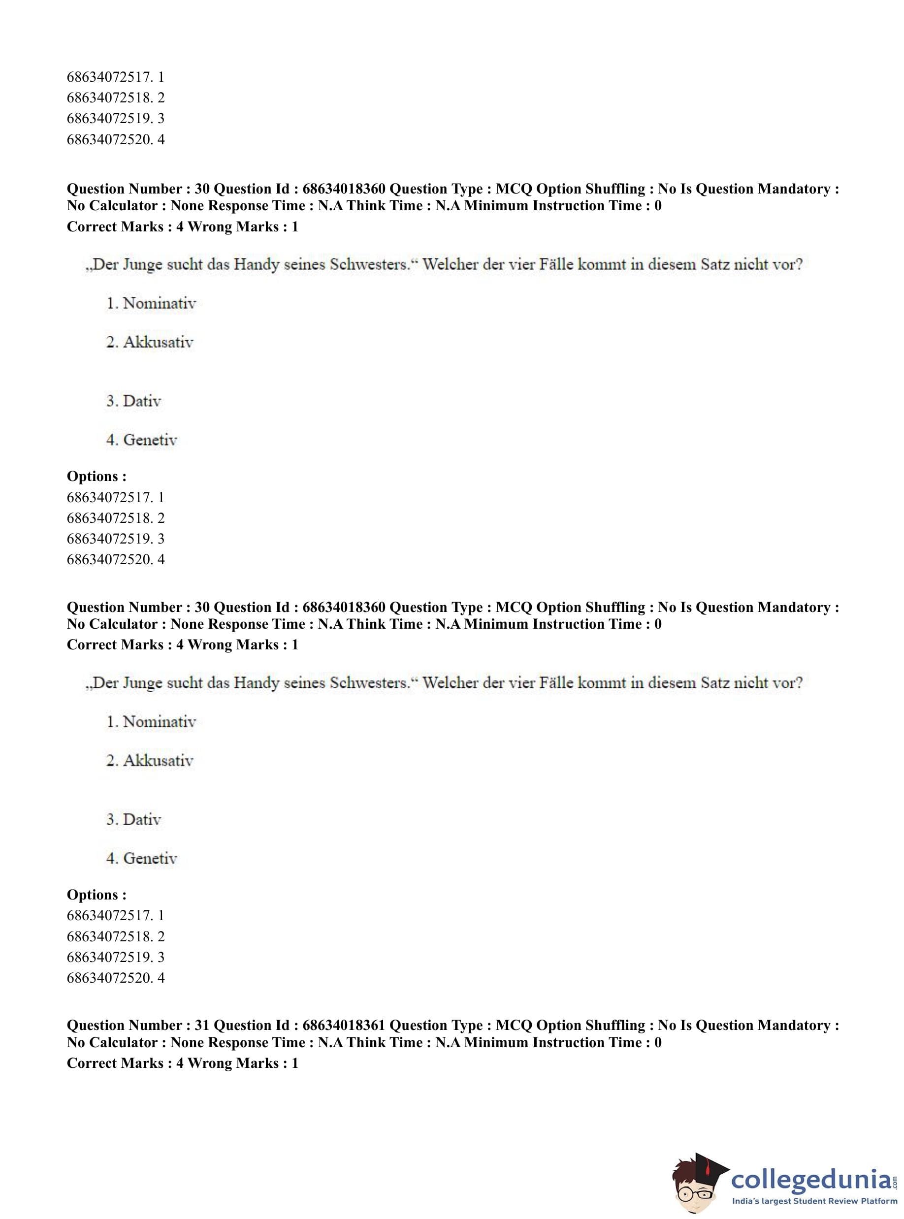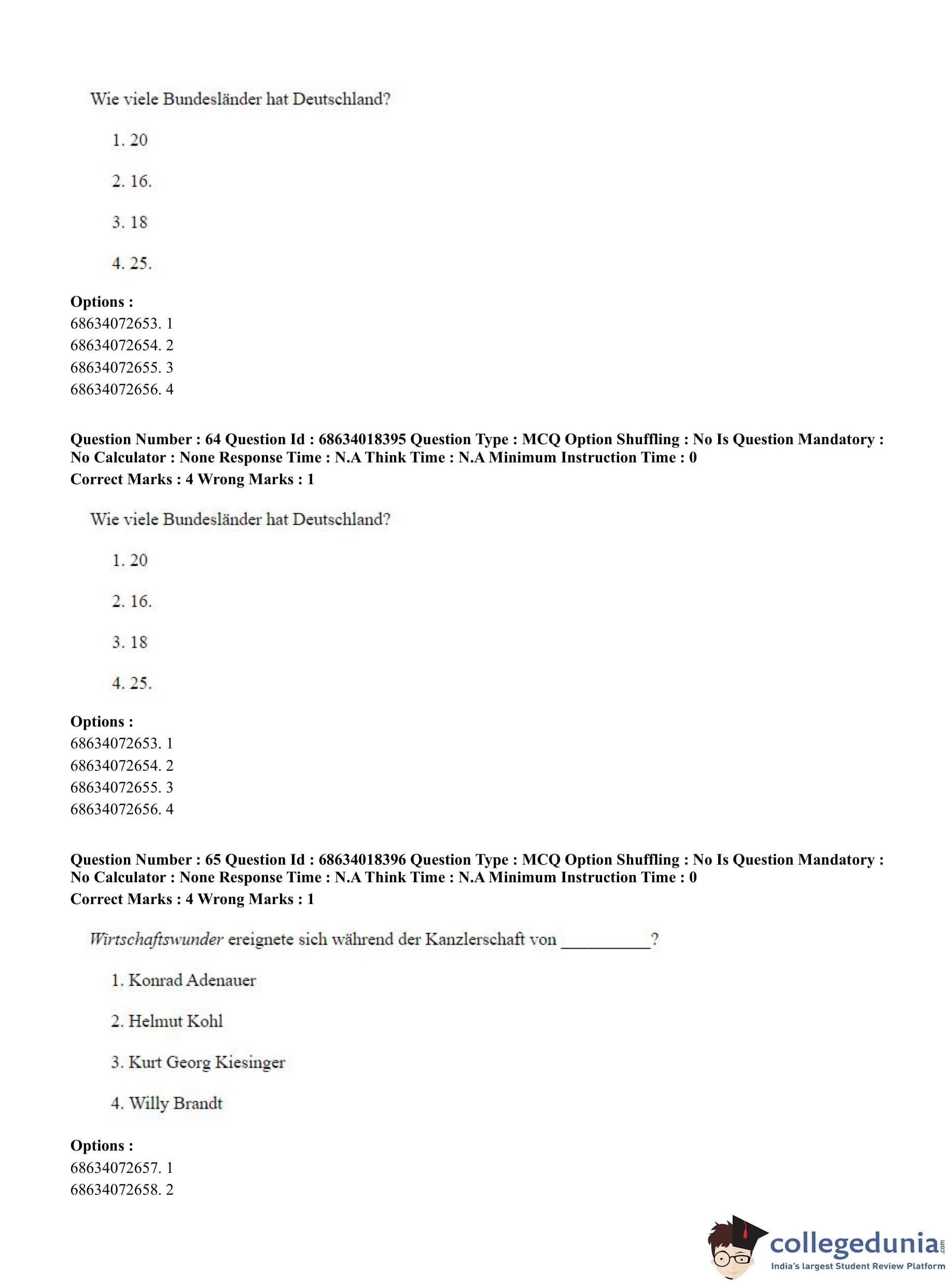 CUET PG 2023 German Question Paper in English (June 13 - Shift 3)