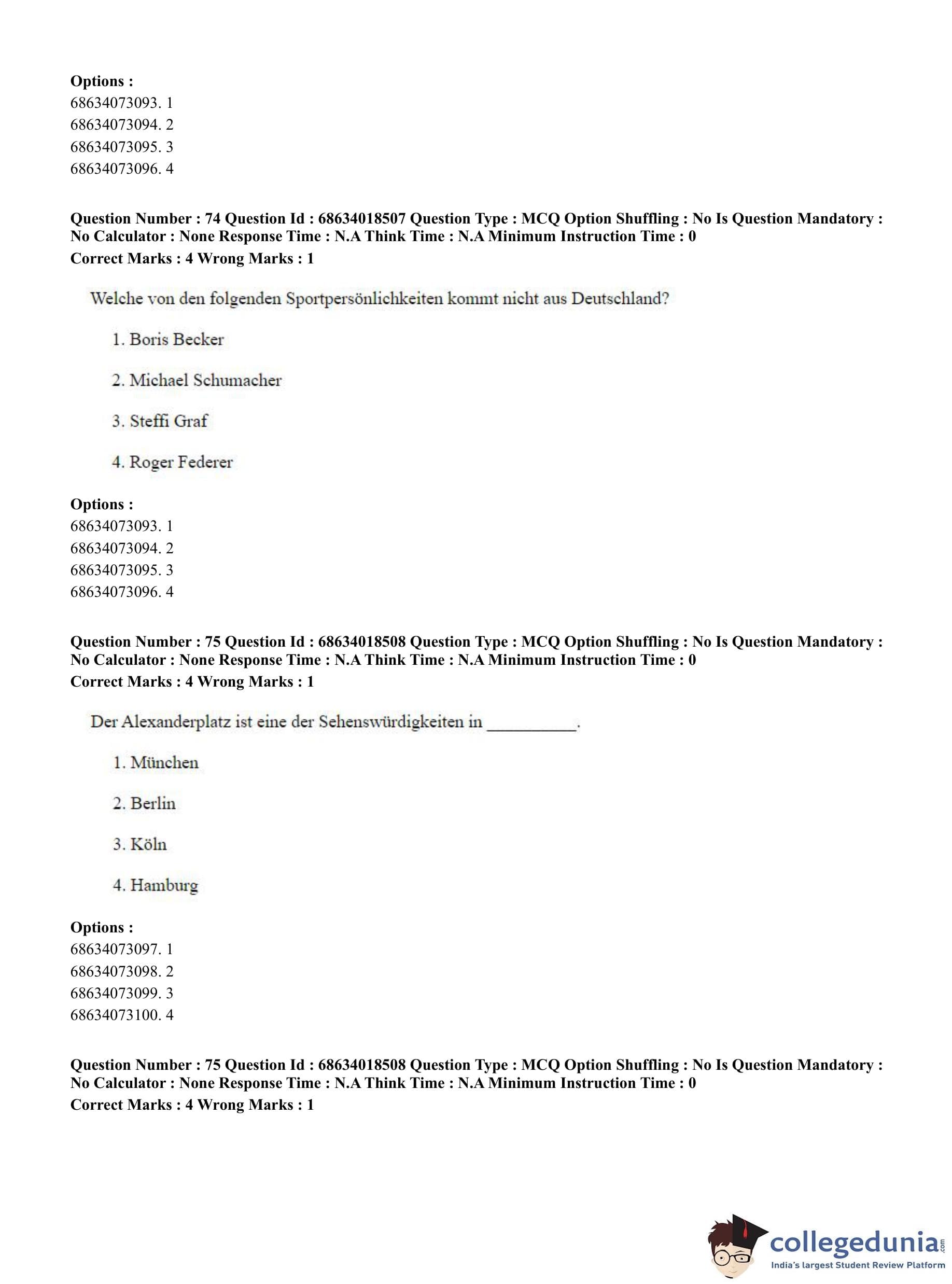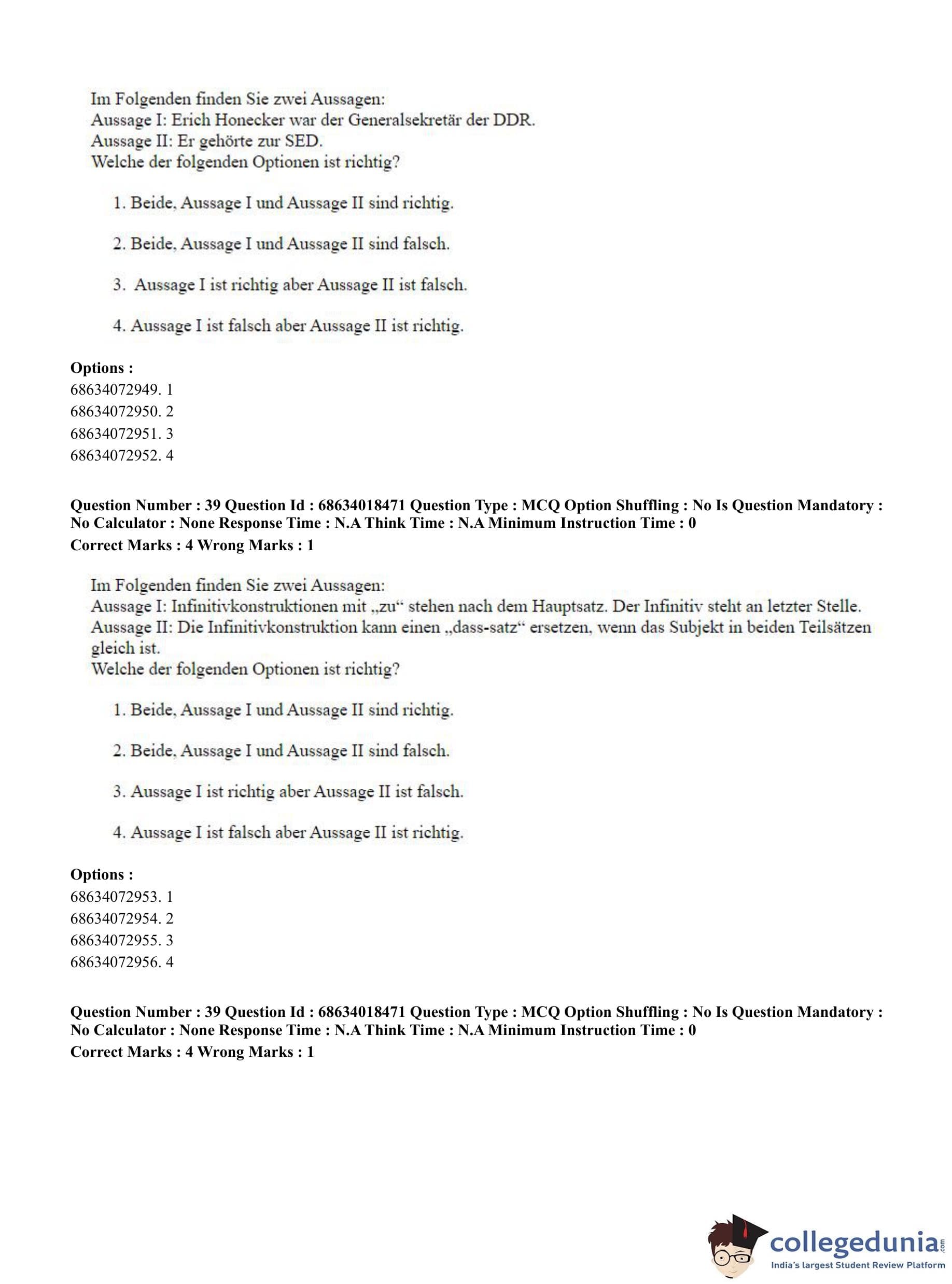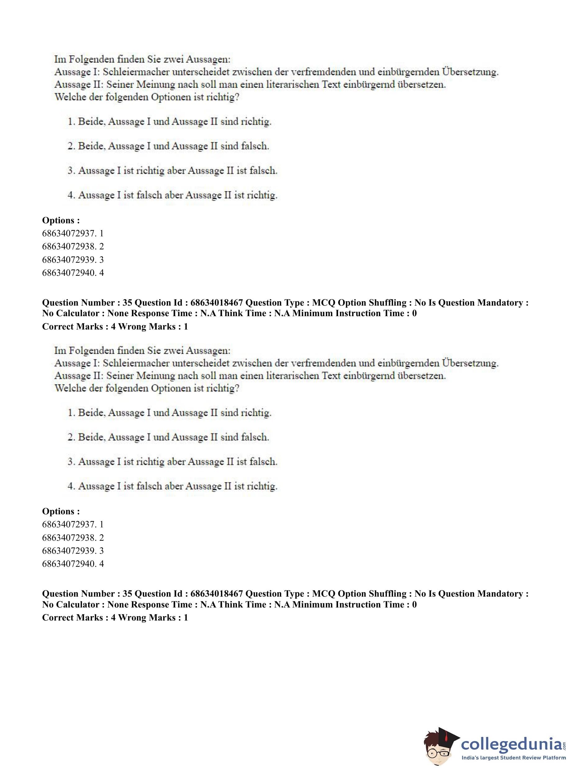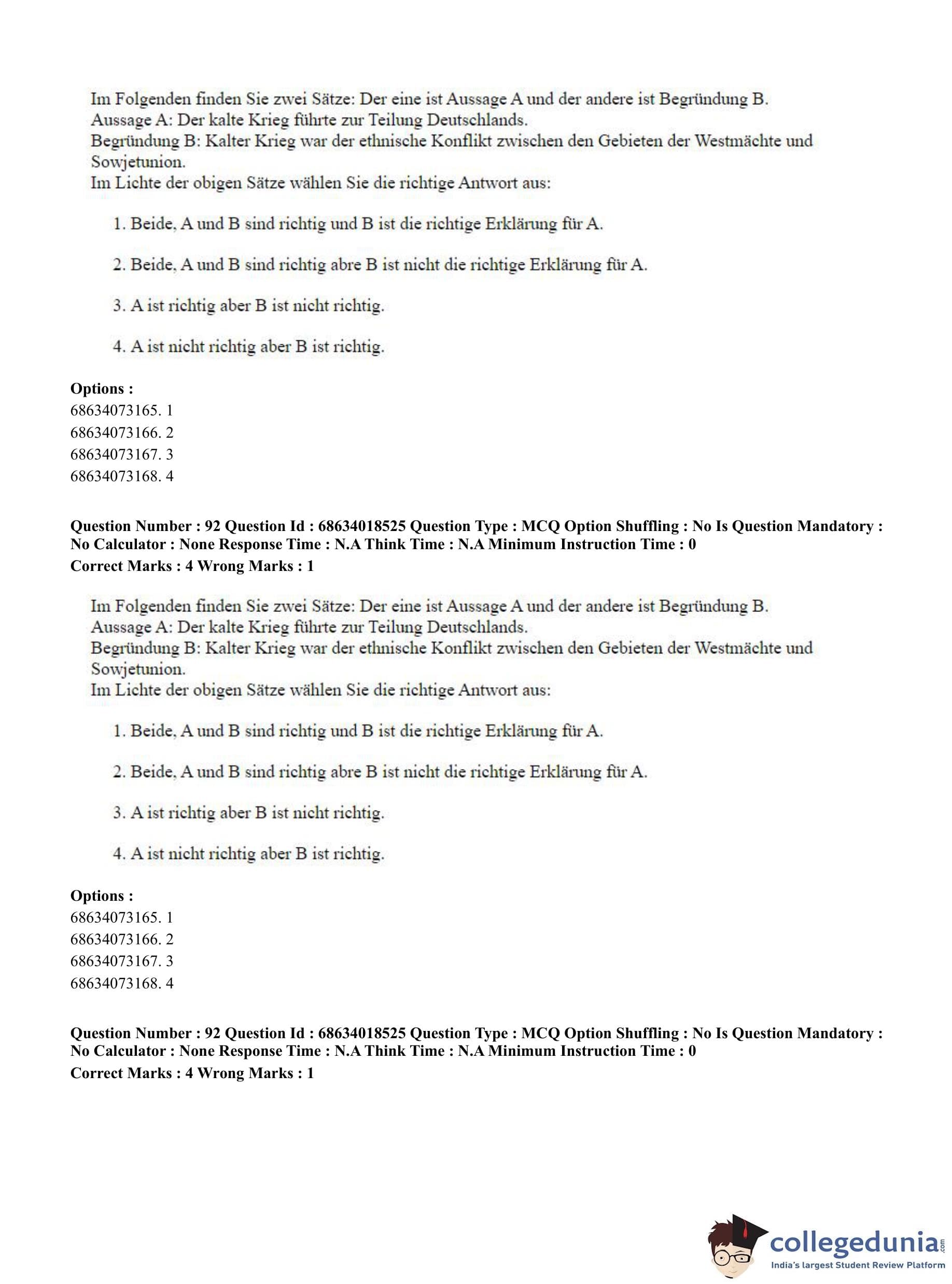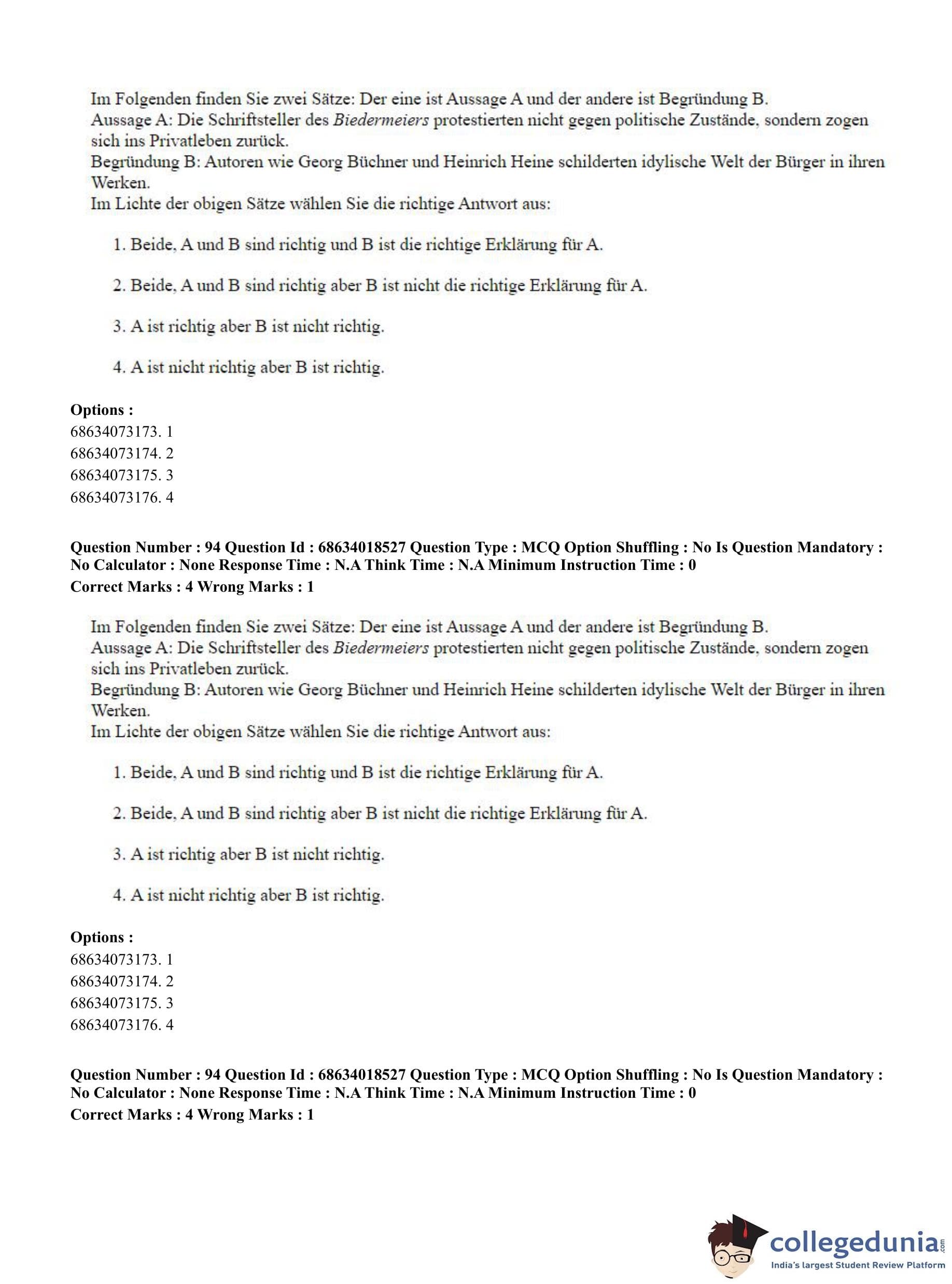CUET PG 2023 German Question Paper in Hindi (June 13 - Shift 3)
