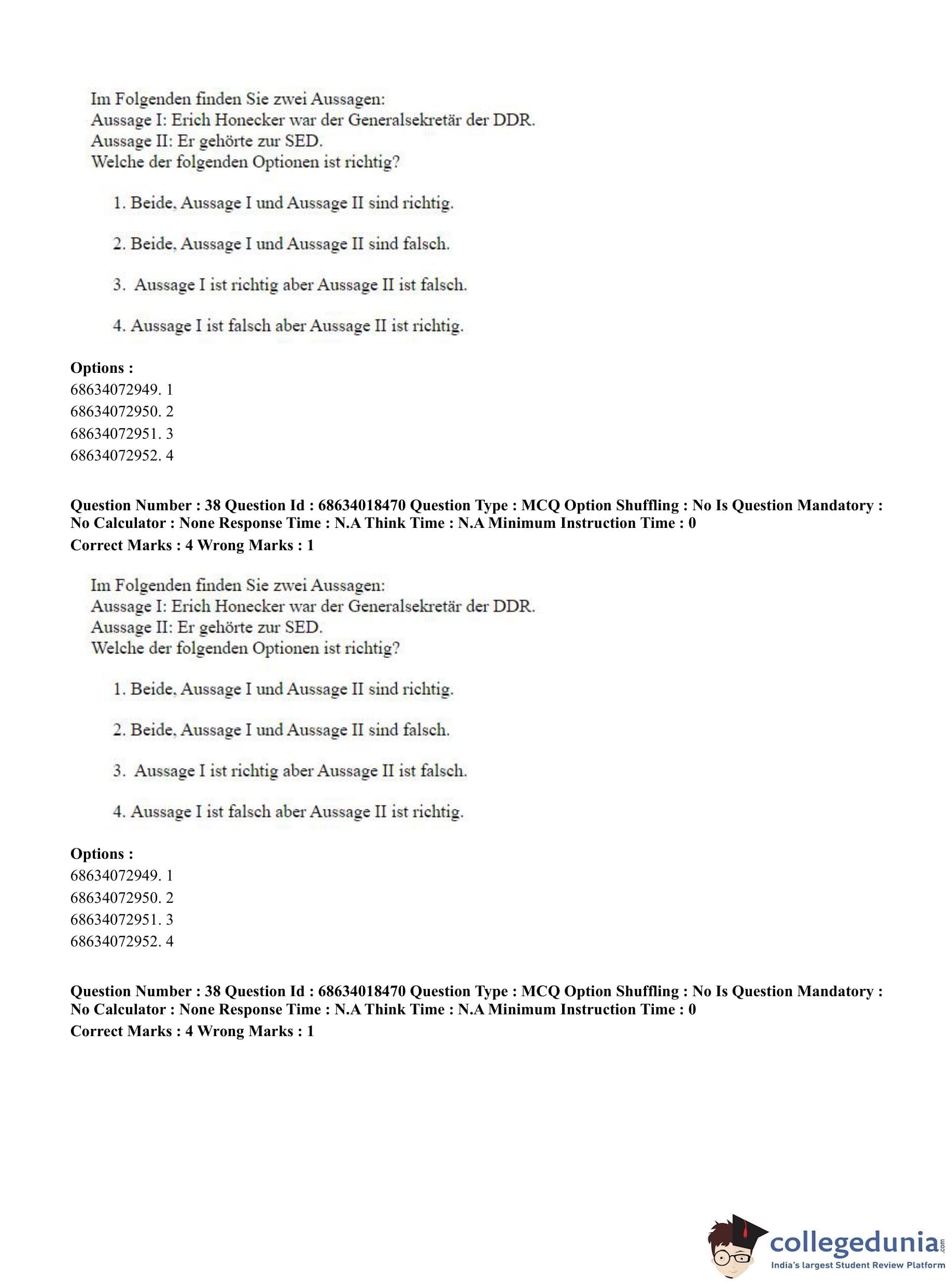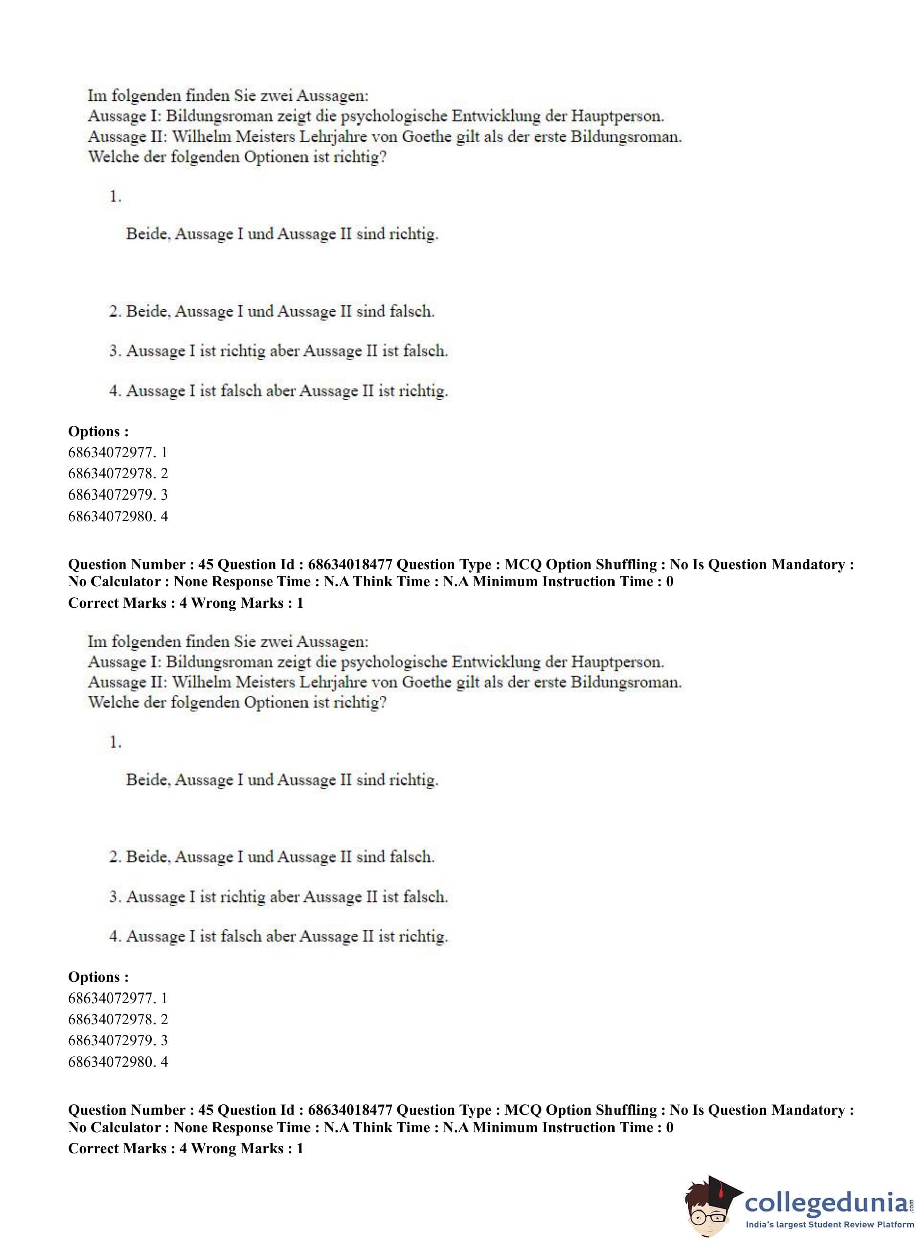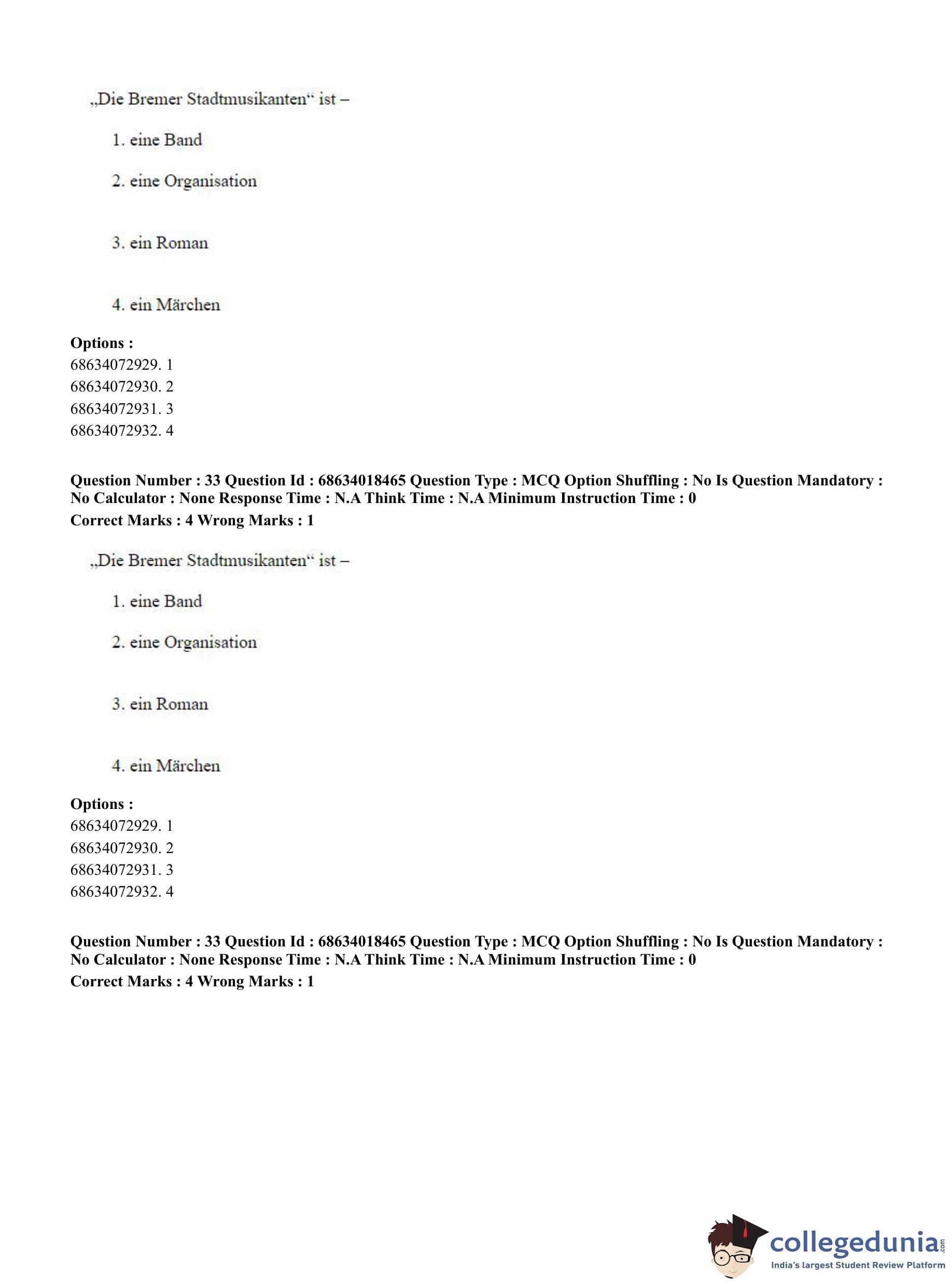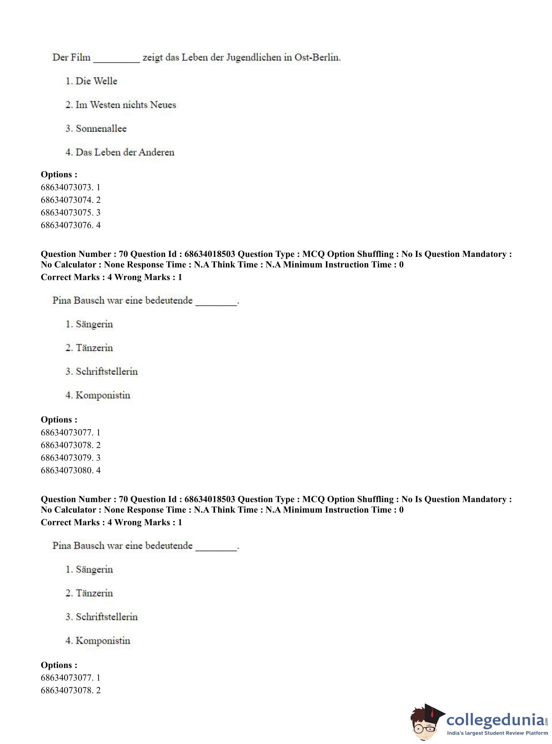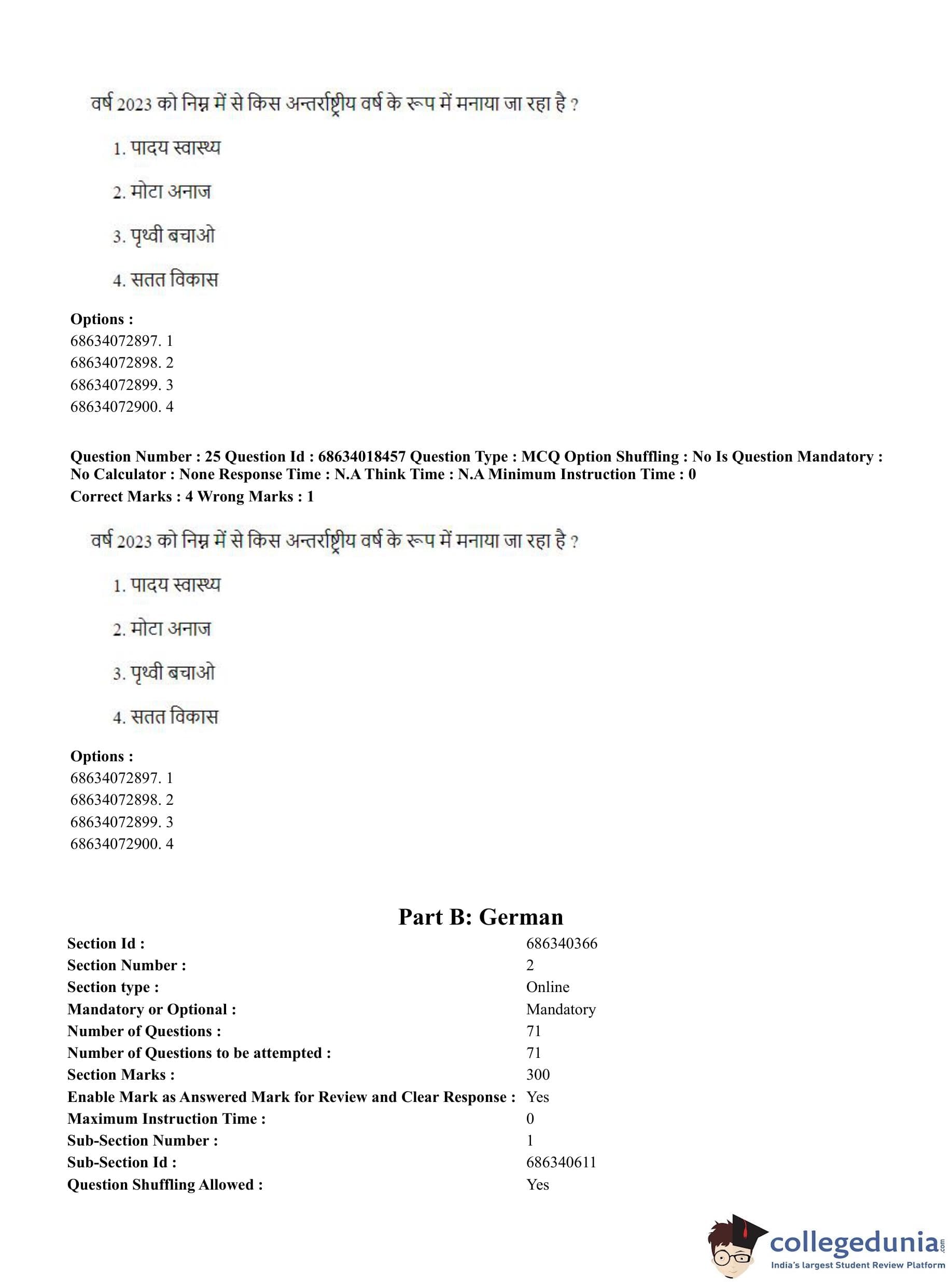 CUET PG 2023 German Question Paper in Hindi (June 13 - Shift 3)