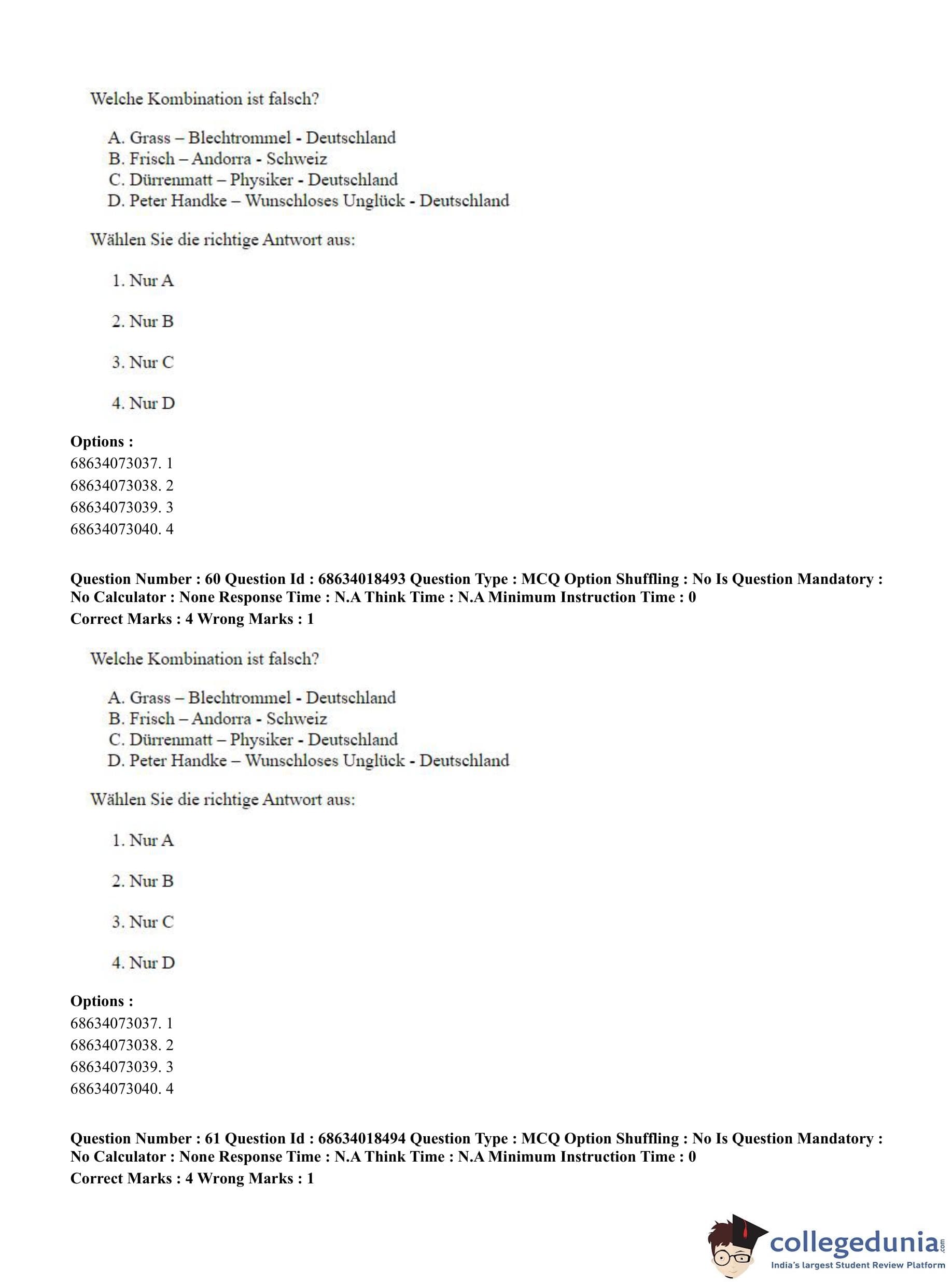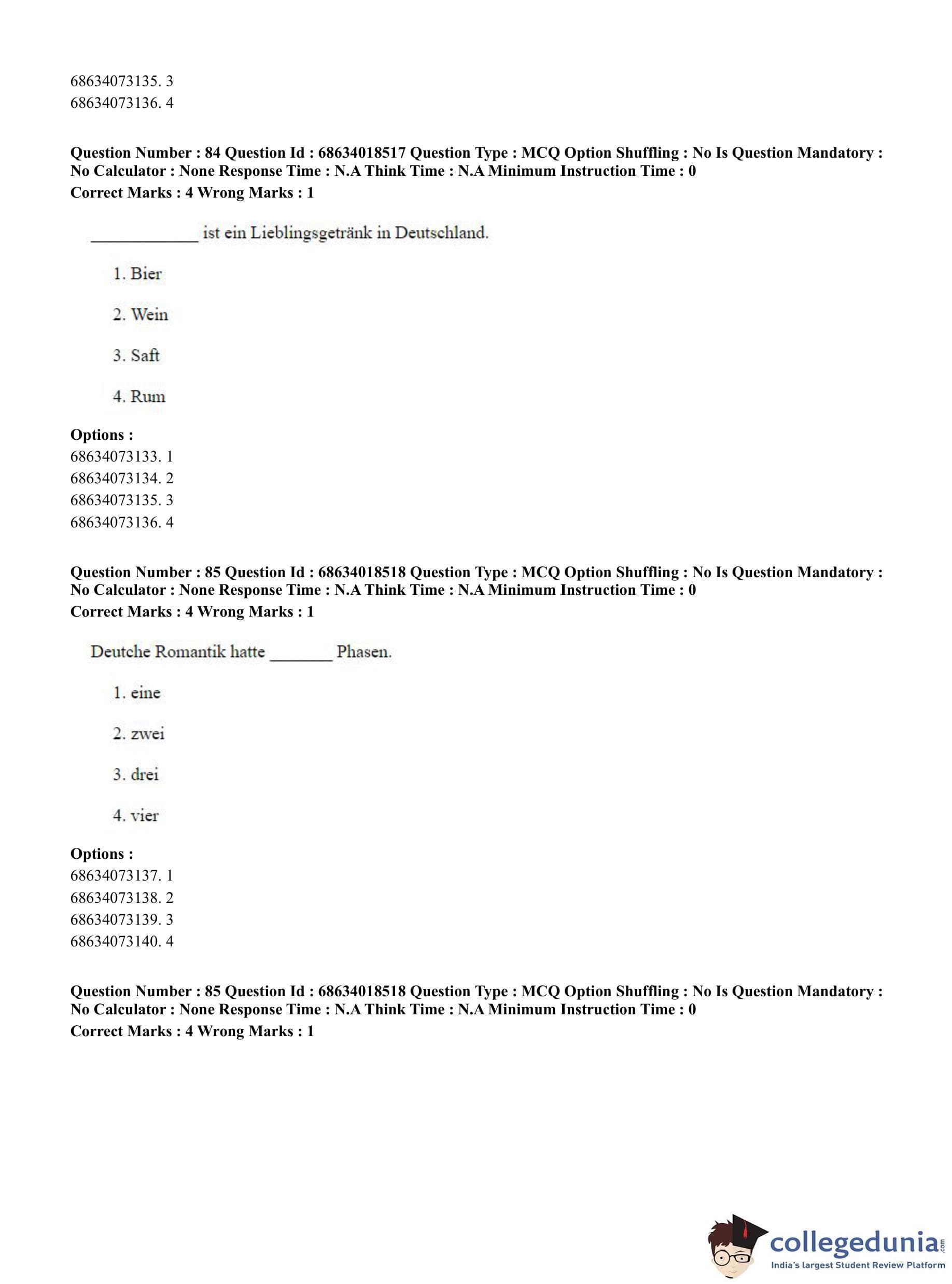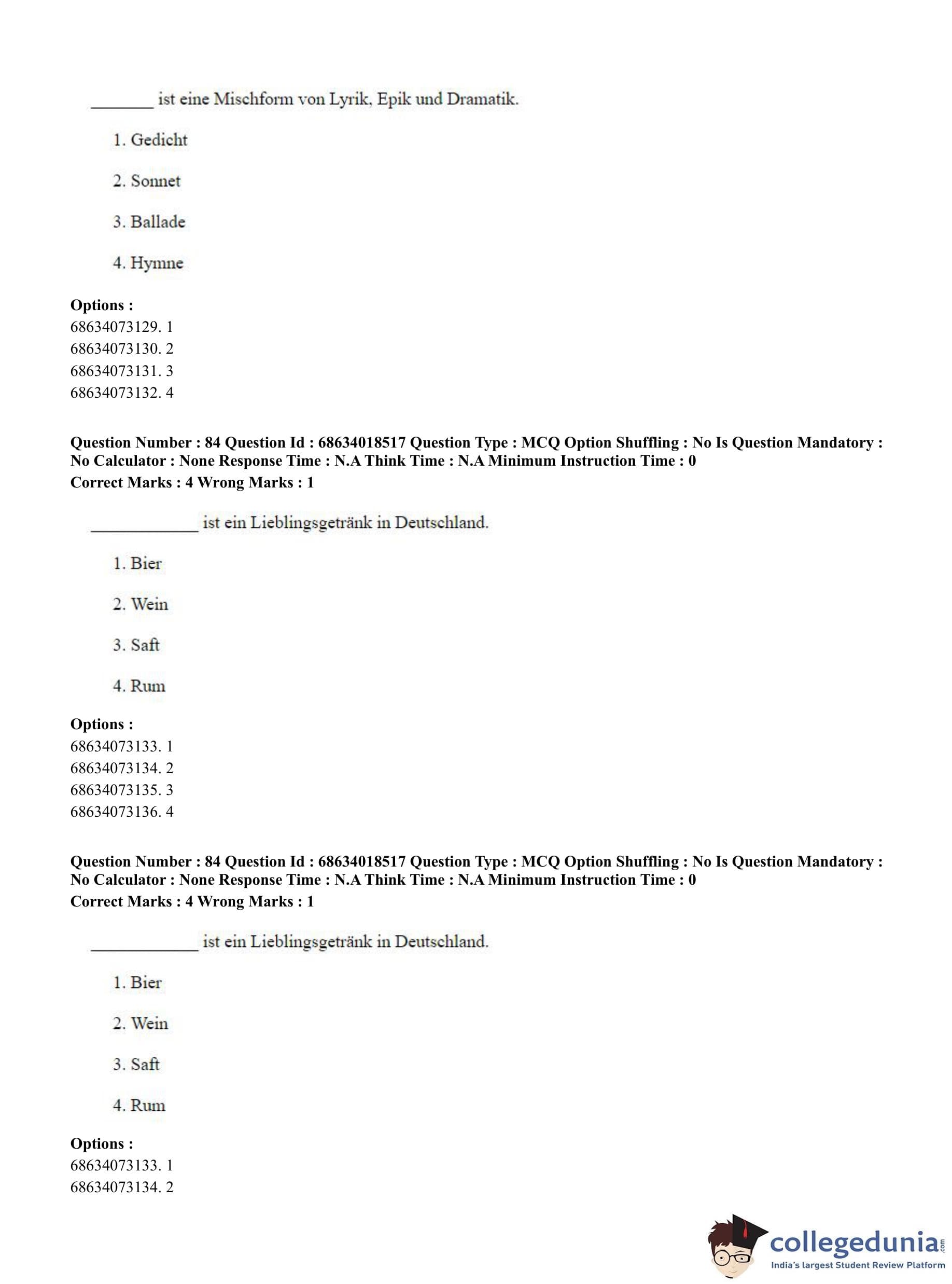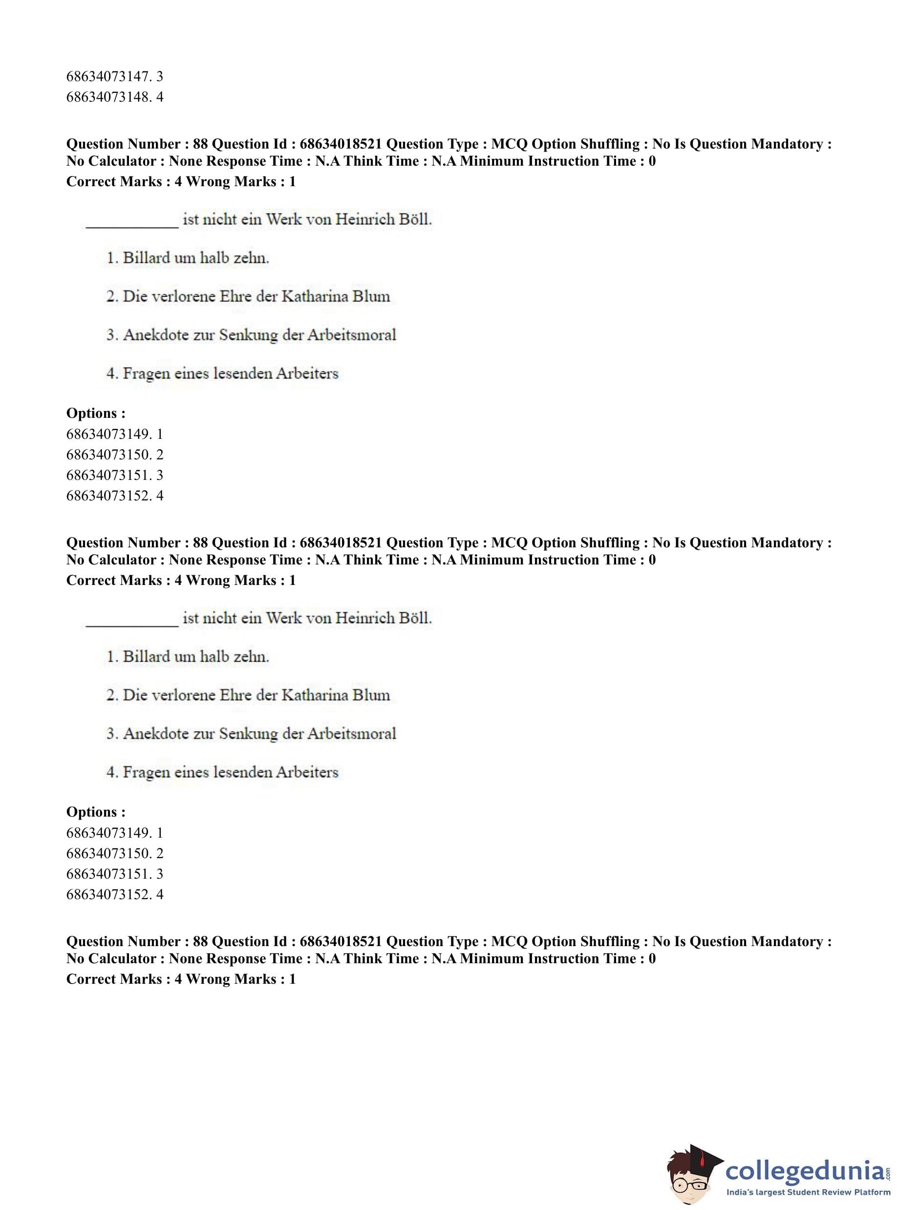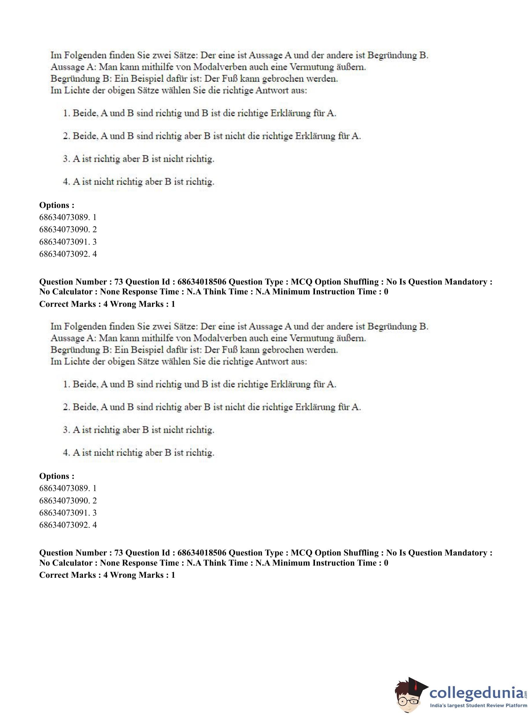 CUET PG 2023 German Question Paper in Hindi (June 13 - Shift 3)