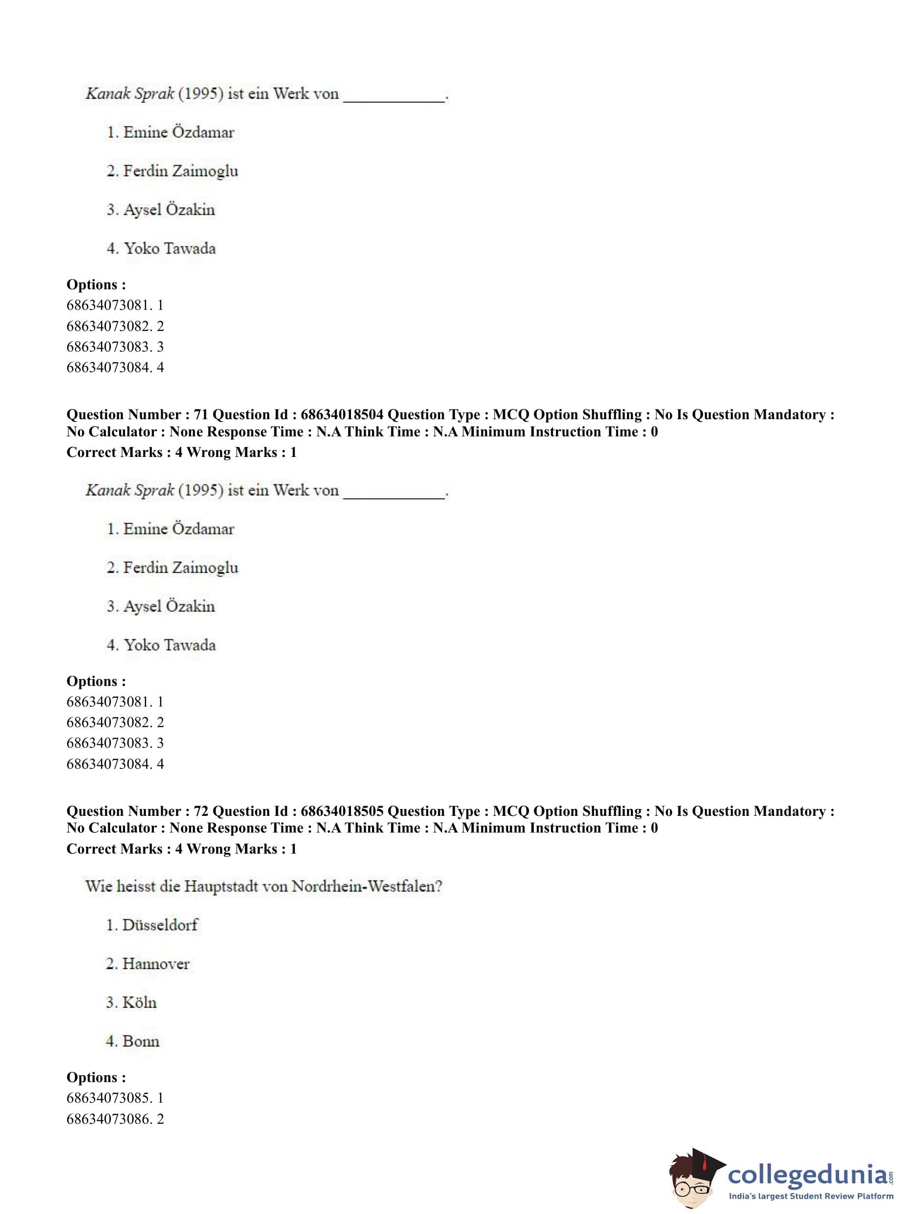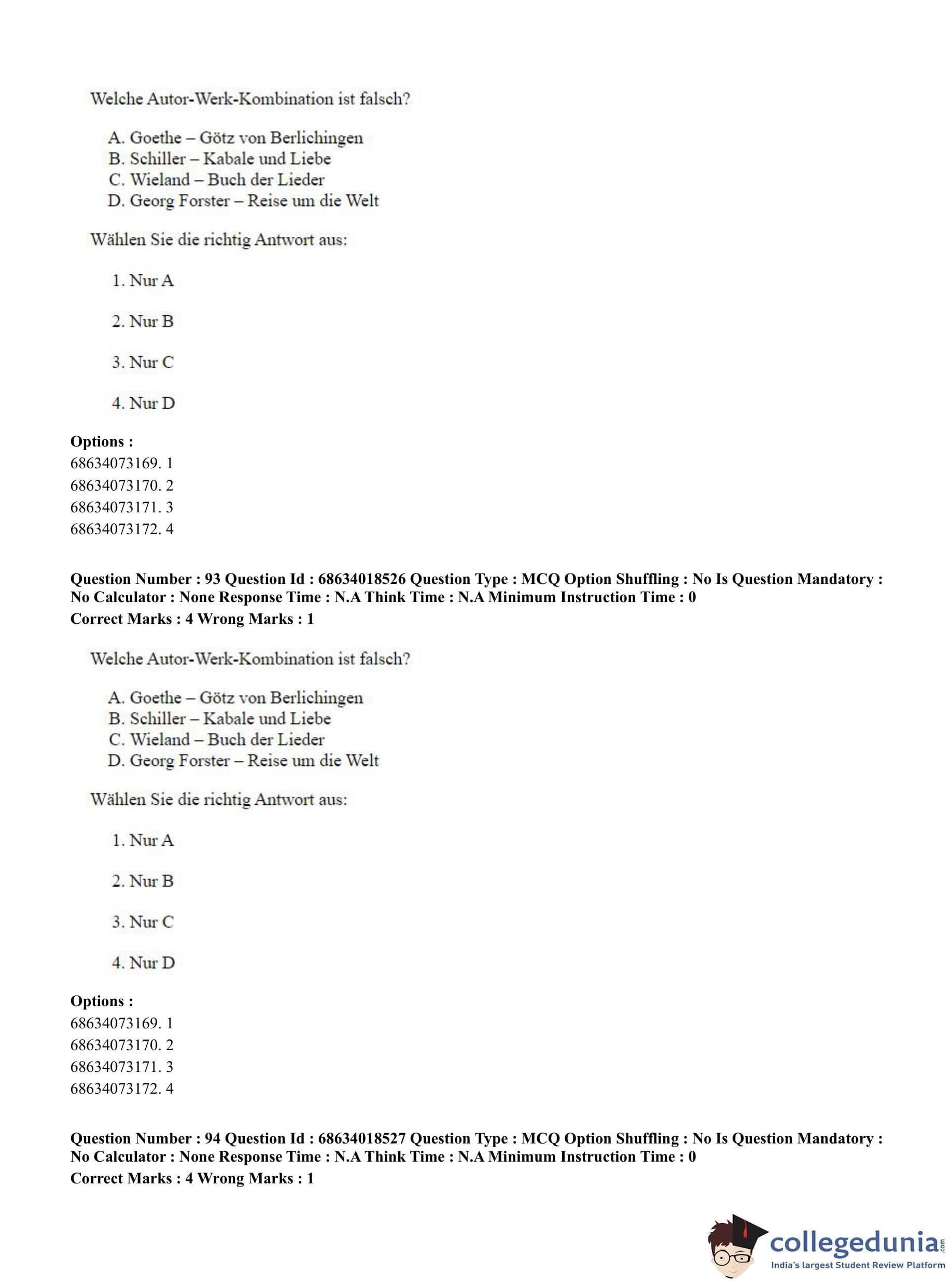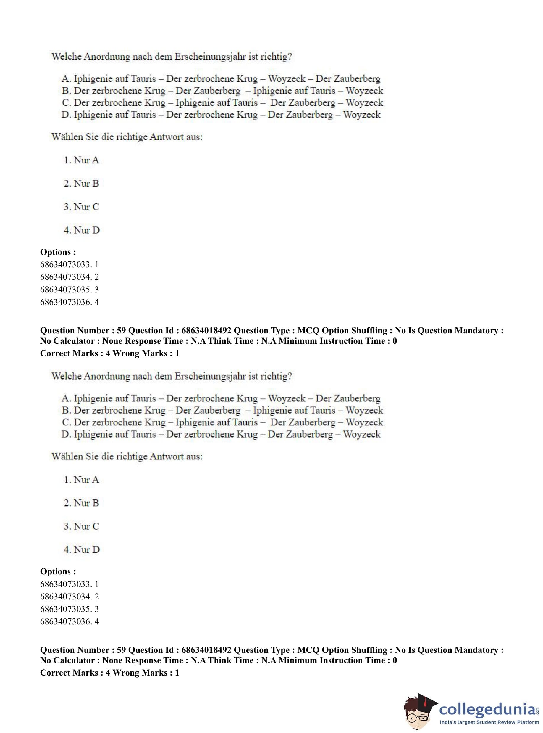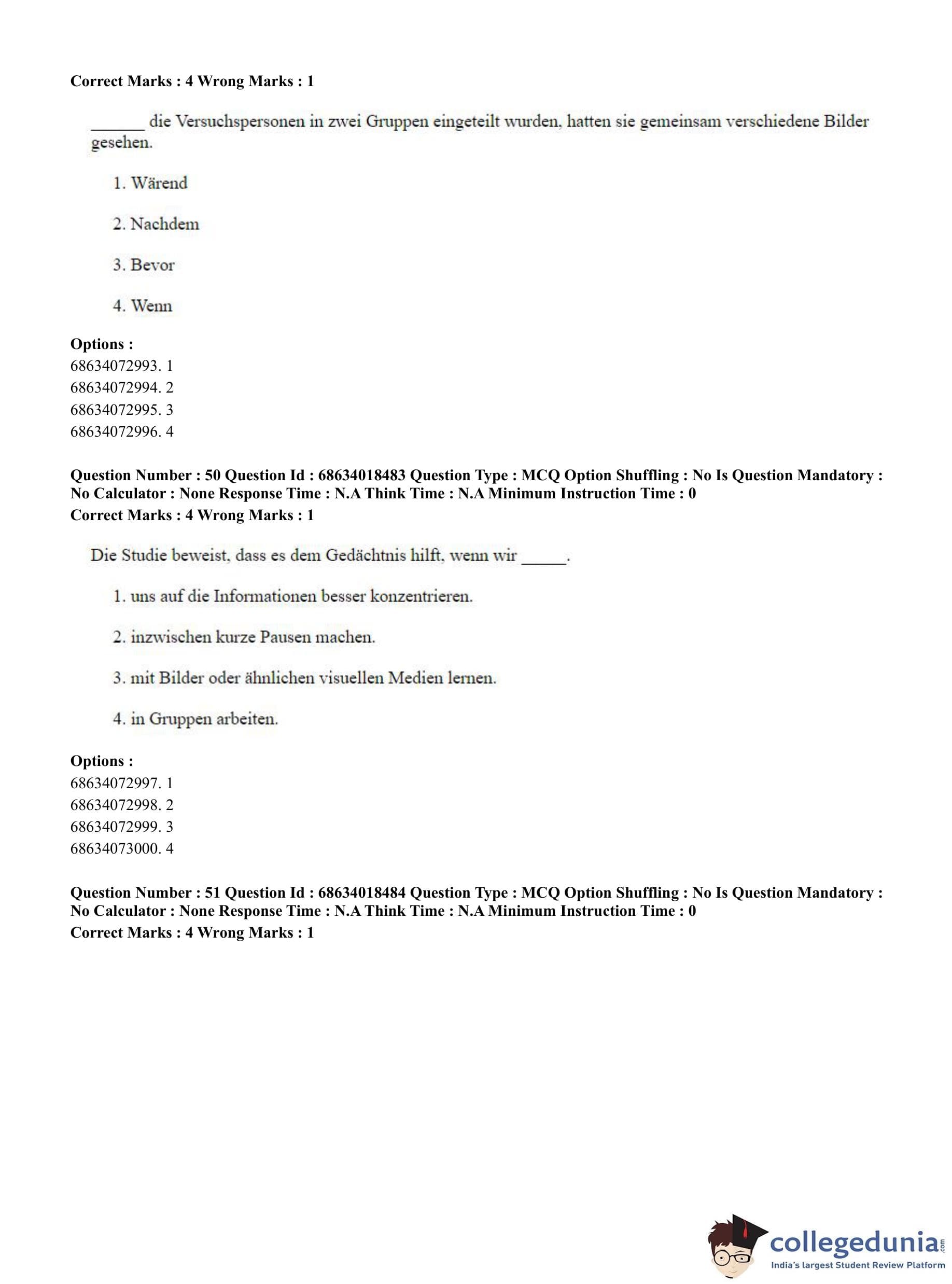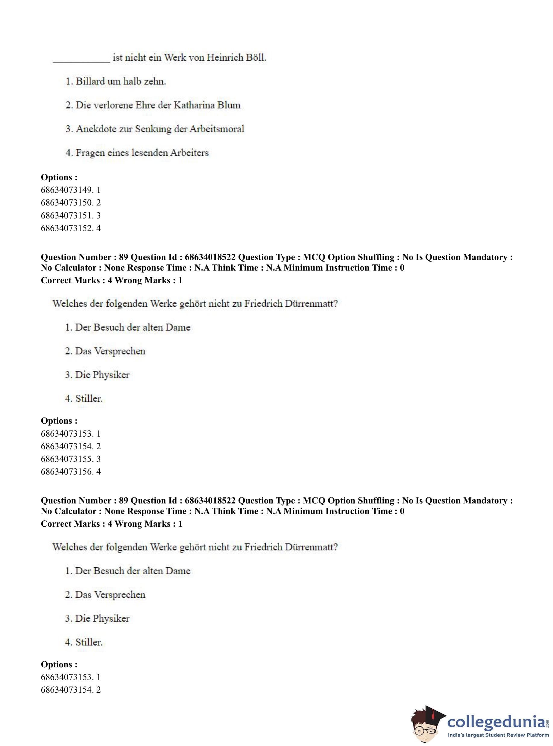 CUET PG 2023 German Question Paper in Hindi (June 13 - Shift 3)