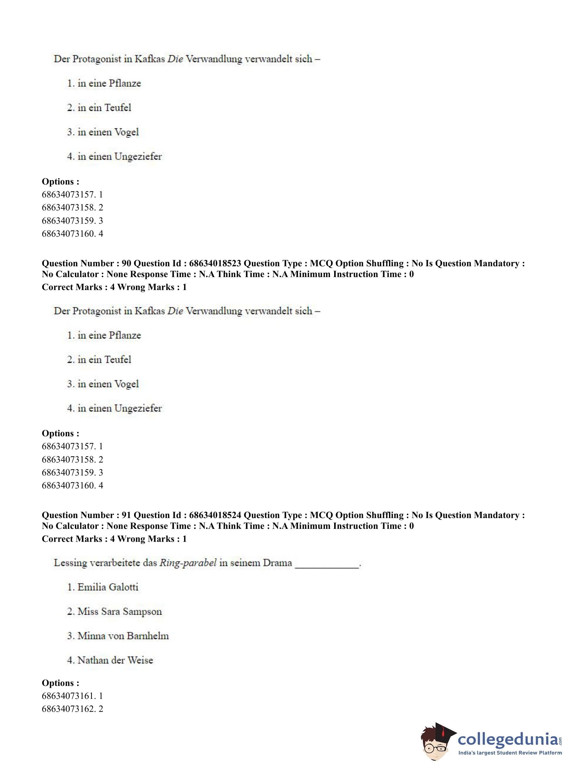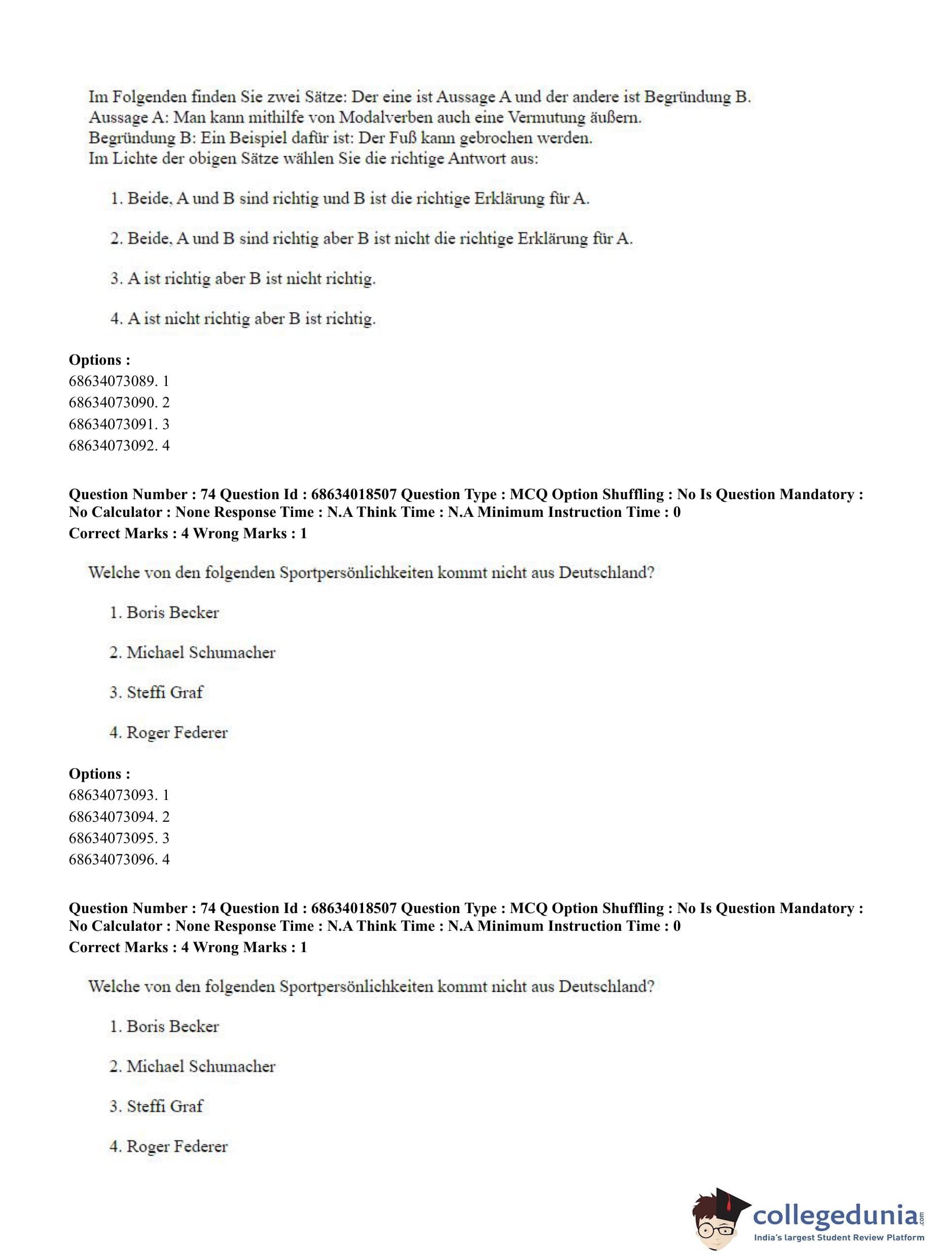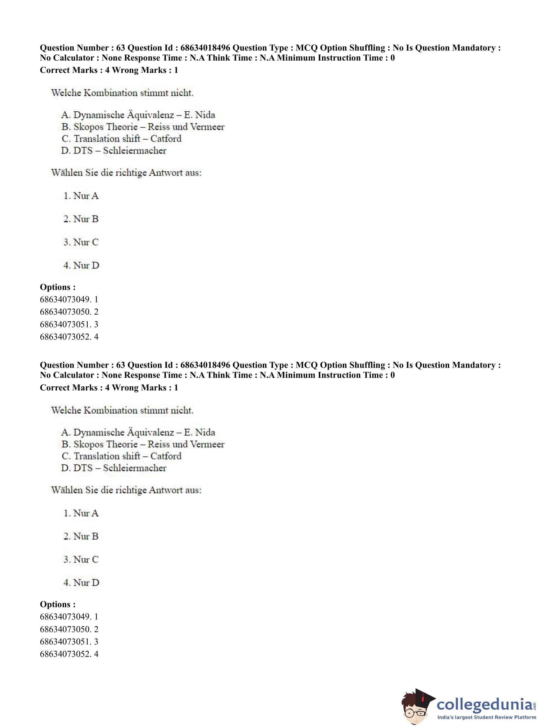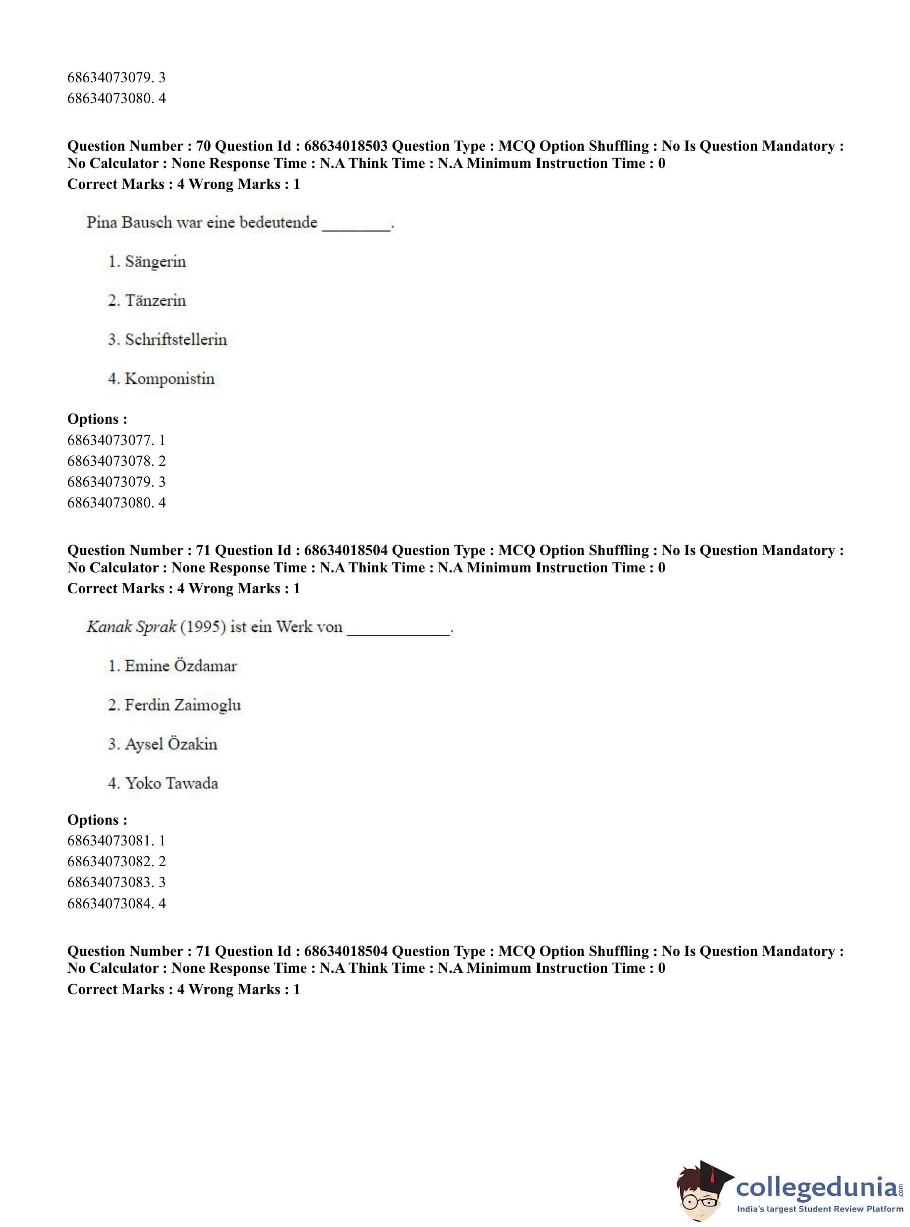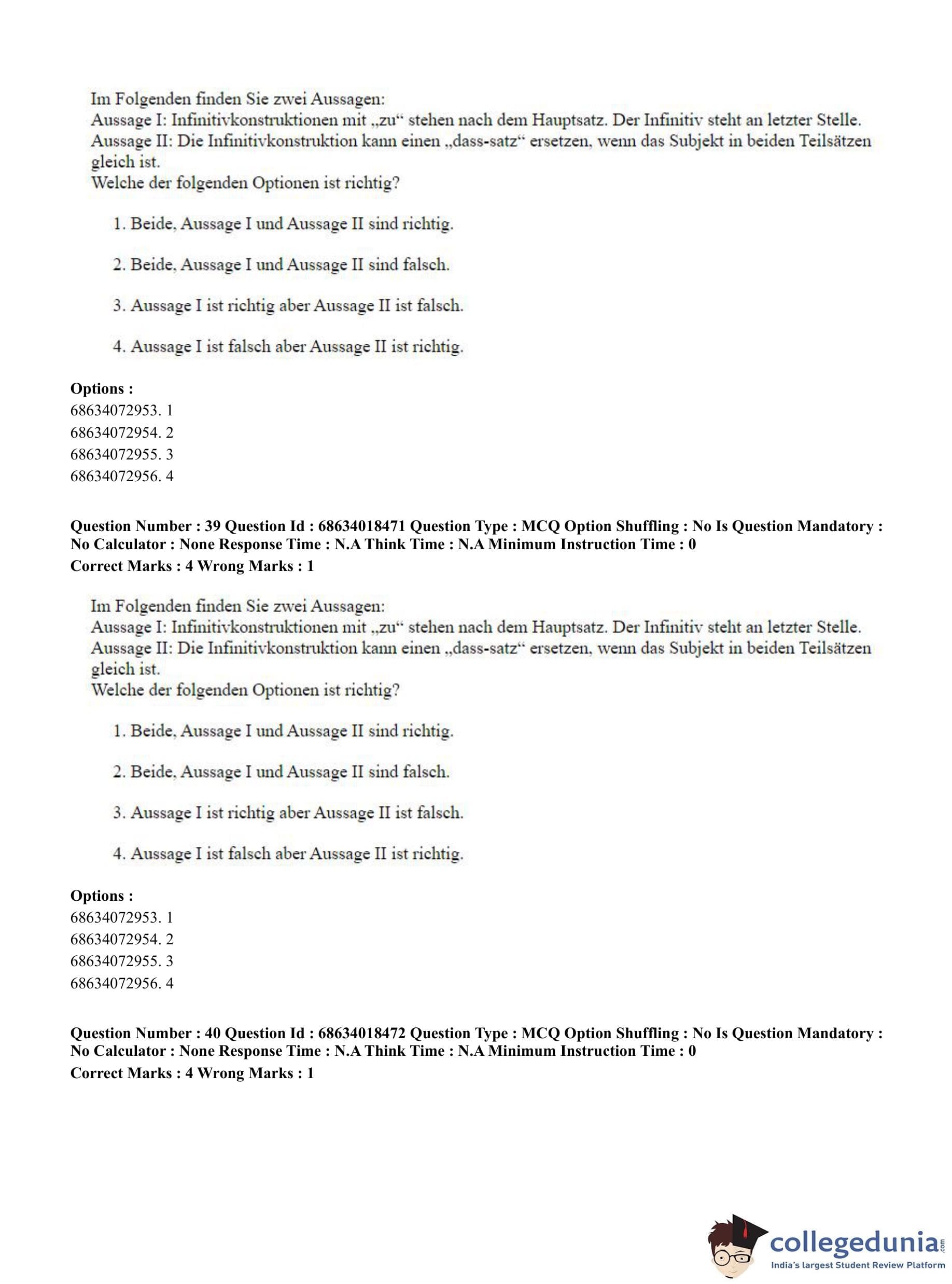 CUET PG 2023 German Question Paper in Hindi (June 13 - Shift 3)