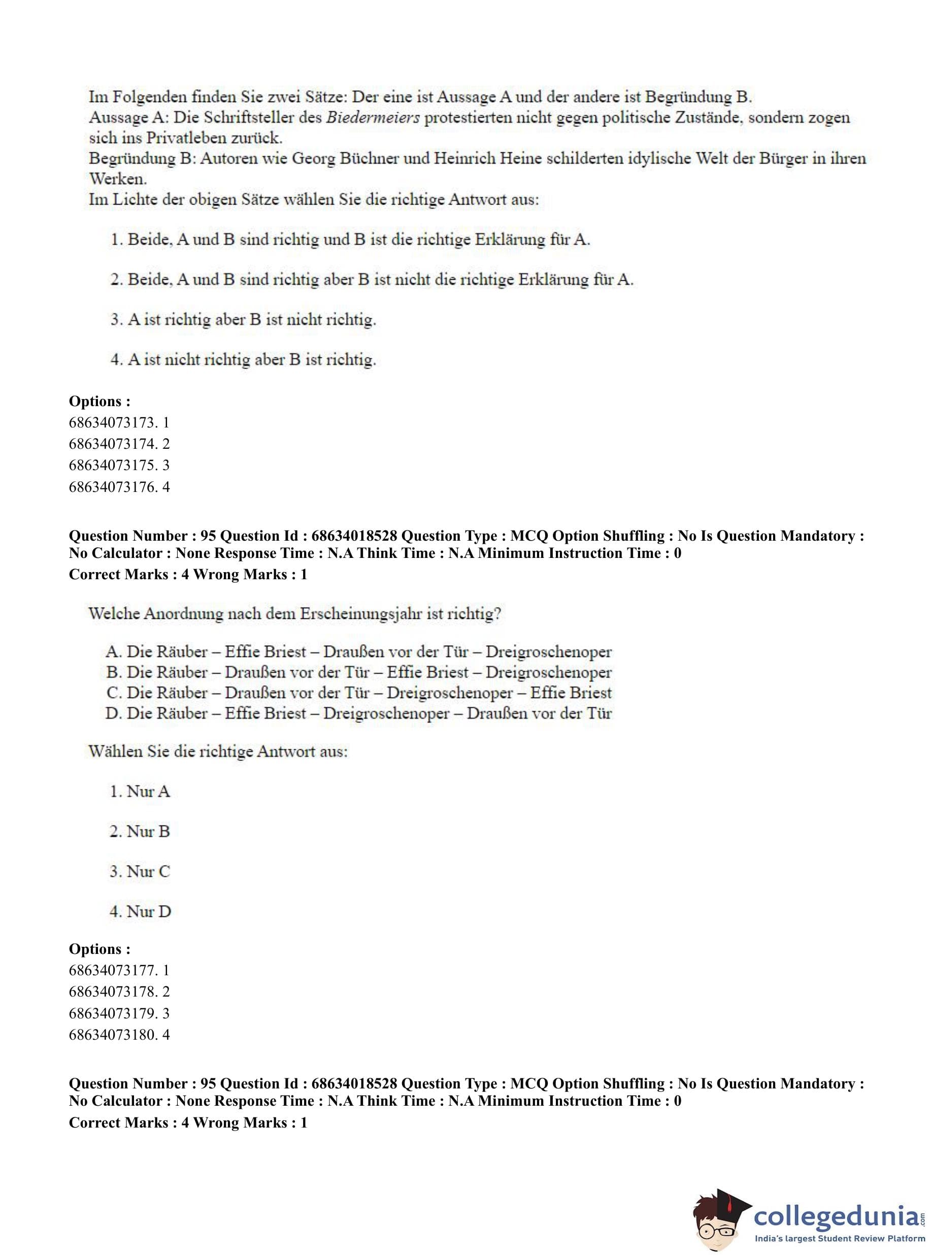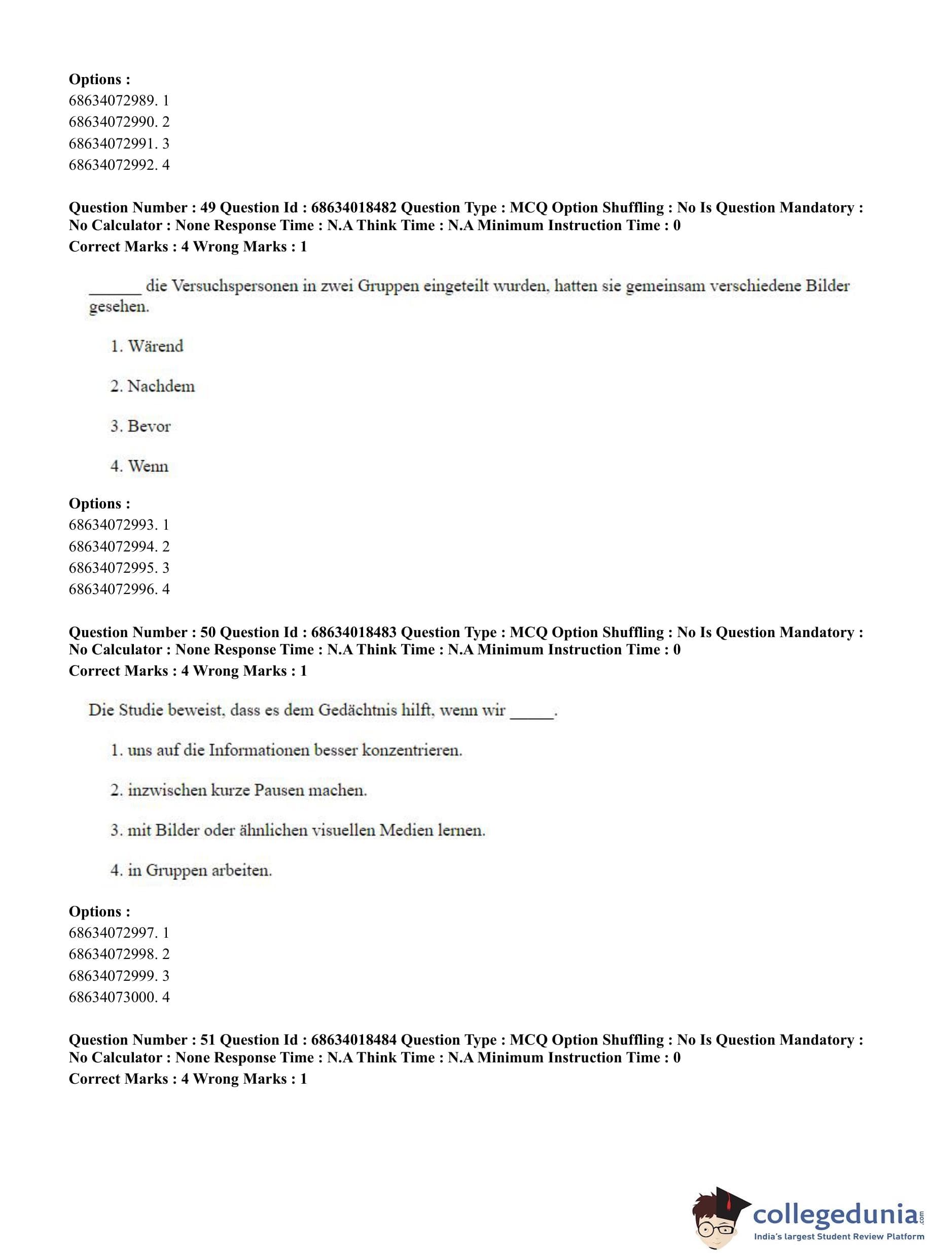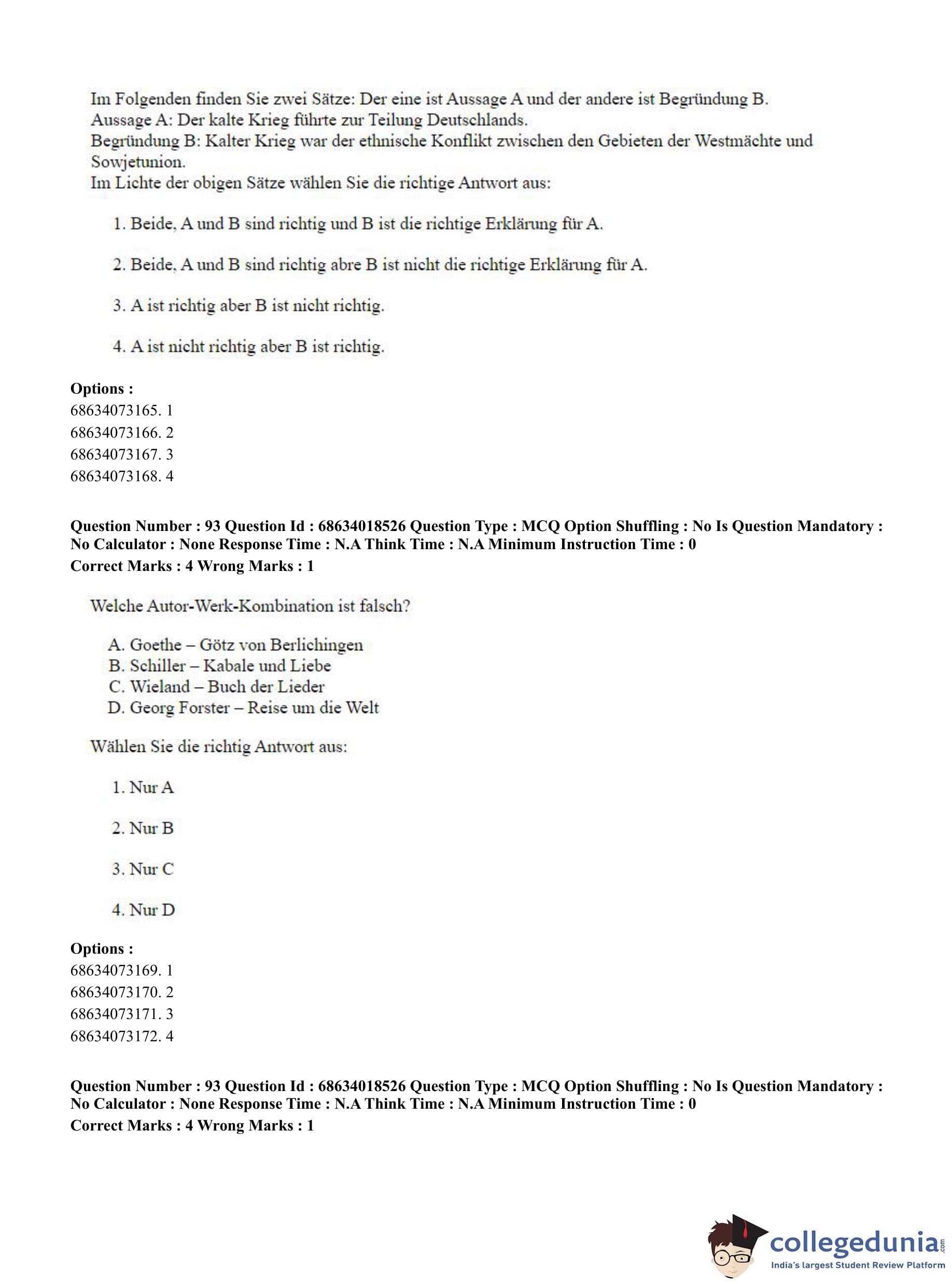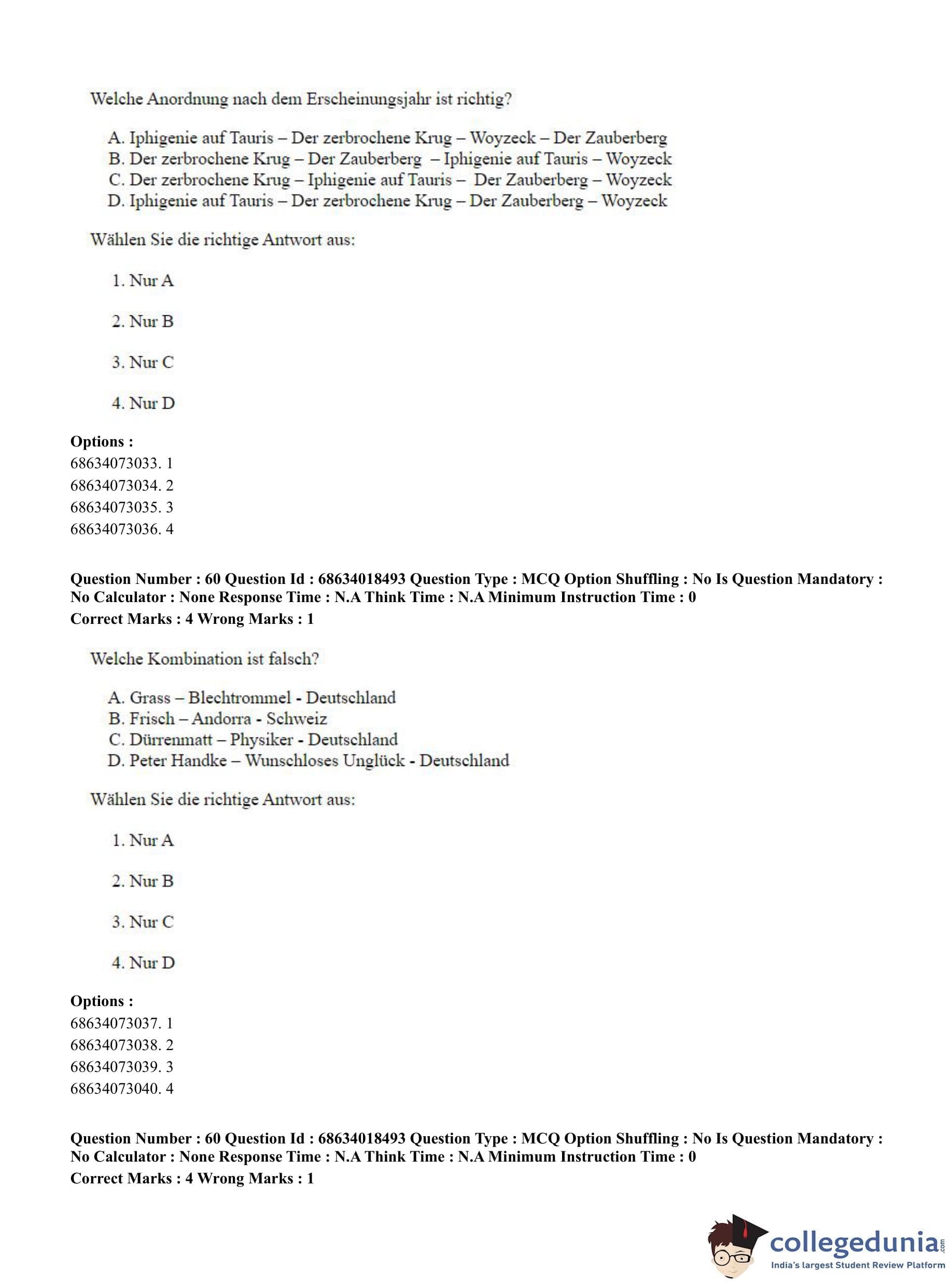 CUET PG 2023 German Question Paper in Hindi (June 13 - Shift 3)