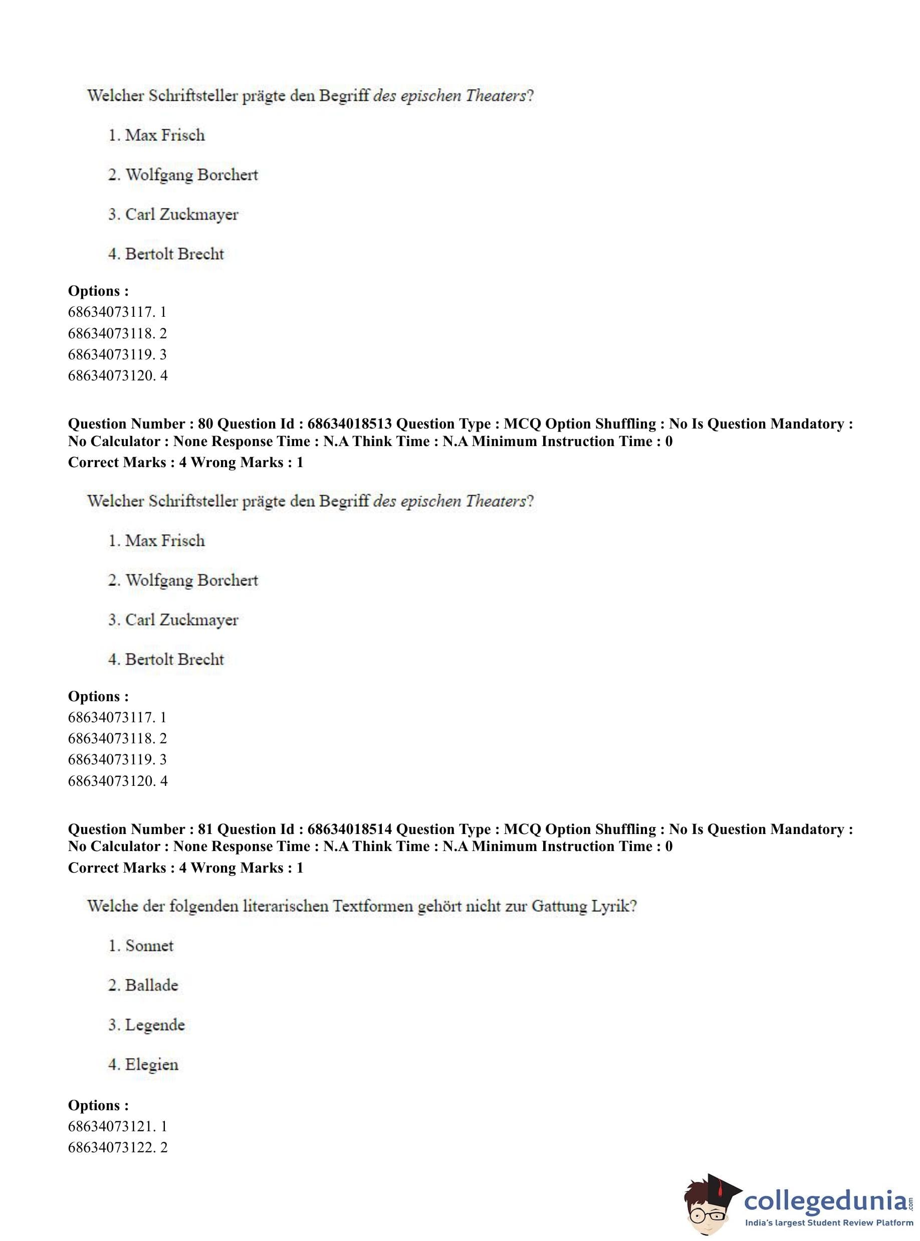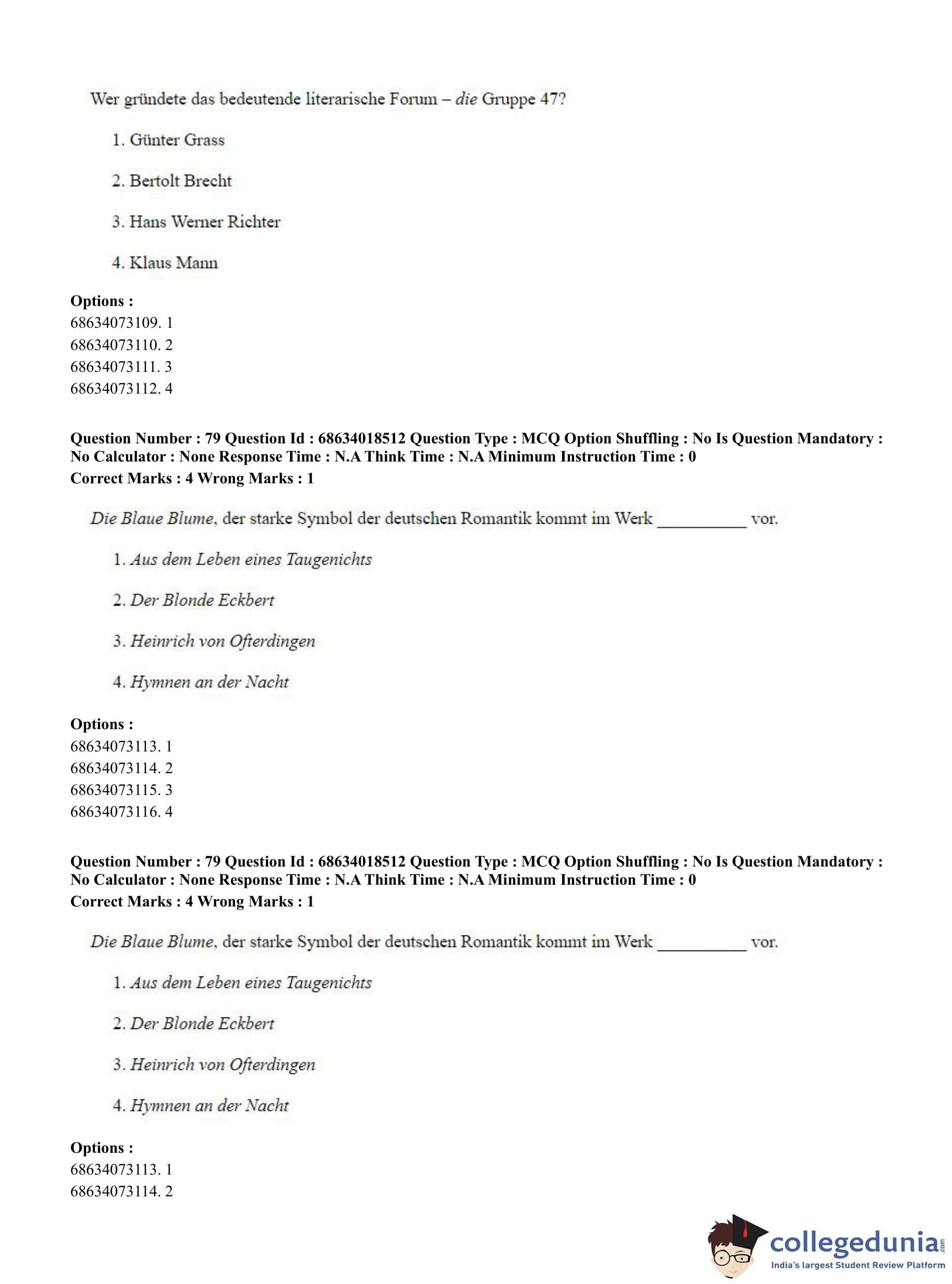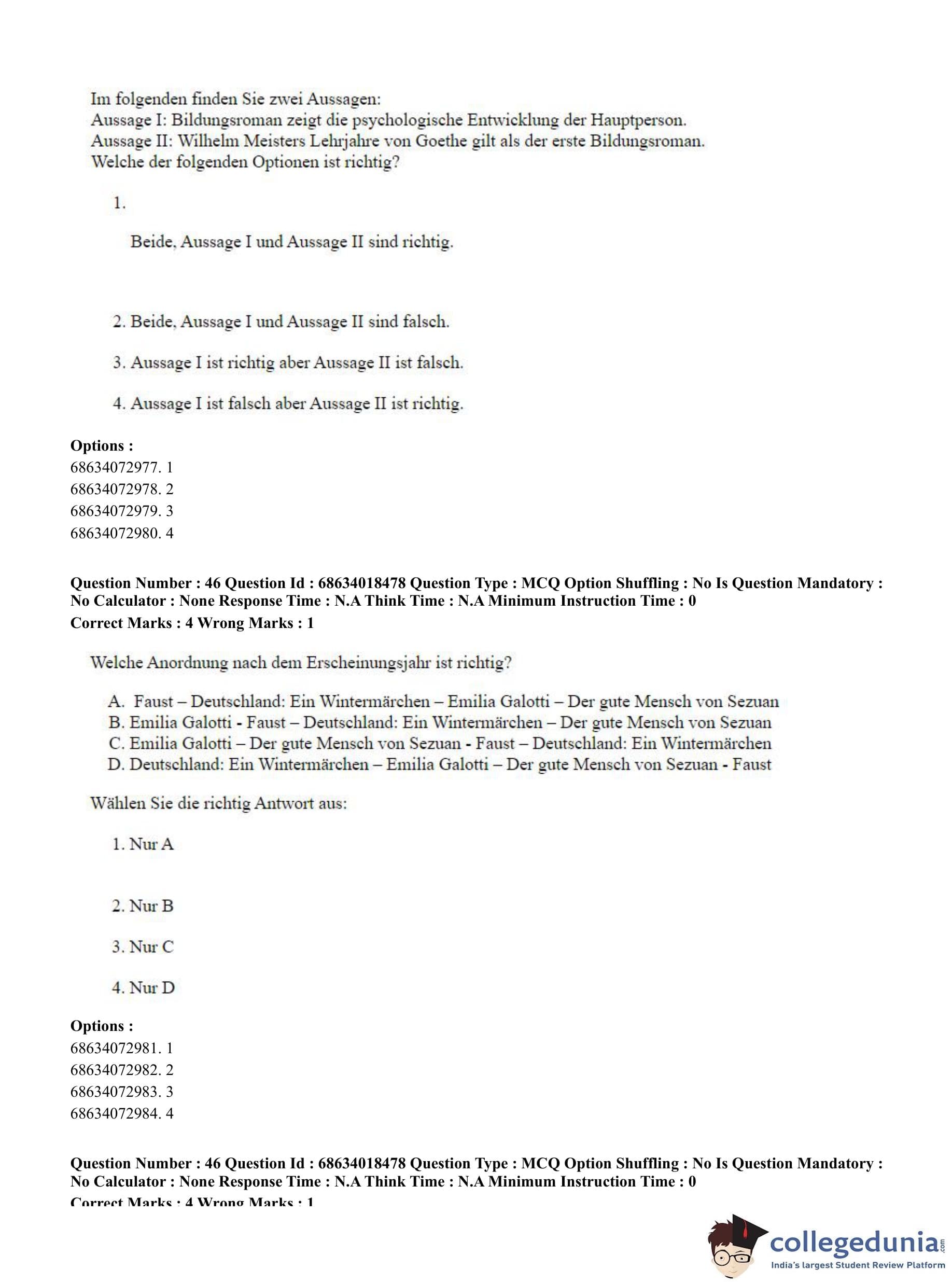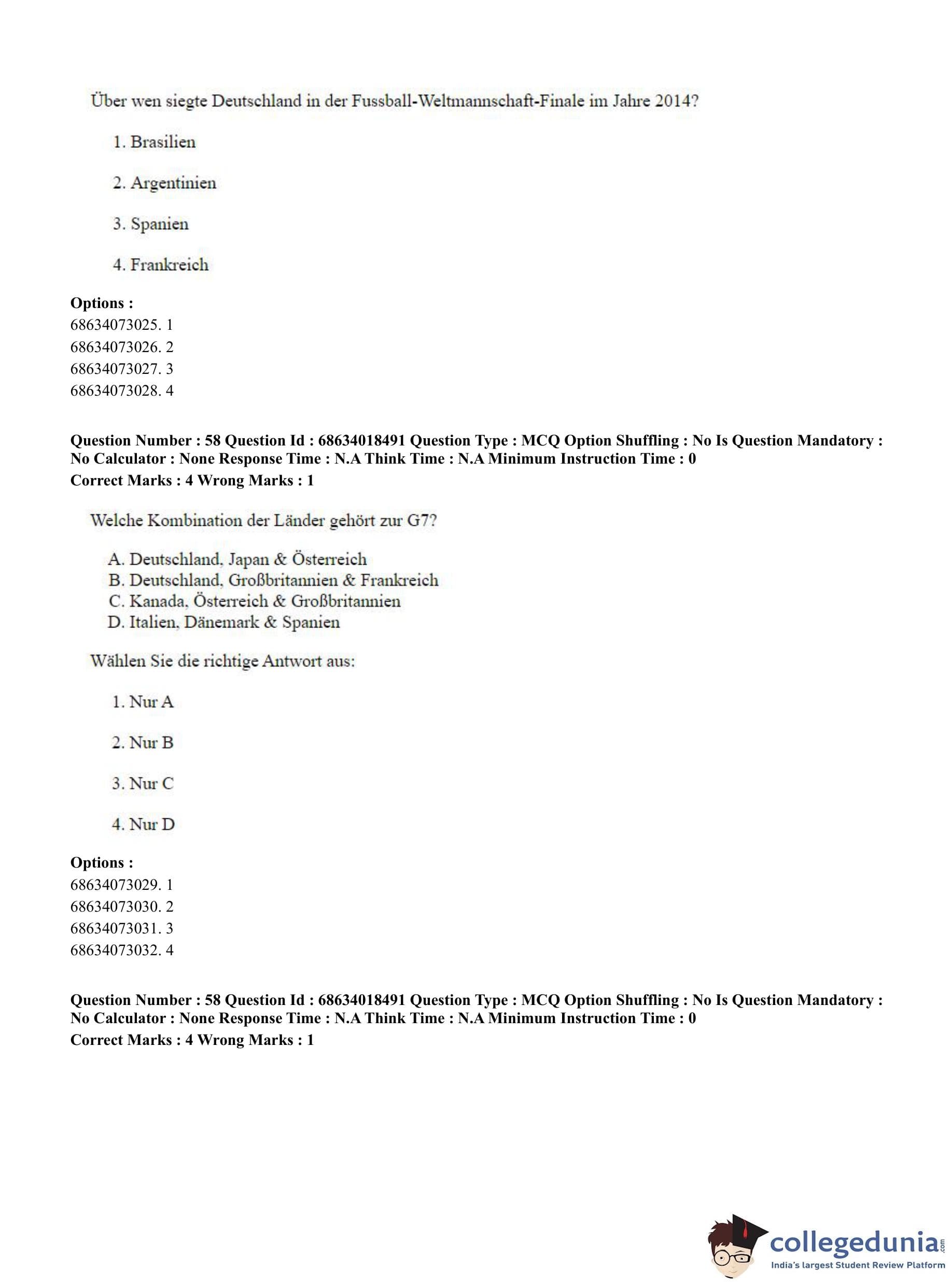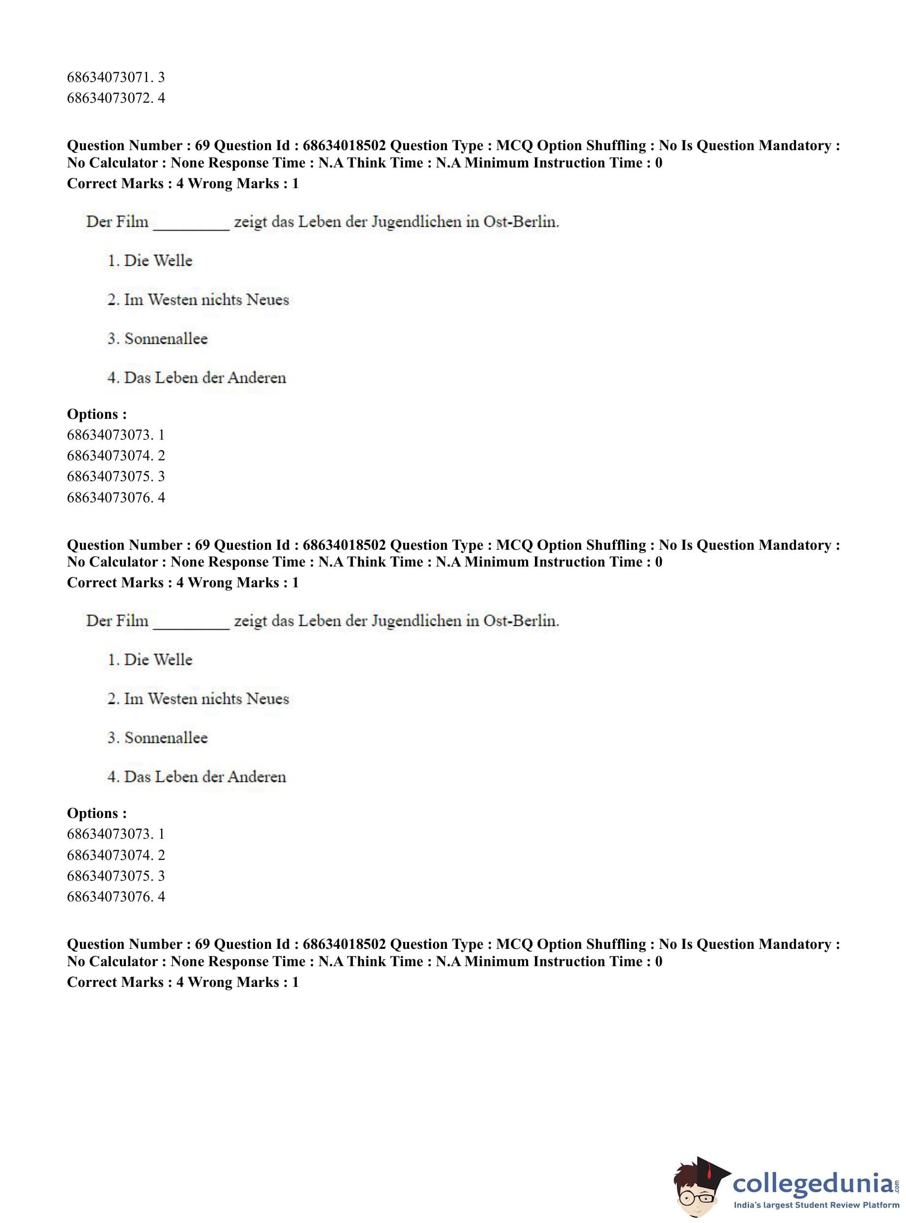 CUET PG 2023 German Question Paper in Hindi (June 13 - Shift 3)