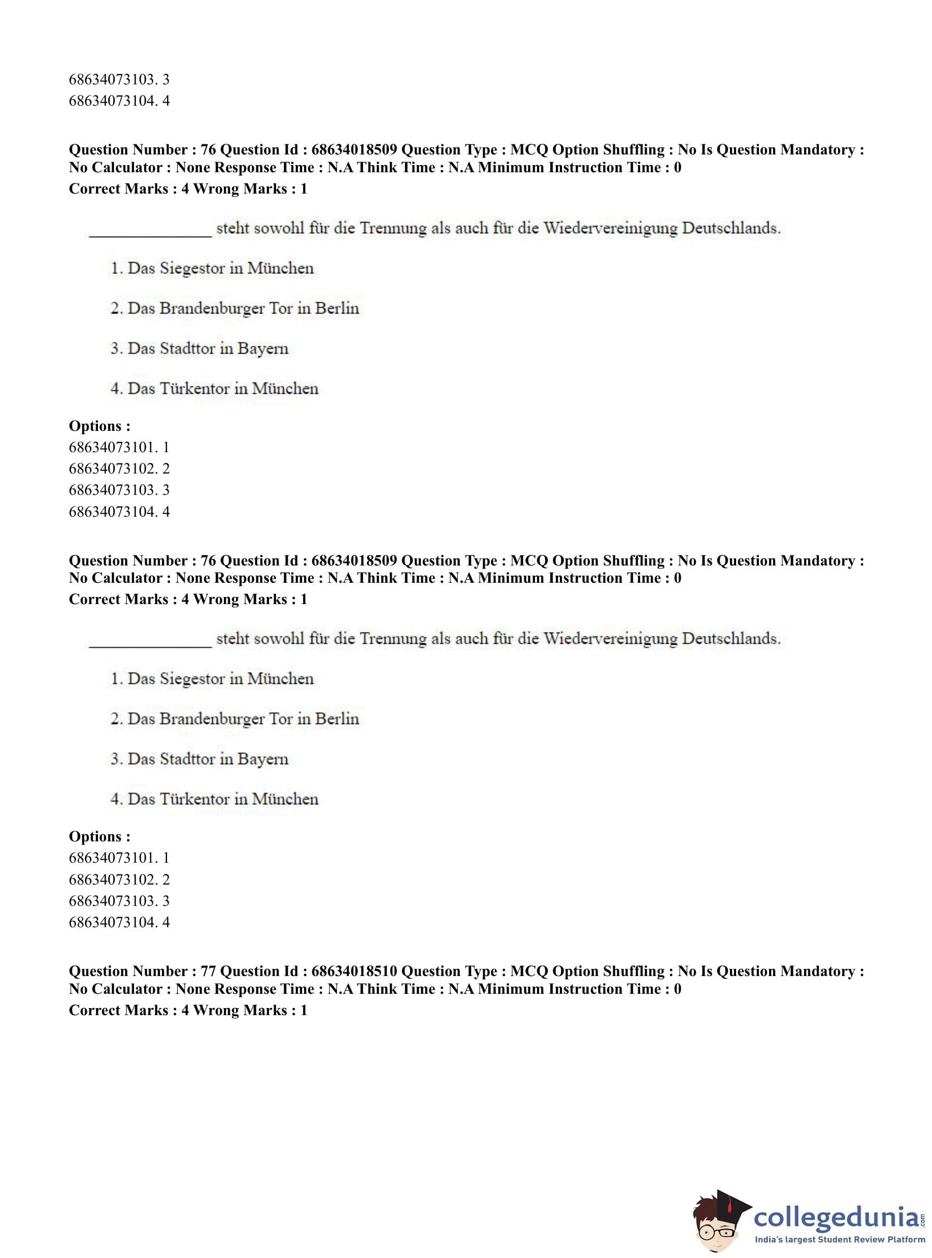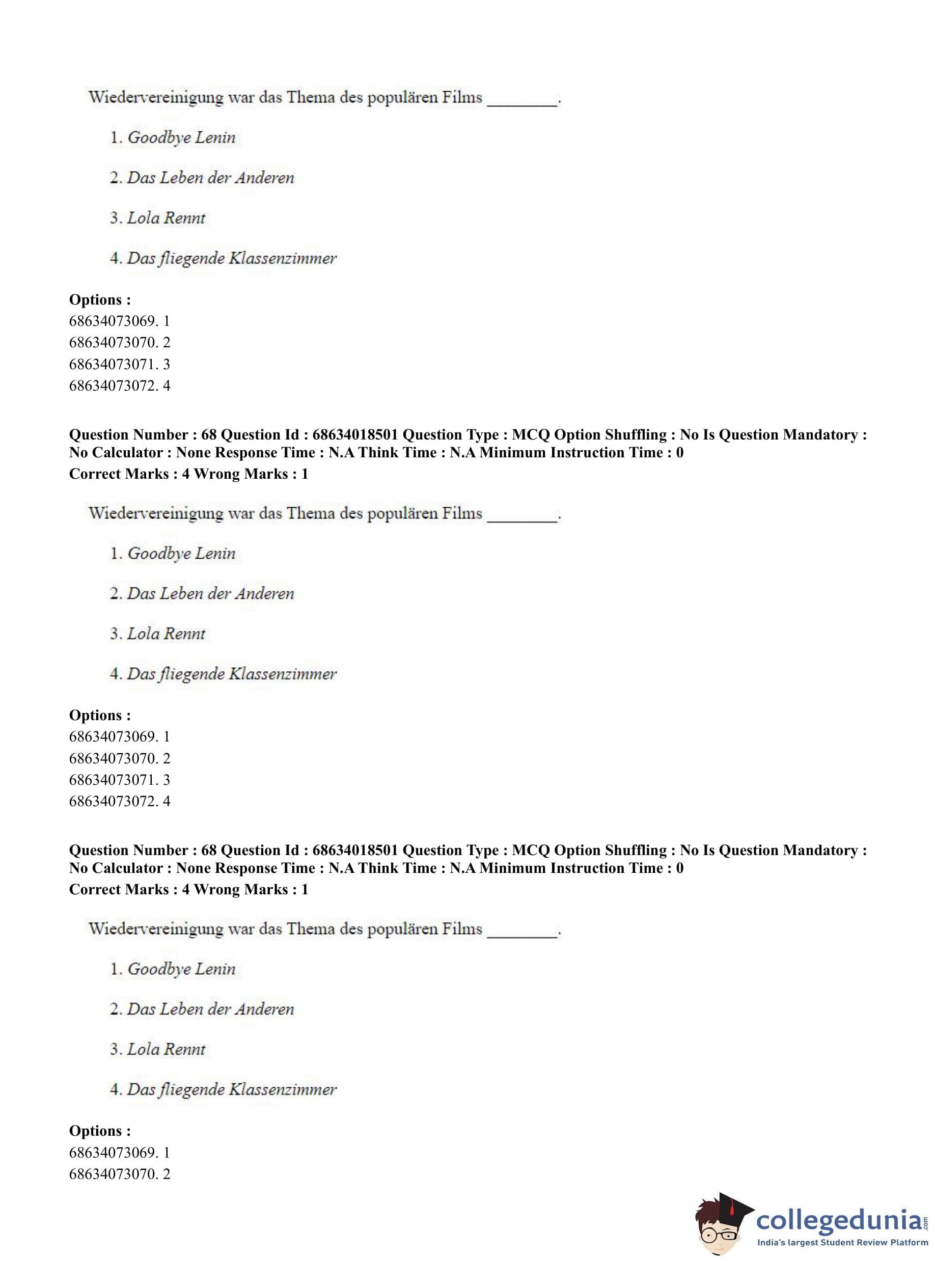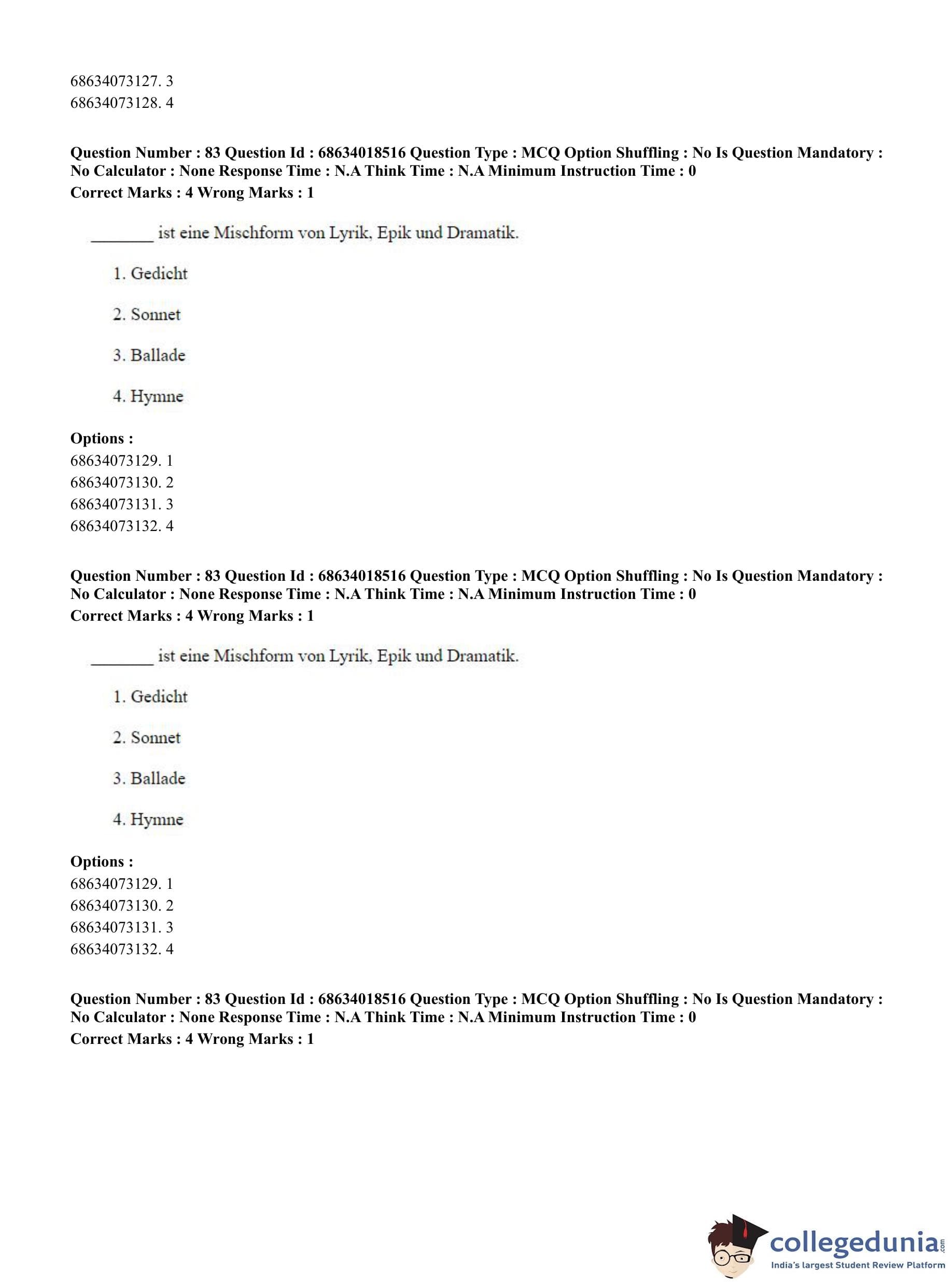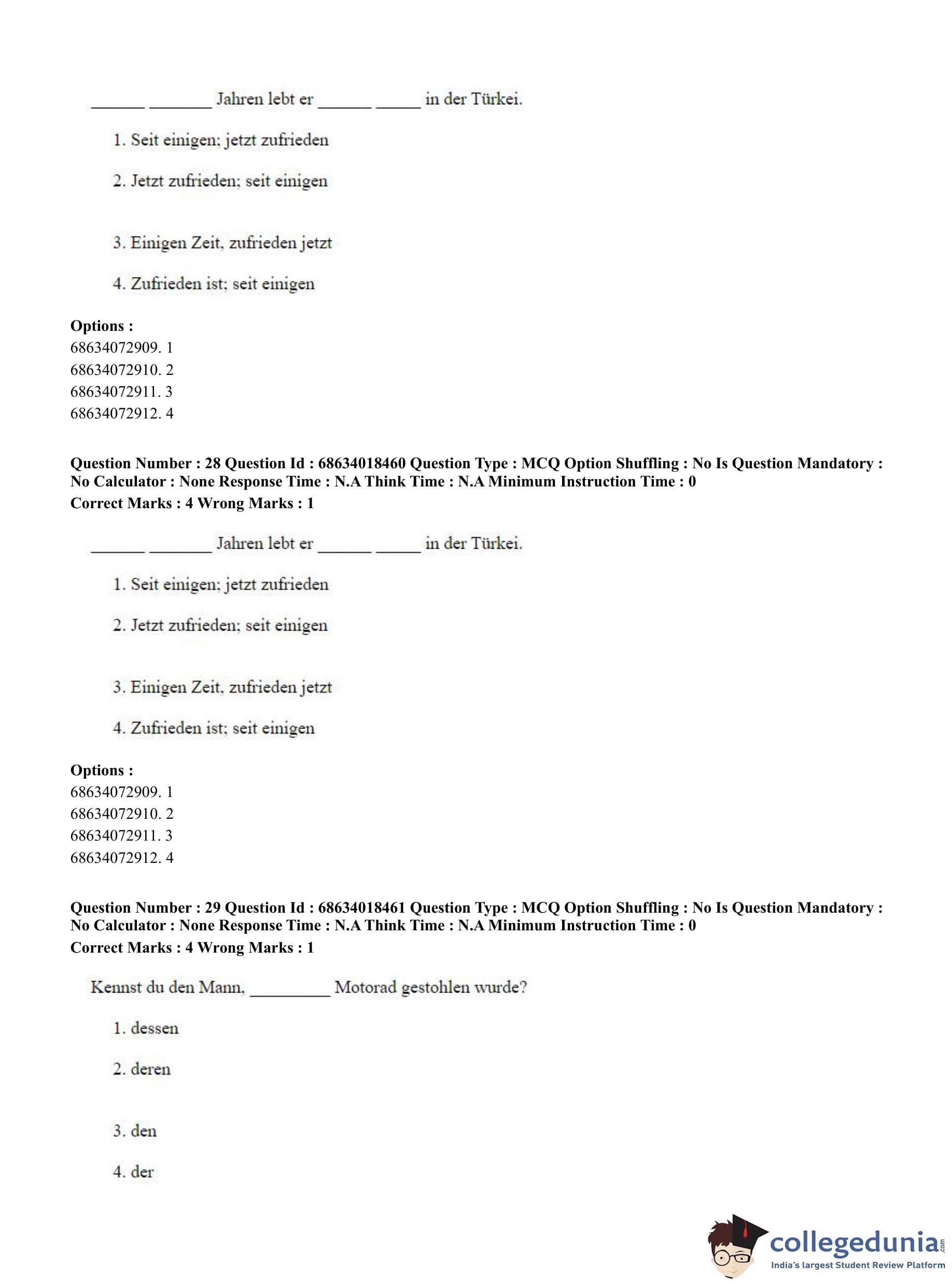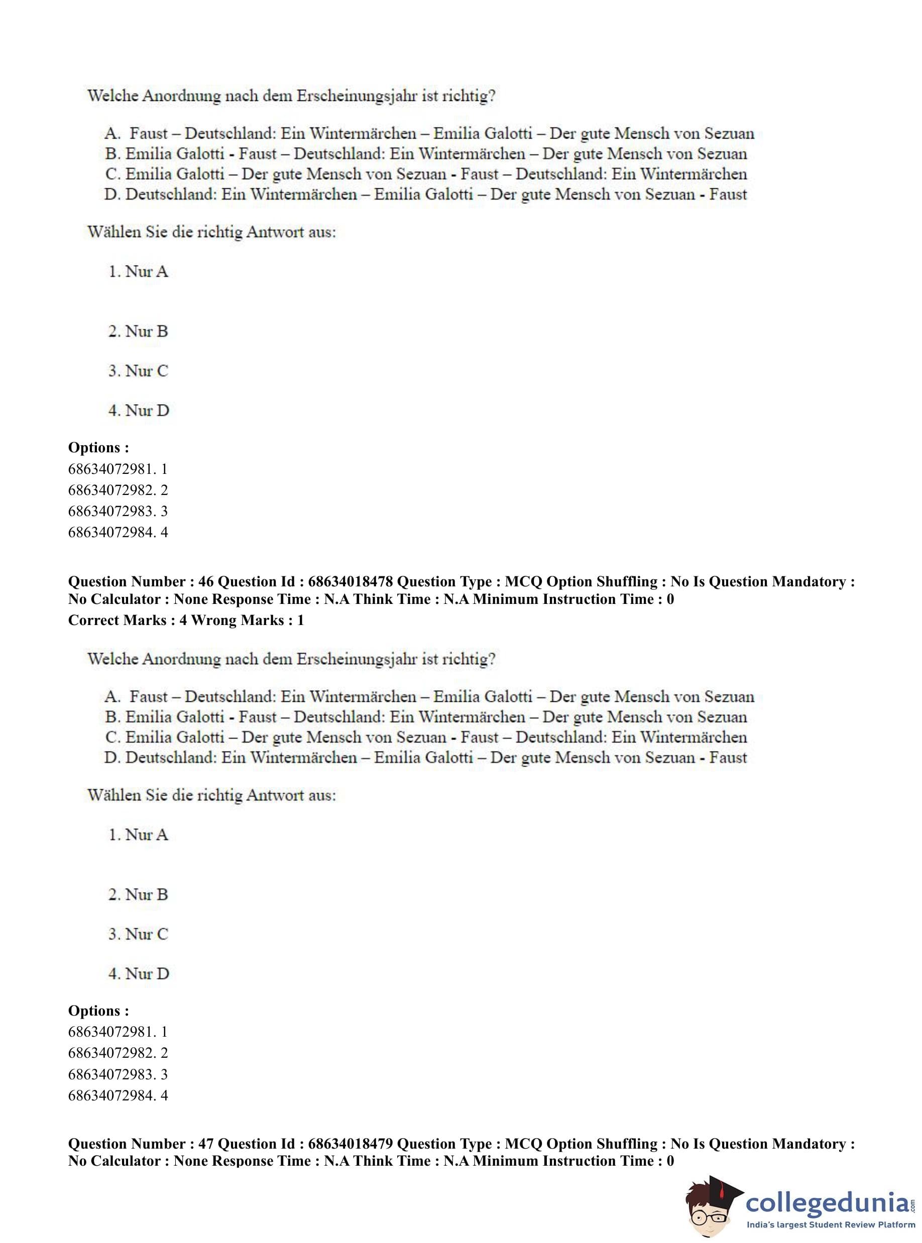 CUET PG 2023 German Question Paper in Hindi (June 13 - Shift 3)