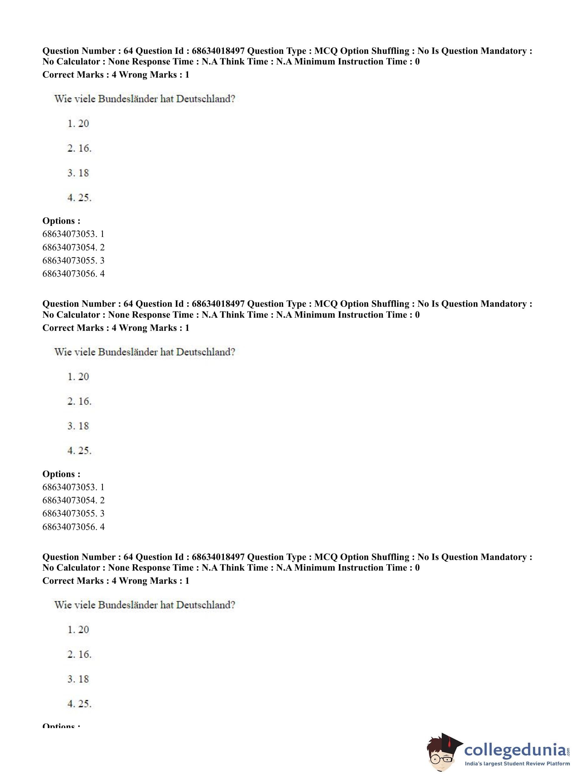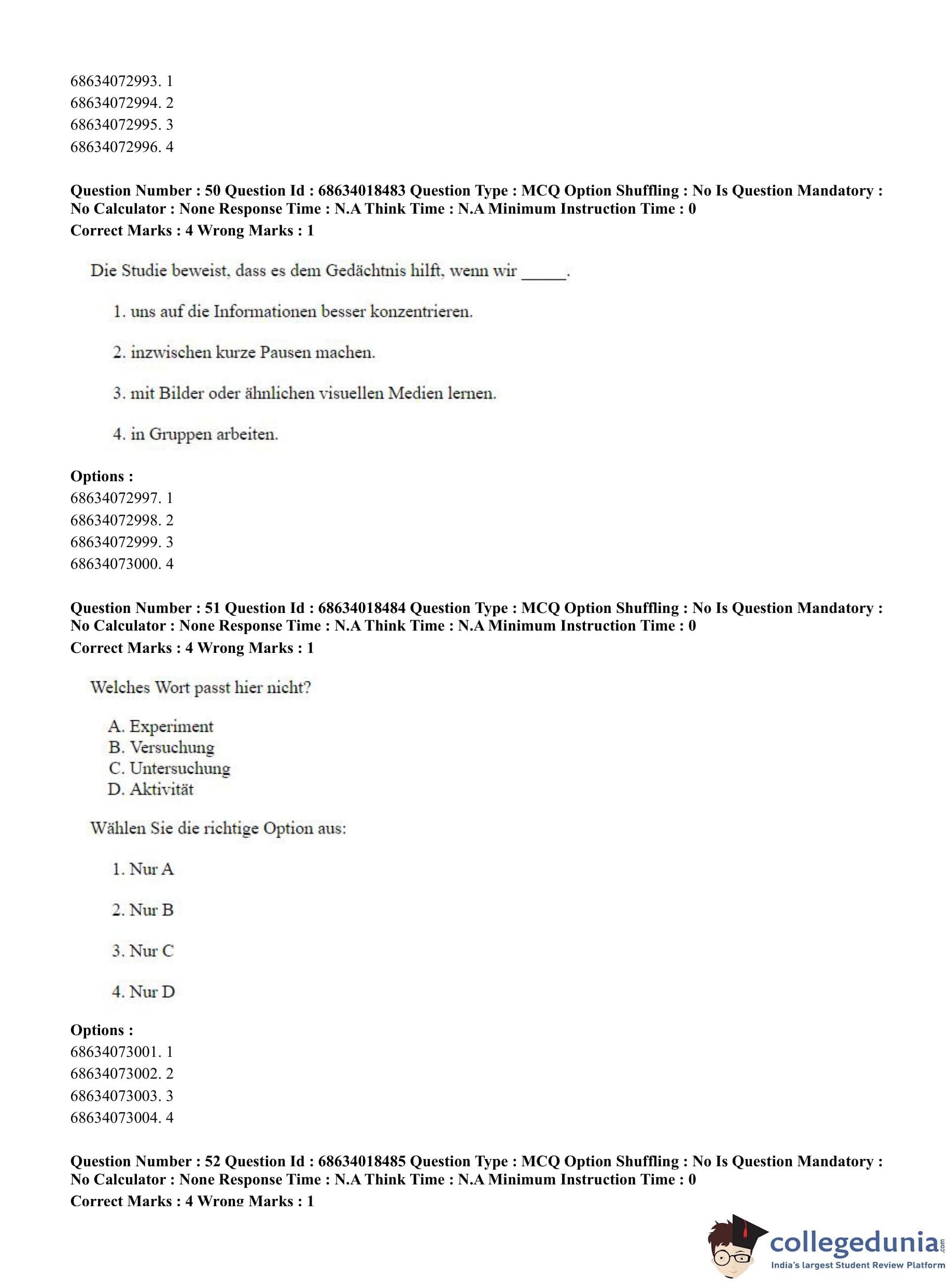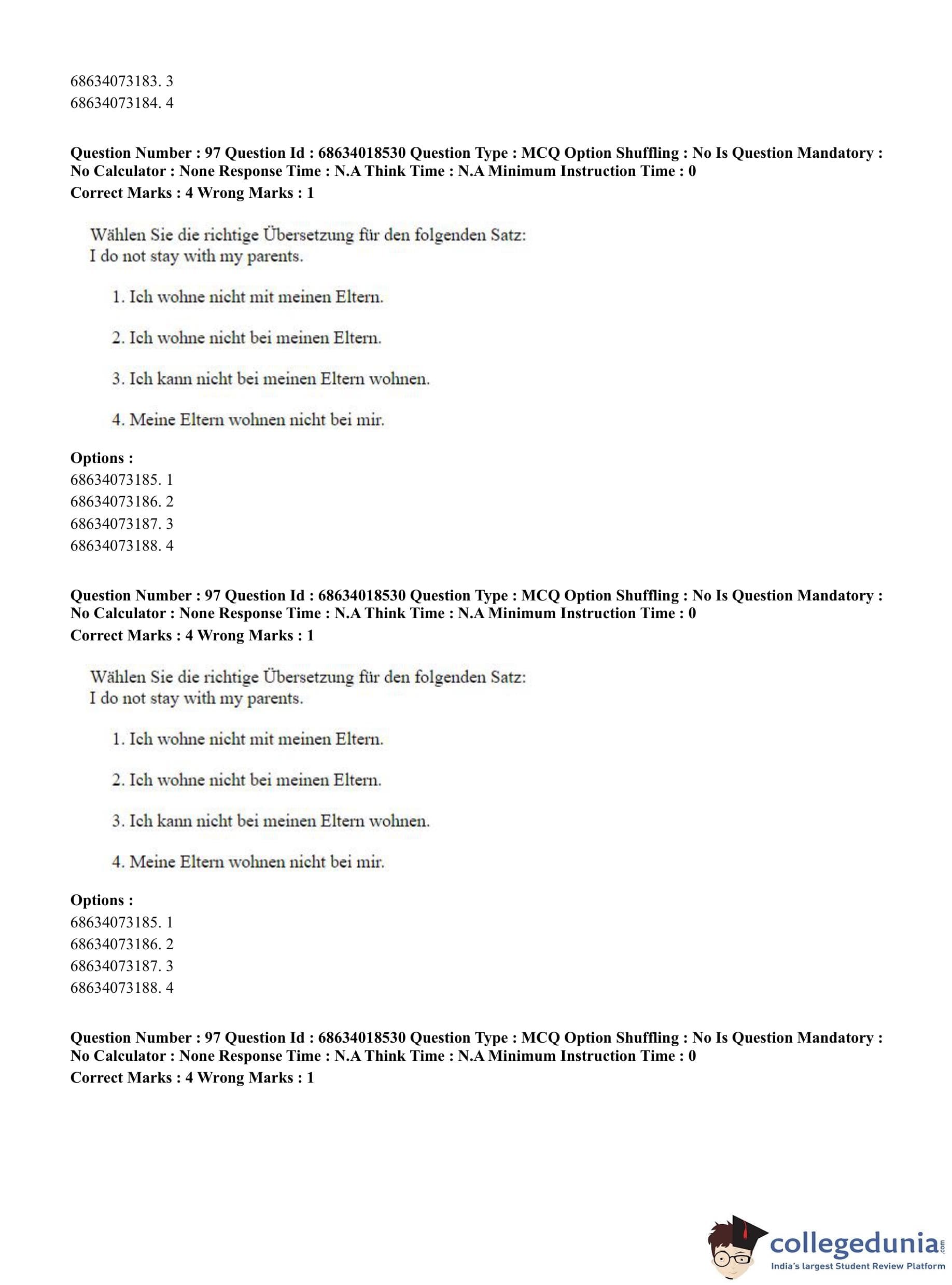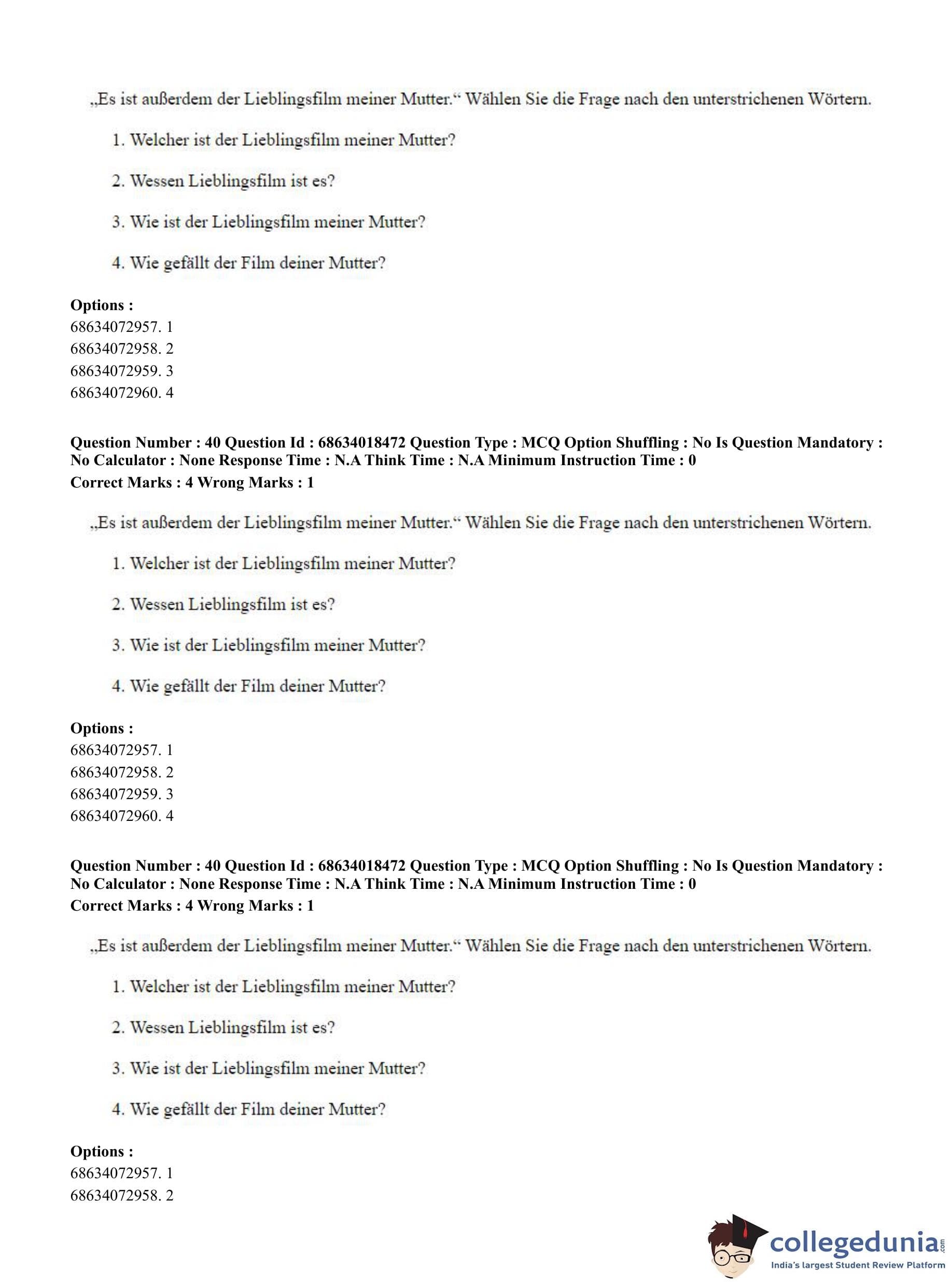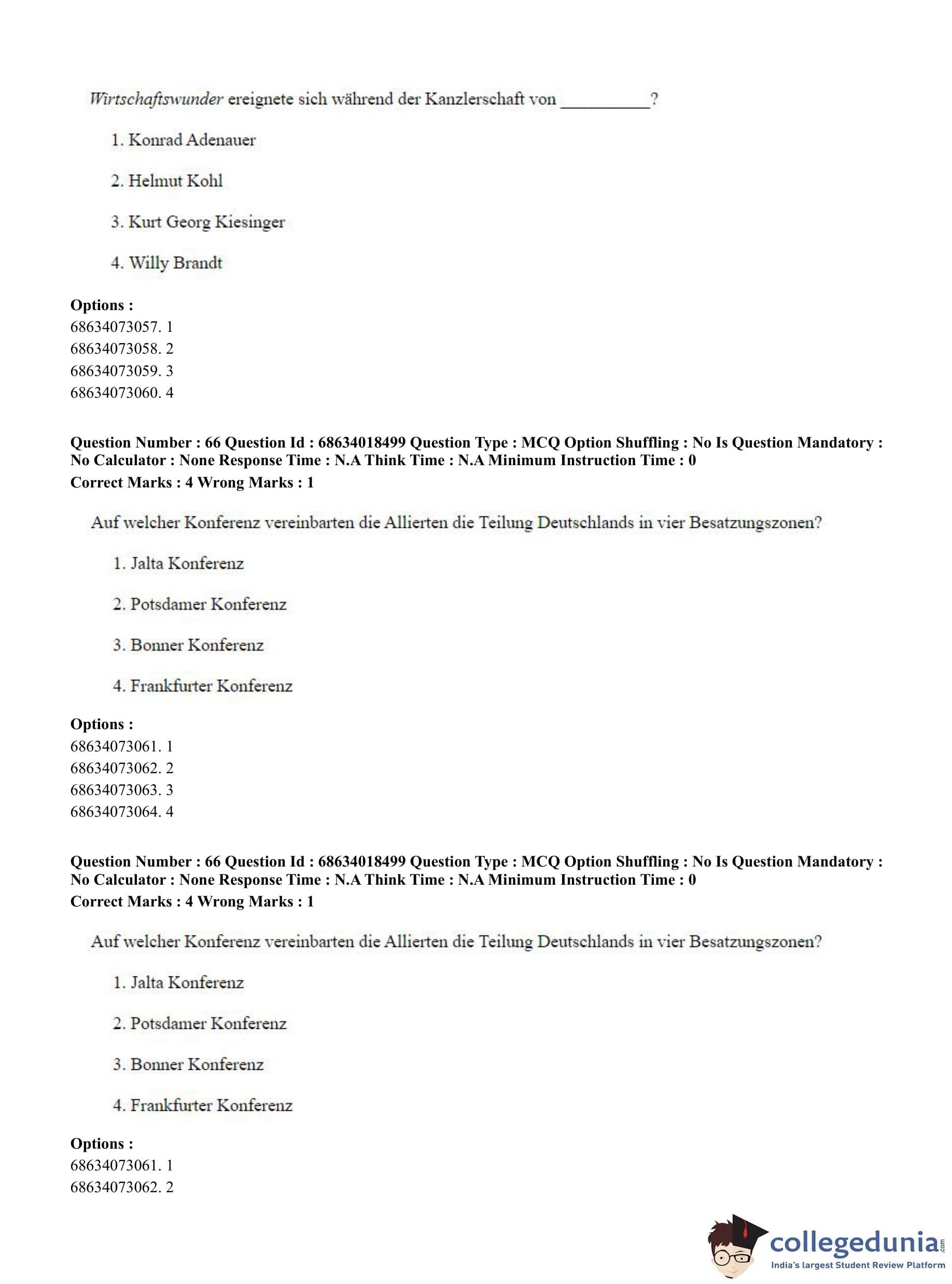 CUET PG 2023 German Question Paper in Hindi (June 13 - Shift 3)