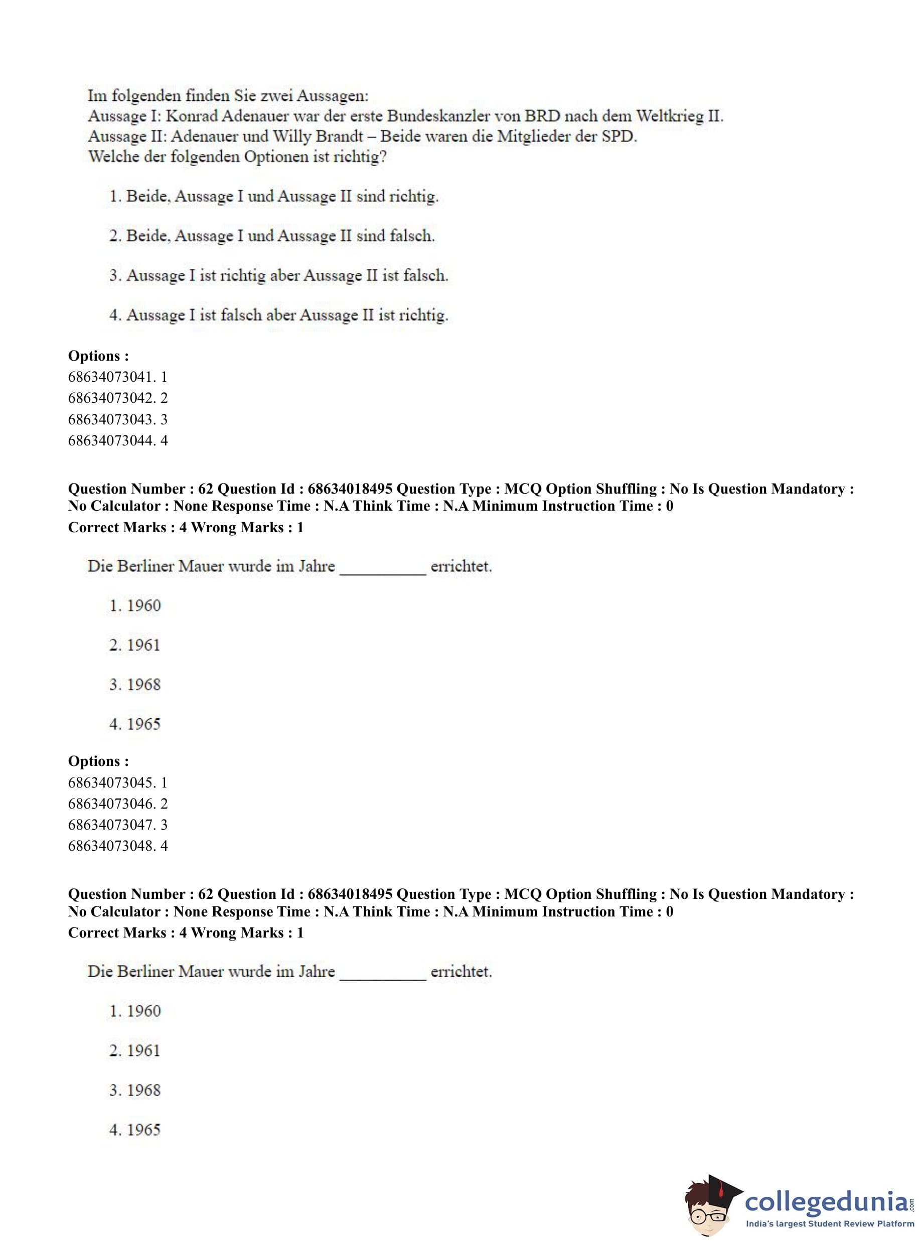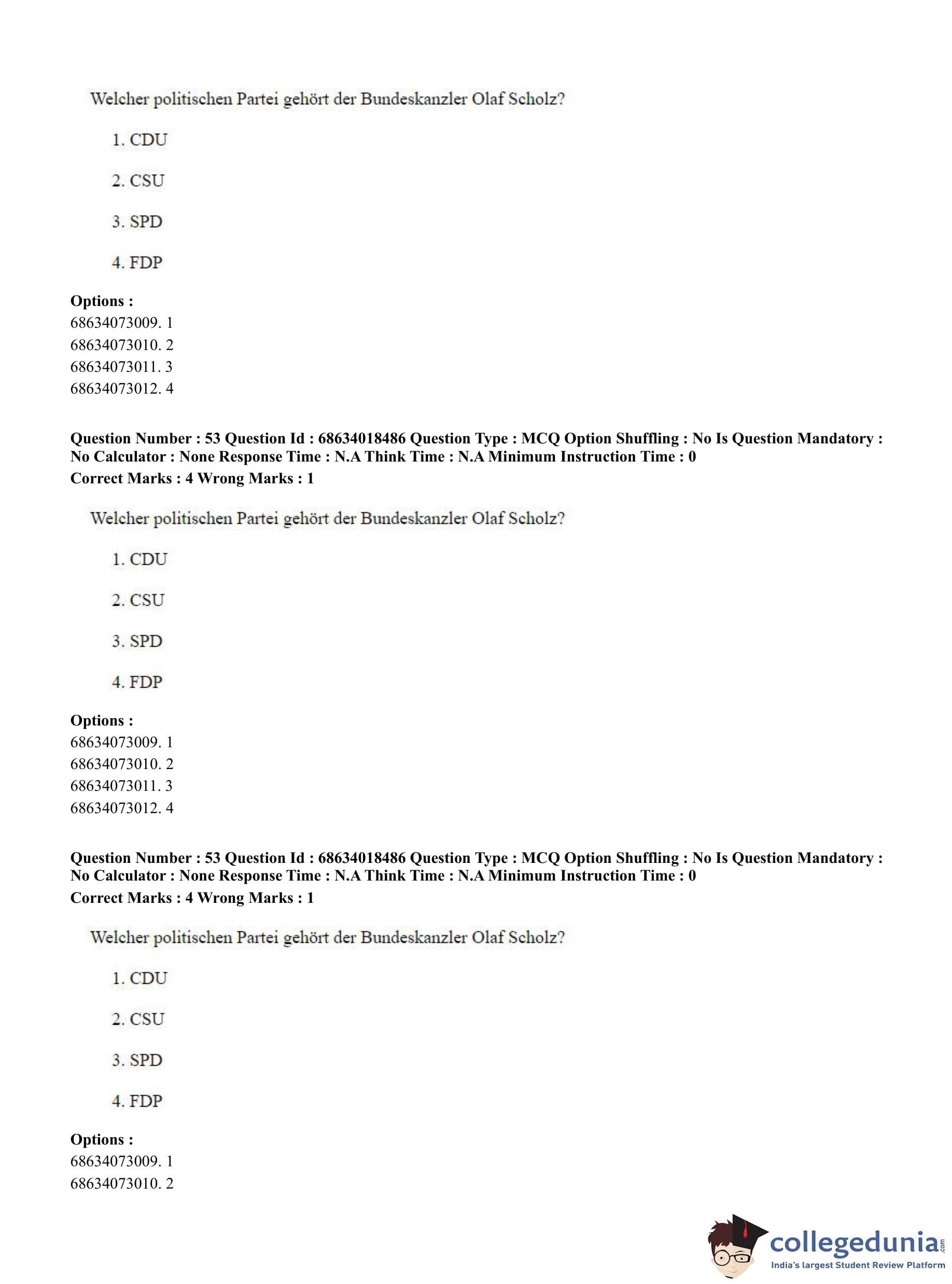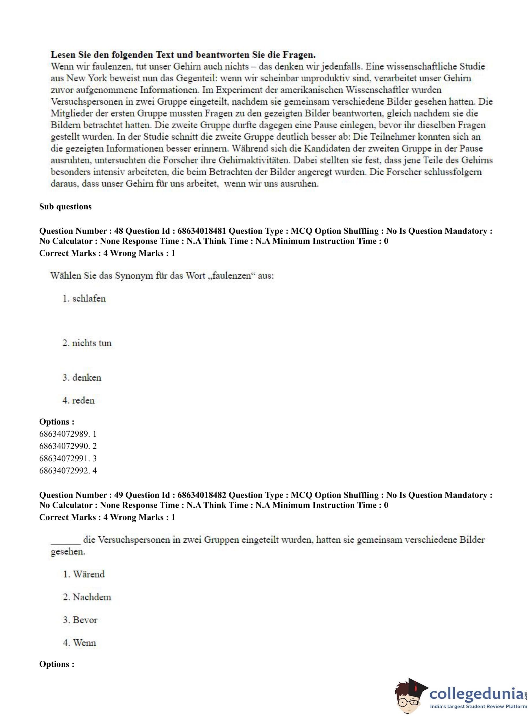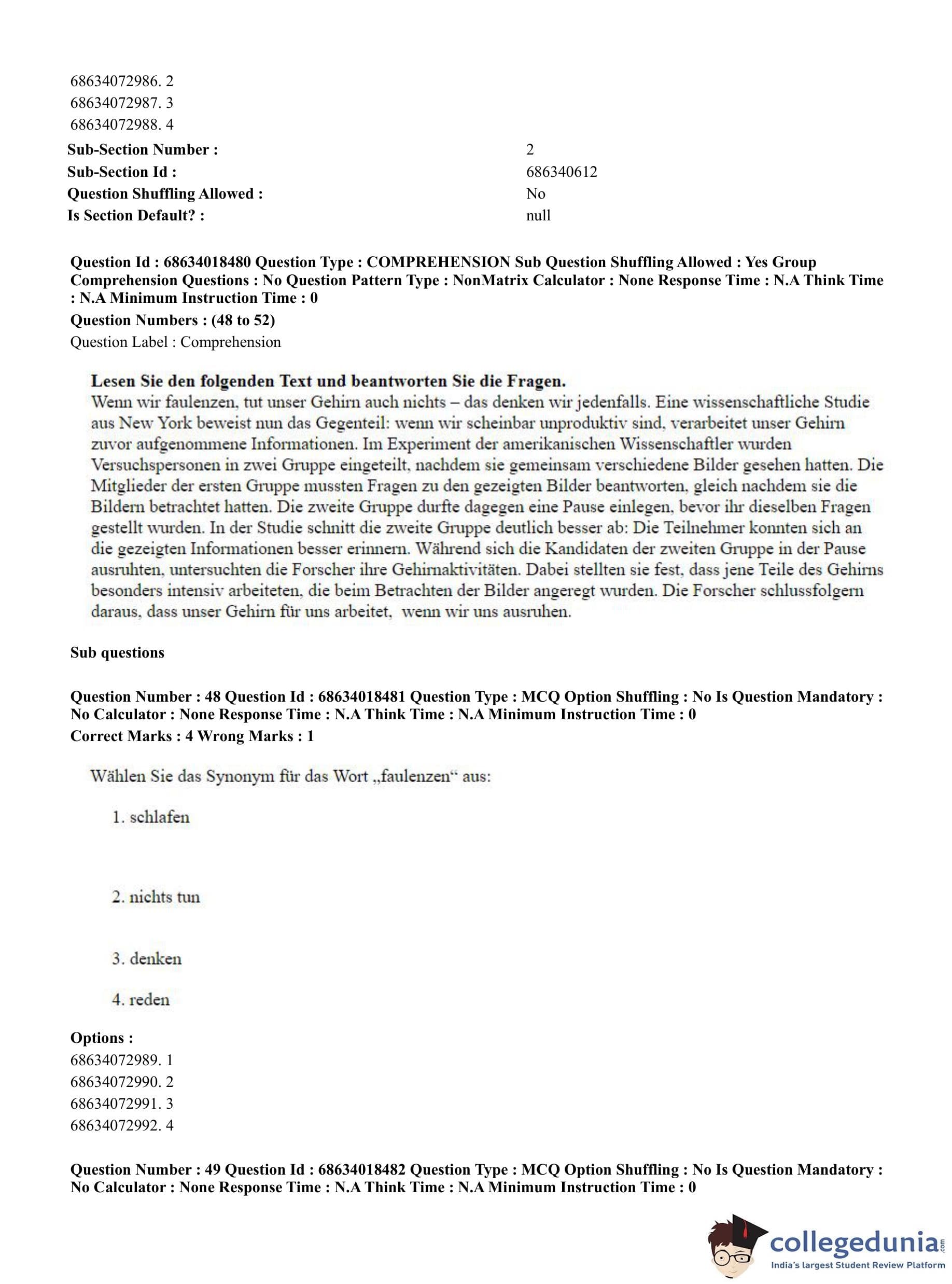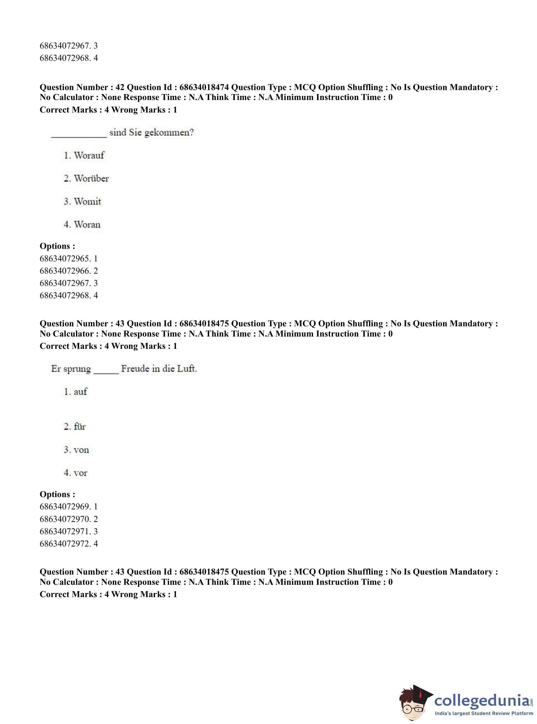 CUET PG 2023 German Question Paper in Hindi (June 13 - Shift 3)
