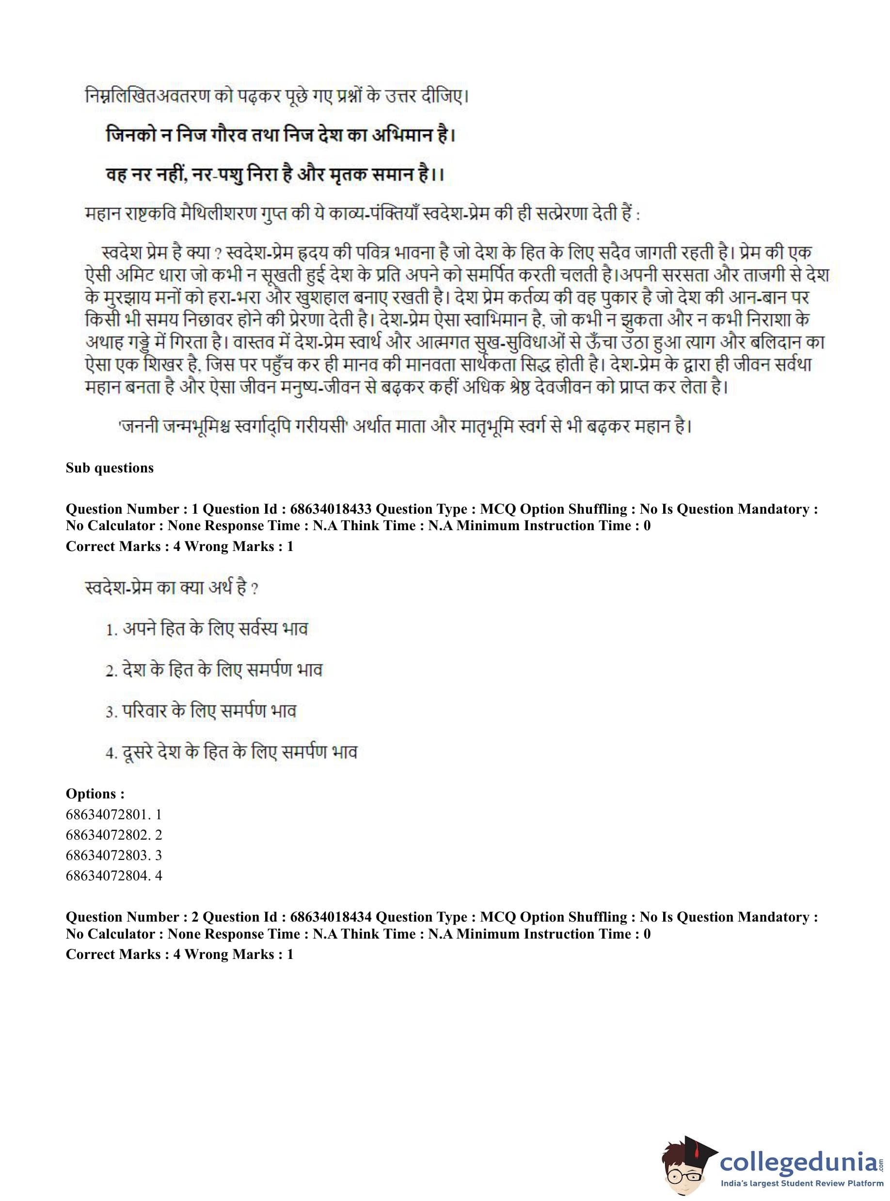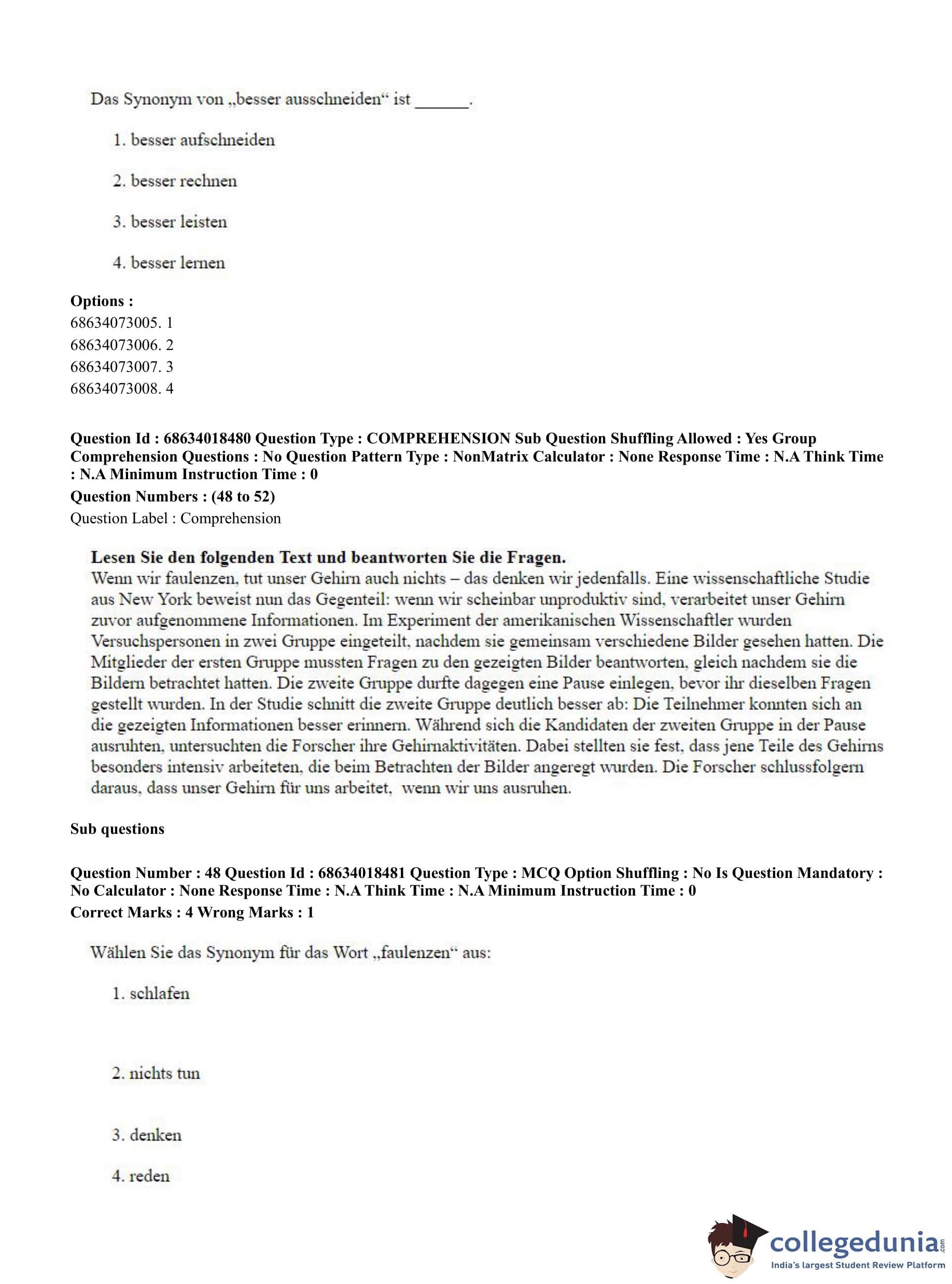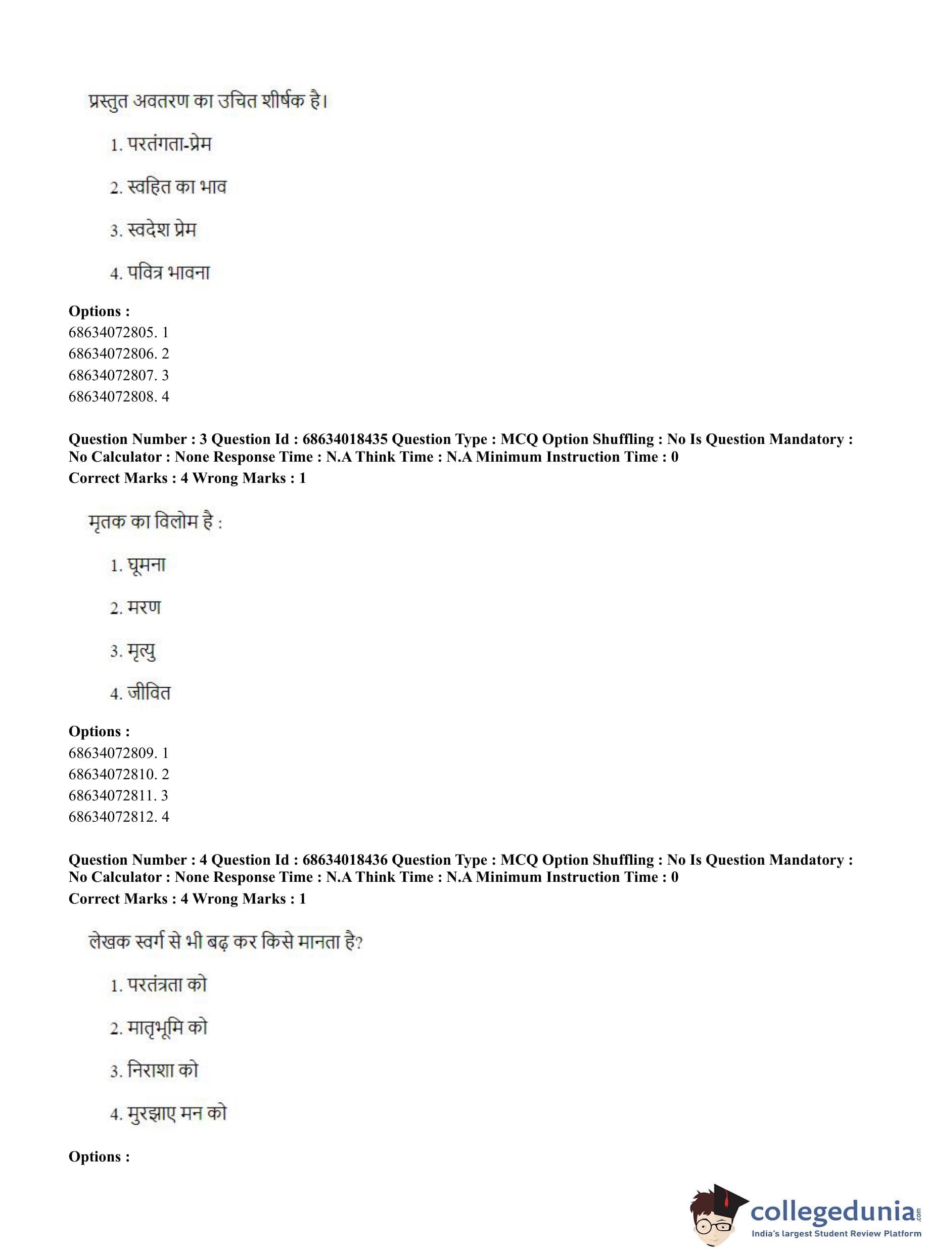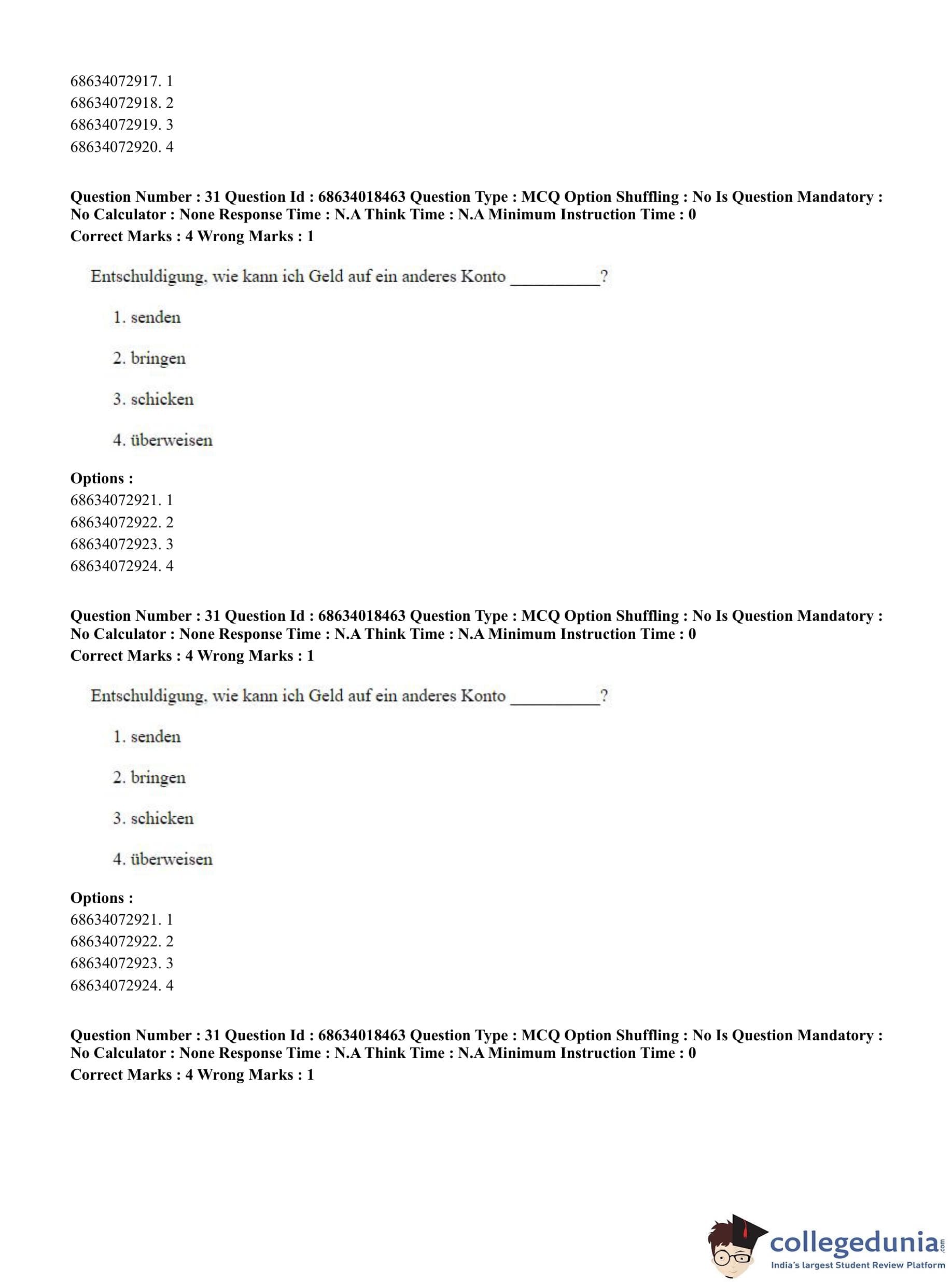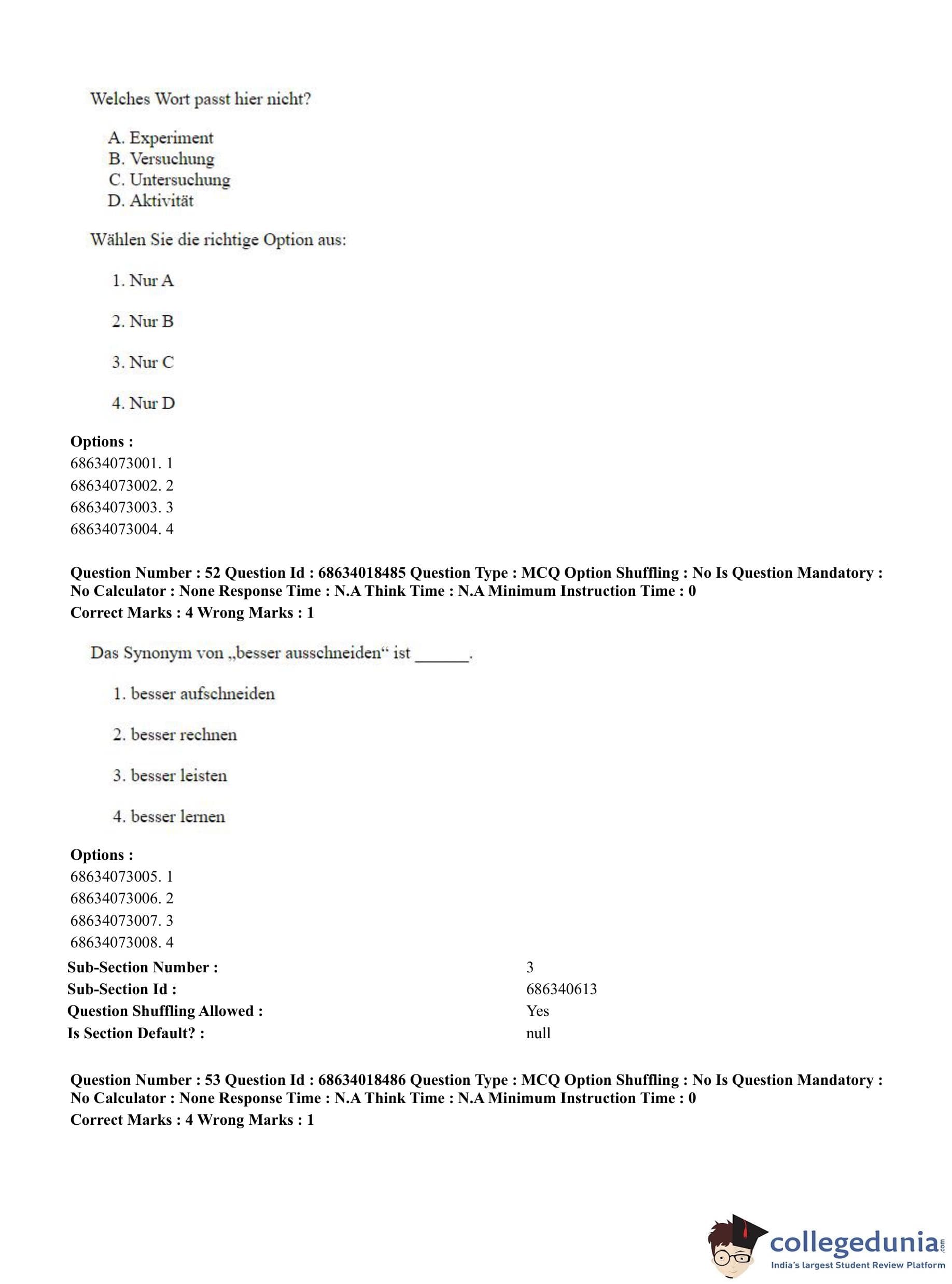 CUET PG 2023 German Question Paper in Hindi (June 13 - Shift 3)