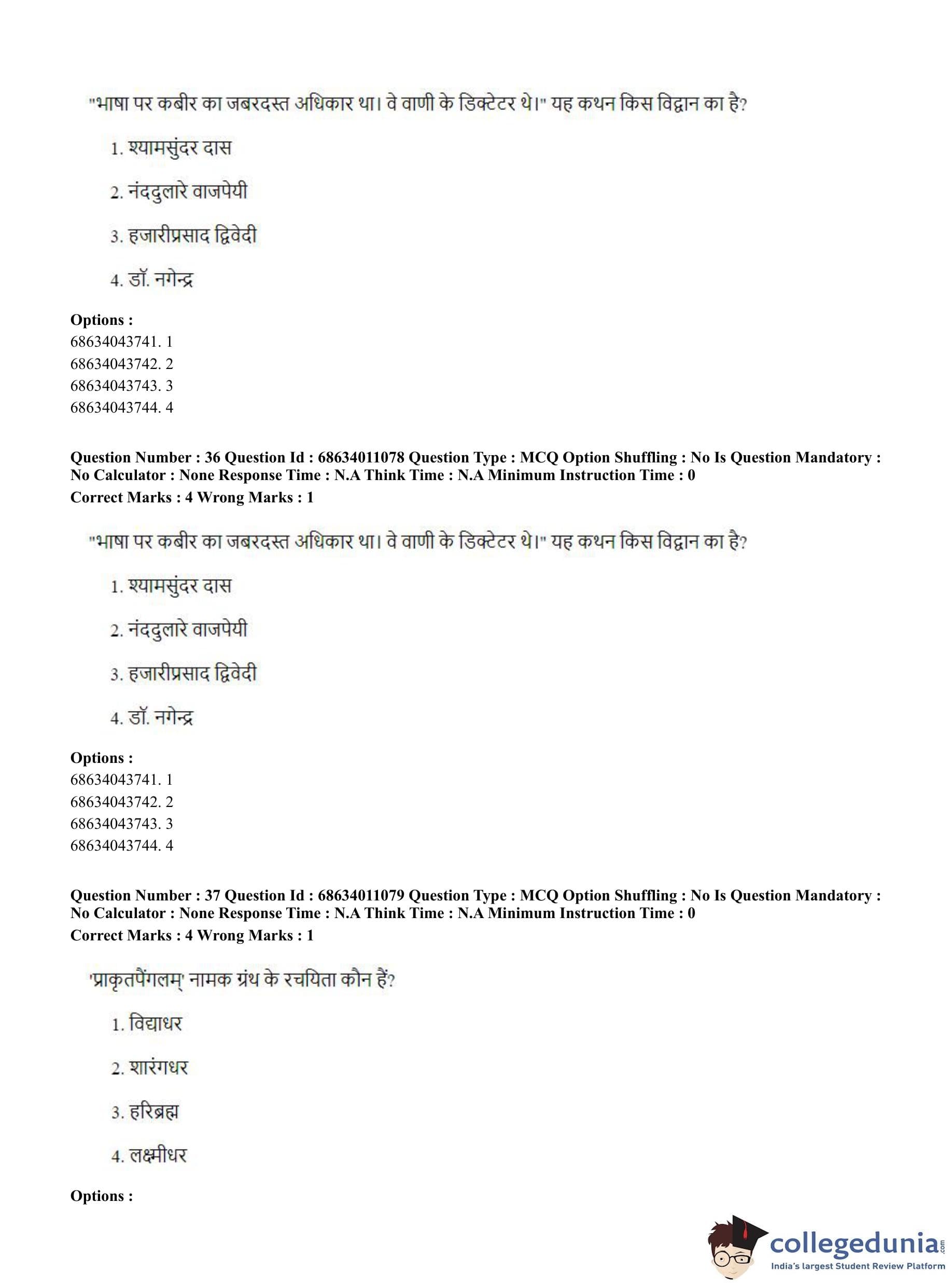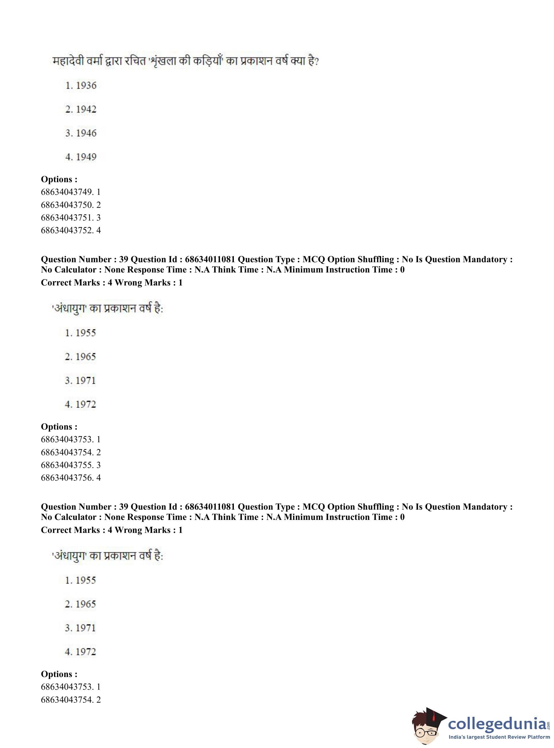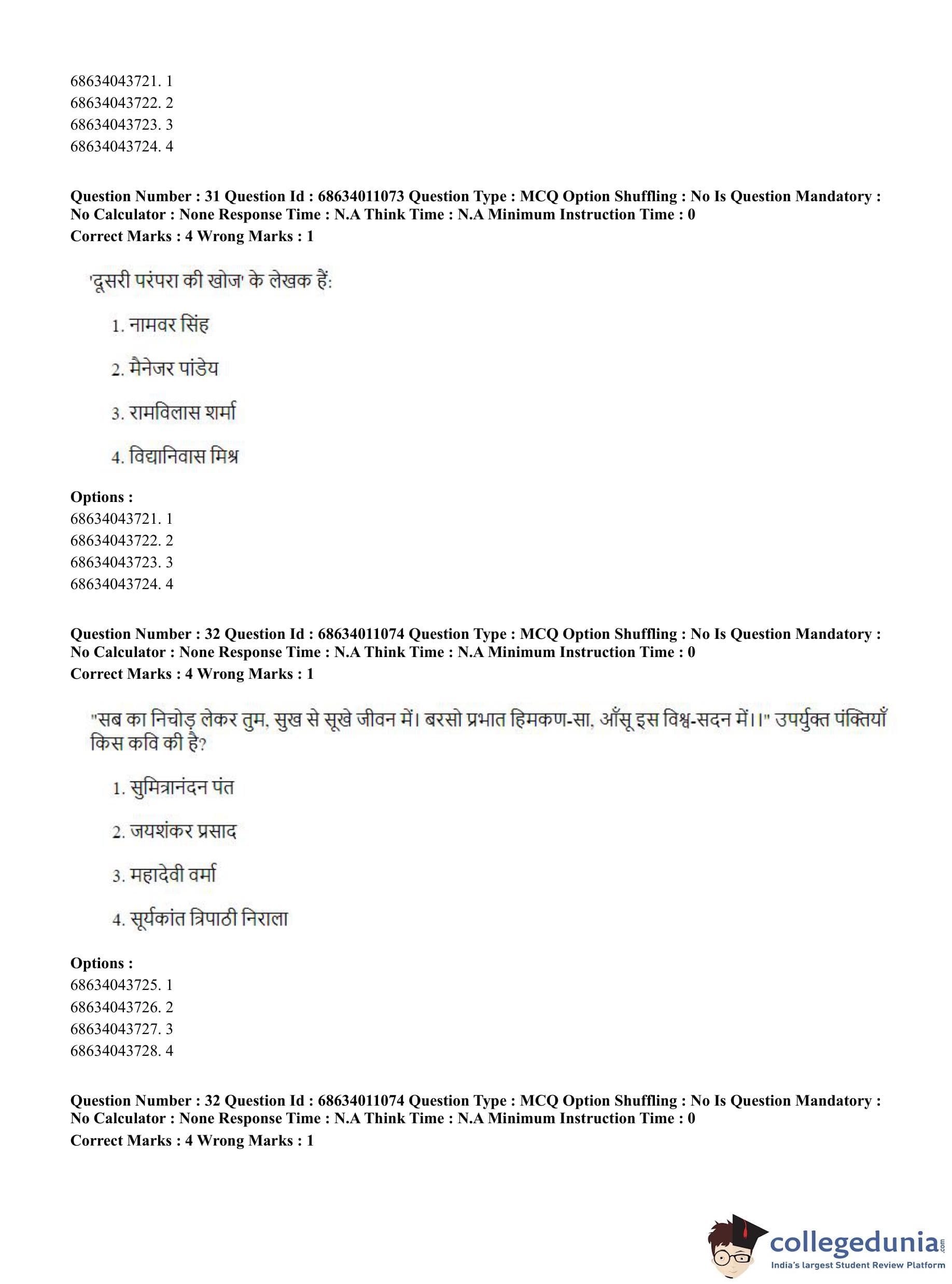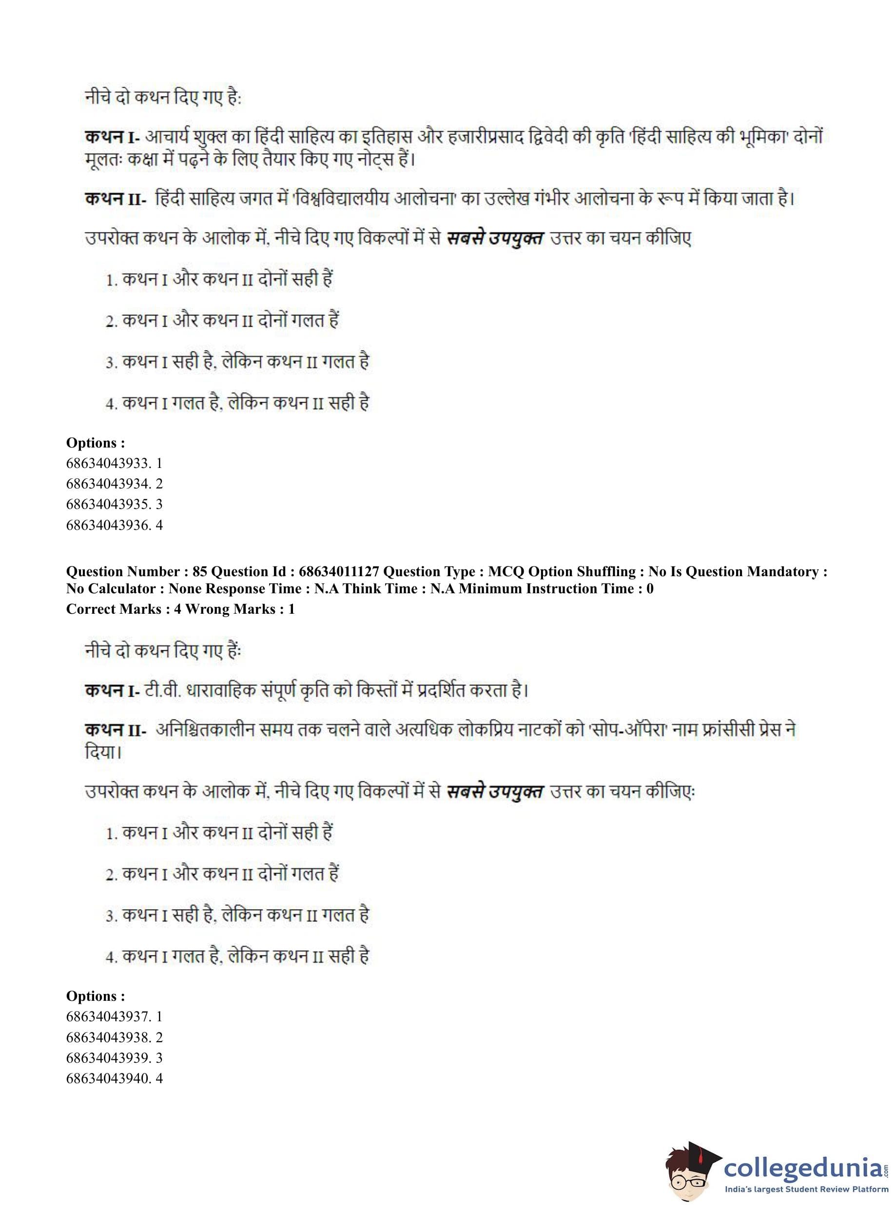 | CUET PG Hindi Question Paper 2023 PDF | CUET PG Hindi Answer Key 2023 PDF |