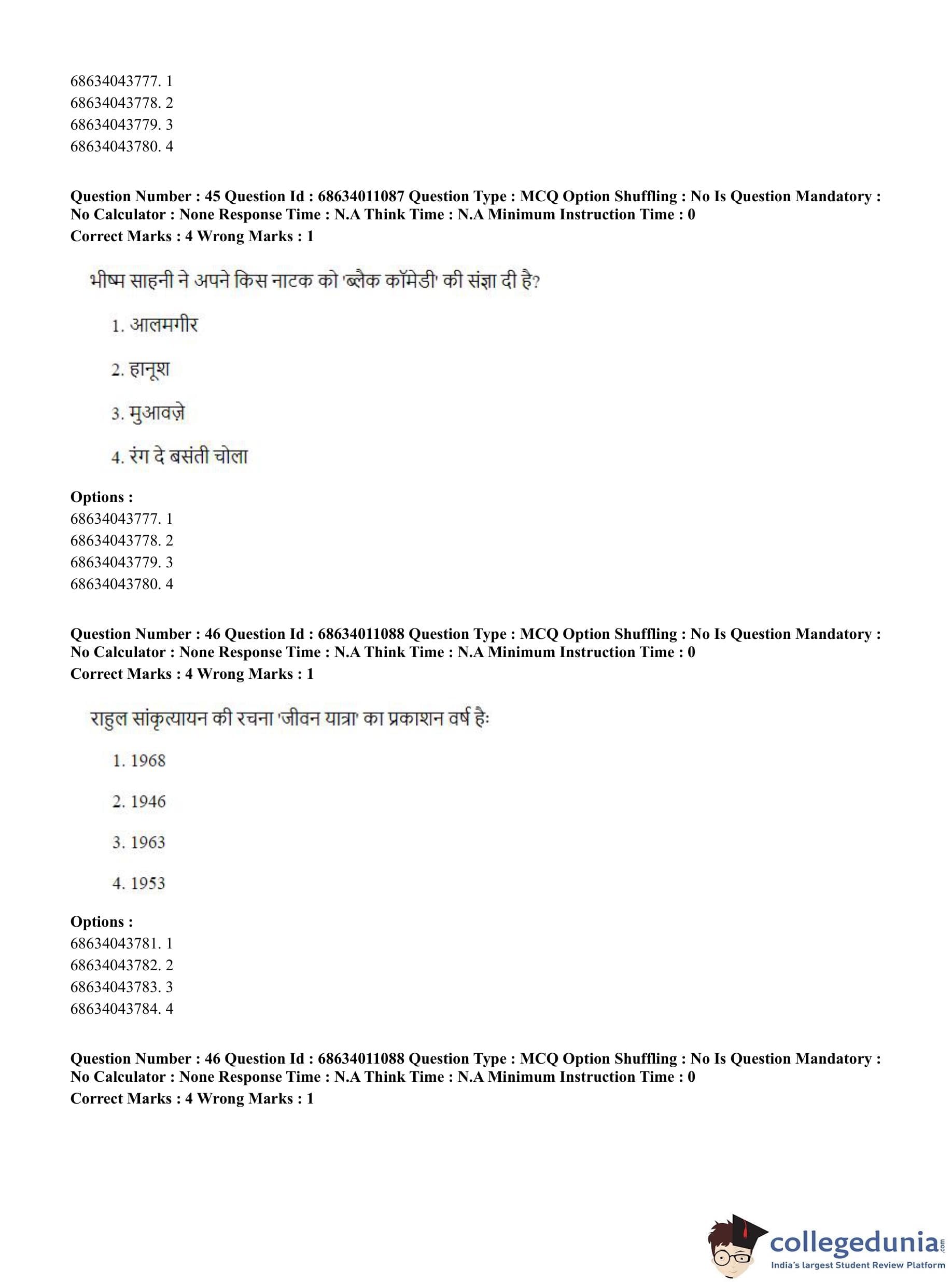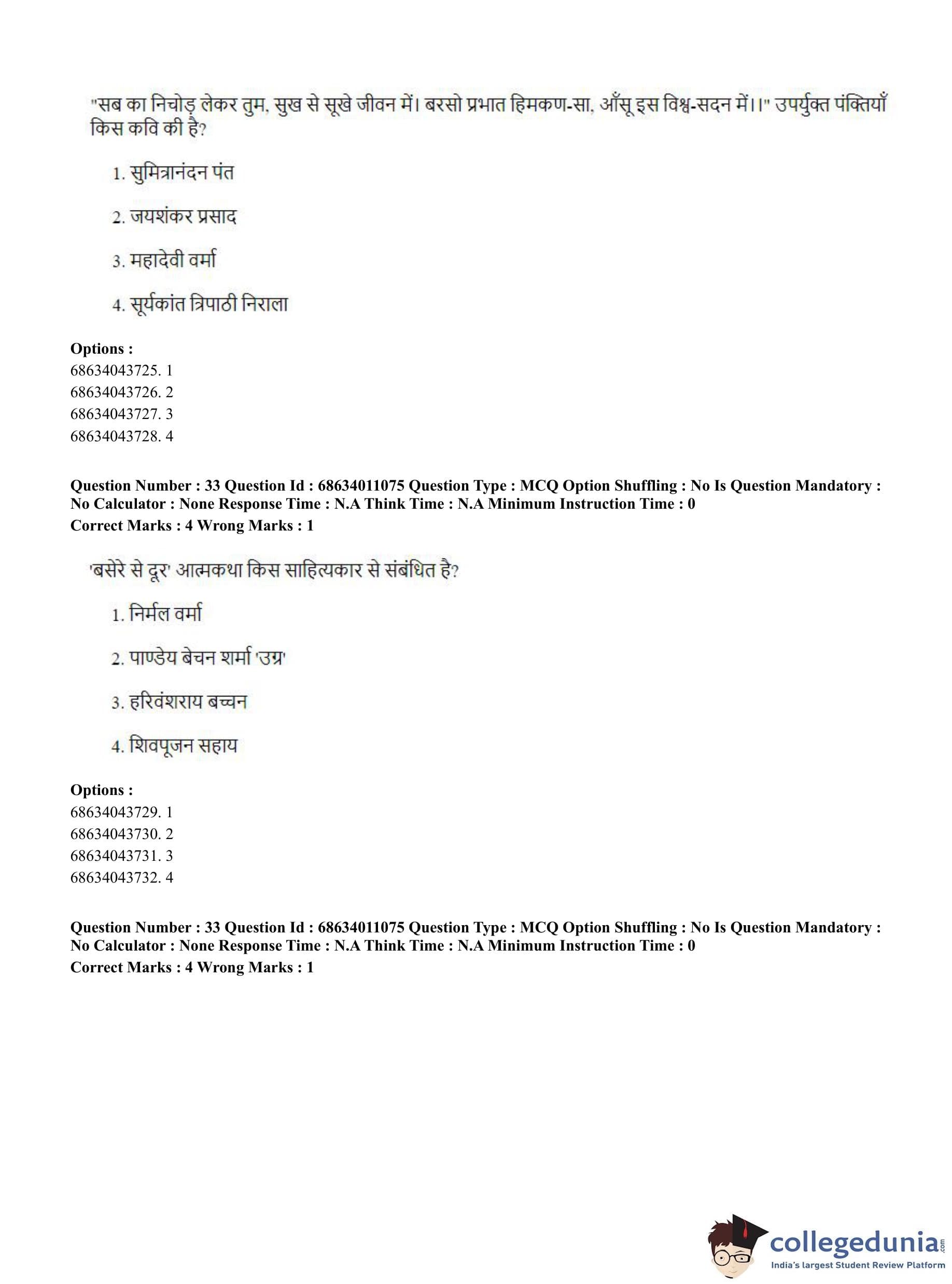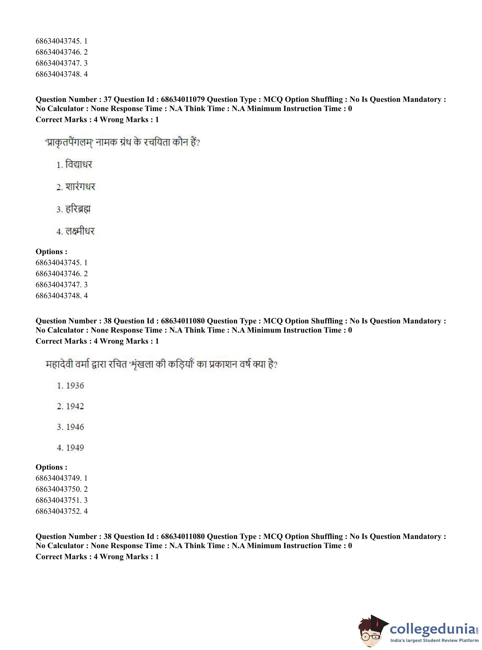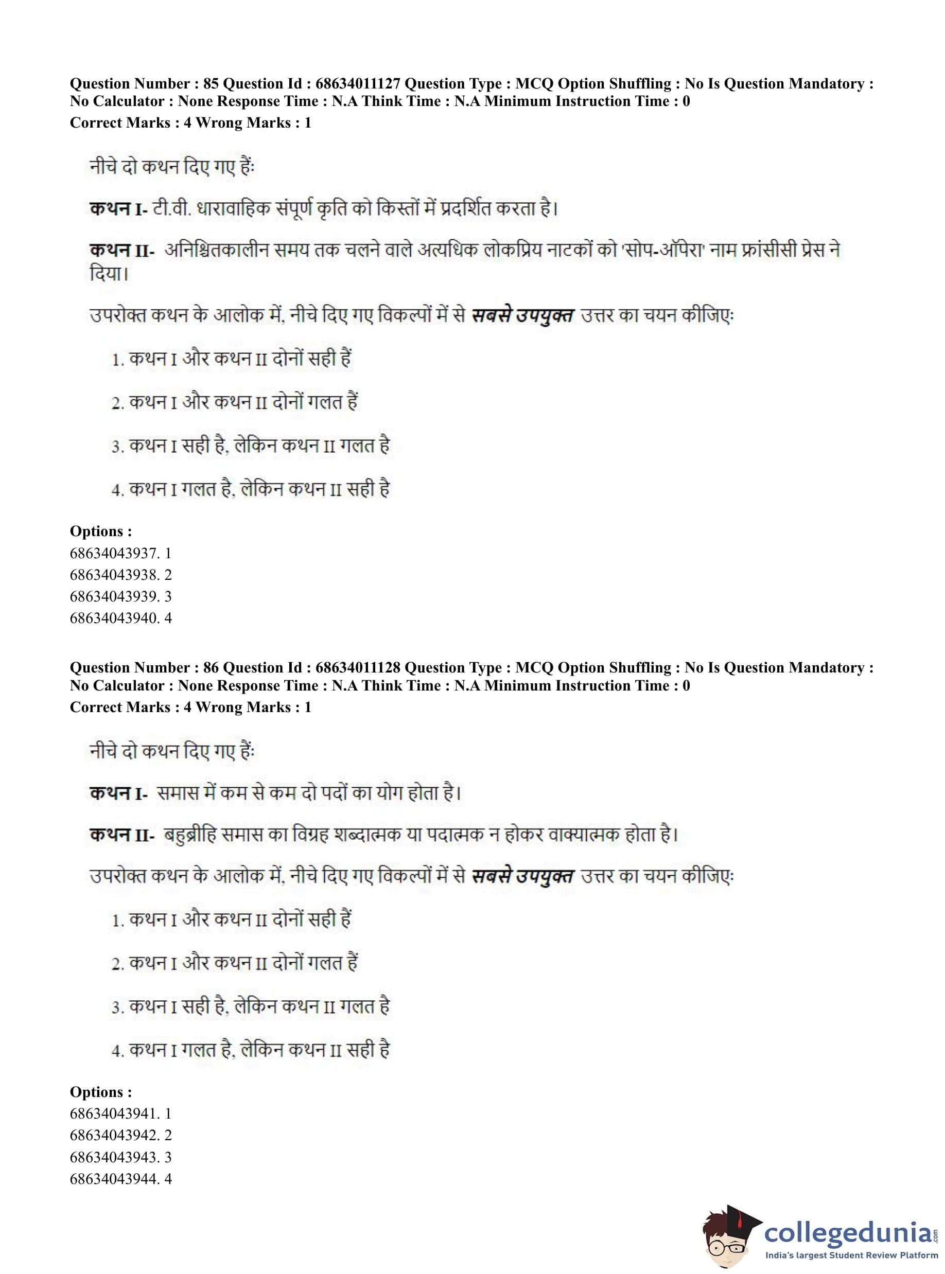 | CUET PG Hindi Question Paper 2023 PDF | CUET PG Hindi Answer Key 2023 PDF |