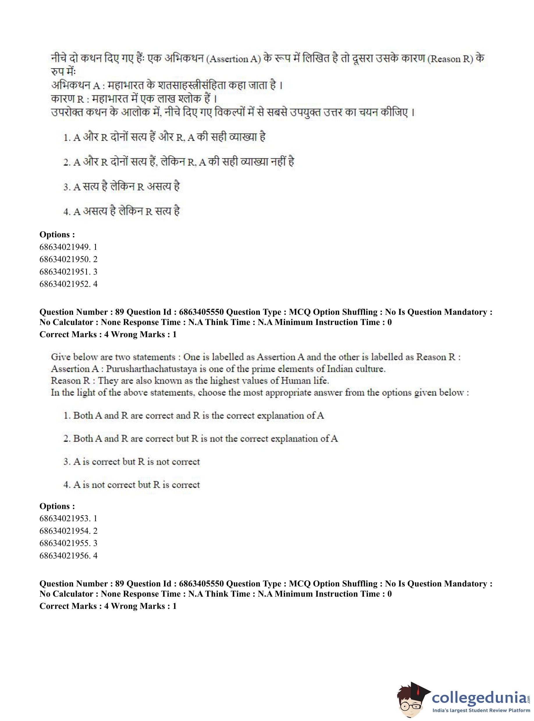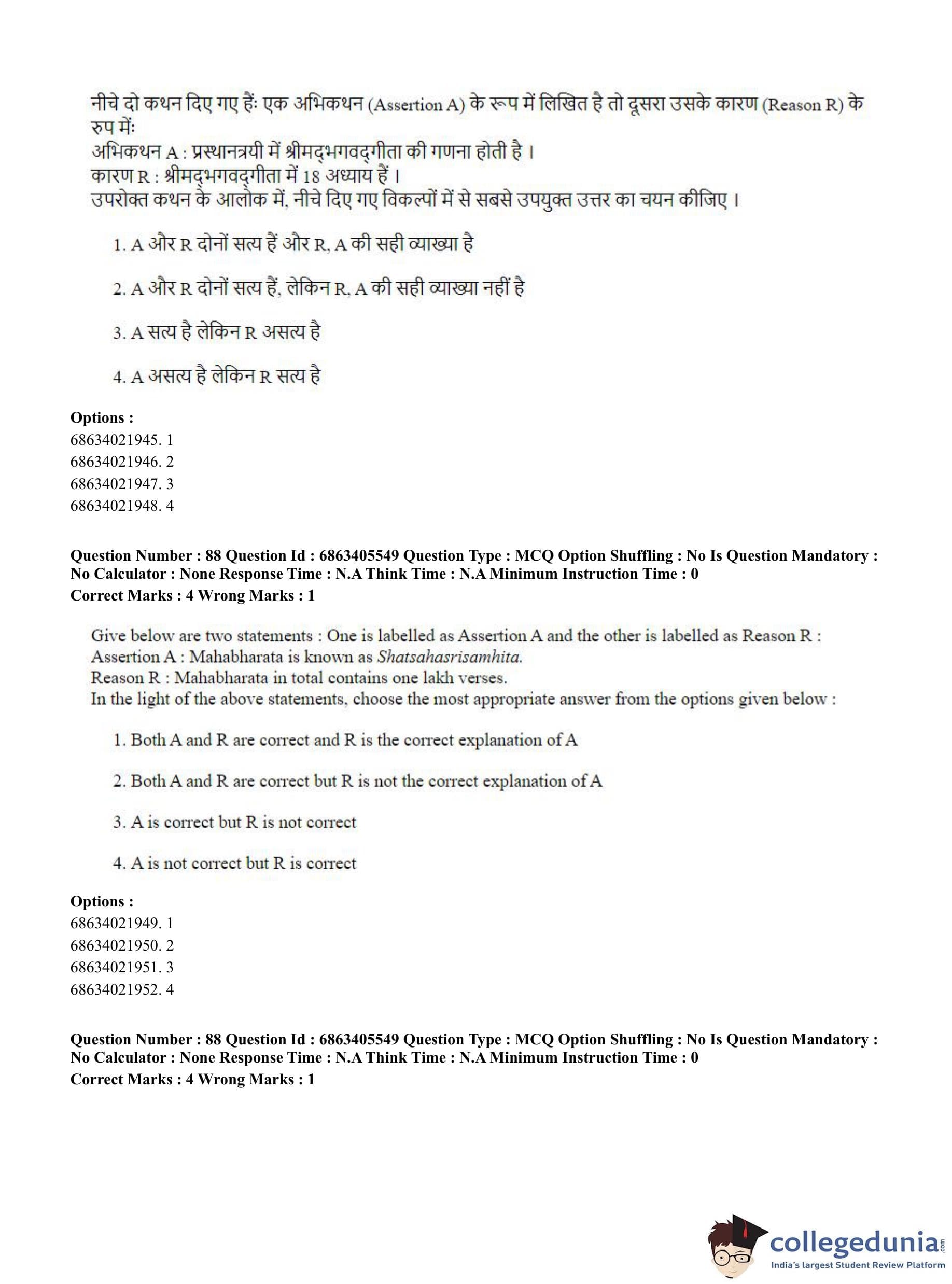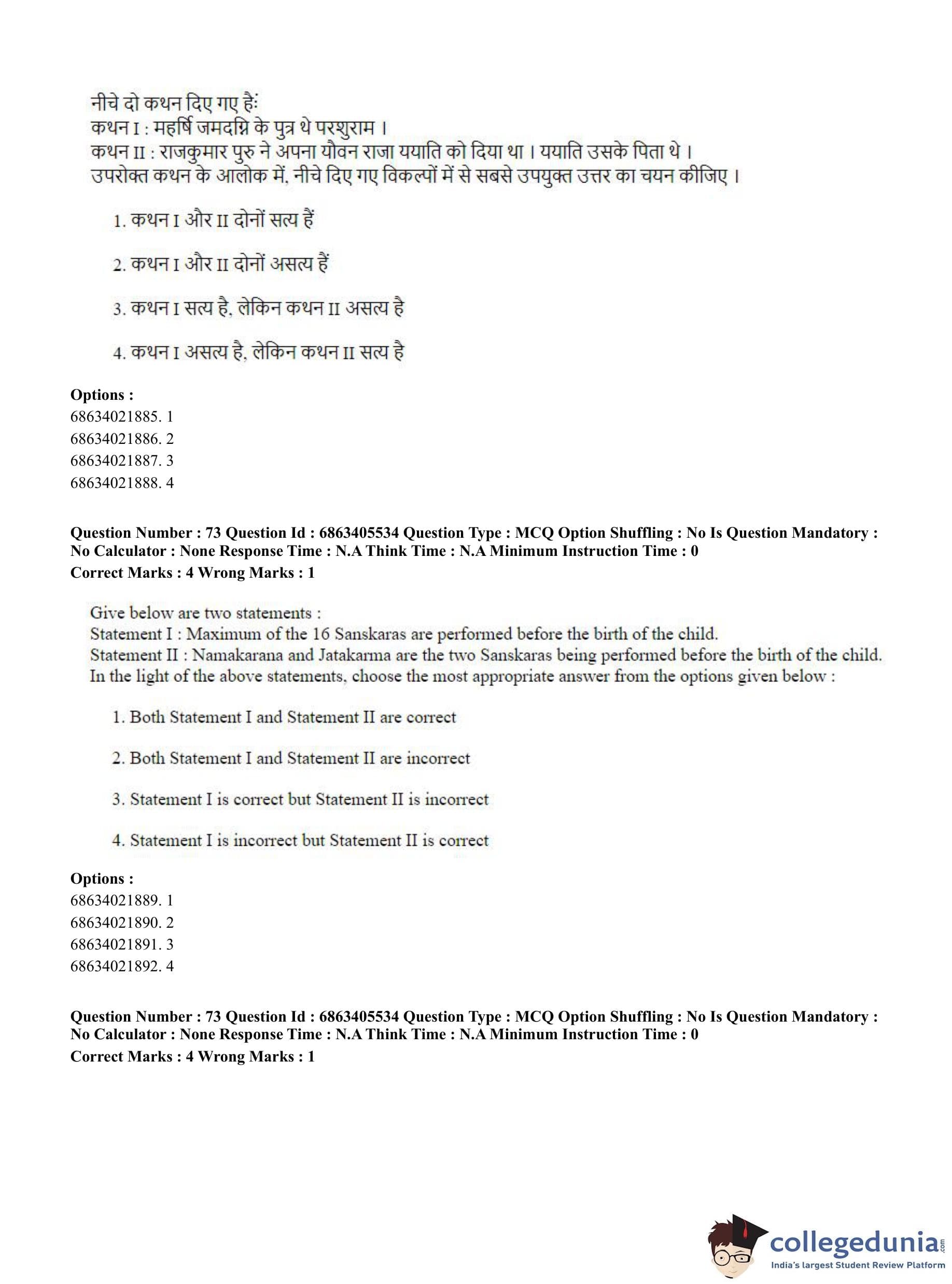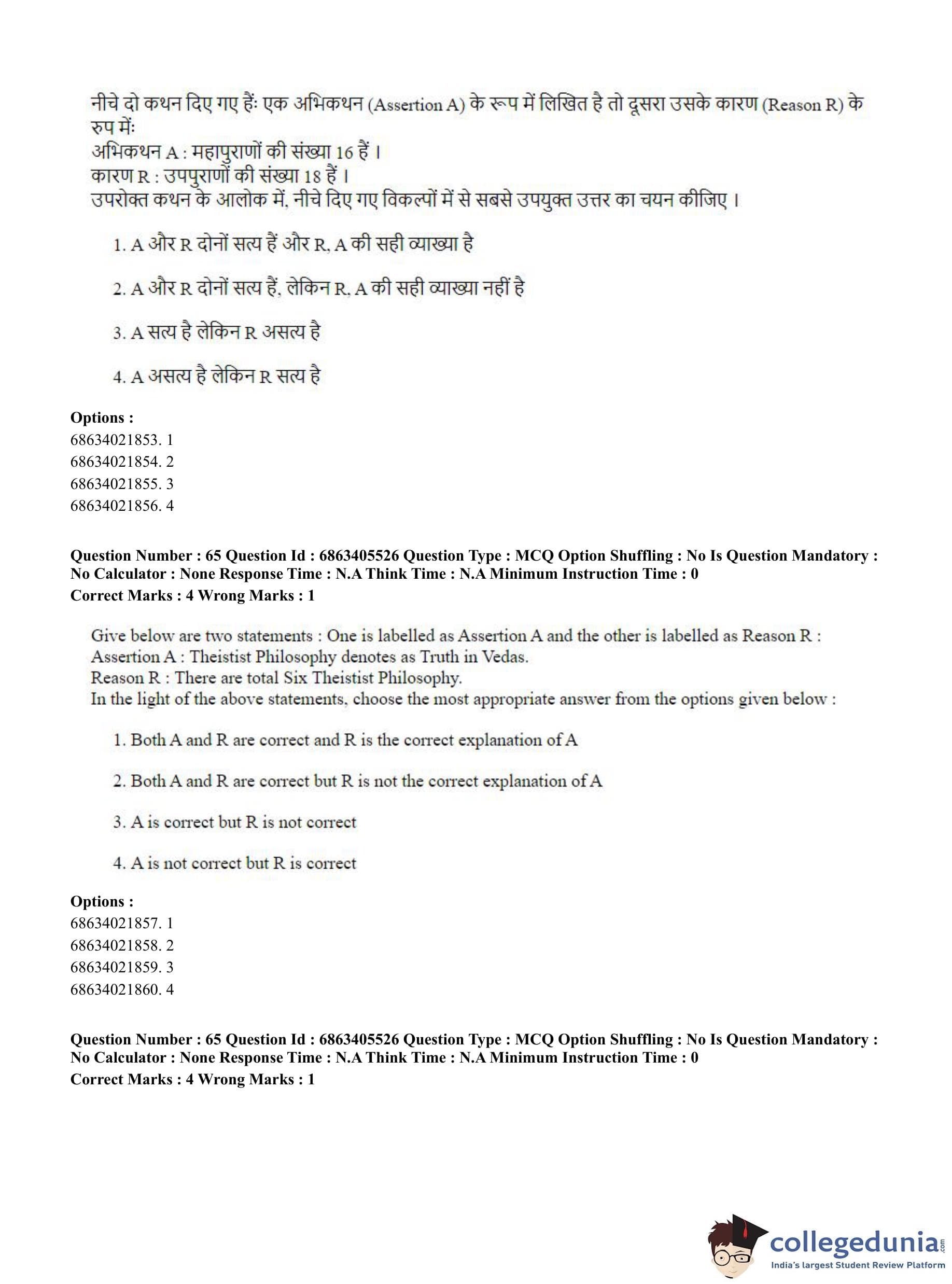 CUET PG 2023 Hindu Studies (Bilingual) Question Paper in Hindi (June 5 - Shift 3)