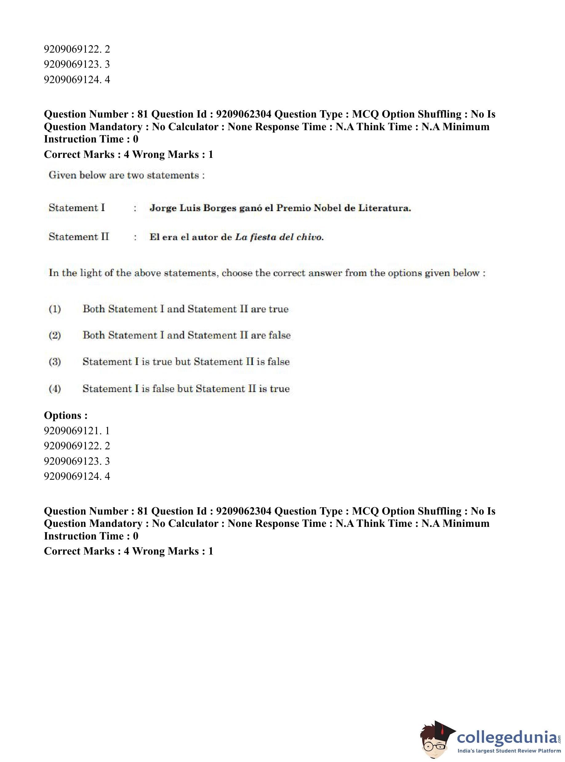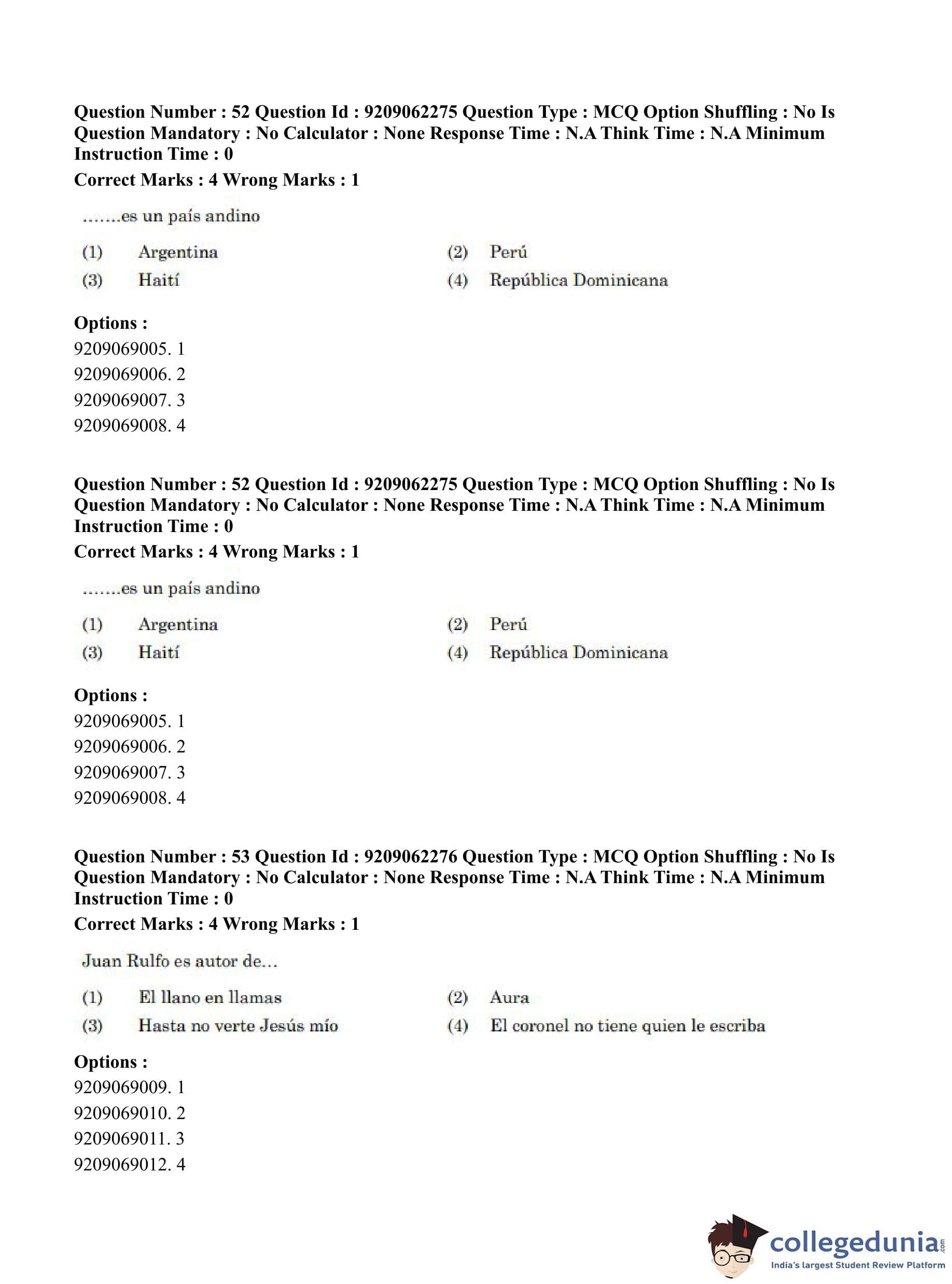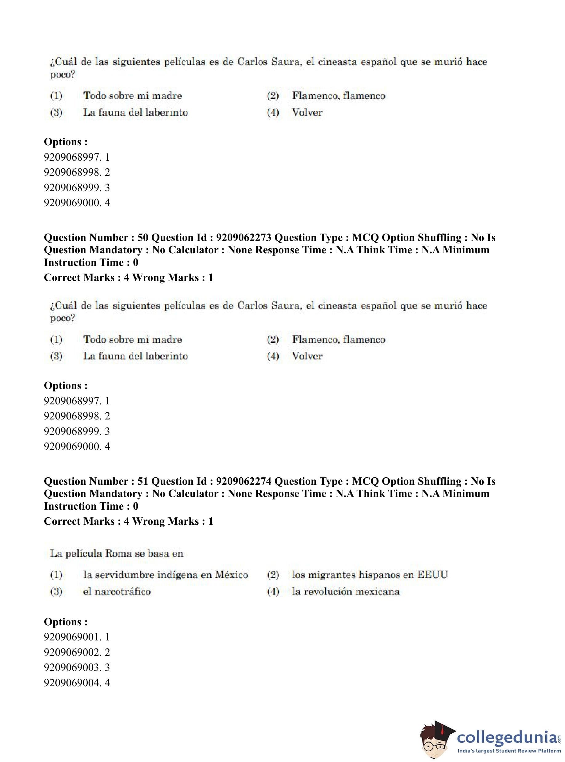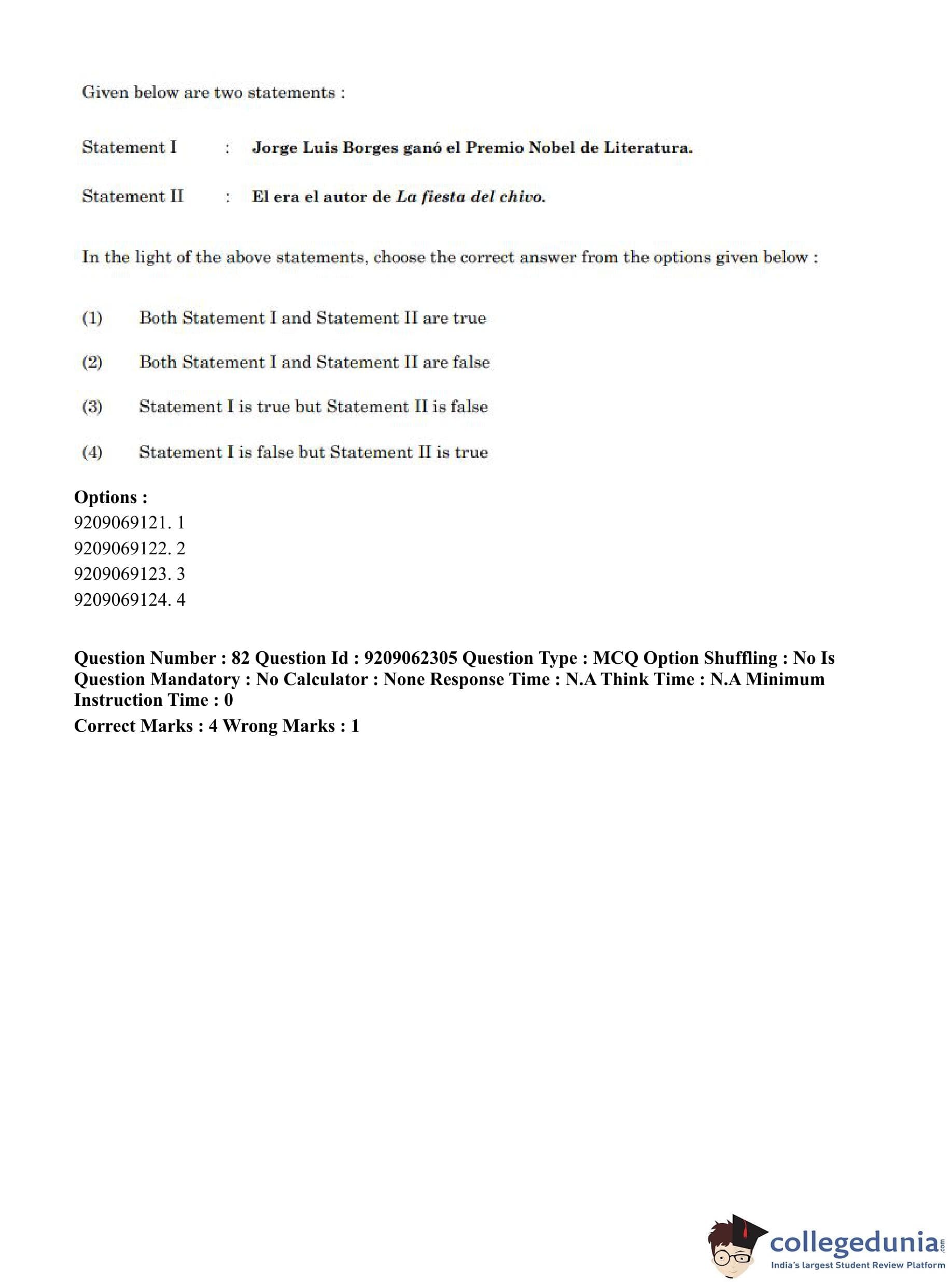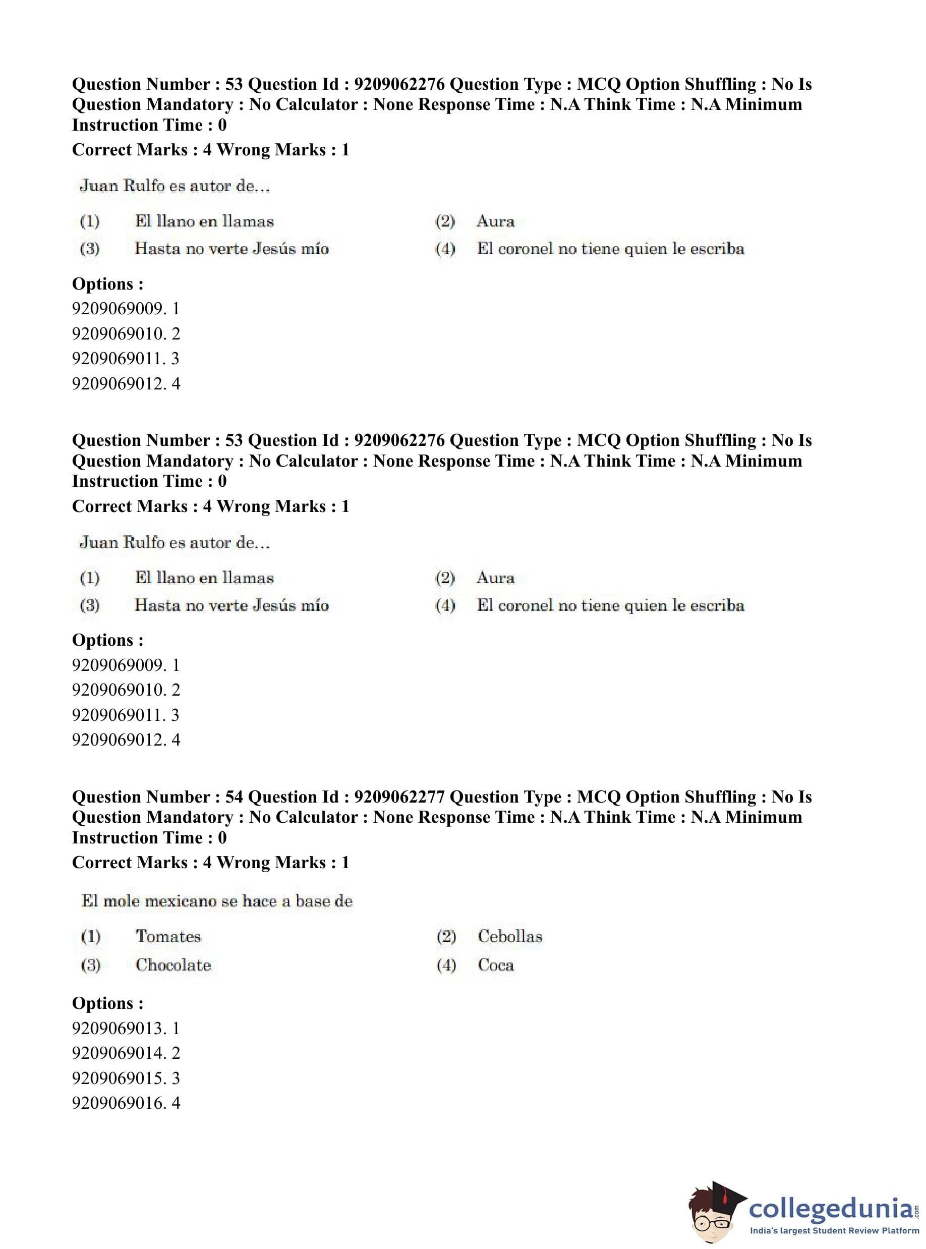 CUET PG 2023 Hispanic Question Paper in English (June 6 - Shift 2)